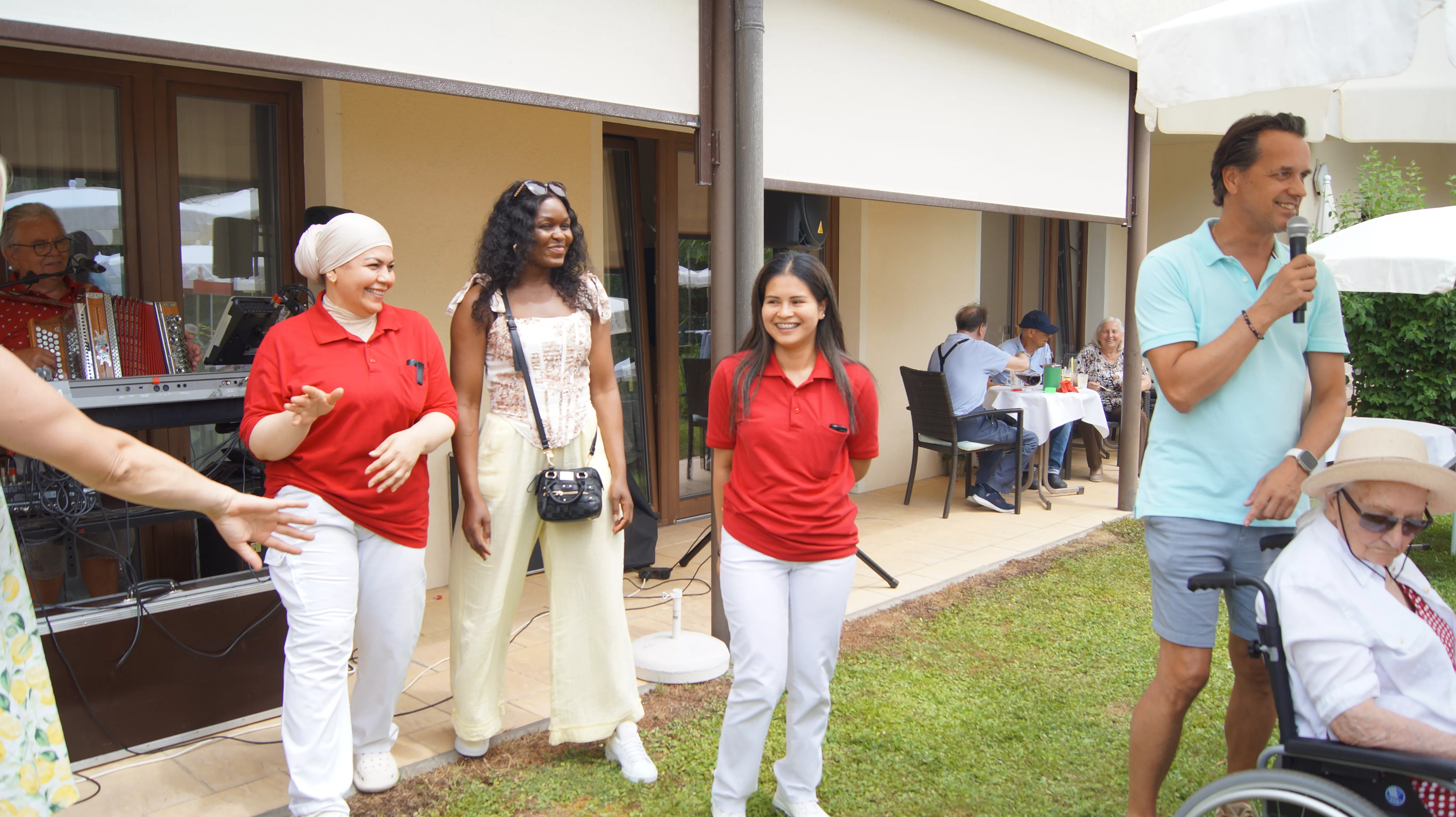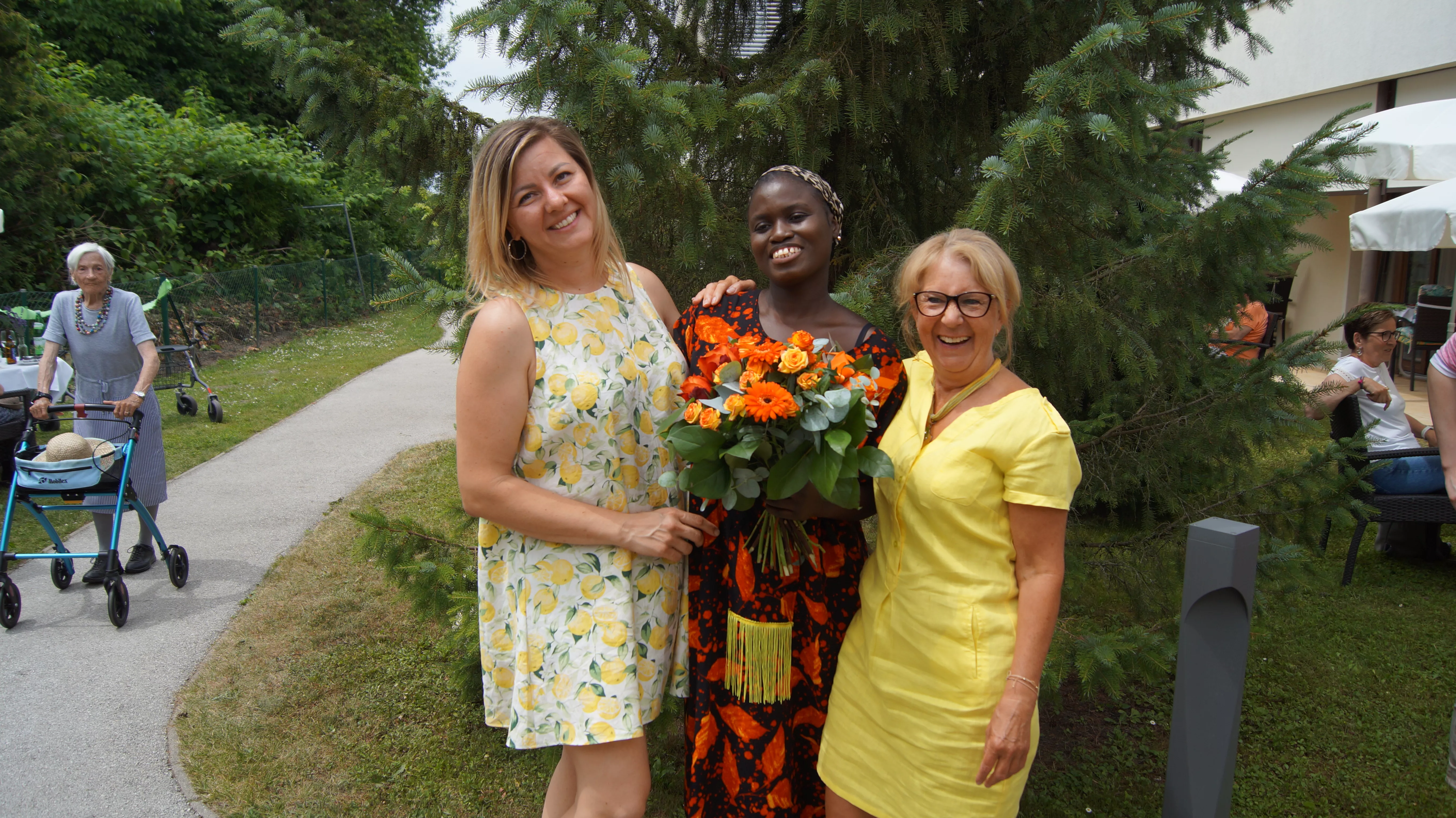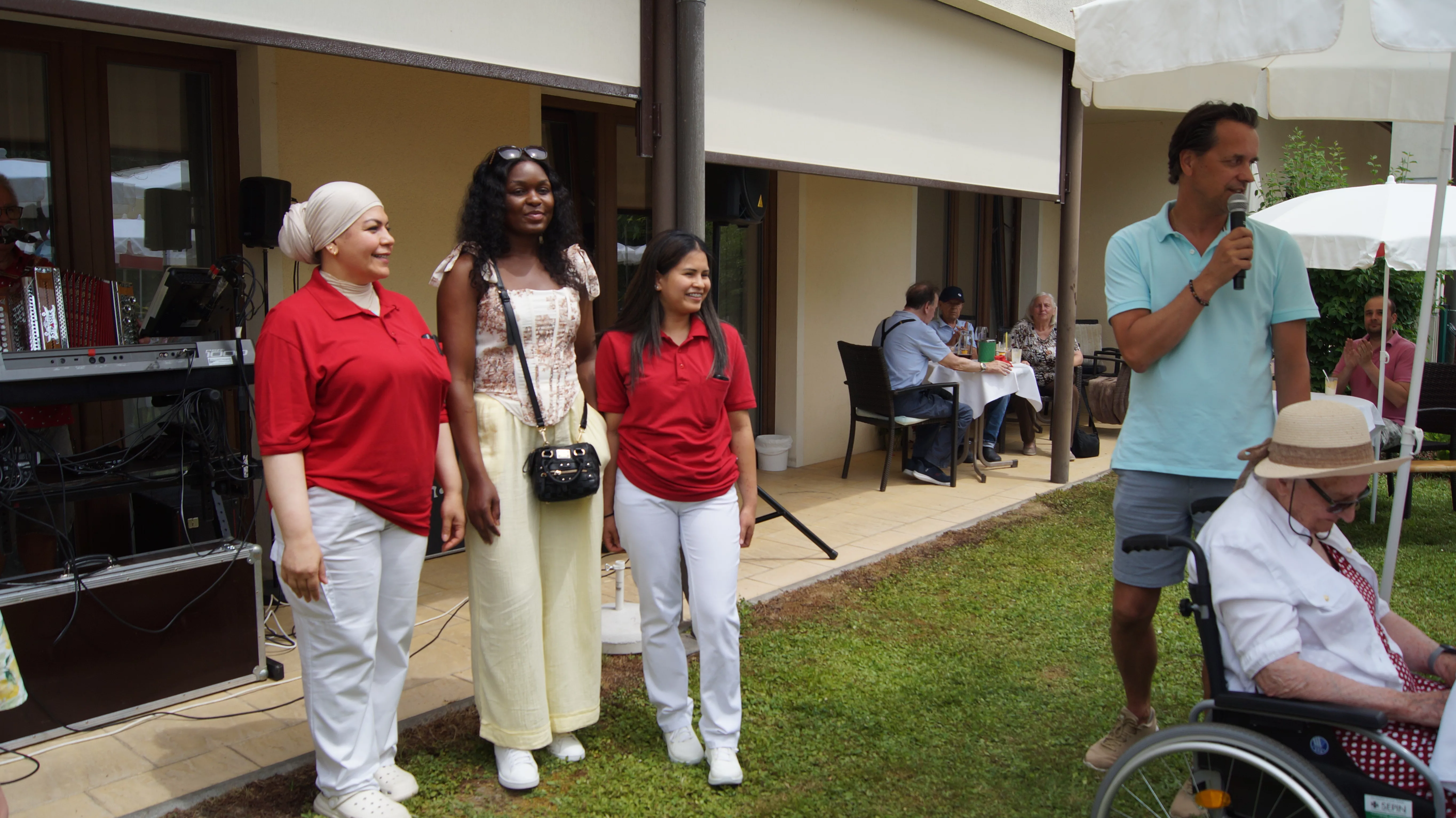 Ein besonderer Höhepunkt des Festes war die feierliche Ehrung von drei Mitarbeiterinnen, die eine Woche zuvor erfolgreich die Prüfung zur Pflegeassistentin (PA) abgelegt hatten.