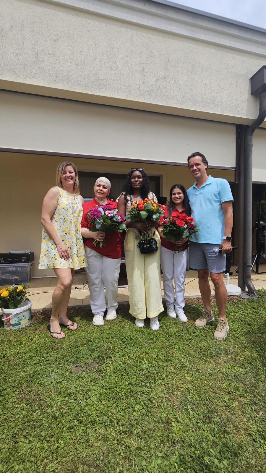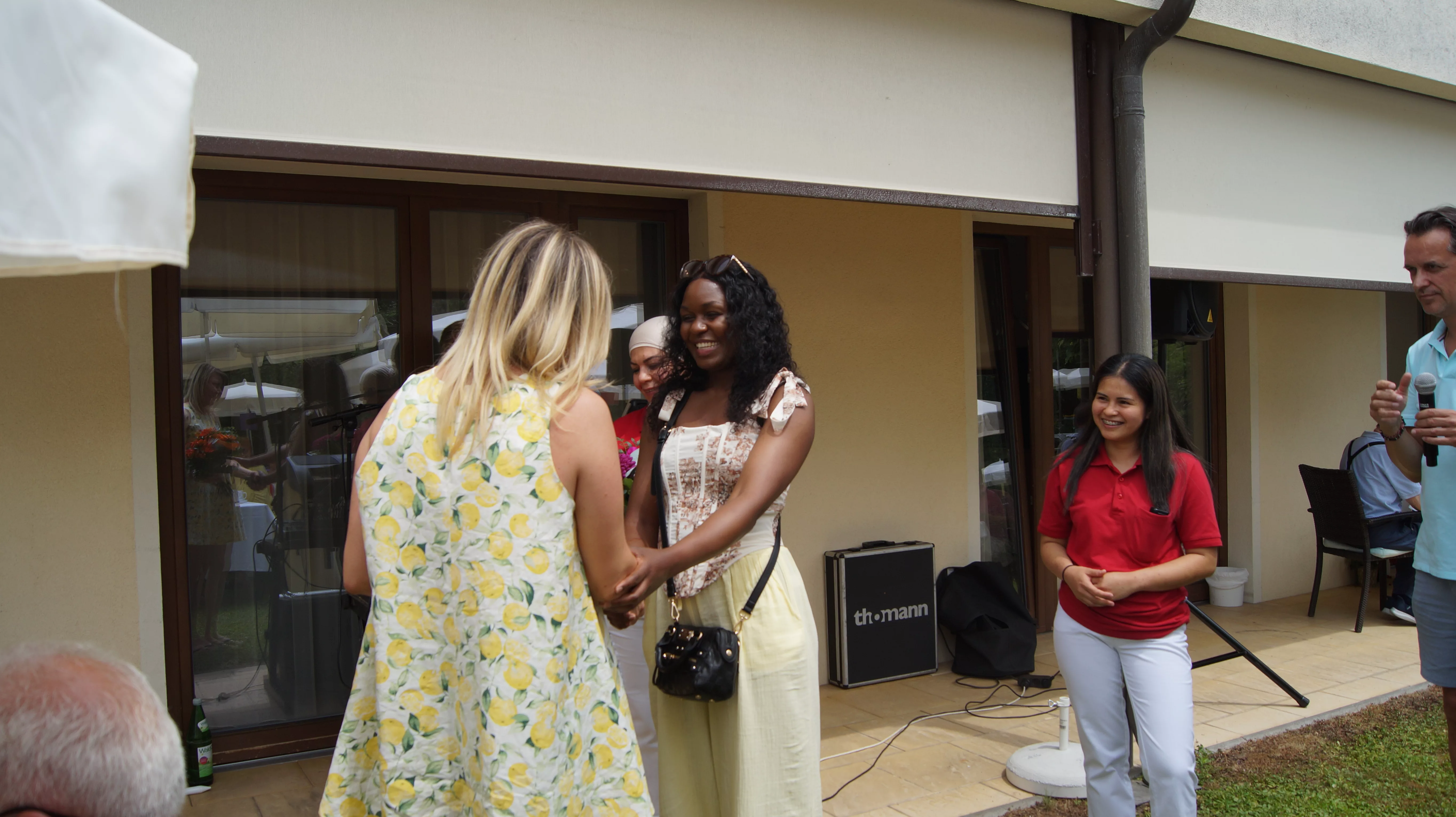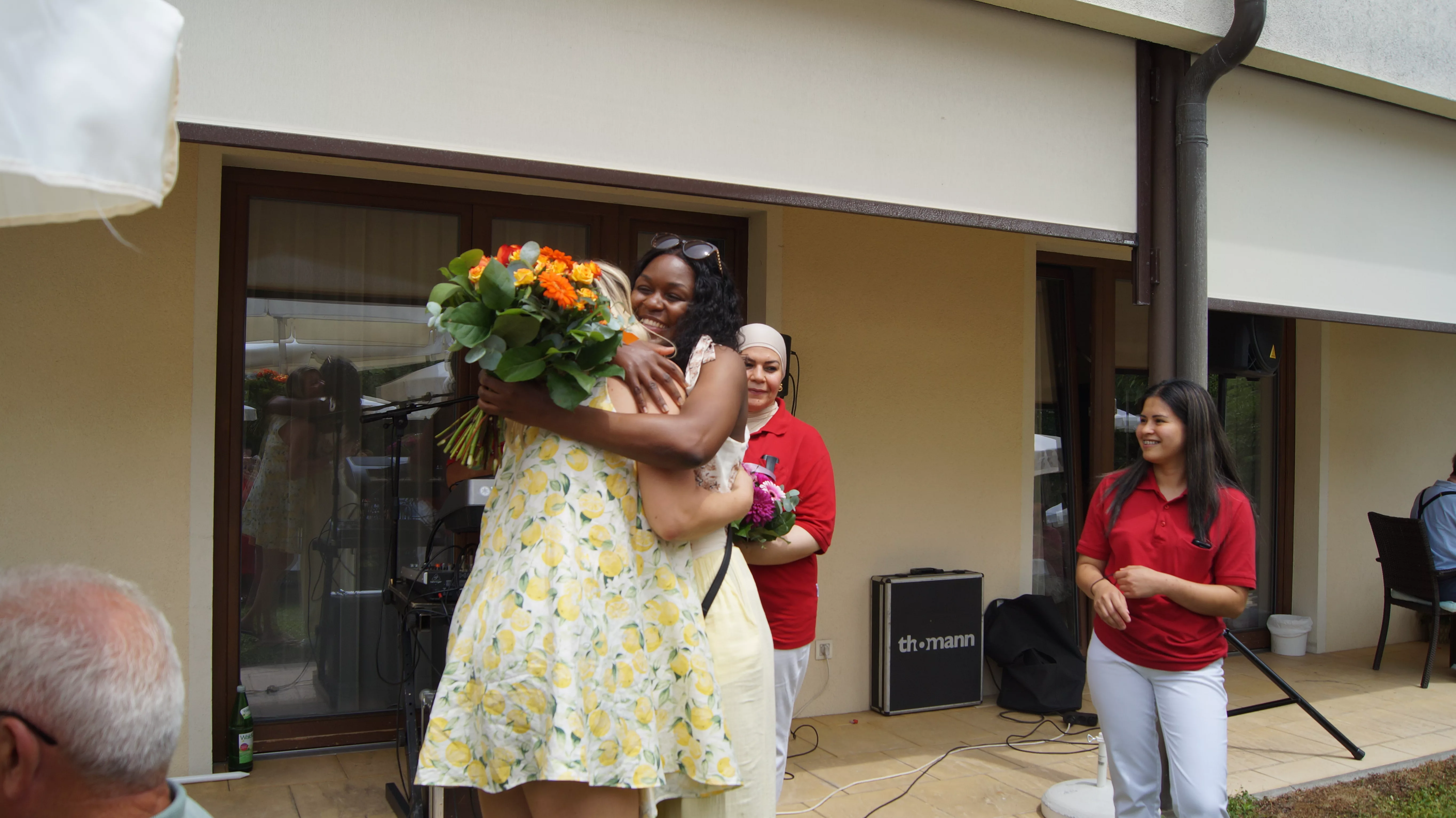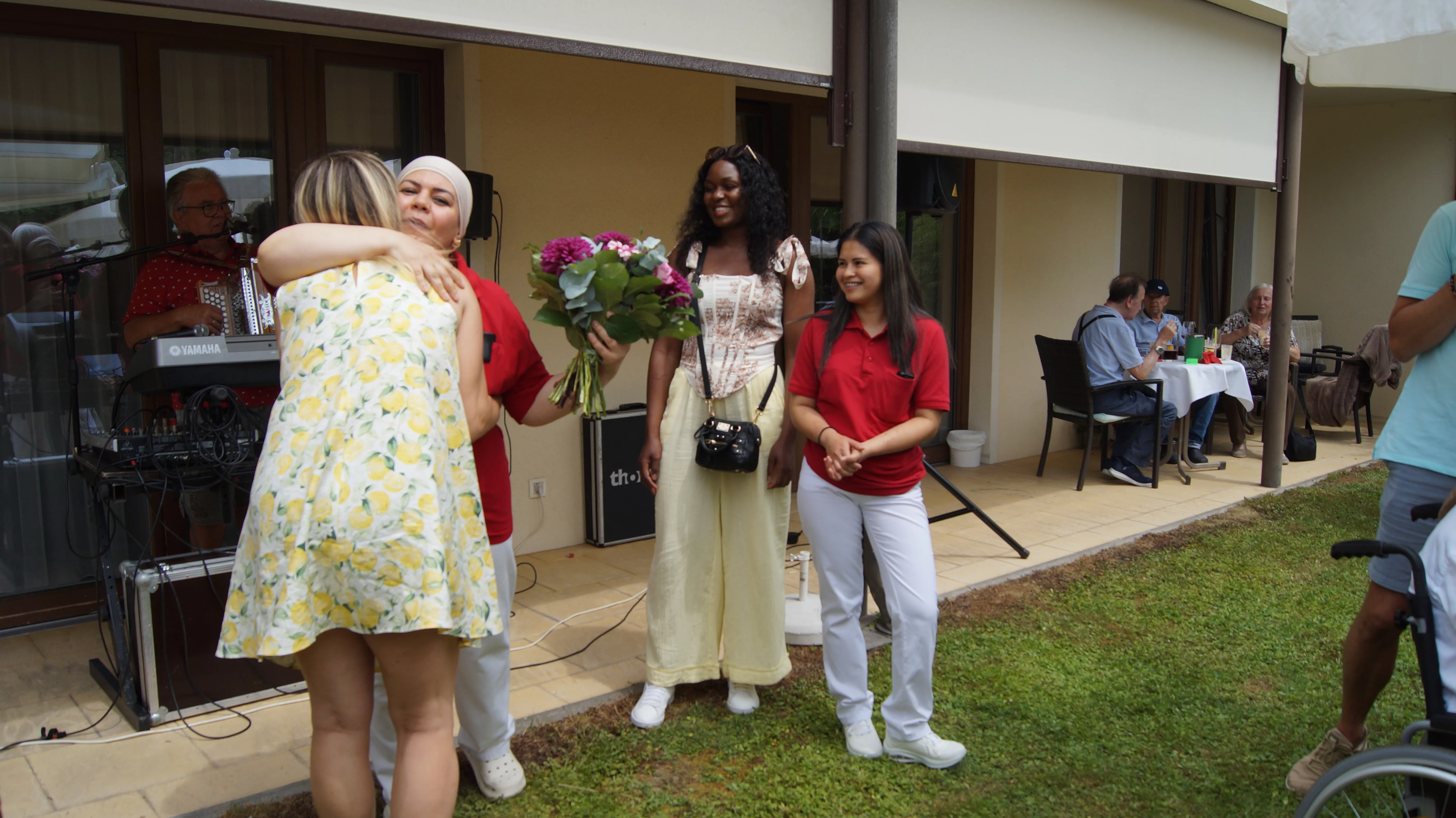 Ein besonderer Höhepunkt des Festes war die feierliche Ehrung von drei Mitarbeiterinnen, die eine Woche zuvor erfolgreich die Prüfung zur Pflegeassistentin (PA) abgelegt hatten.