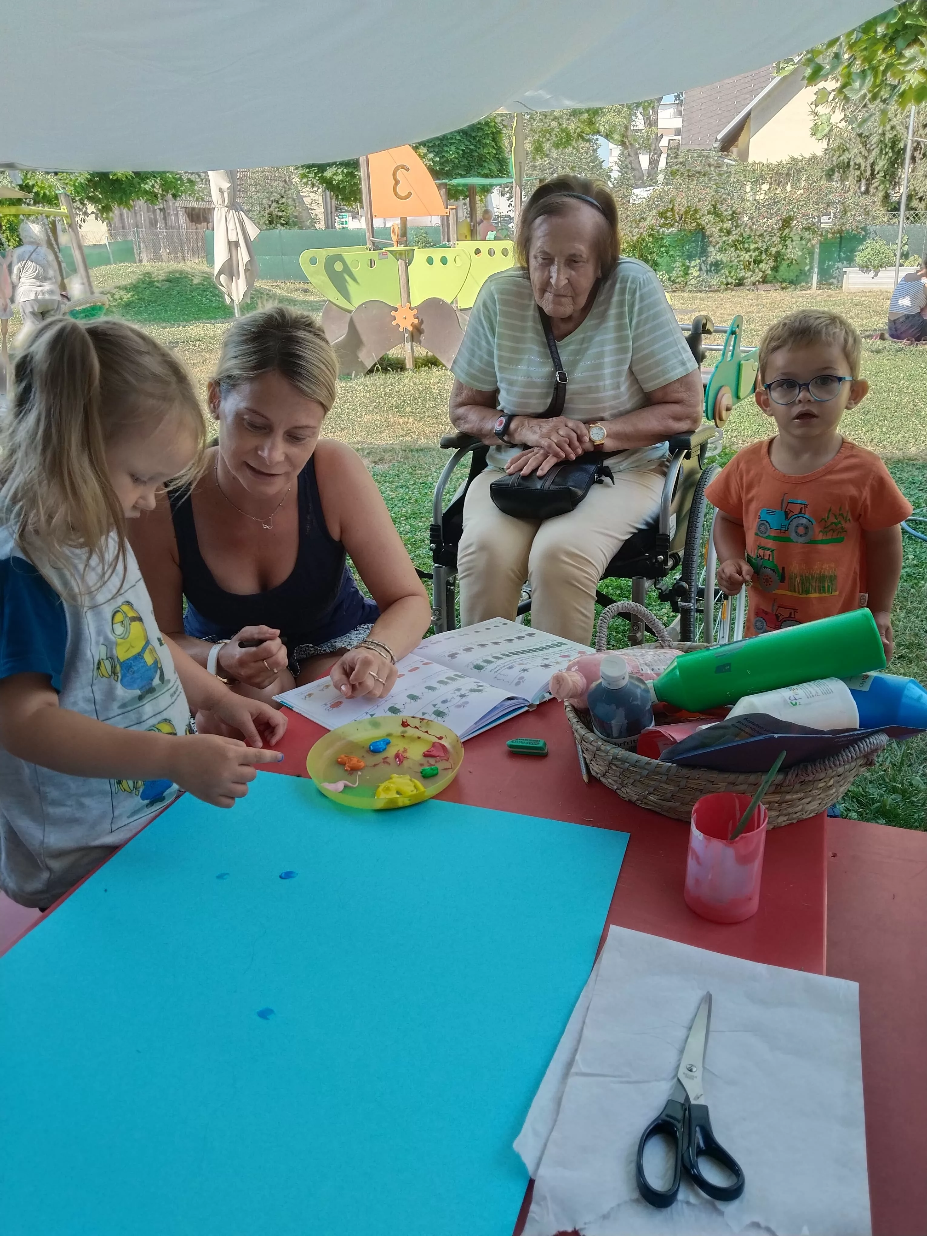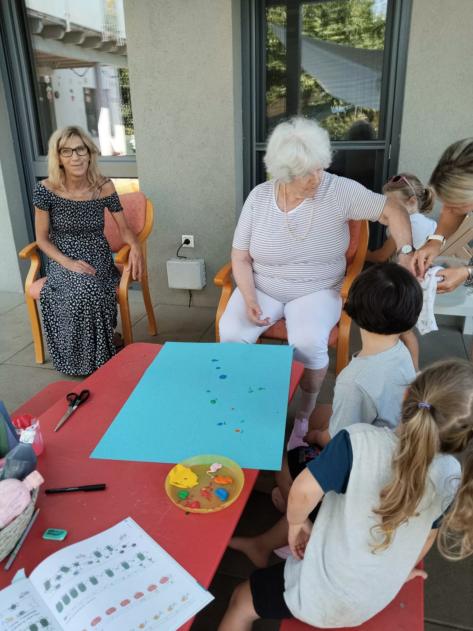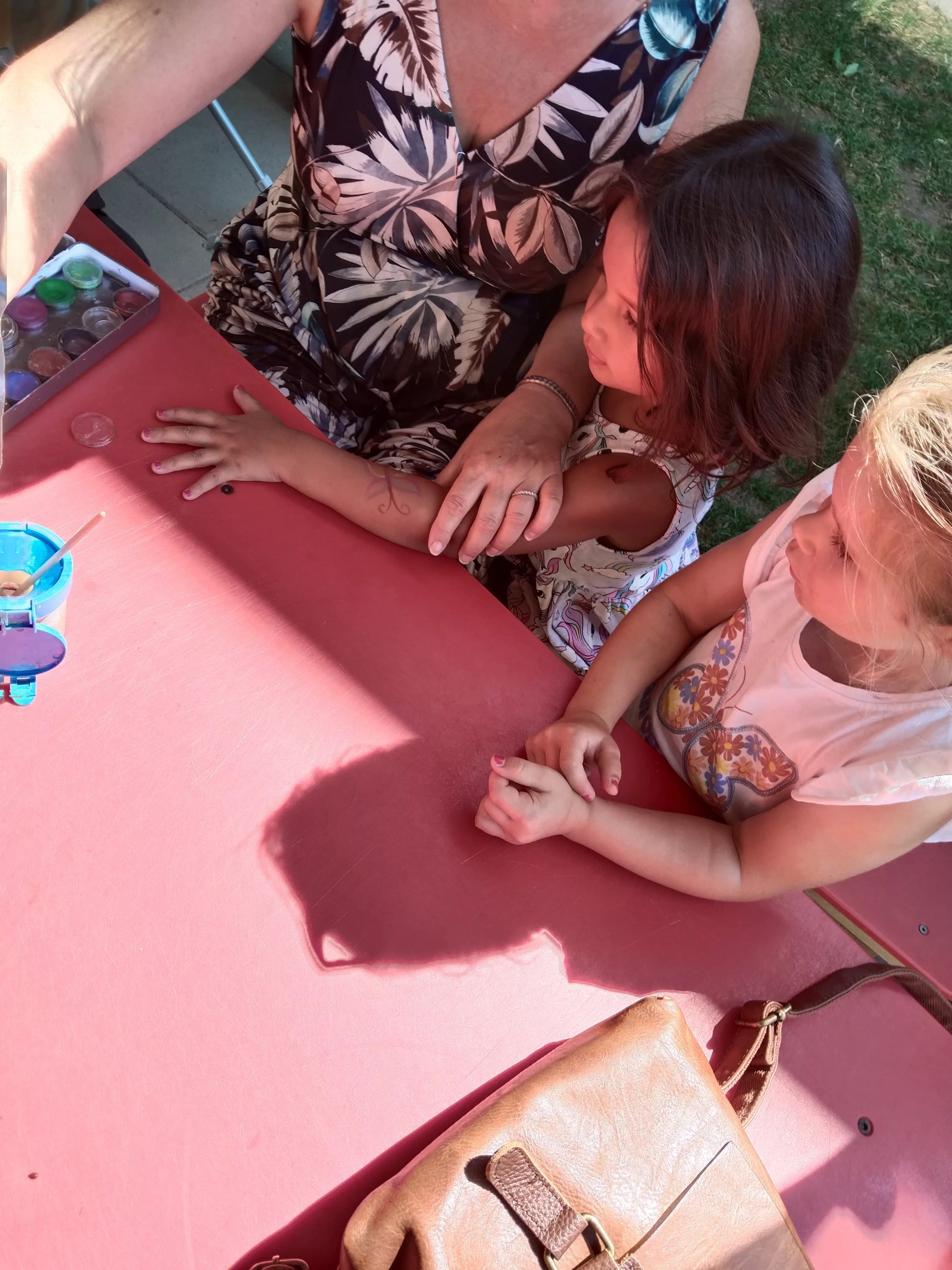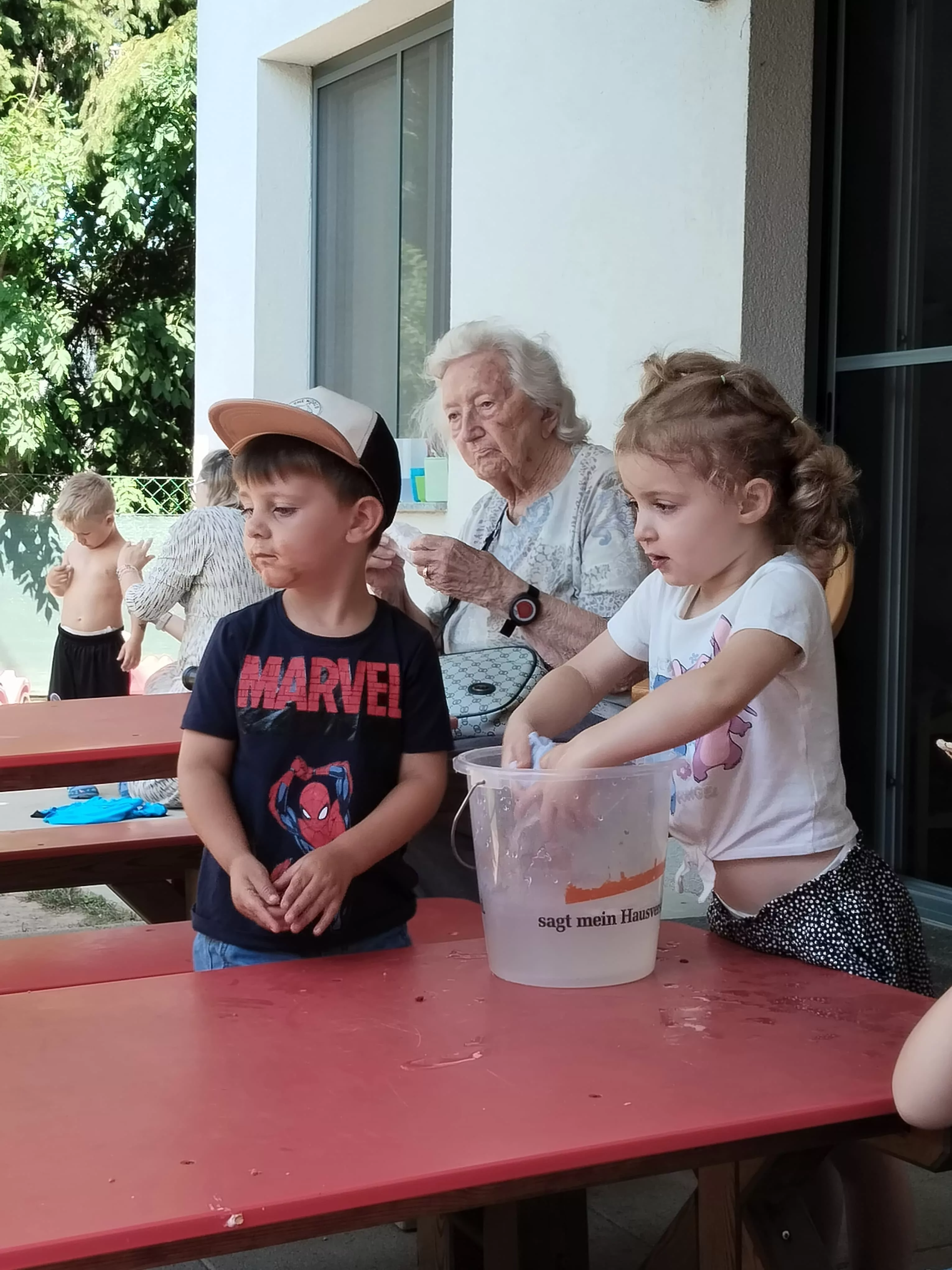 In einer Ecke wurde fleißig gemalt und der Kreativität freien Lauf gelassen. Auch mit der Bemalung von Händen und Gesichtern in bunten Farben wurde für Abwechslung gesorgt und den Kindern viel Freude bereitet. In der anderen Ecke wurde für eine spielerische Abkühlung gesorgt.