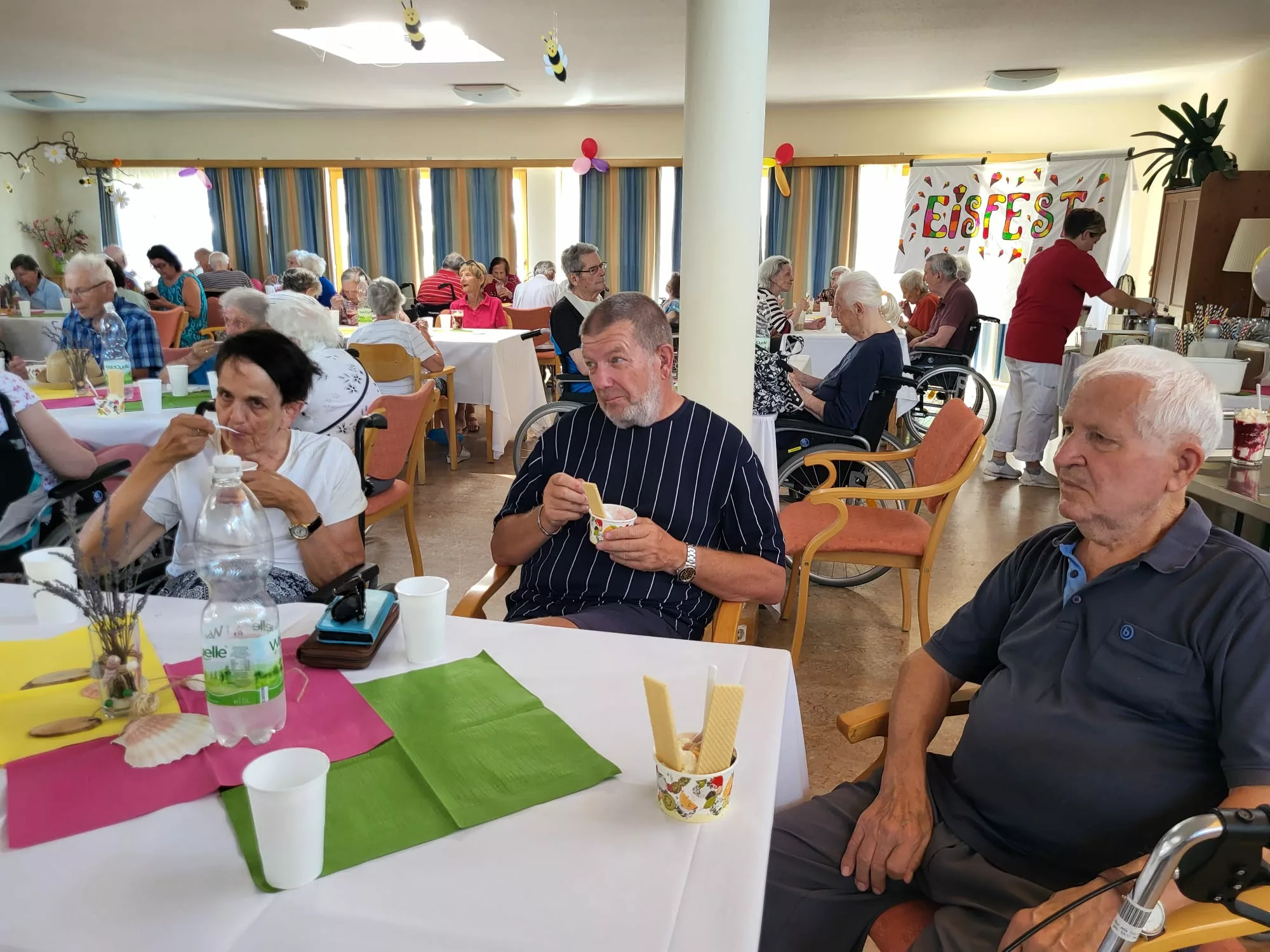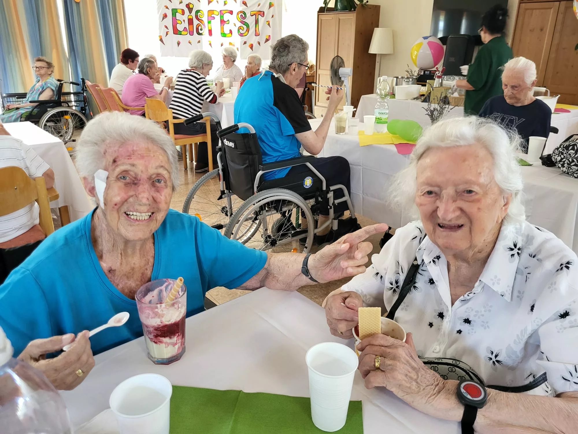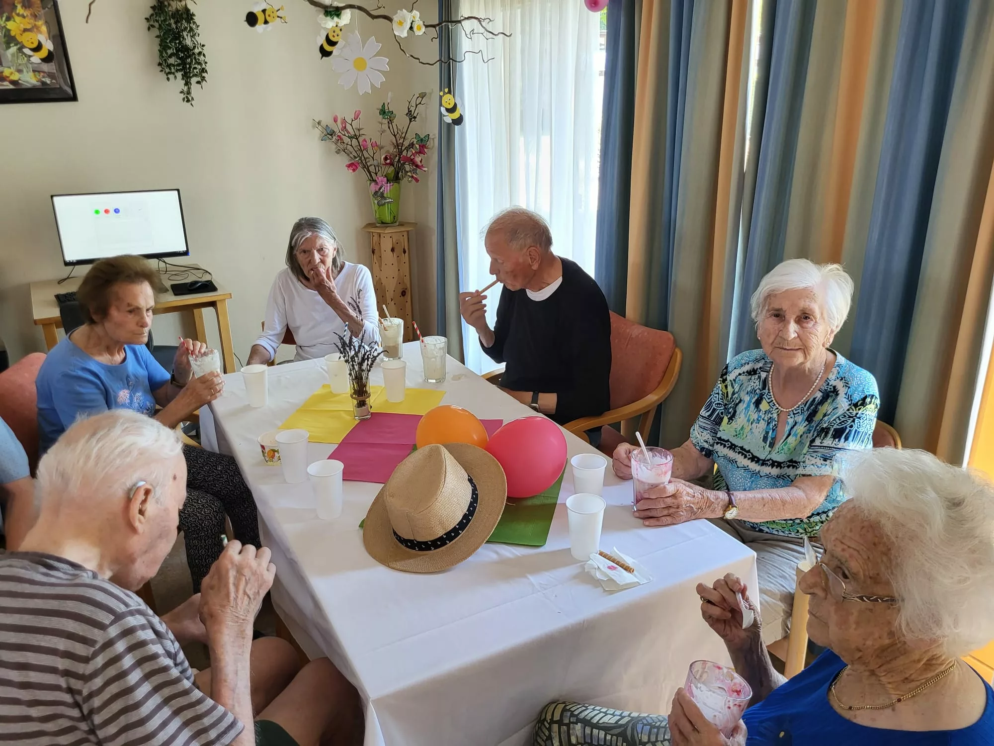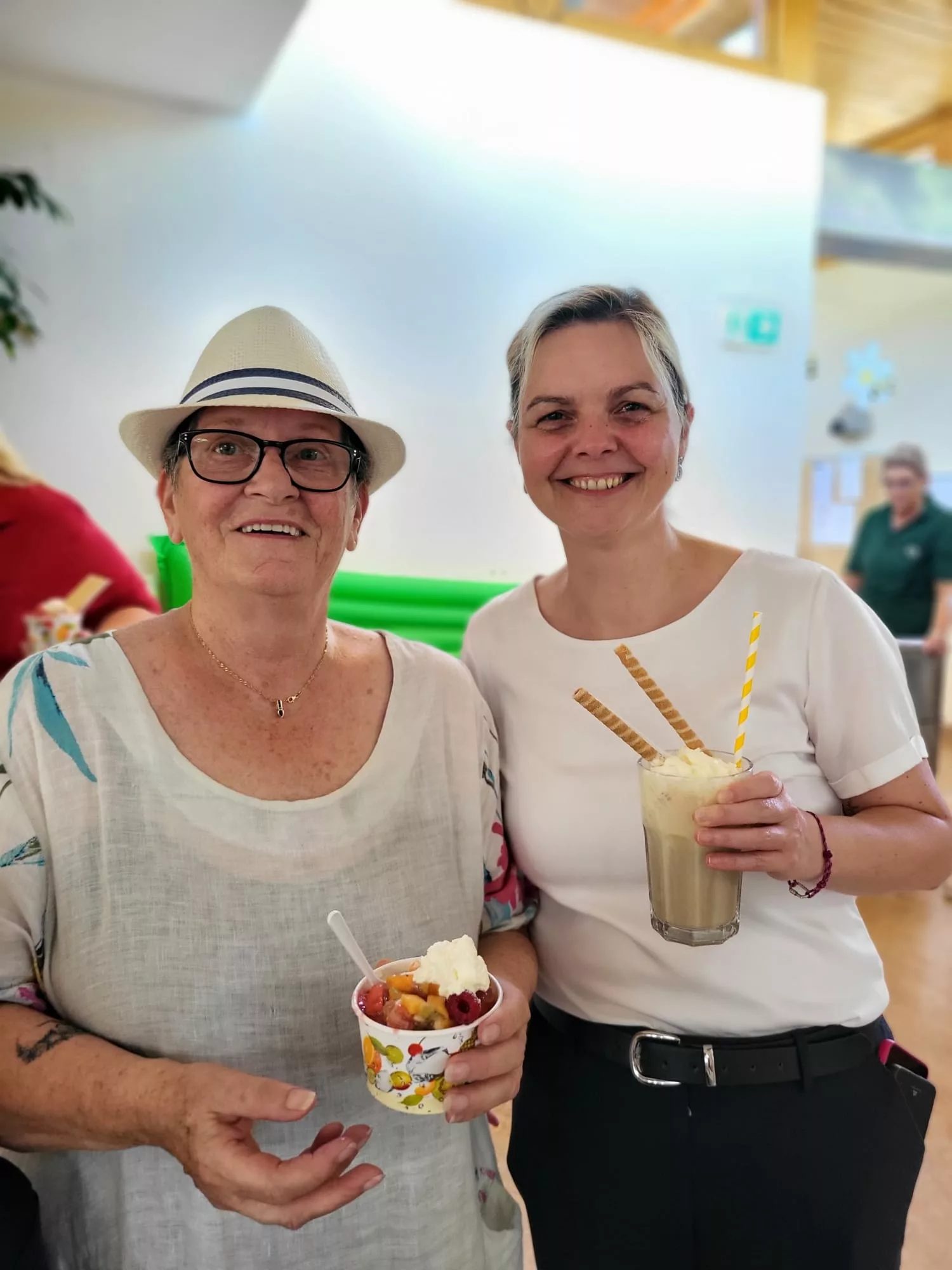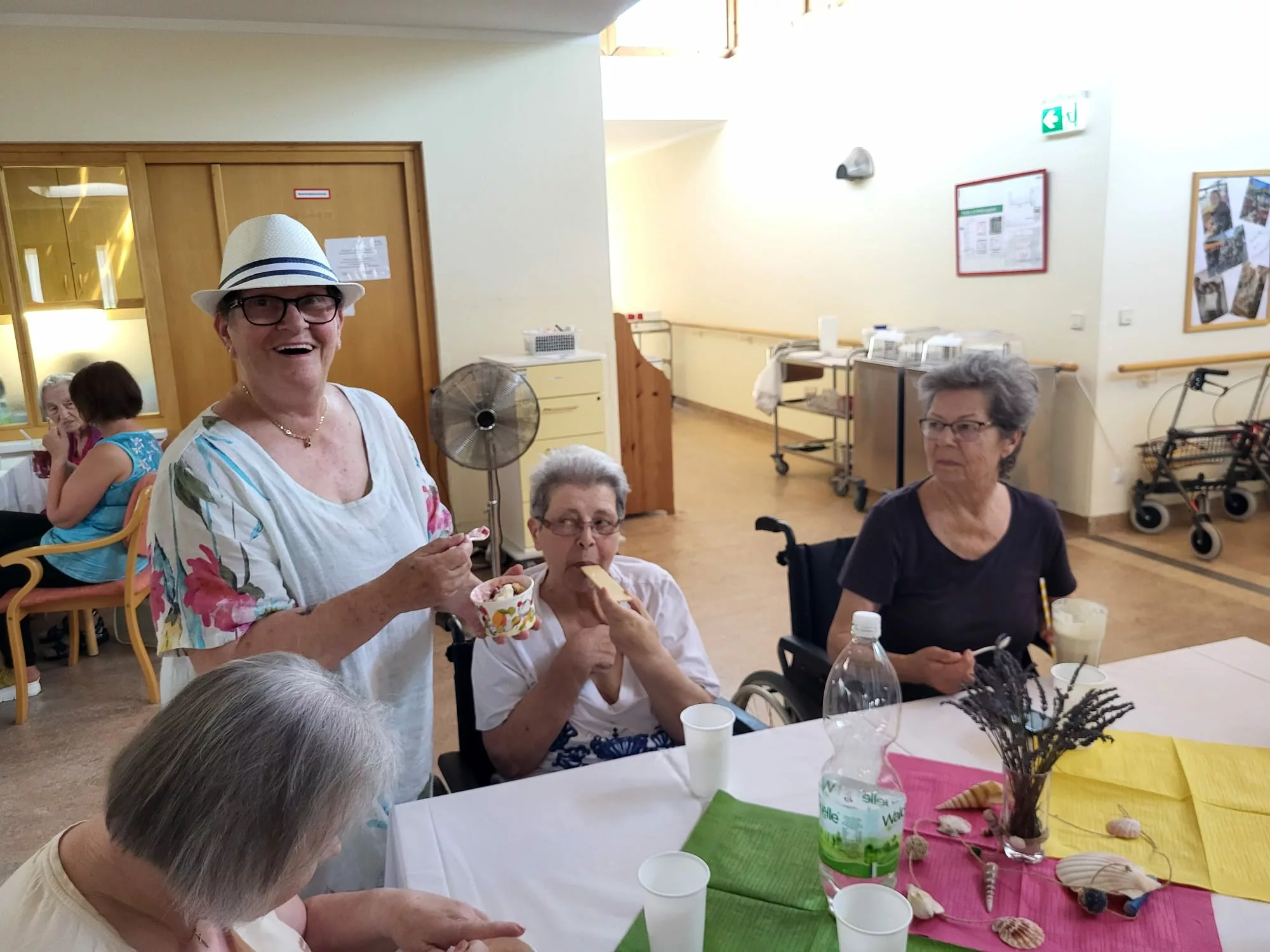 Für unsere Bewohner und Bewohnerinnen wurden liebevoll leckere Eisbecher zubereitet, ob Eiskaffee oder bunte Früchtebecher, für jeden Geschmack war etwas dabei.