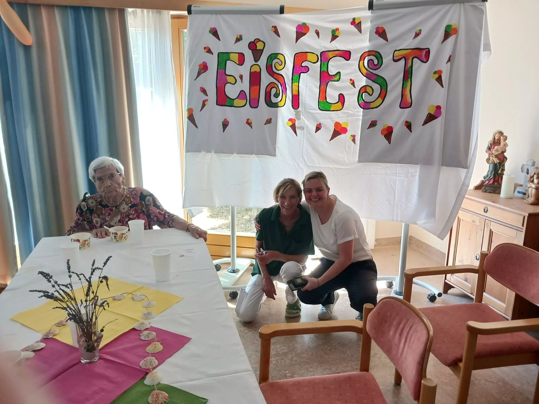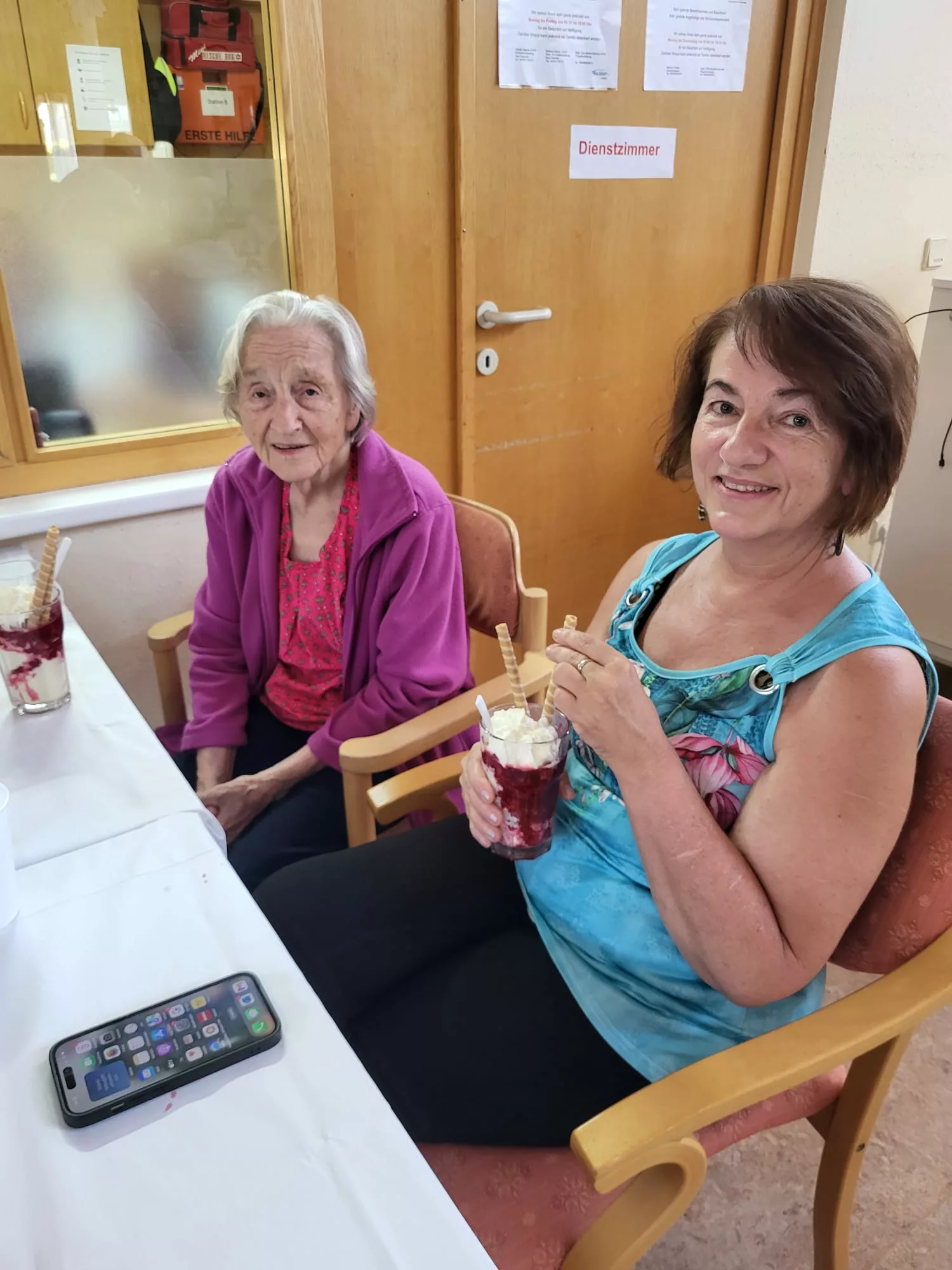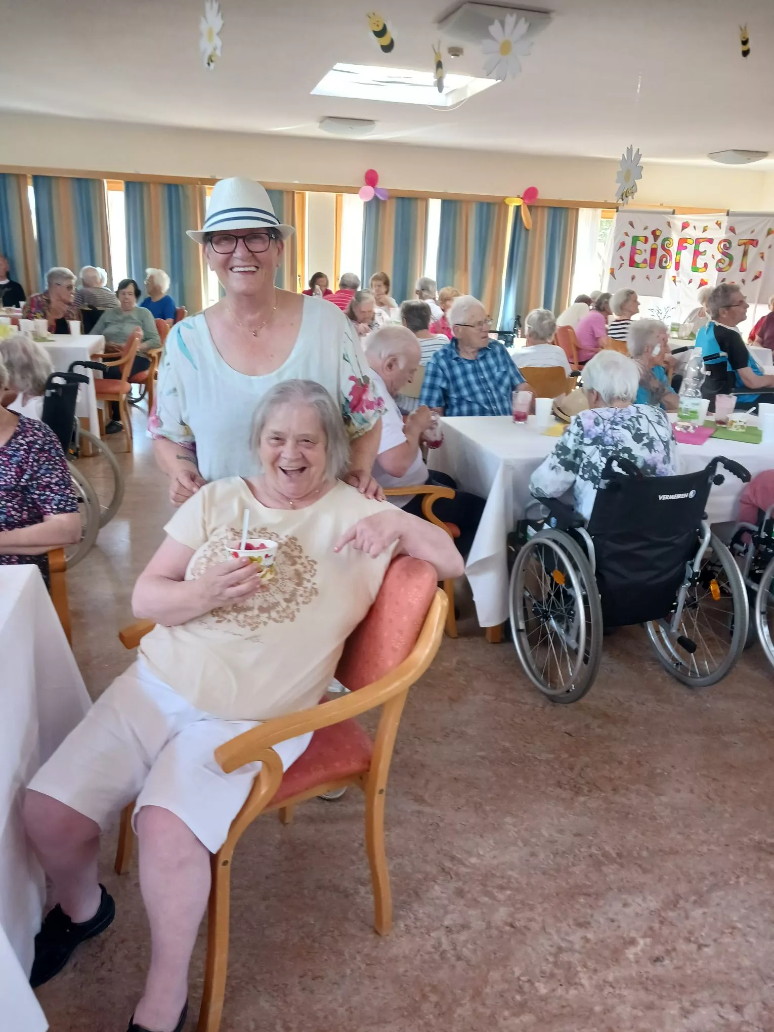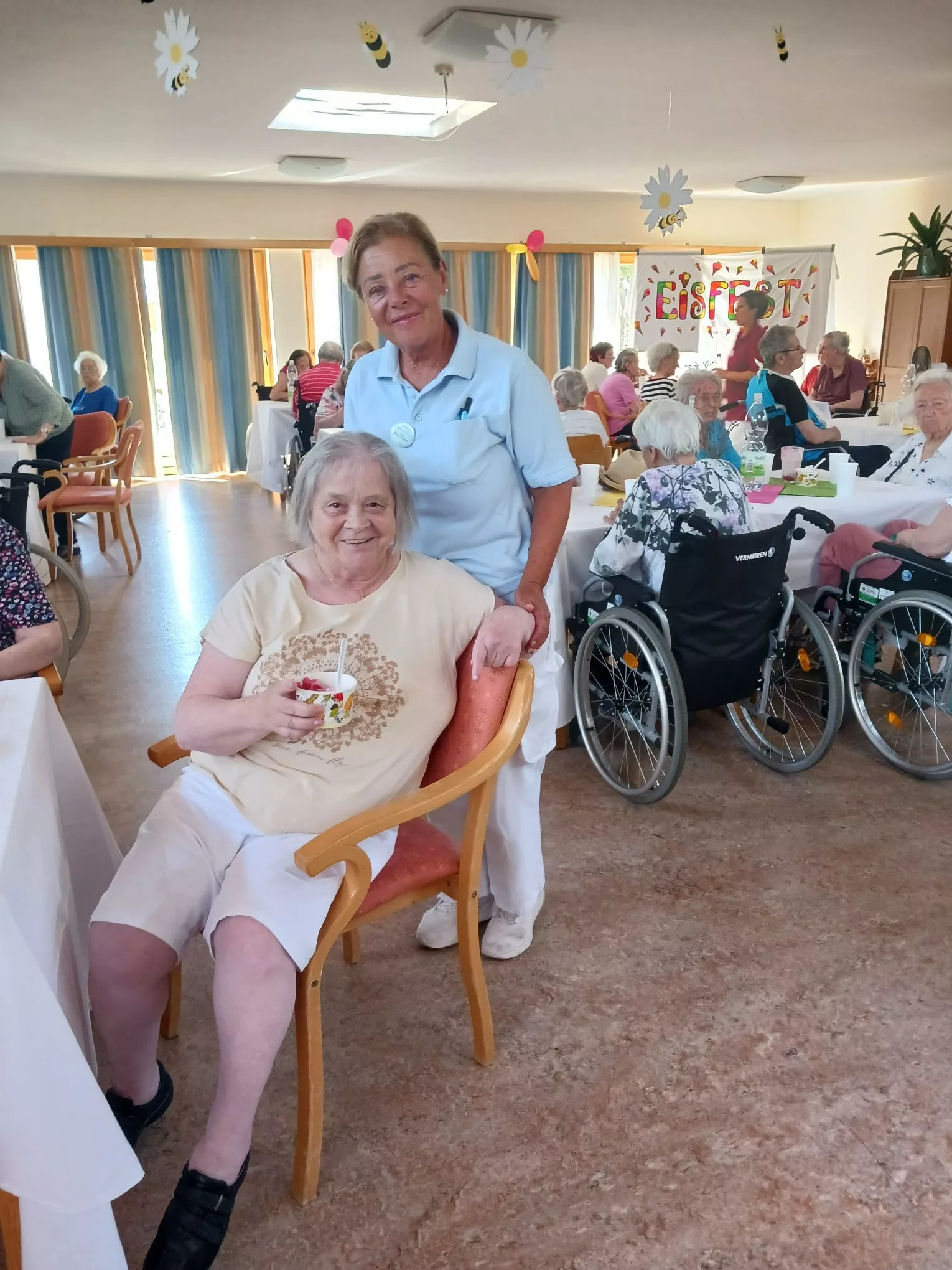 Für unsere Bewohner und Bewohnerinnen wurden liebevoll leckere Eisbecher zubereitet, ob Eiskaffee oder bunte Früchtebecher, für jeden Geschmack war etwas dabei.