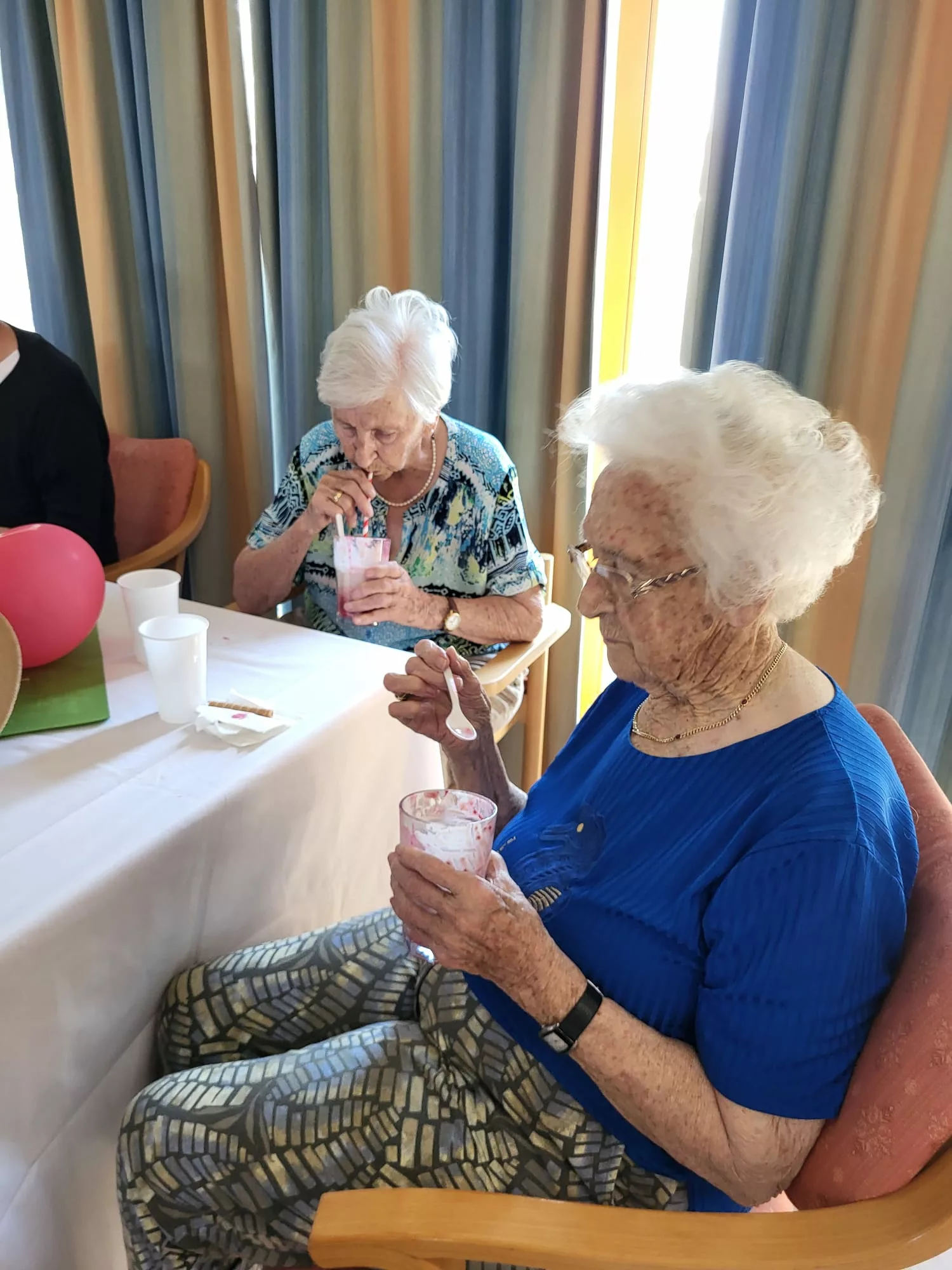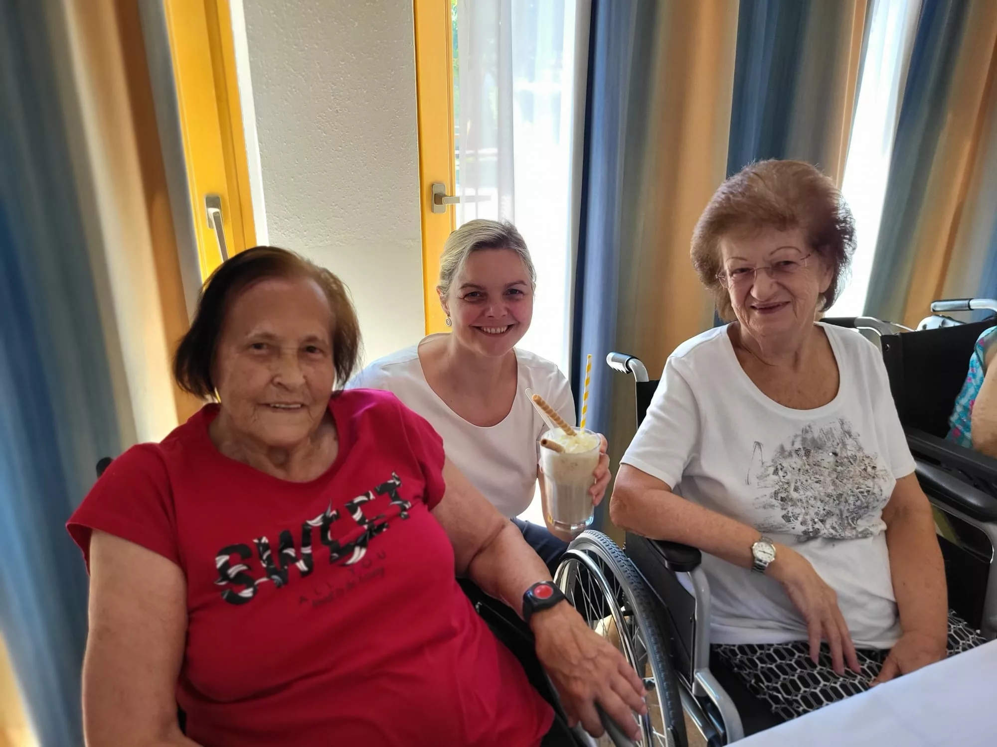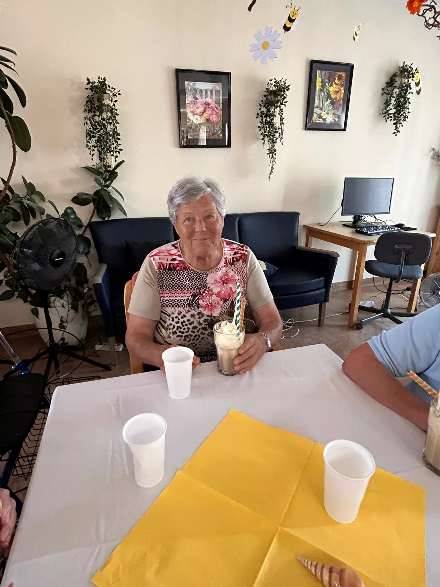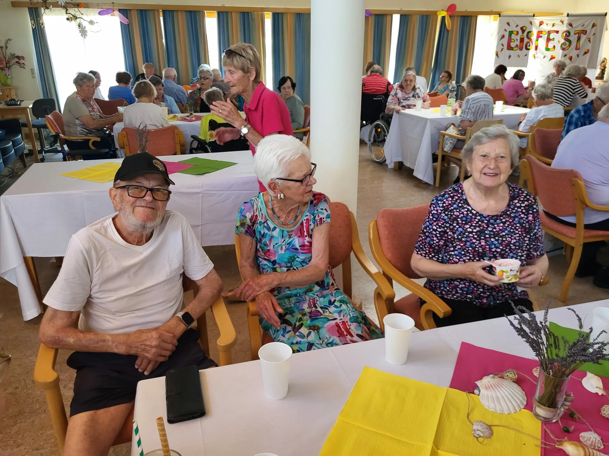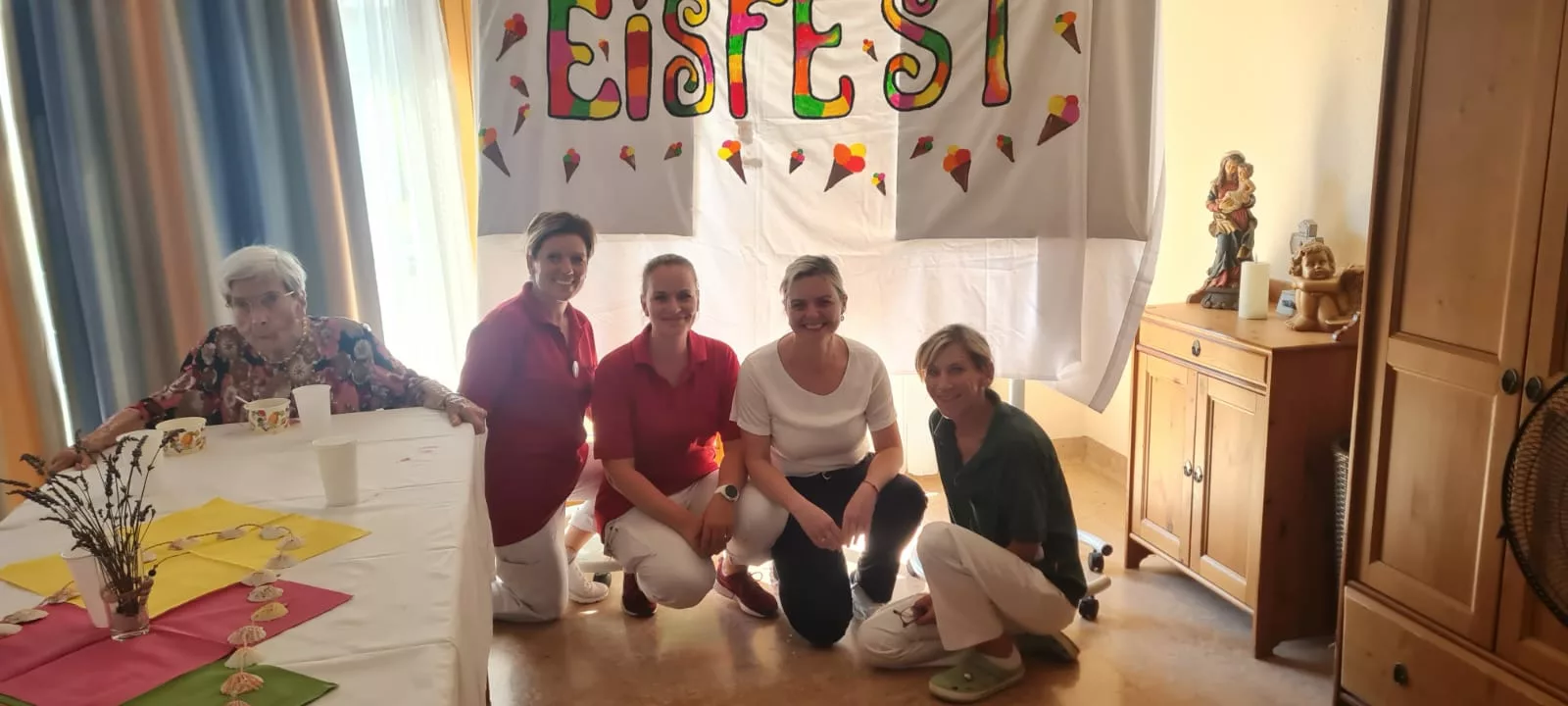 Für unsere Bewohner und Bewohnerinnen wurden liebevoll leckere Eisbecher zubereitet, ob Eiskaffee oder bunte Früchtebecher, für jeden Geschmack war etwas dabei.