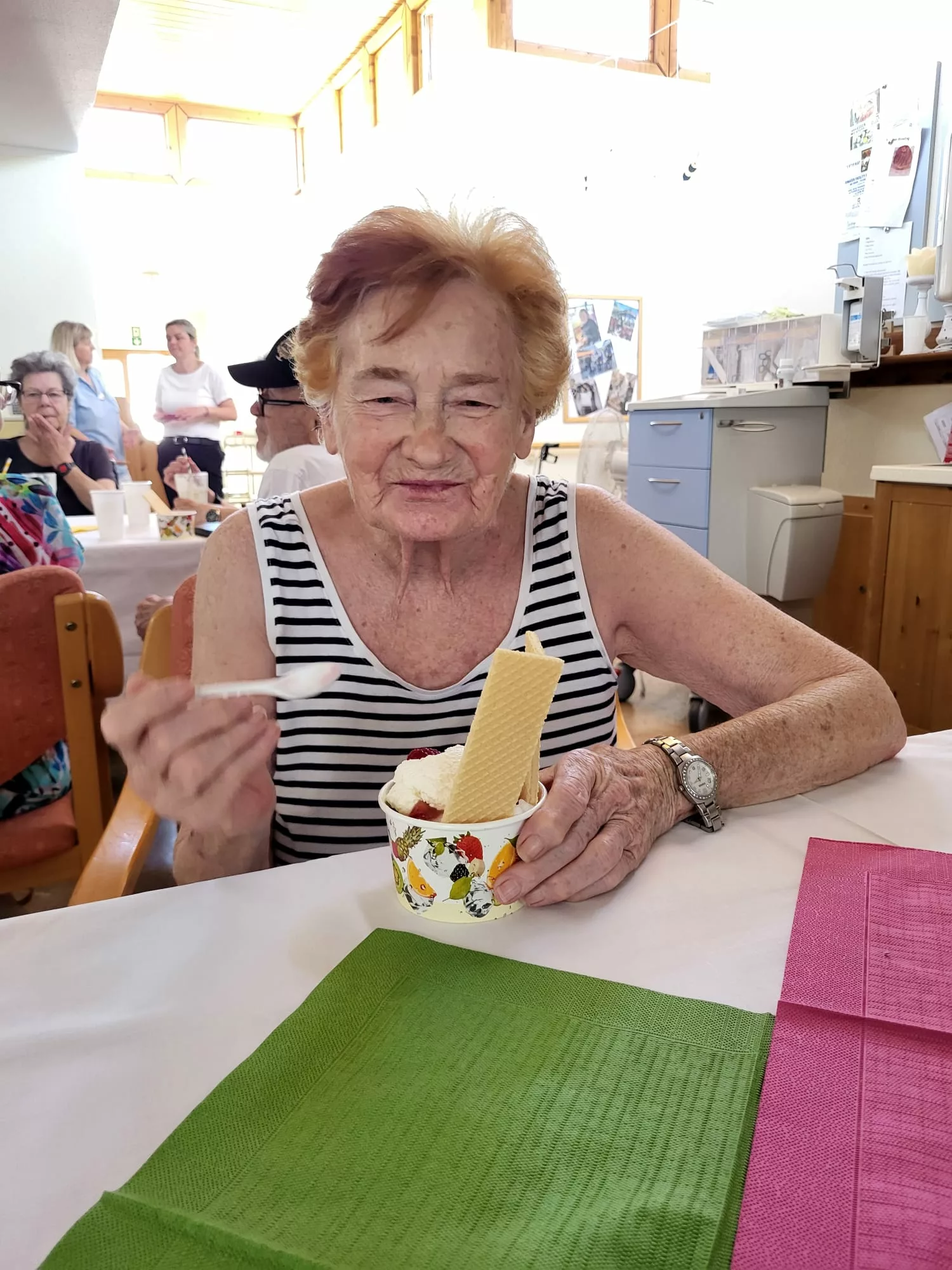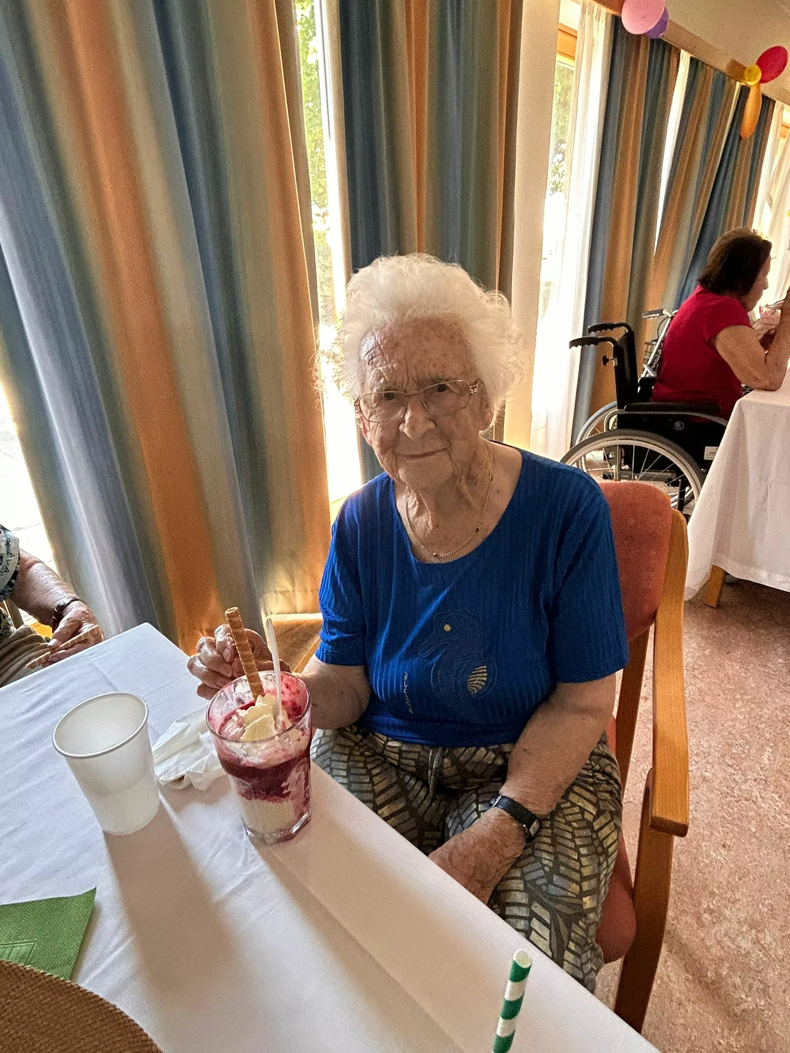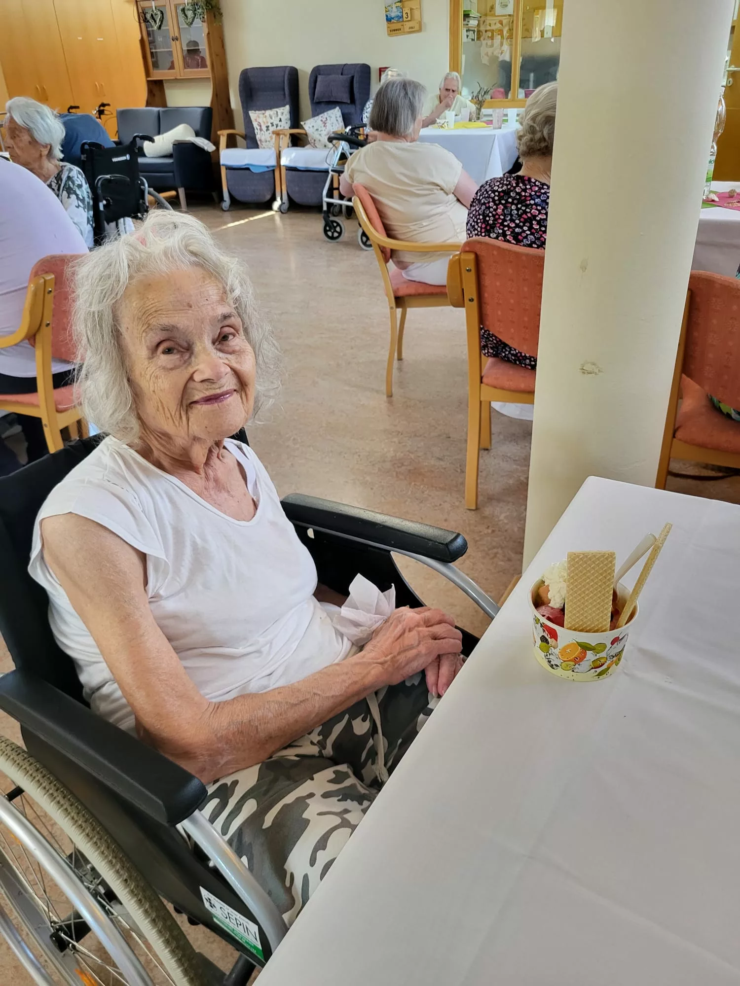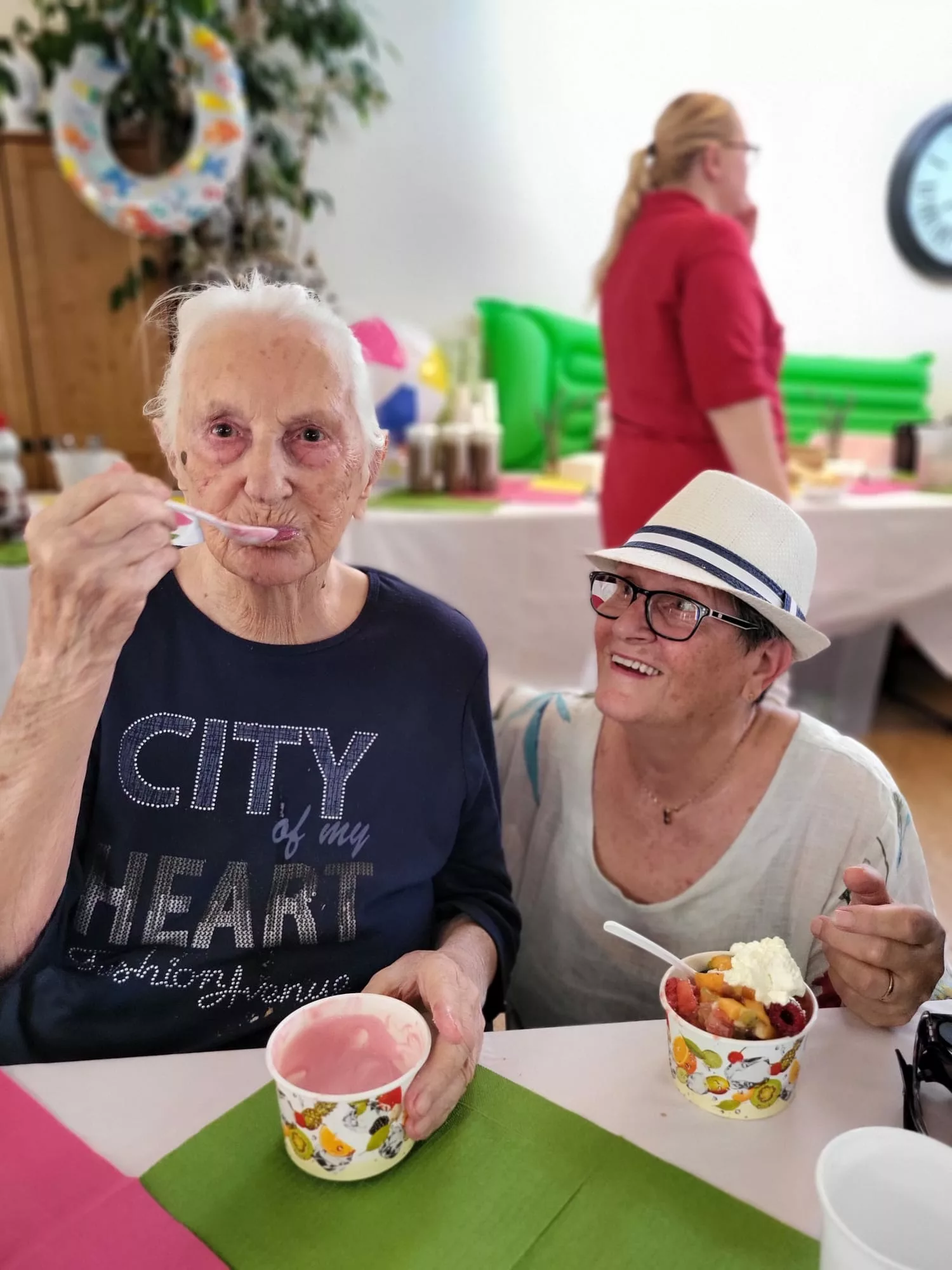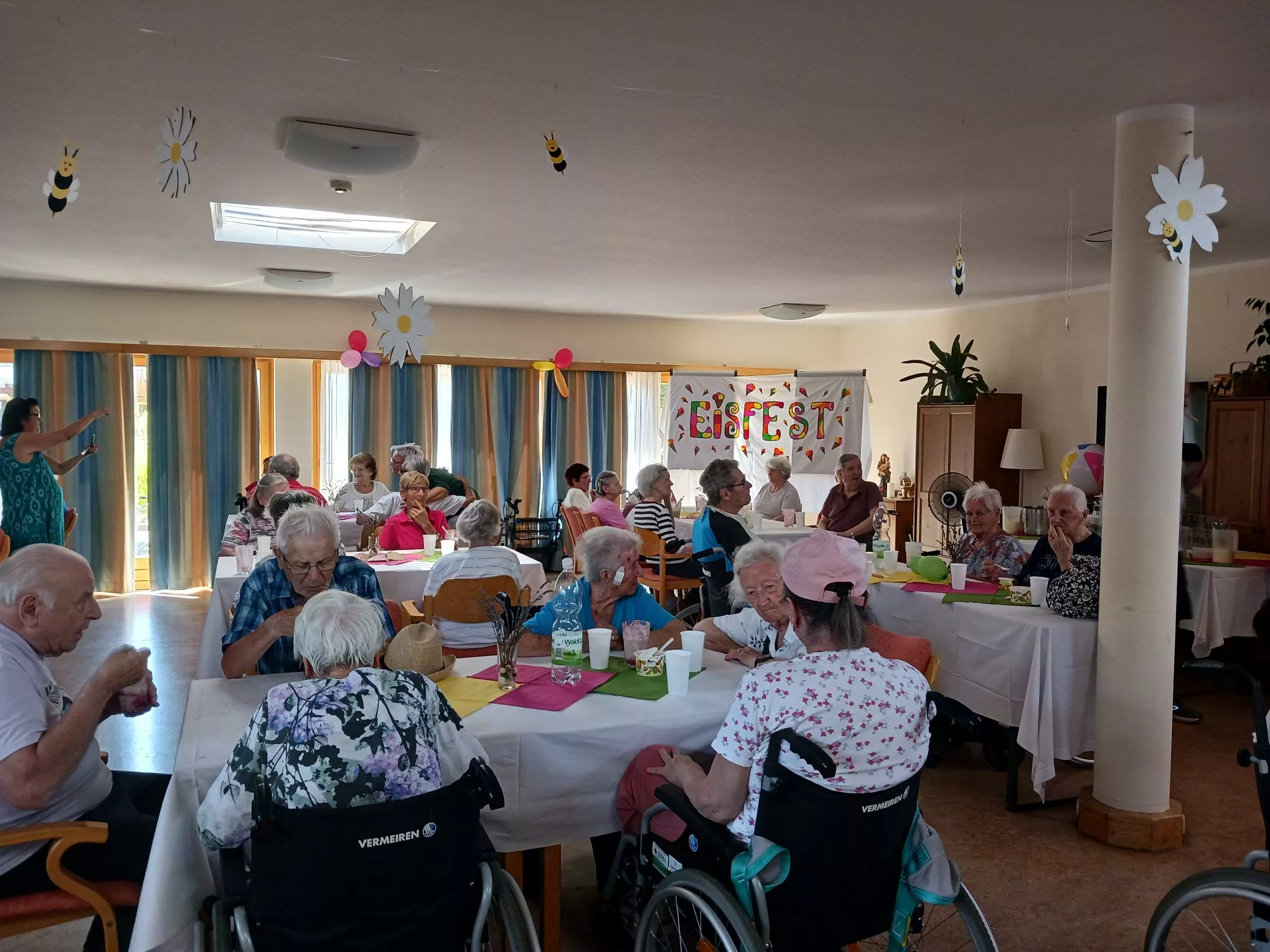 Für unsere Bewohner und Bewohnerinnen wurden liebevoll leckere Eisbecher zubereitet, ob Eiskaffee oder bunte Früchtebecher, für jeden Geschmack war etwas dabei.