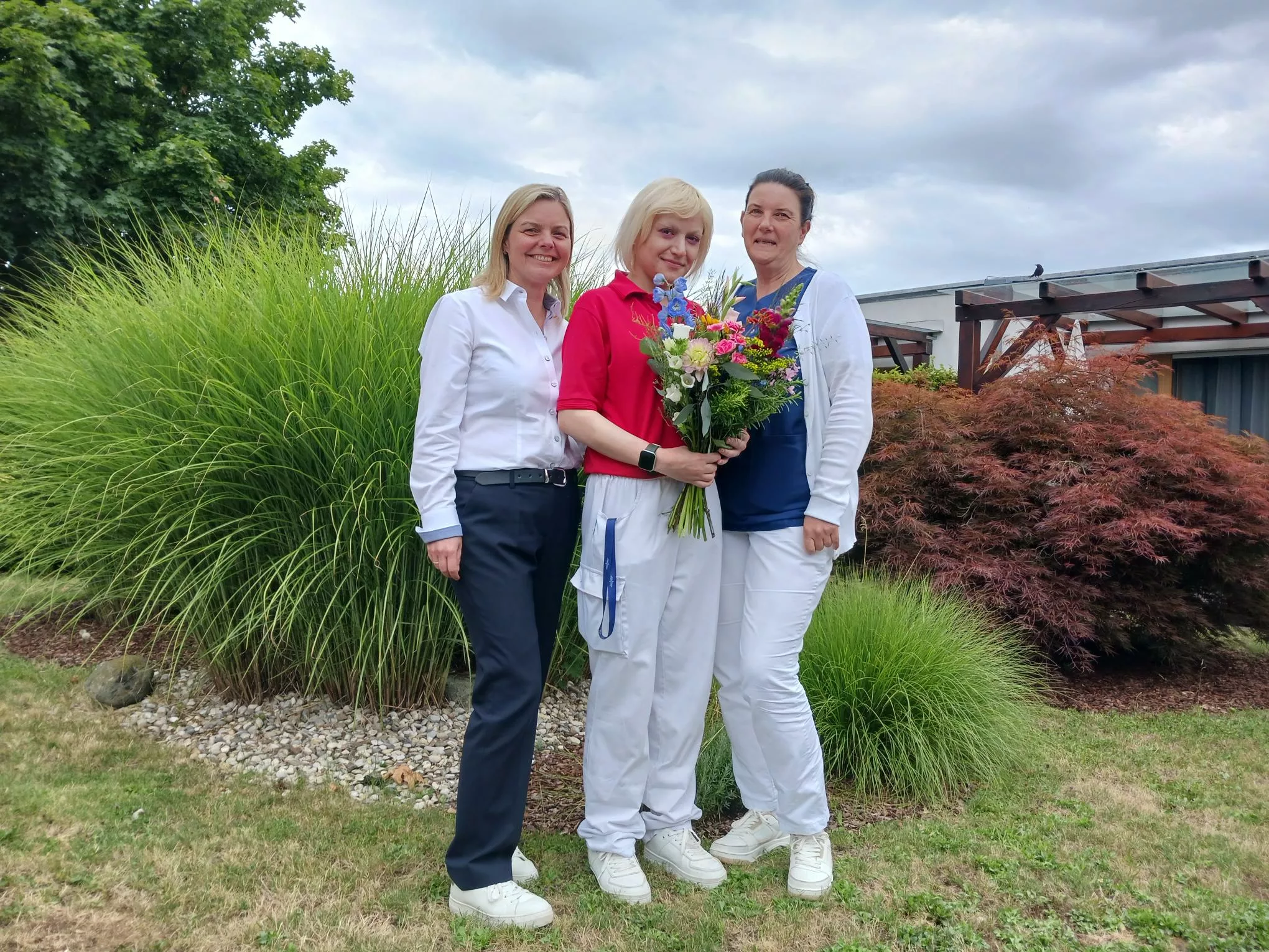 Als kleines Zeichen unserer Wertschätzung wurde ihr ein Blumenstrauß überreicht. Wir freuen uns auf die weiterhin gute und vertrauensvolle Zusammenarbeit!