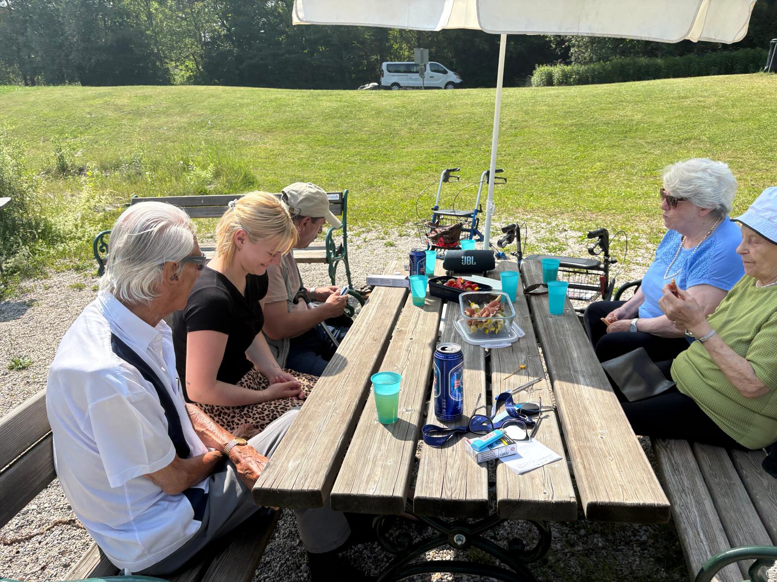 Bei traumhaftem Sommerwetter verbrachten wir einen entspannten Nachmittag mit Kartenspielen, angeregten Gesprächen und vielen schönen Momenten in der Natur. Dank Angelinas Einsatz wurde dieser Tag zu einem rundum gelungenen Erlebnis, das allen noch lange in Erinnerung bleiben wird.