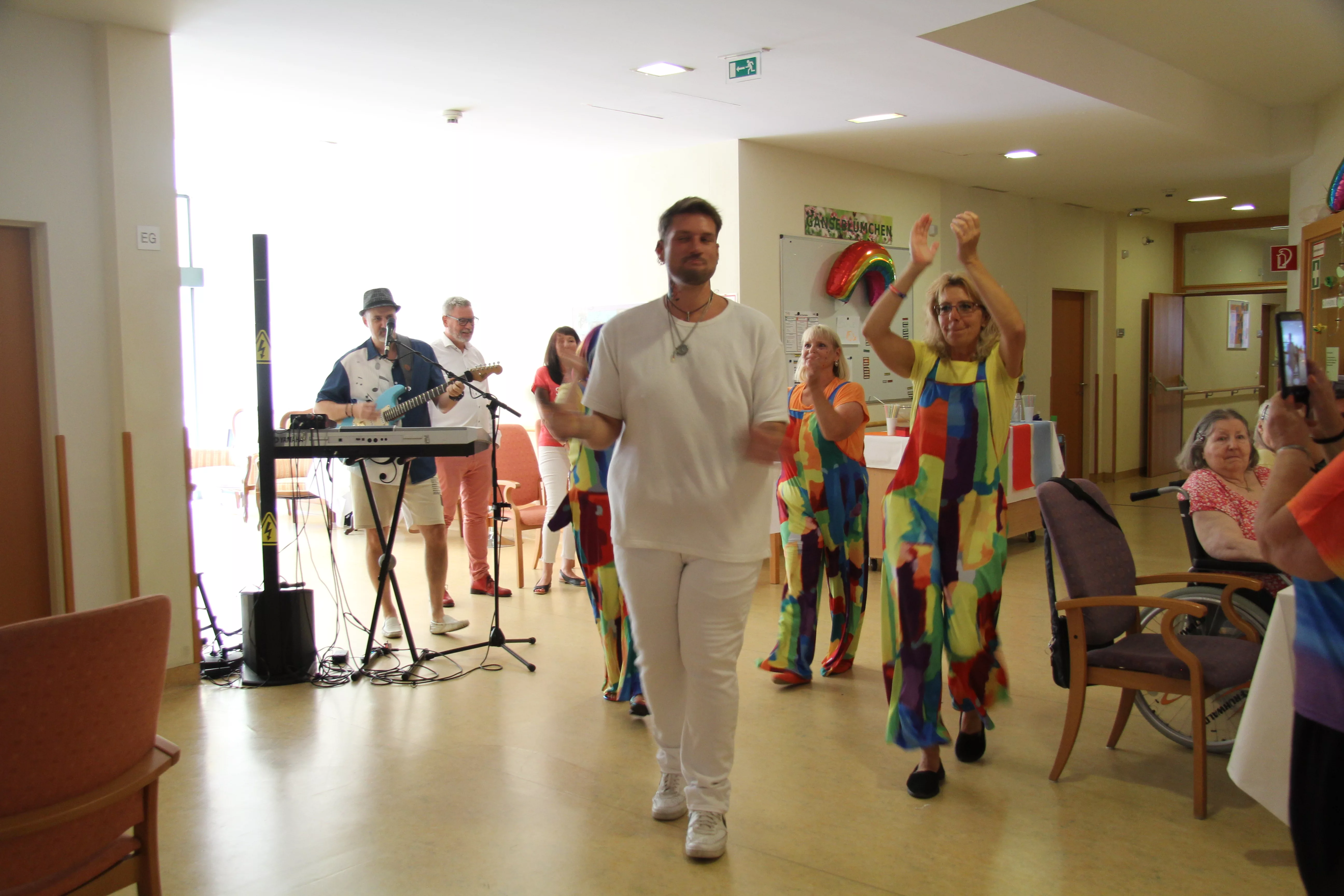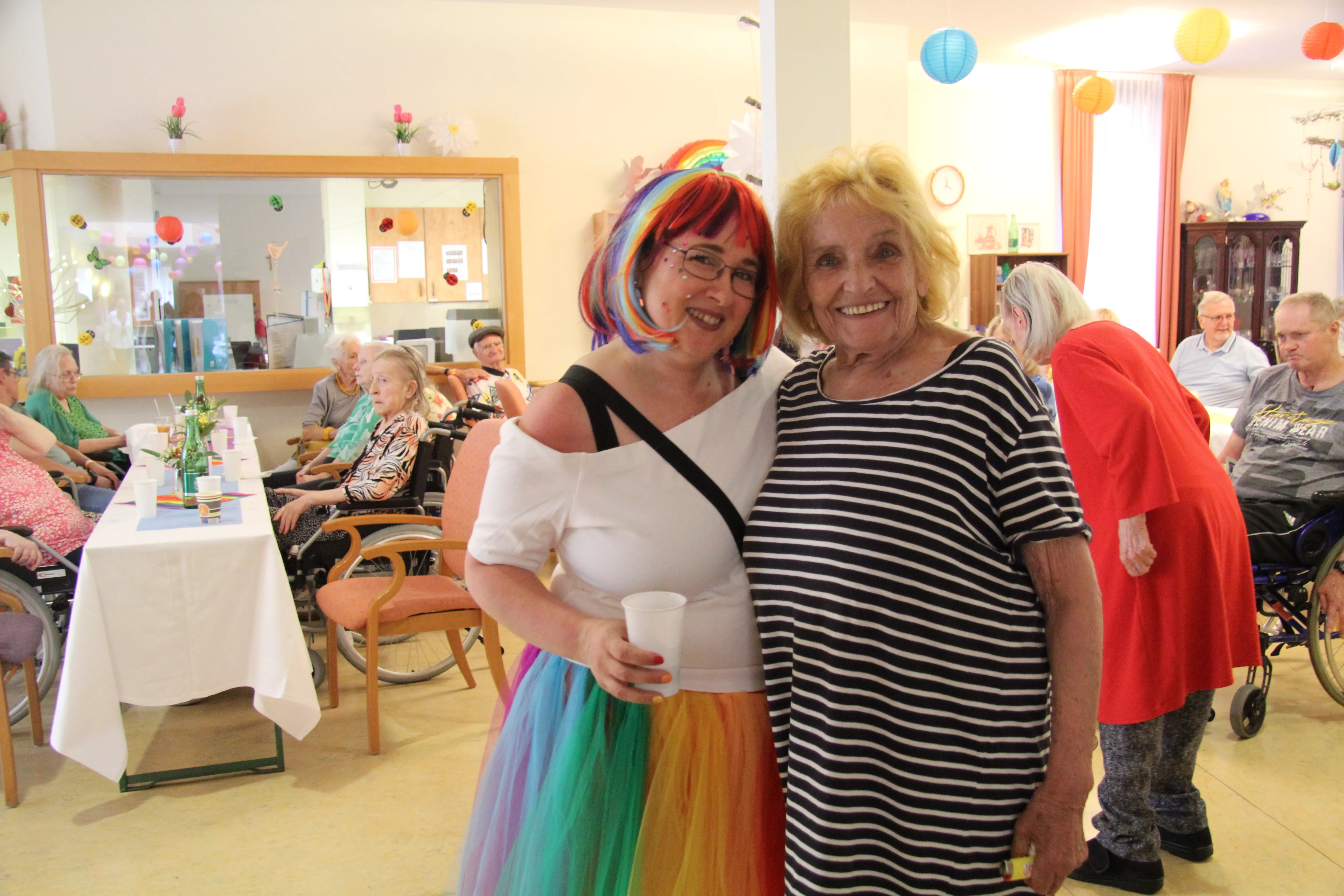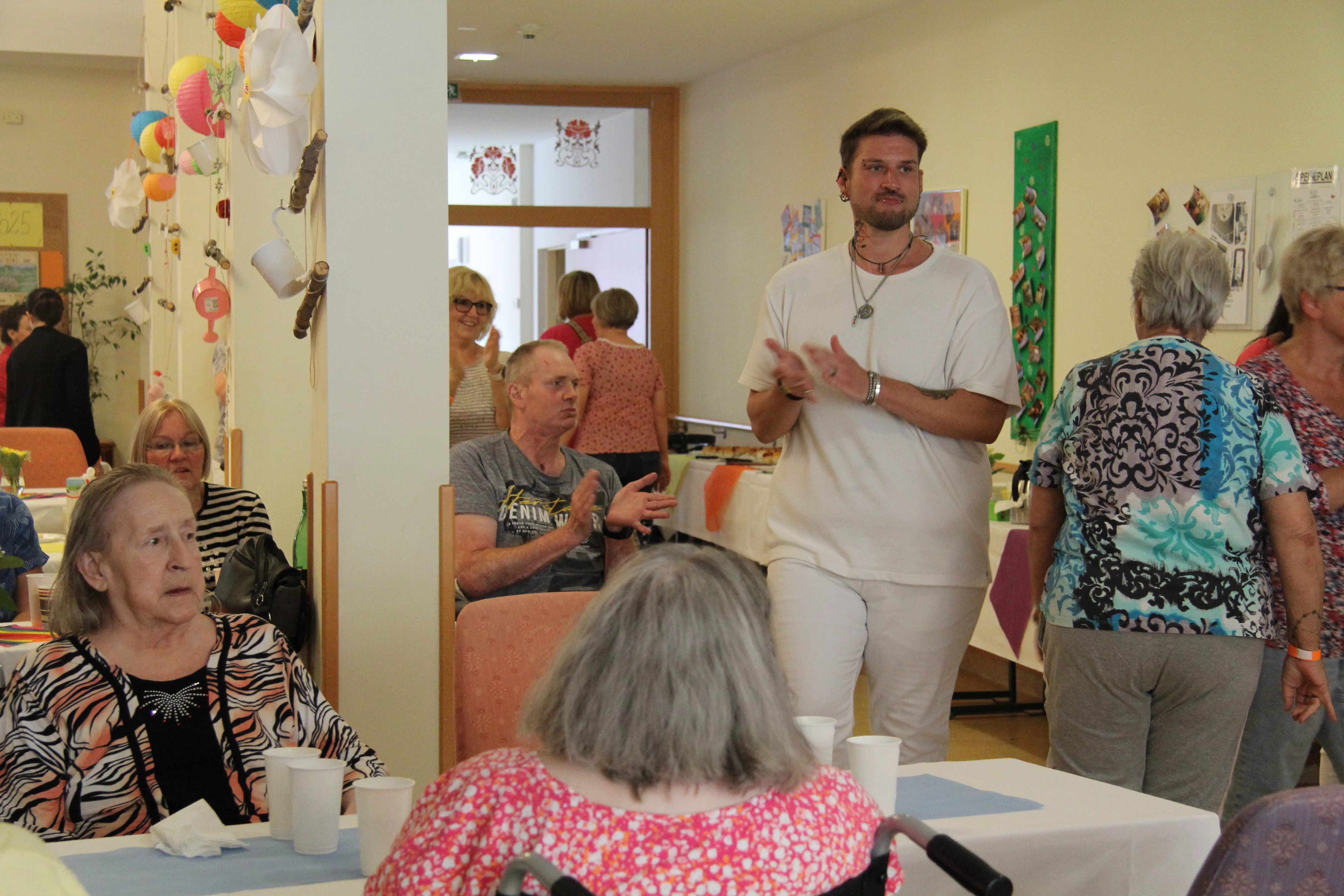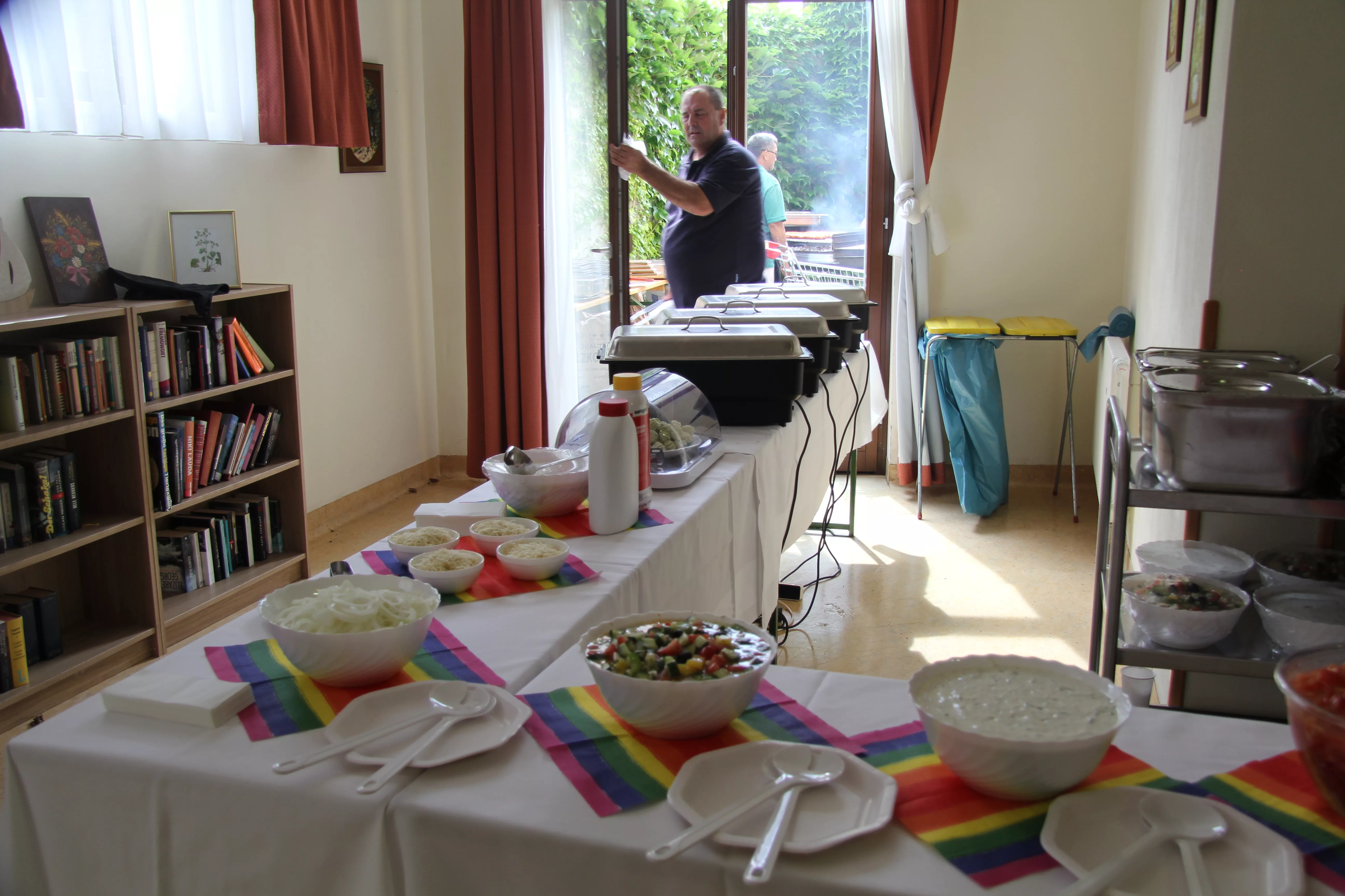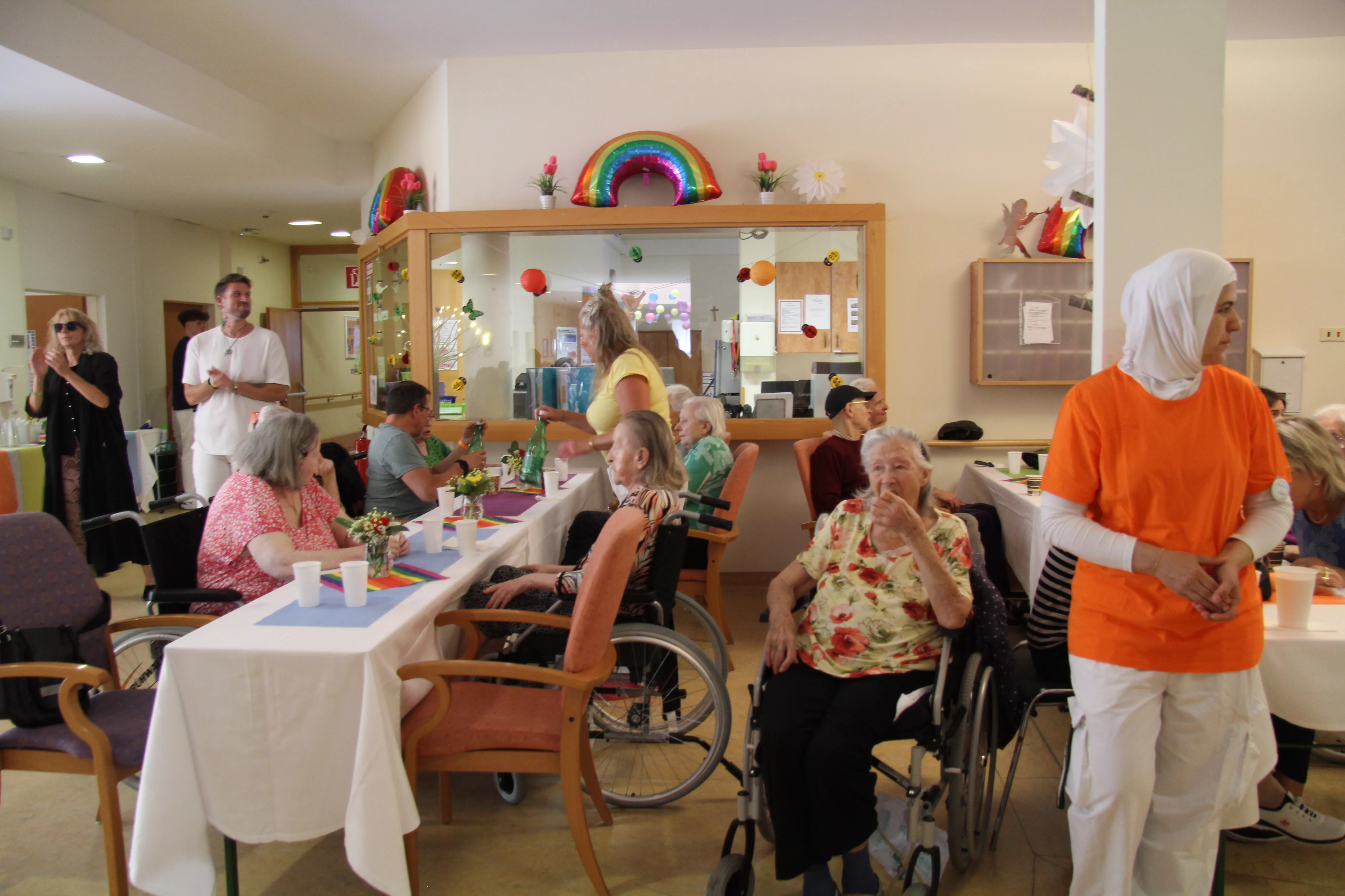 Das Sommerwetter blieb ein wenig aus, dafür passte die Stimmung umso mehr. Unsere BewohnerInnen und Angehörige hatten einen Riesenspaß. Bei einem voluminösen Buffet und kalten Getränken feierten wir in den Sommer hinein. Vielen Dank an alle Beteiligten für dieses gelungene Fest.