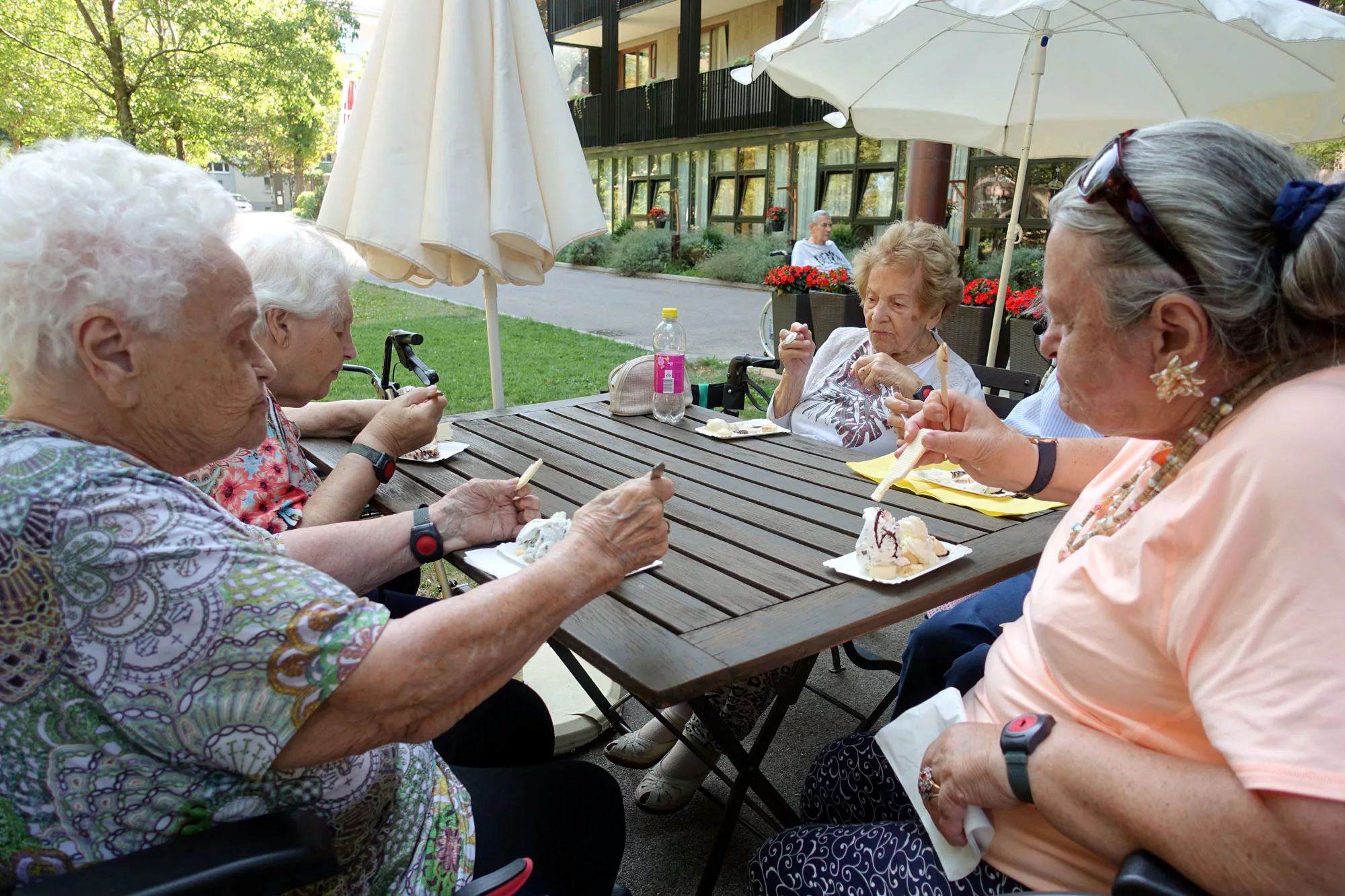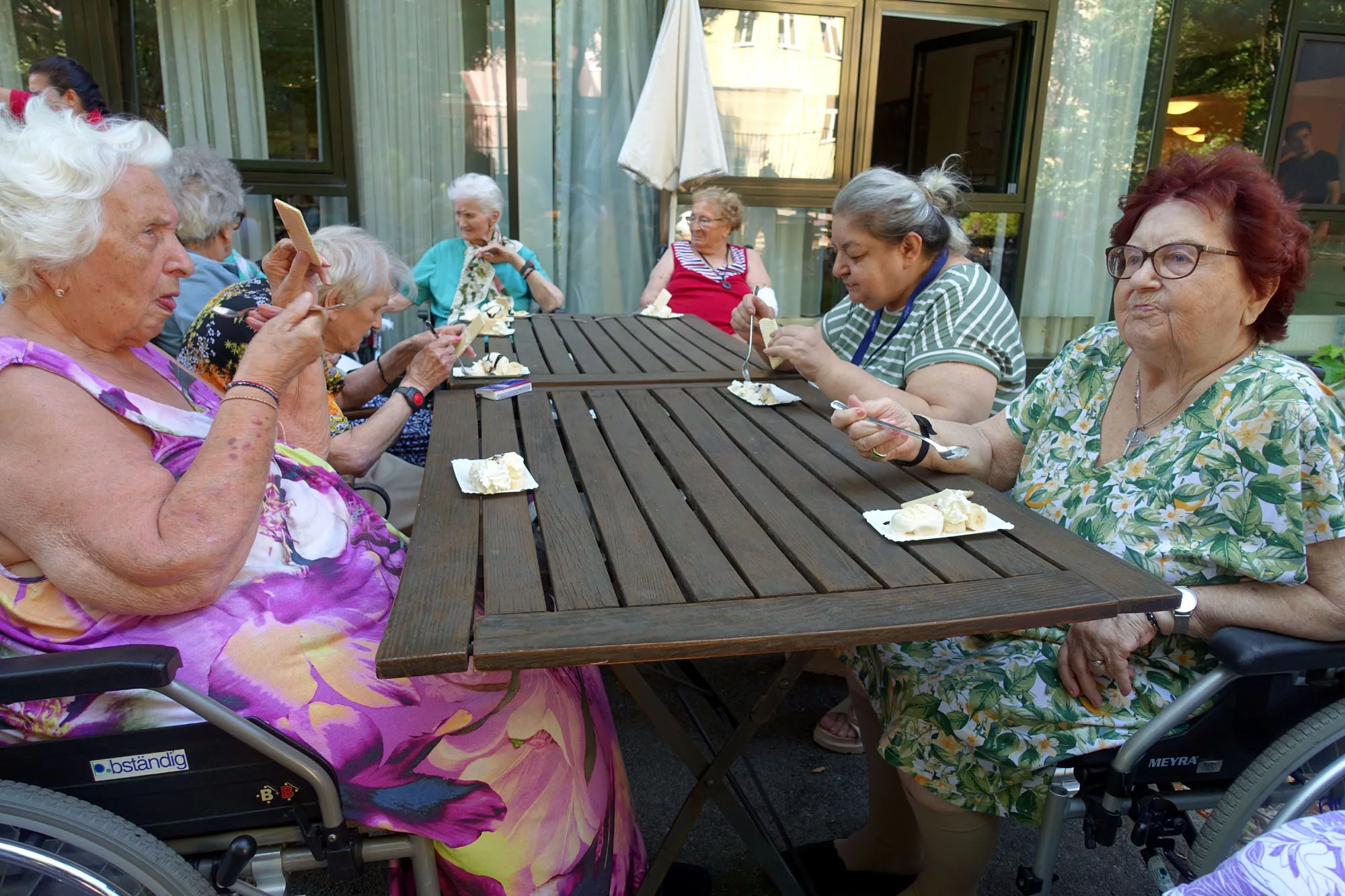 Bananensplit und Kuchen Das Animationsteam kredenzte heute den Bewohnern zur Jause köstlichen Bananensplit, sowie selbst gebackenen Kuchen.