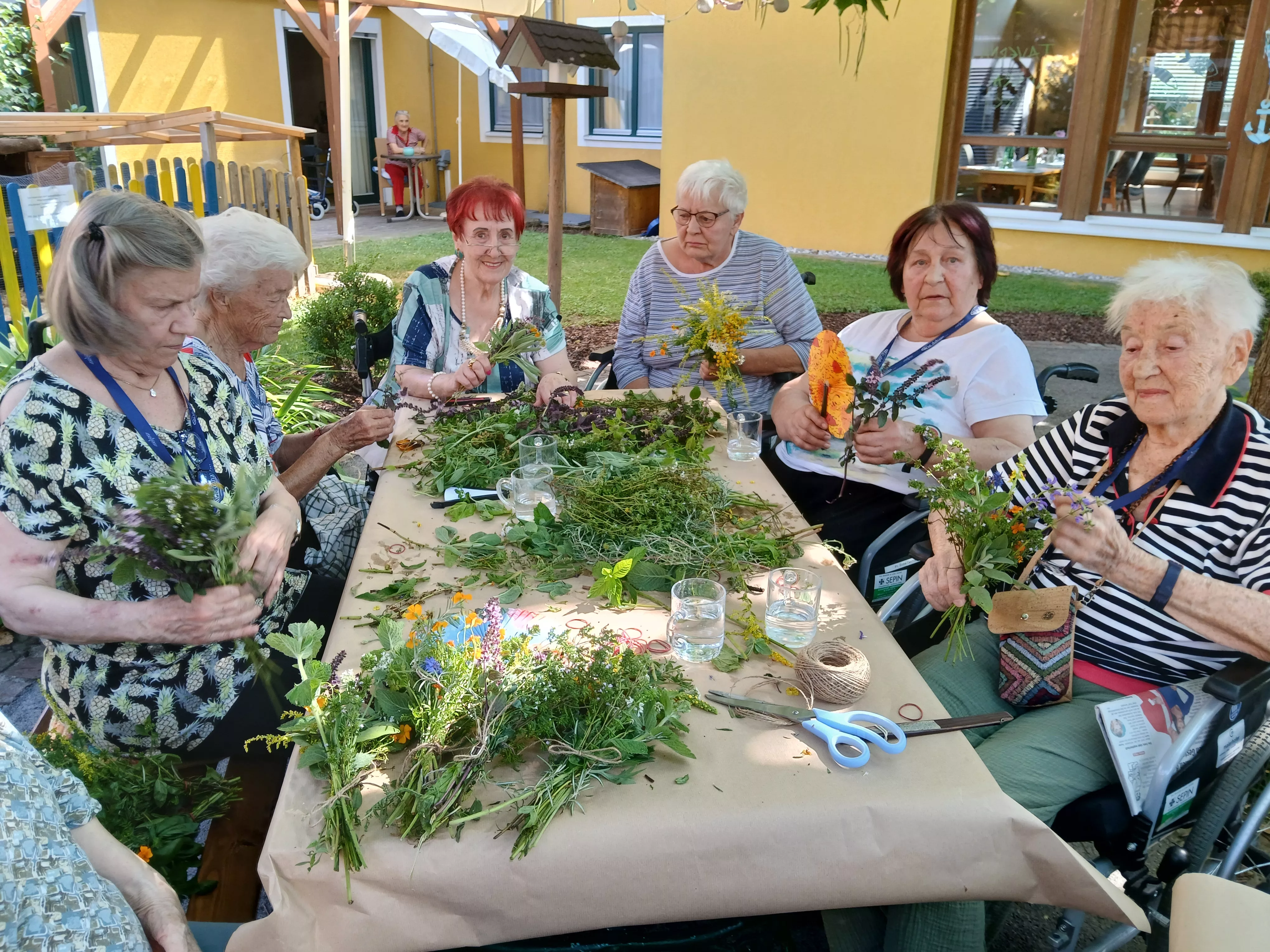Gemeinsam mit der Pfarre St. Martin haben unsere Bewohnerinnen und Bewohner heuer mit viel Freude bunte Kräutersträußchen gebunden.