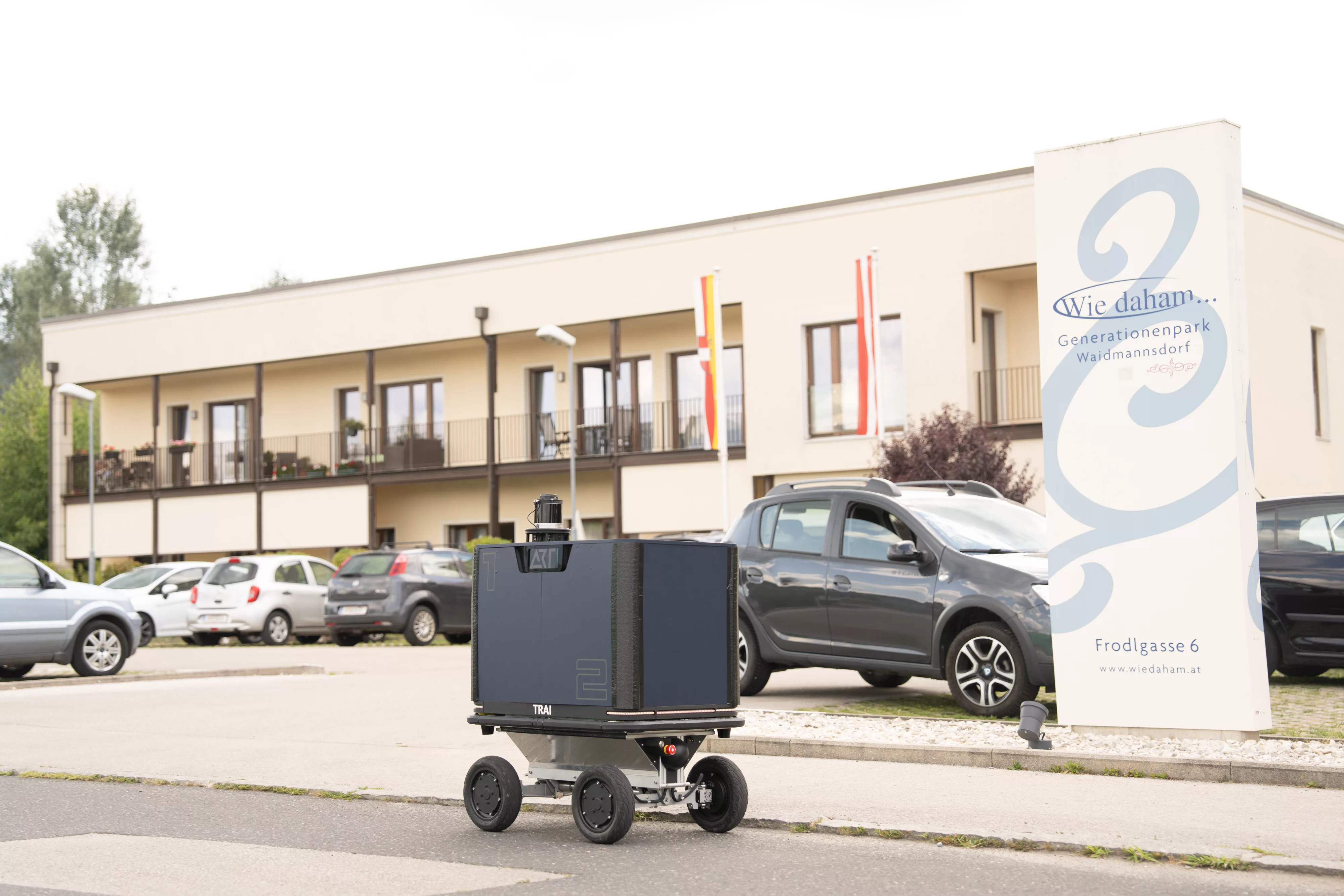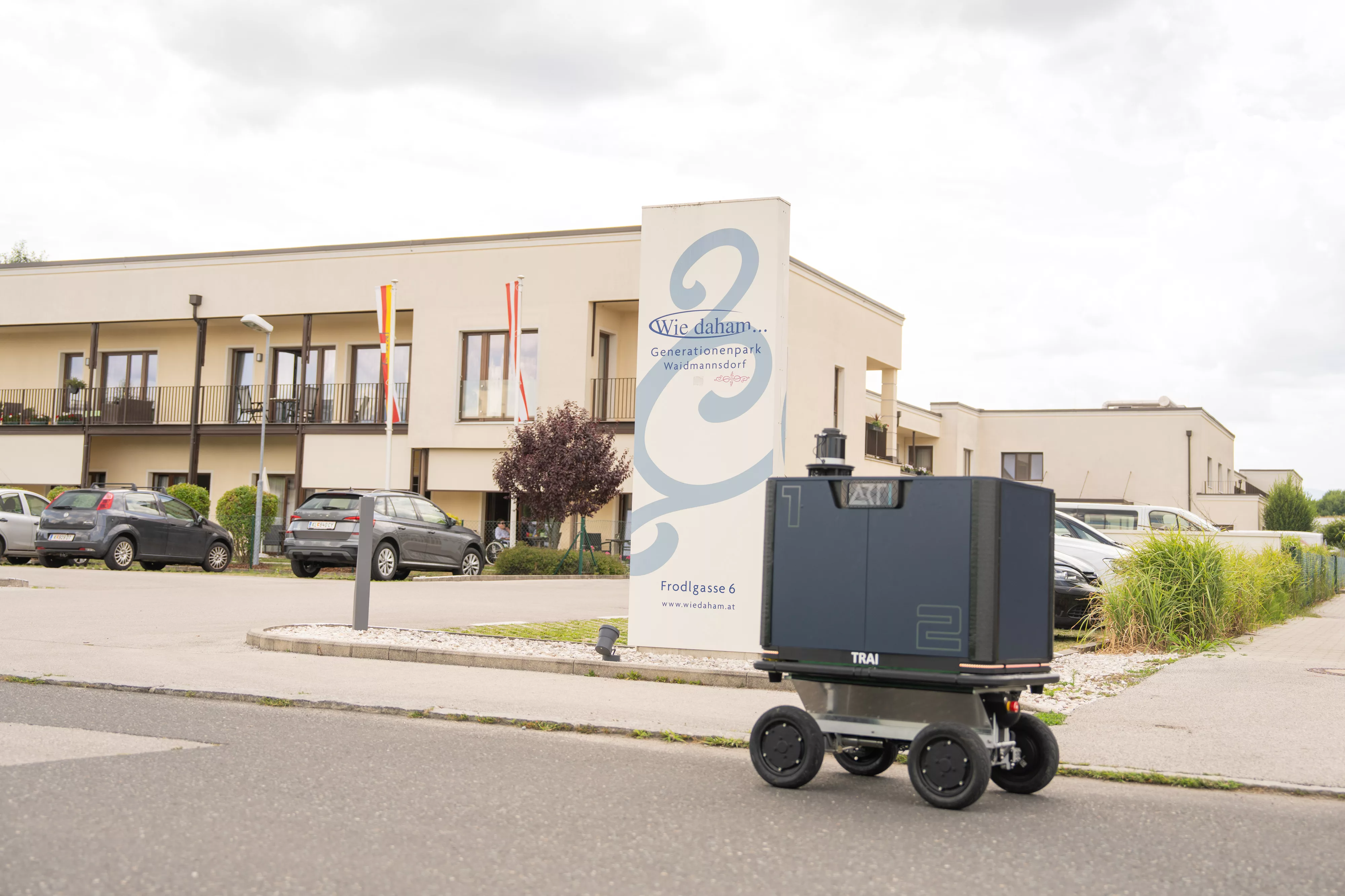 Im vergangenen Monat durfte der „Wie daham… “ Generationenpark Waidmannsdorf eine ganz besondere Premiere erleben: Erstmals erfolgte die Zustellung von Medikamenten durch einen autonomen Lieferroboter.
