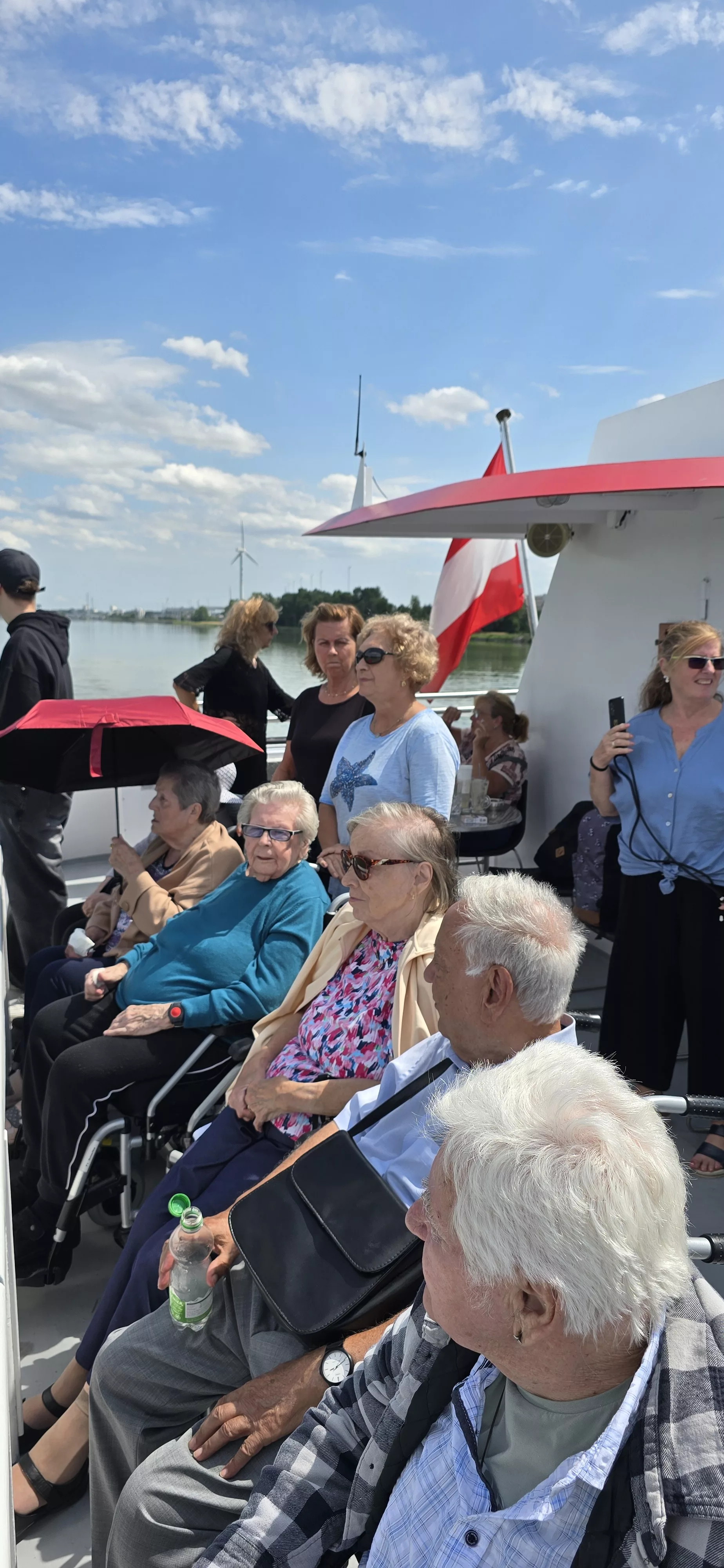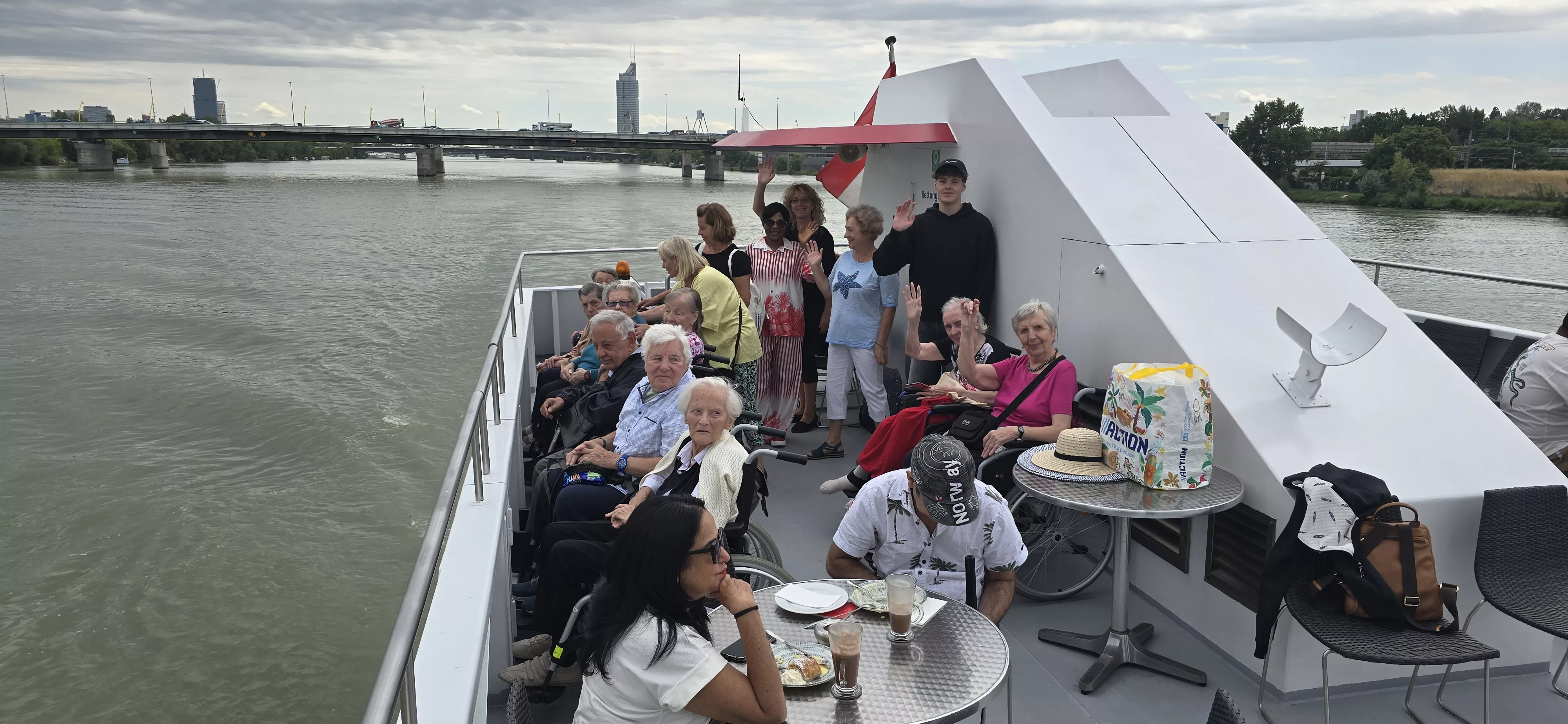 Per Zufall wurden einige unserer Bewohner auserwählt am Ausflug mit dem Donauschiff teilzunehmen. Bei bestem Wetter wurden die BewohnerInnen mit Kleinbussen zur Anlagestelle gebracht und durften an Bord eines altersgerechten Schiffes. Hier verbrachten die BewohnerInnen einen schönen Deck bei einer Donaufahrt Richtung Krems und retour.