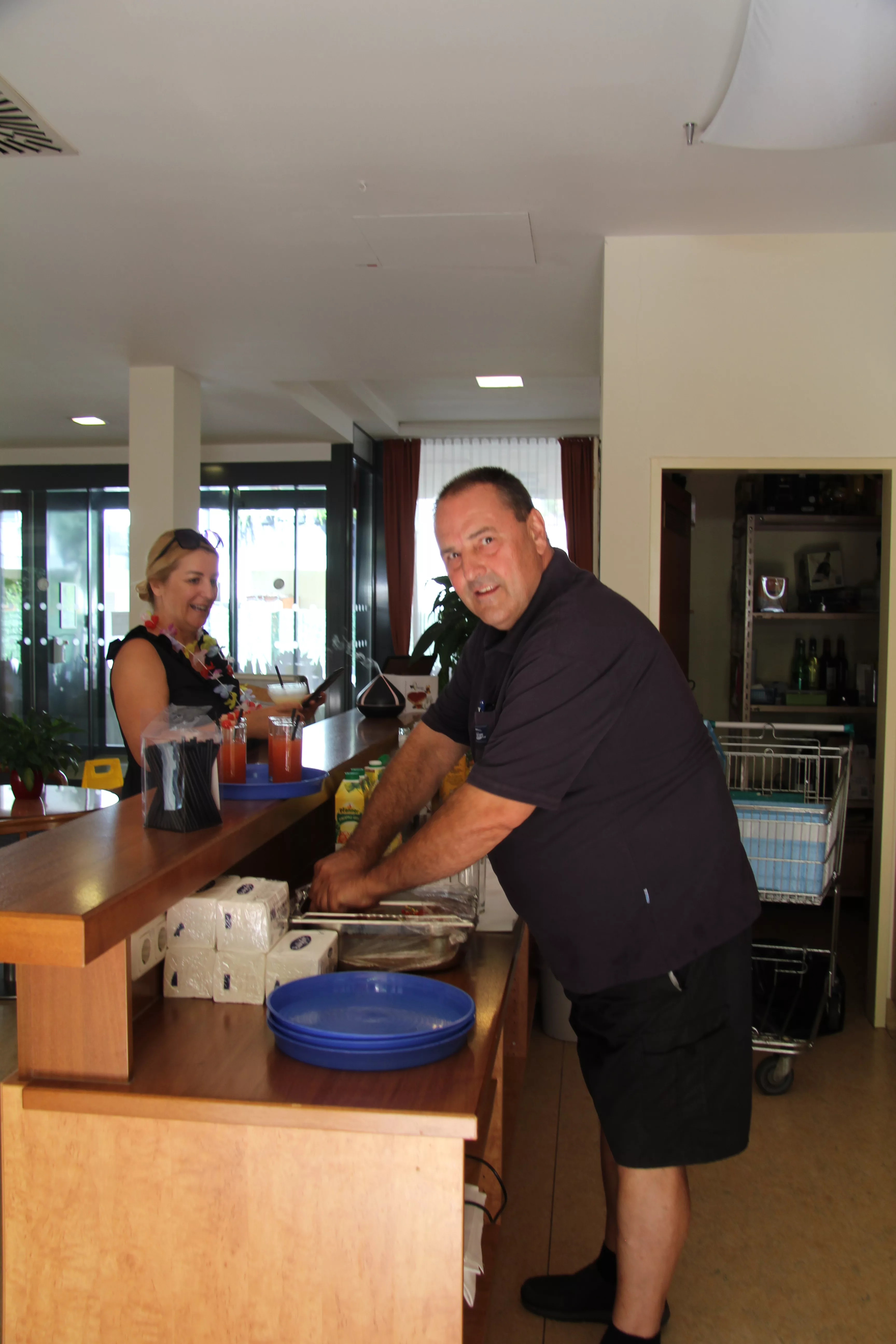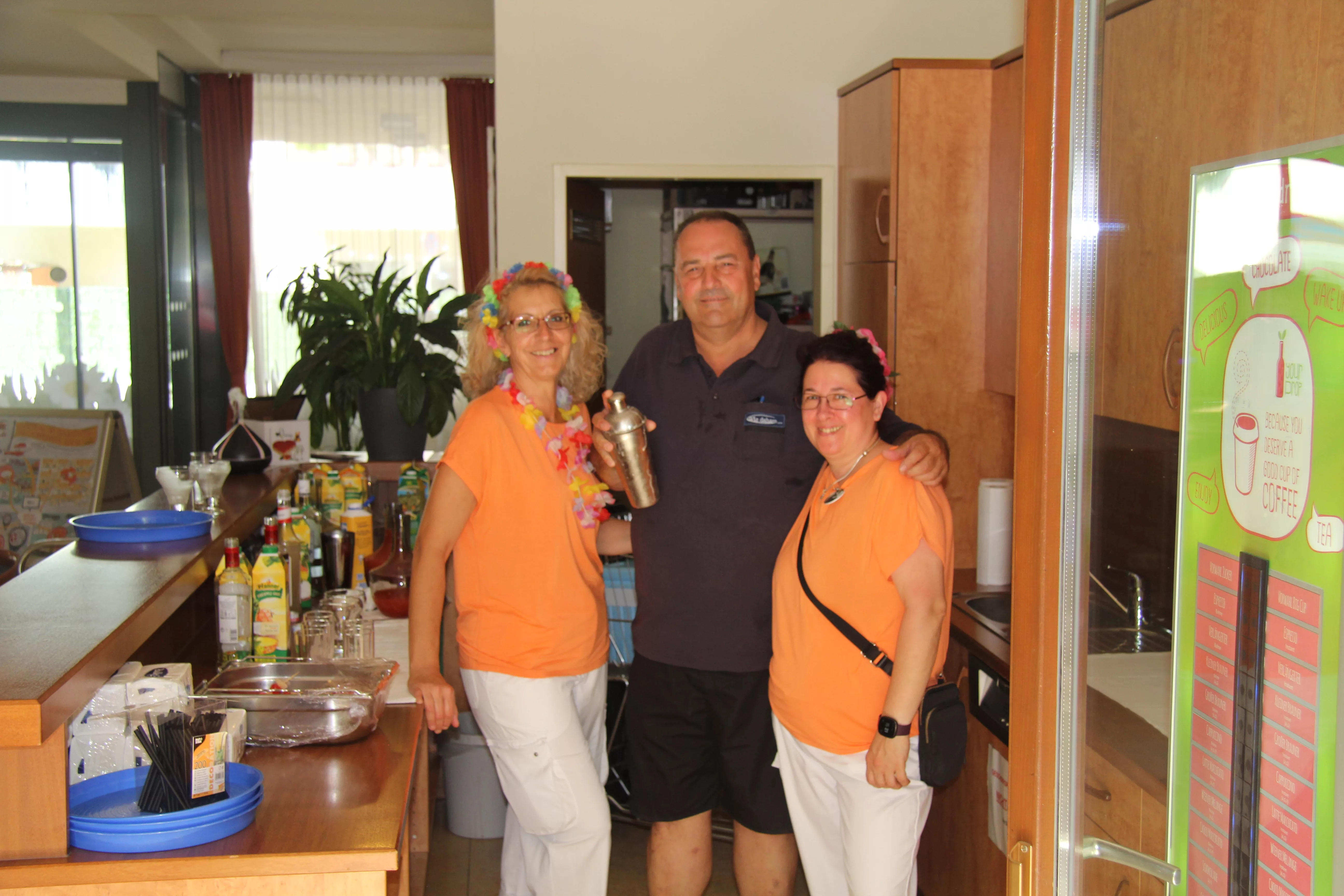 Cocktailparty Unser Haustechniker Herr Grötzl gemeinsam mit den Animationen luden zum Cocktail ein – das Wetter trug zu einem großen Erfolg bei.
