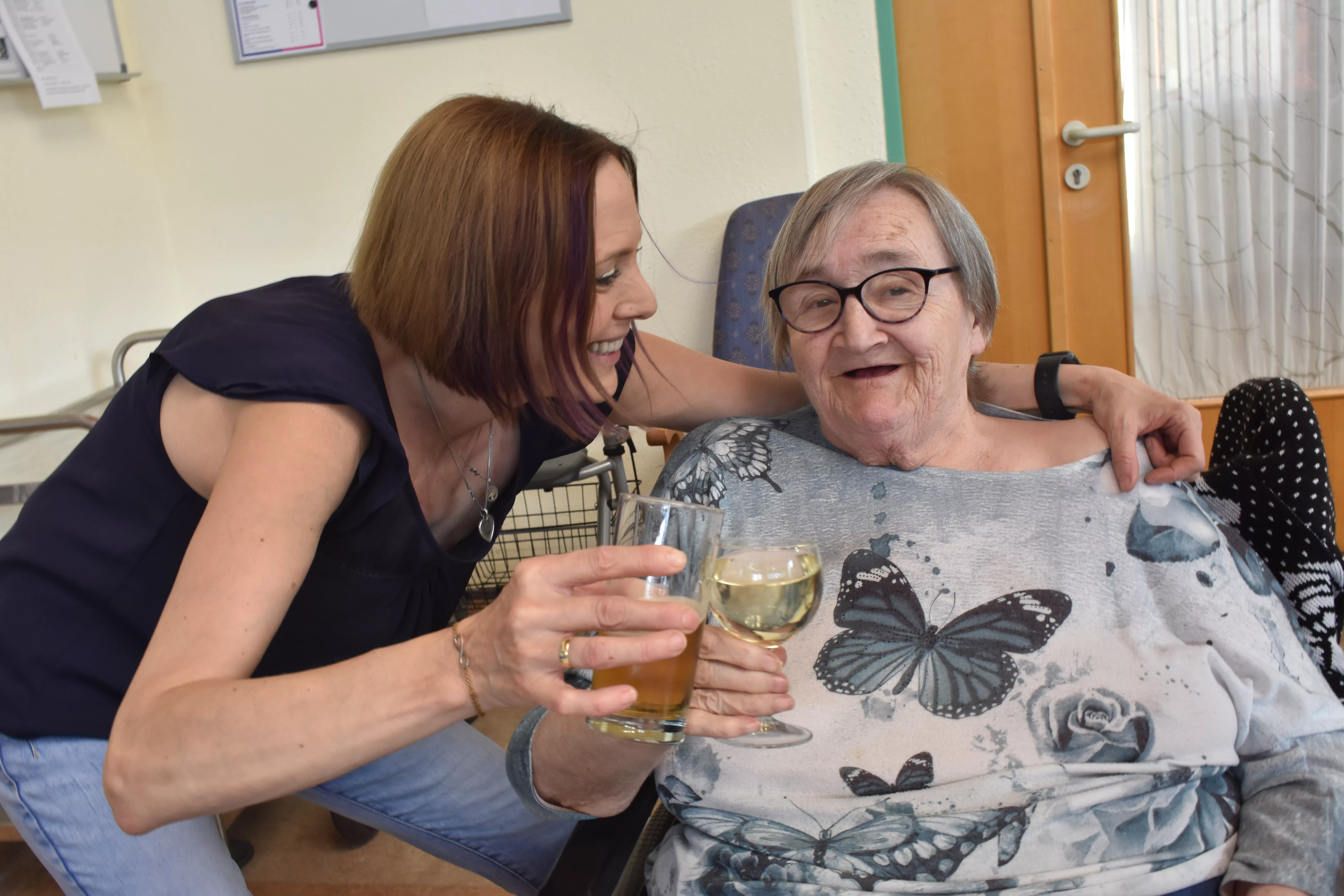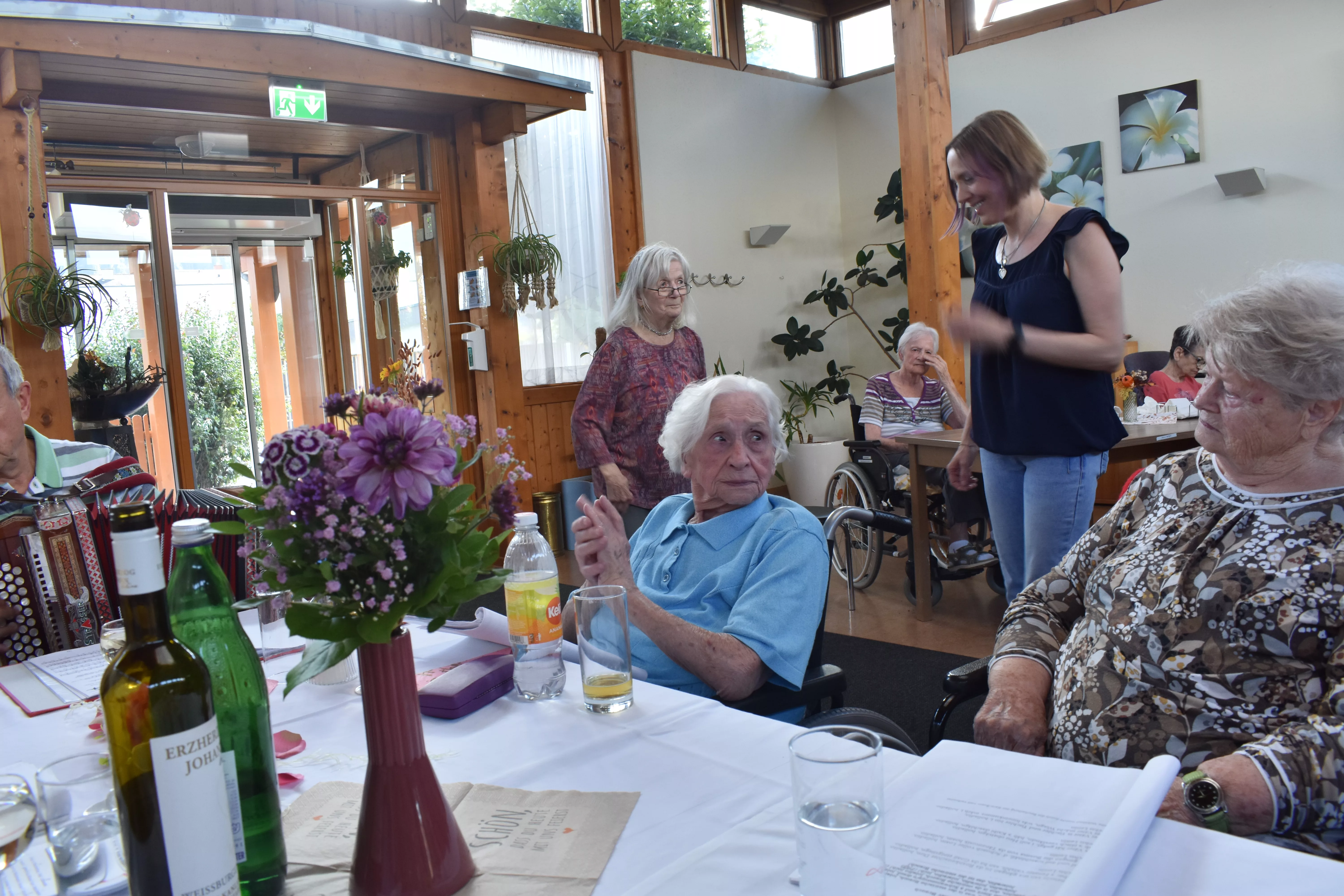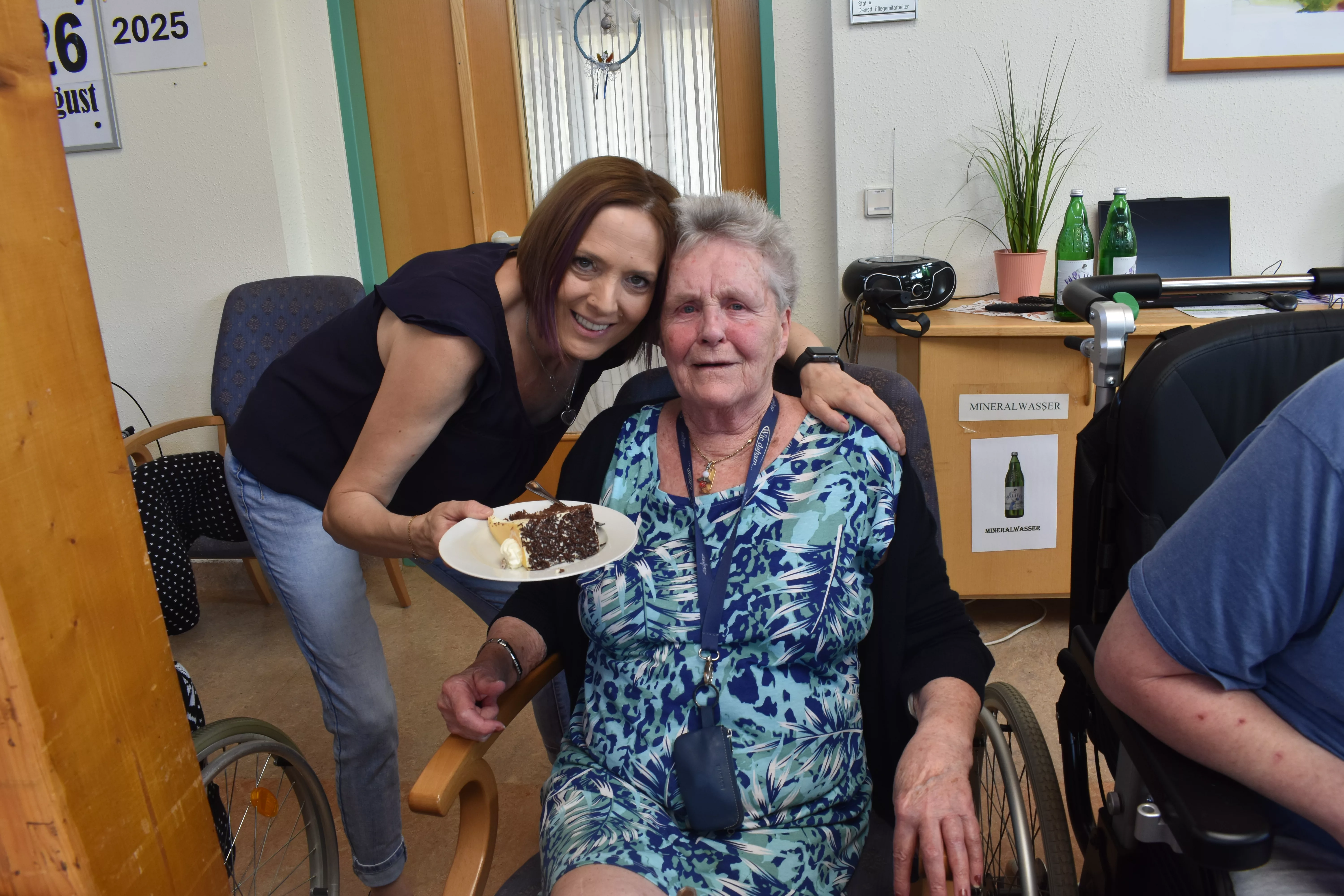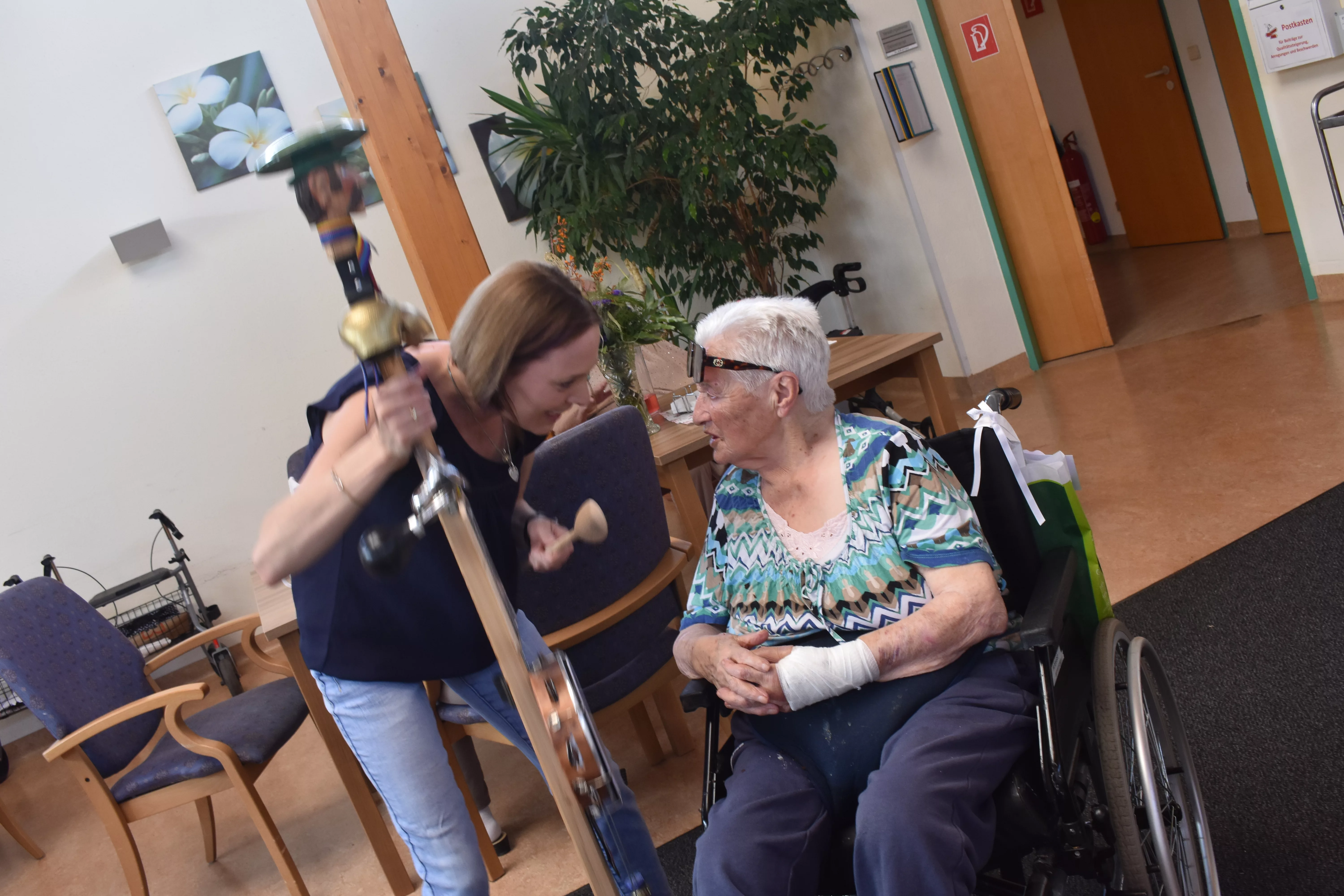 Bei einer Tasse Kaffee, einem köstlichen Stück Torte und einem Gläschen Wein lässt es sich wunderbar plaudern, genießen und feiern. Für die Bombenstimmung sorgt wie immer unsere „Meli“ mit ihrer Teufelsgeige. Auch mancher Bewohner versucht sein Können auf diesem Instrument, andere wiederum schwingen voller Freude das Tanzbein.