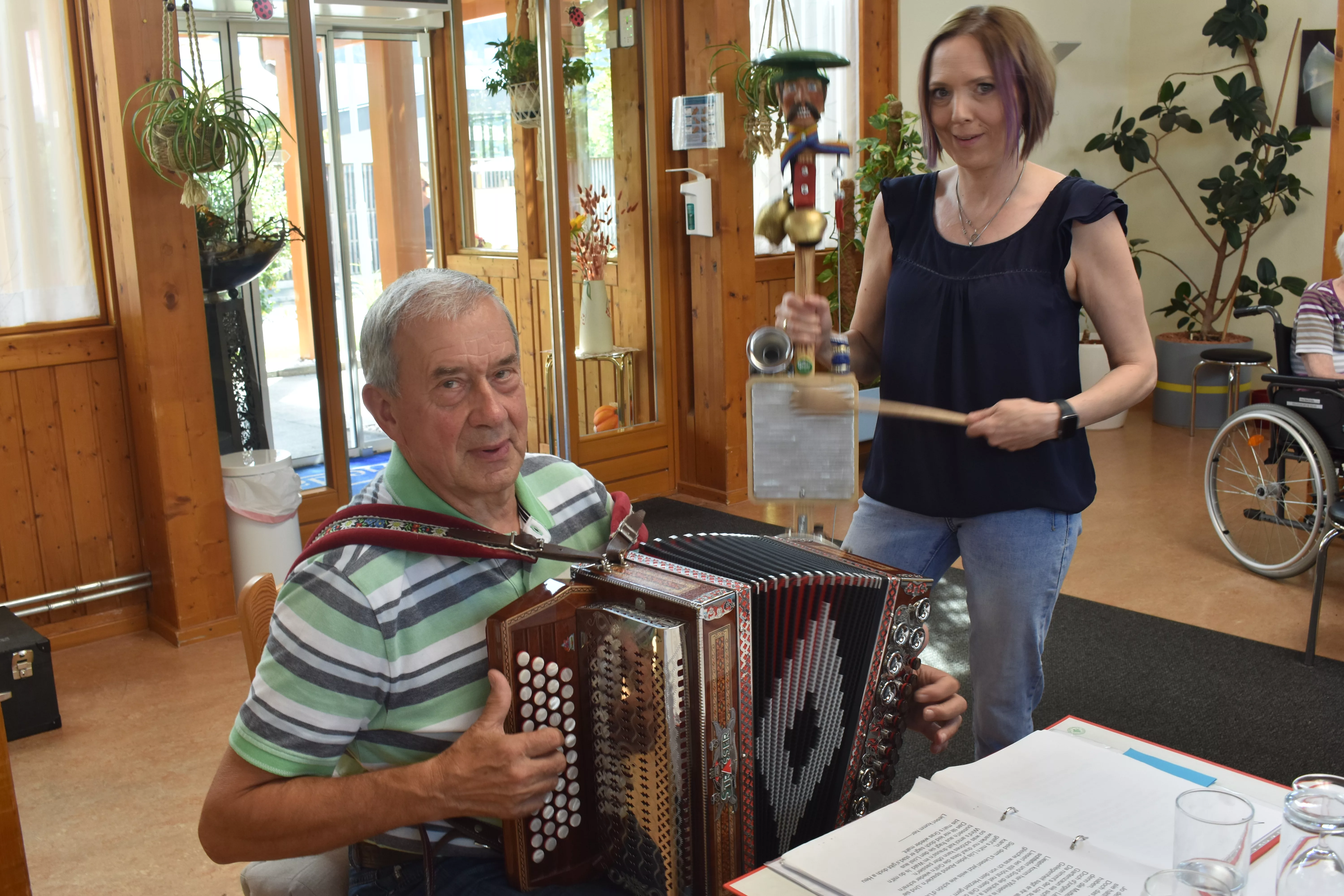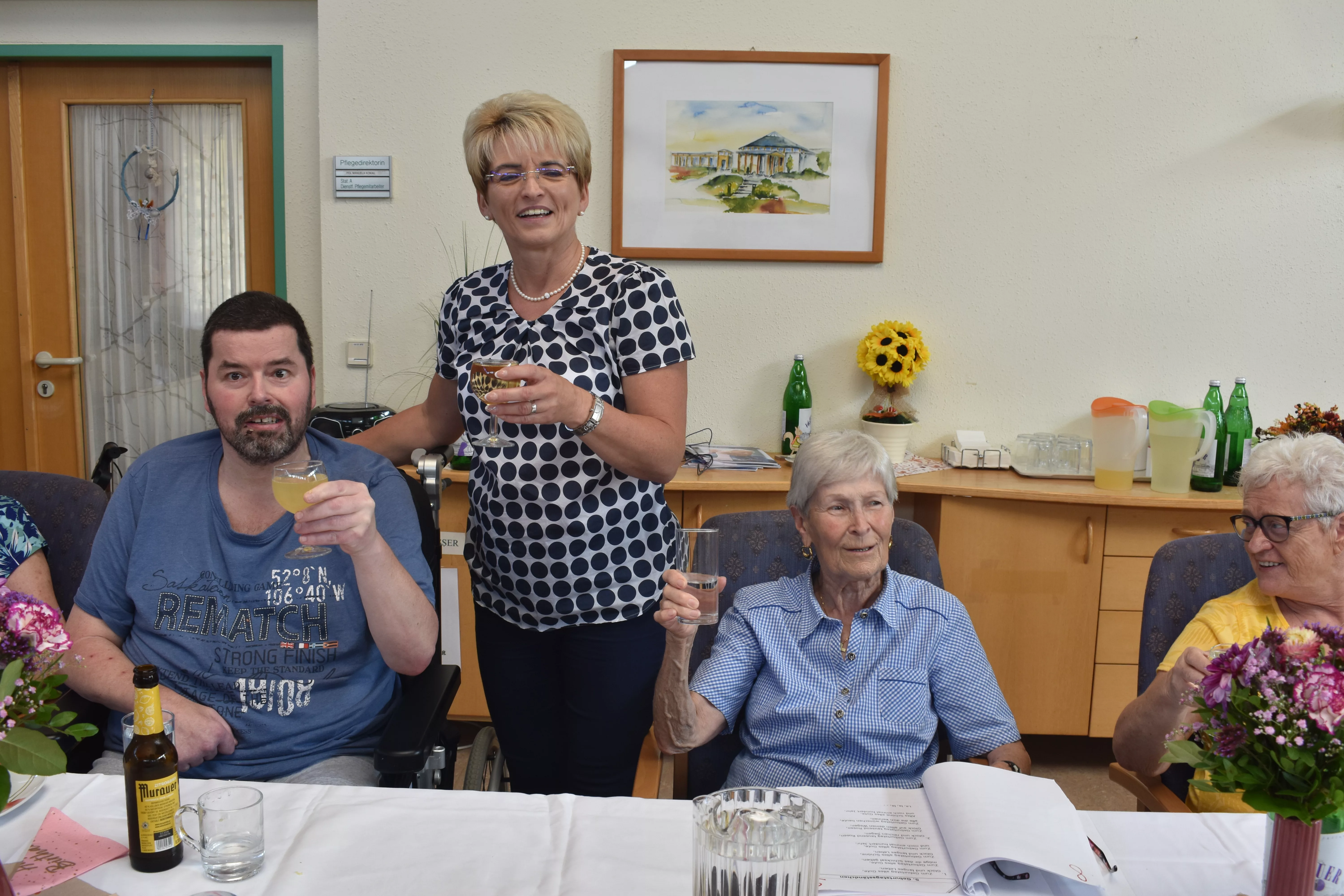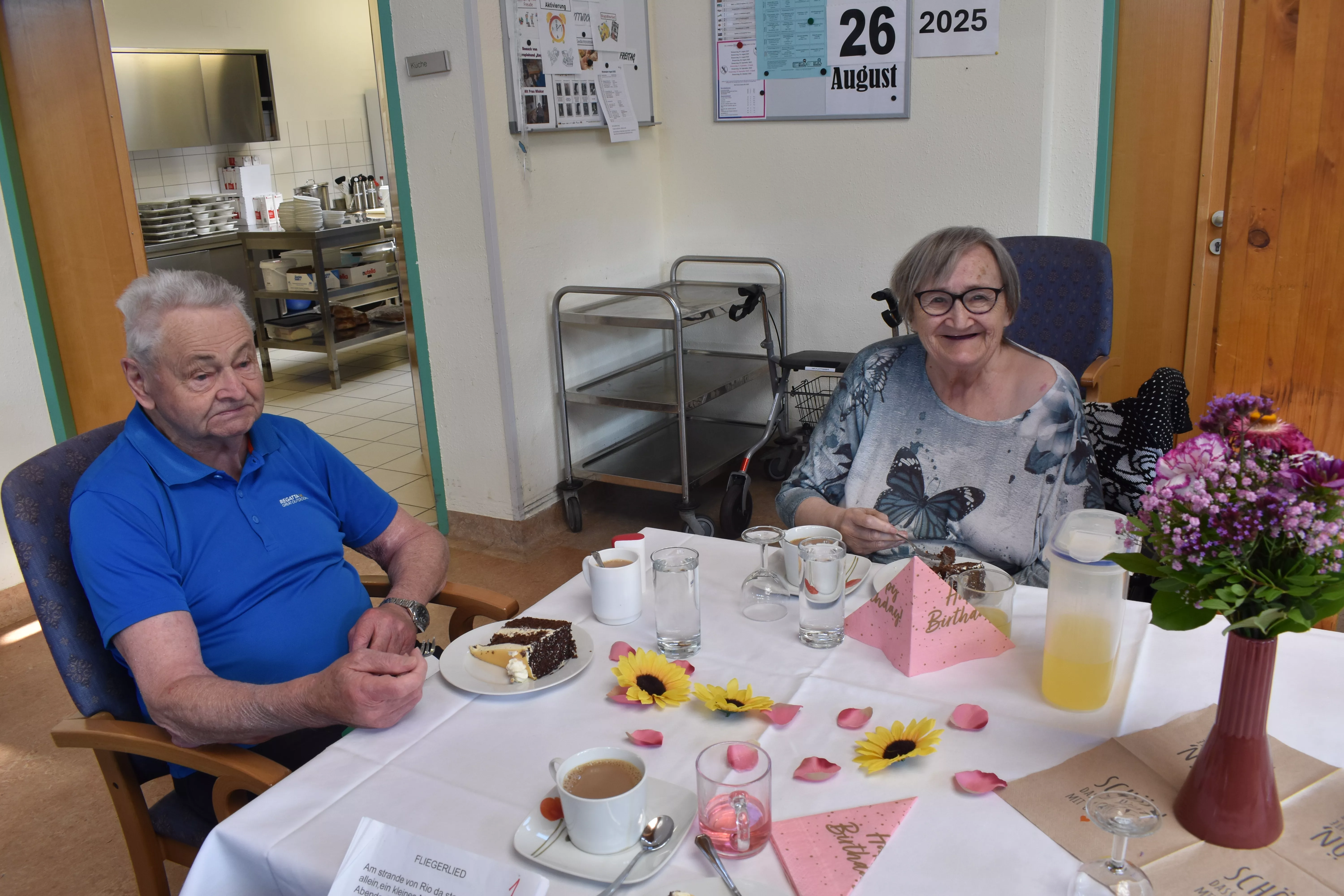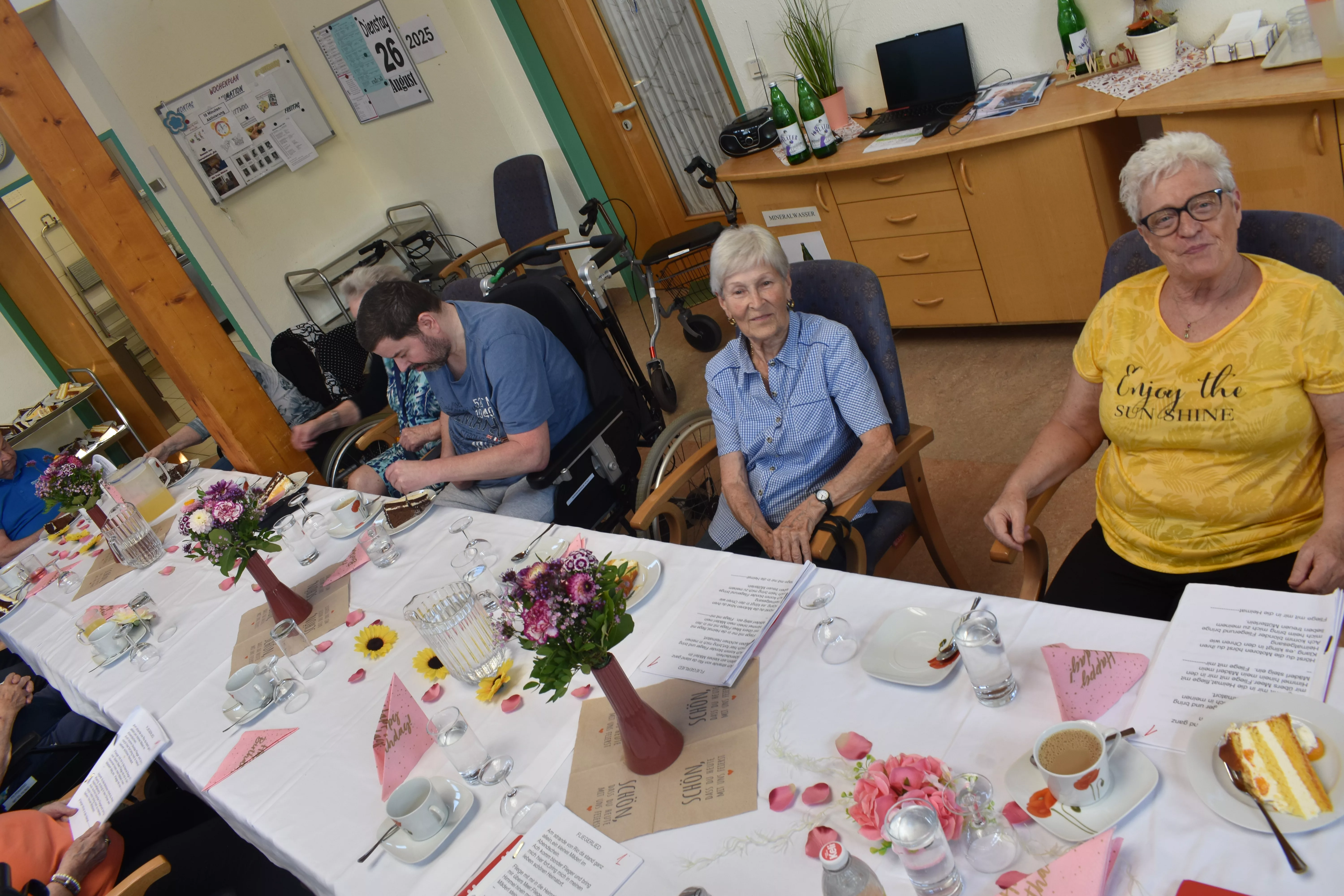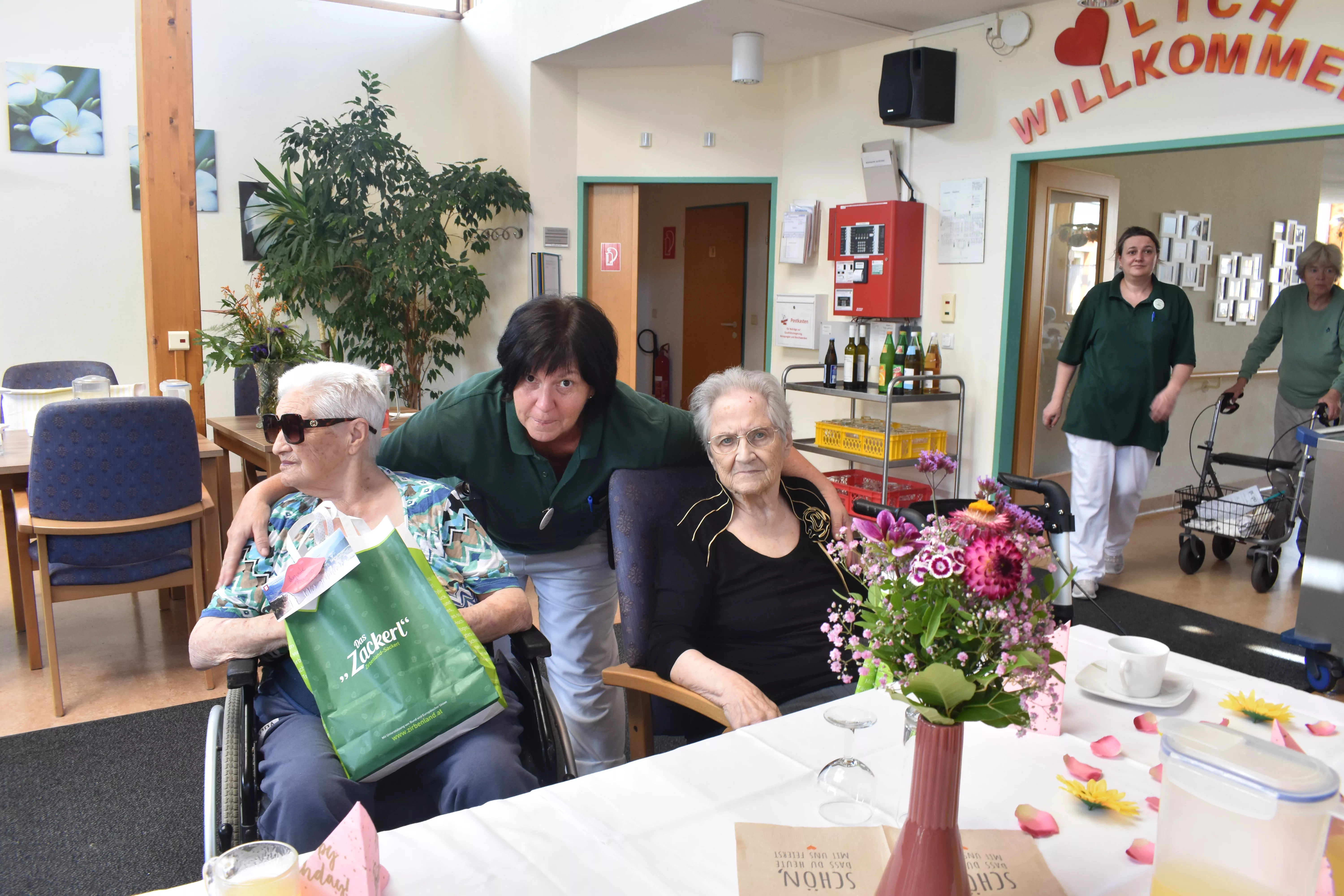 Bei einer Tasse Kaffee, einem köstlichen Stück Torte und einem Gläschen Wein lässt es sich wunderbar plaudern, genießen und feiern. Für die Bombenstimmung sorgt wie immer unsere „Meli“ mit ihrer Teufelsgeige. Auch mancher Bewohner versucht sein Können auf diesem Instrument, andere wiederum schwingen voller Freude das Tanzbein.