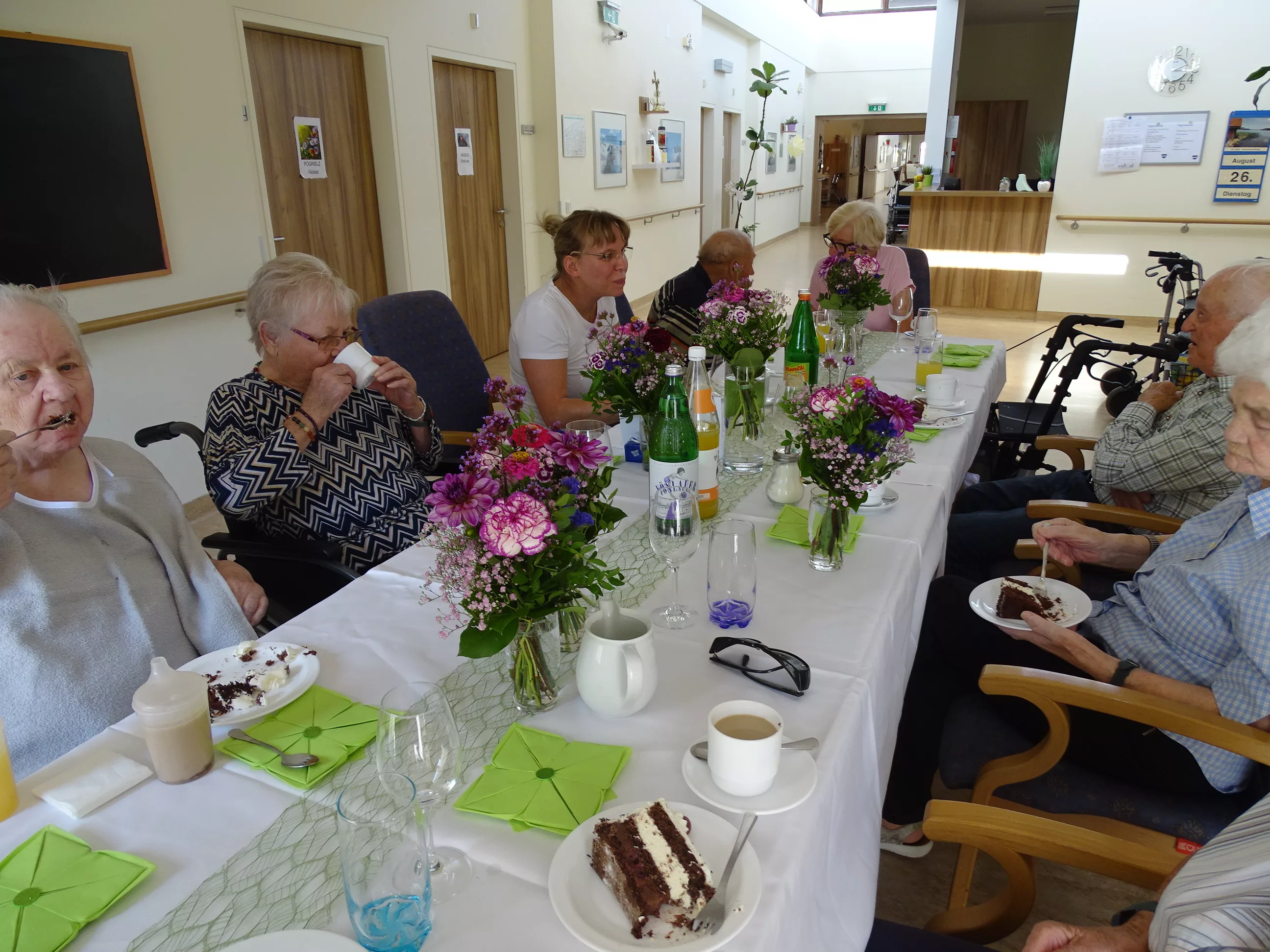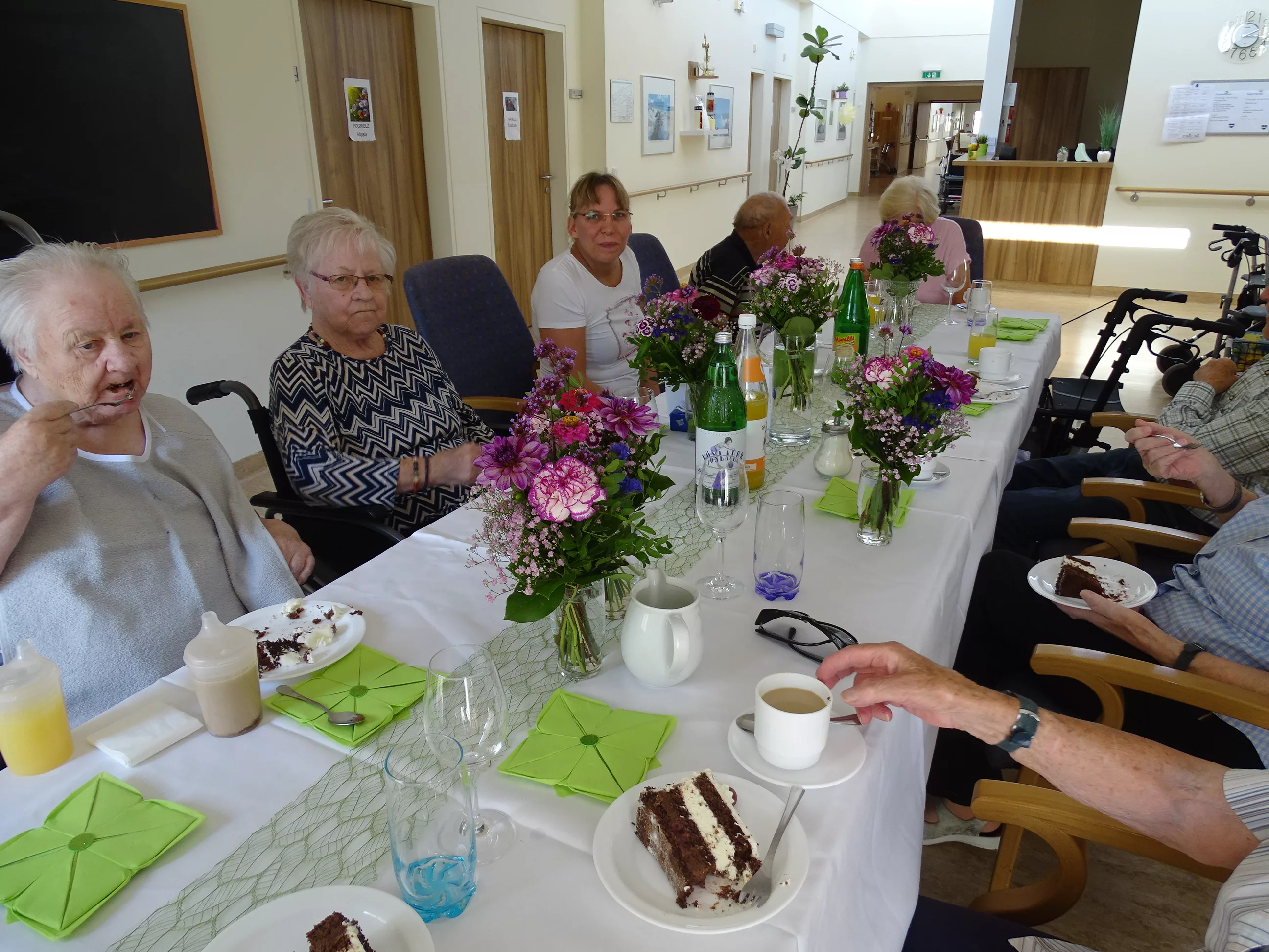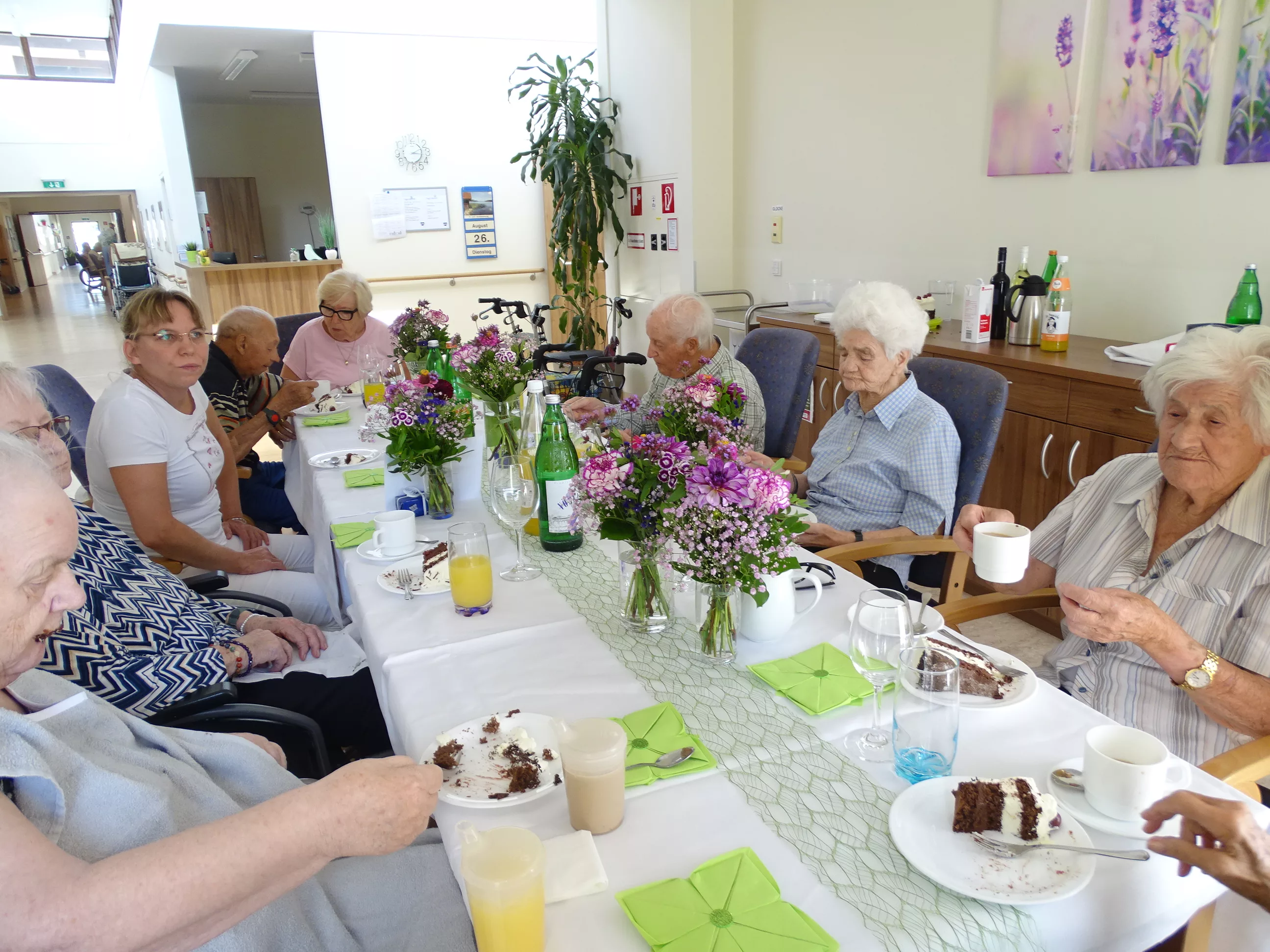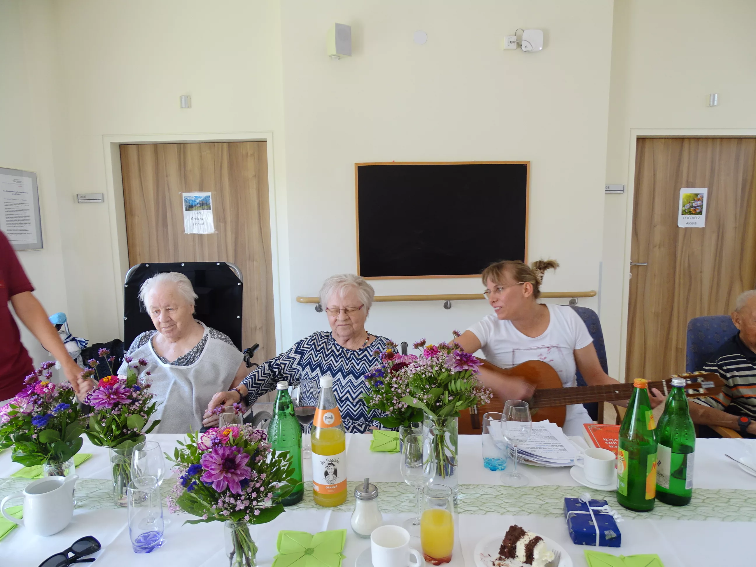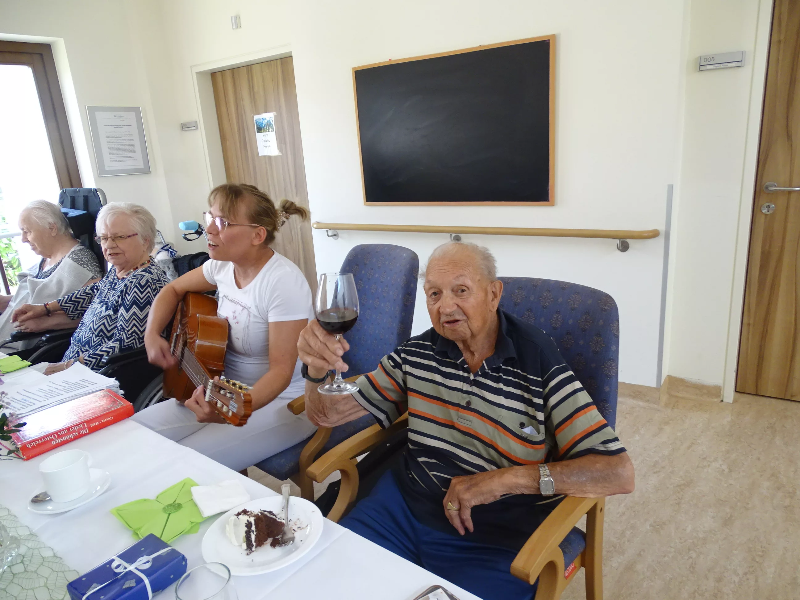 An einem wunderschönen sommerlichen Dienstag ließen wir unsere Sommergeburtstagskinder richtig hochleben. Es wurde im Generationenpark Zeltweg mit einem Achterl Wein und einer wunderbaren Schwarzwälderkirschtorte angestoßen und gefeiert. Unsere Sabine brachte mit ihrer tollen Stimme und ihrer Gitarre Stimmung in die Geburtstagsrunde! Jedes Wunschlied wurde sofort gespielt, es war wieder eine tolle Stimmung im Generationenpark Zeltweg!