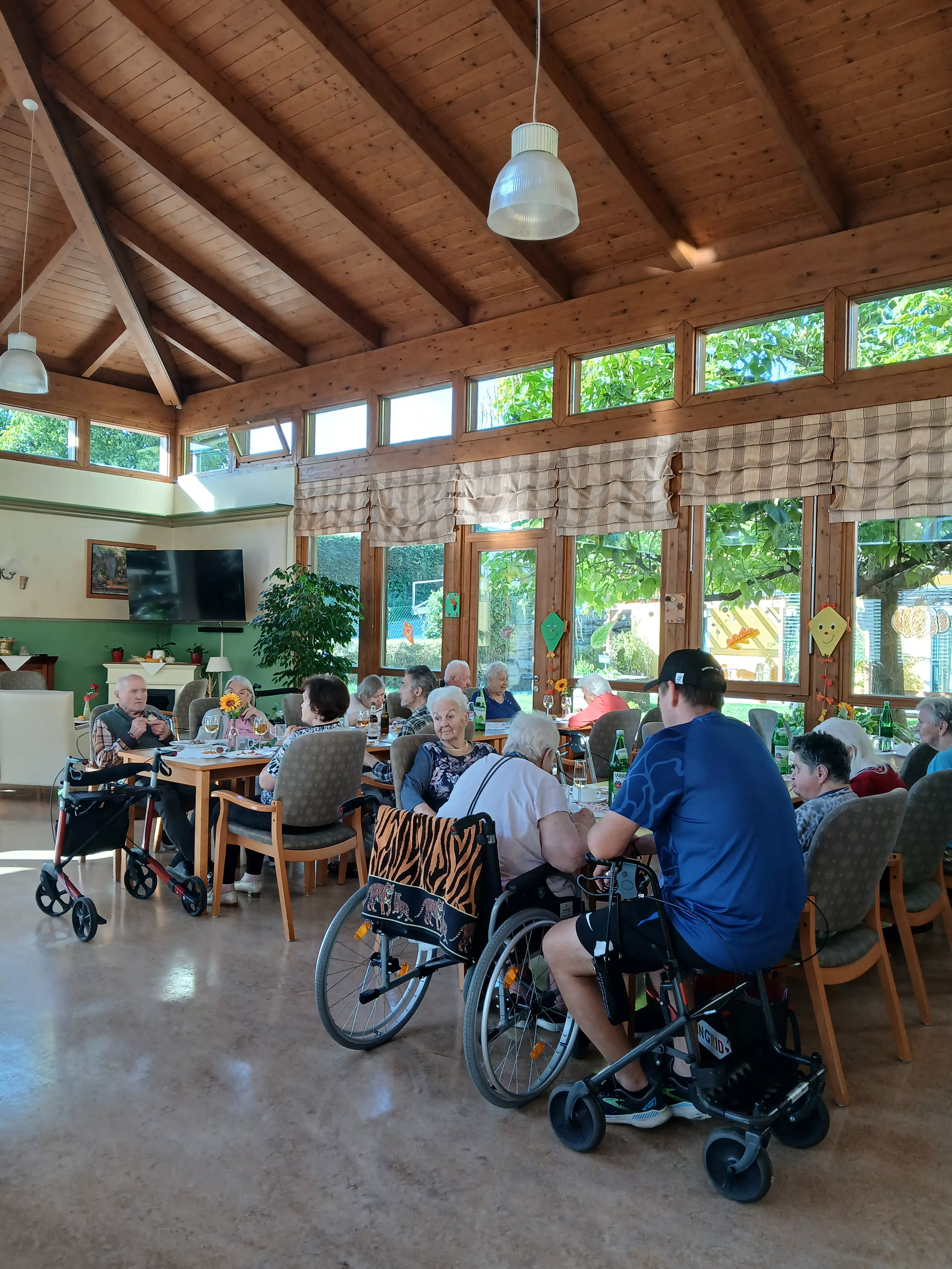 Ein ganz besonderer Nachmittag: Unsere Bewohnerinnen und Bewohner haben sich im Speisesaal zu einer gemütlichen Buschenschankjause versammelt. Mit viel Liebe hat Familie Planegger eine herrliche Auswahl an Schmankerln aufgetischt – vom g’schmackigen Aufstrich bis hin zu feinen Wurstspezialitäten. Dazu gab es erfrischenden Most und süßen Süßmost, die die gute Stimmung zusätzlich beflügelt haben.