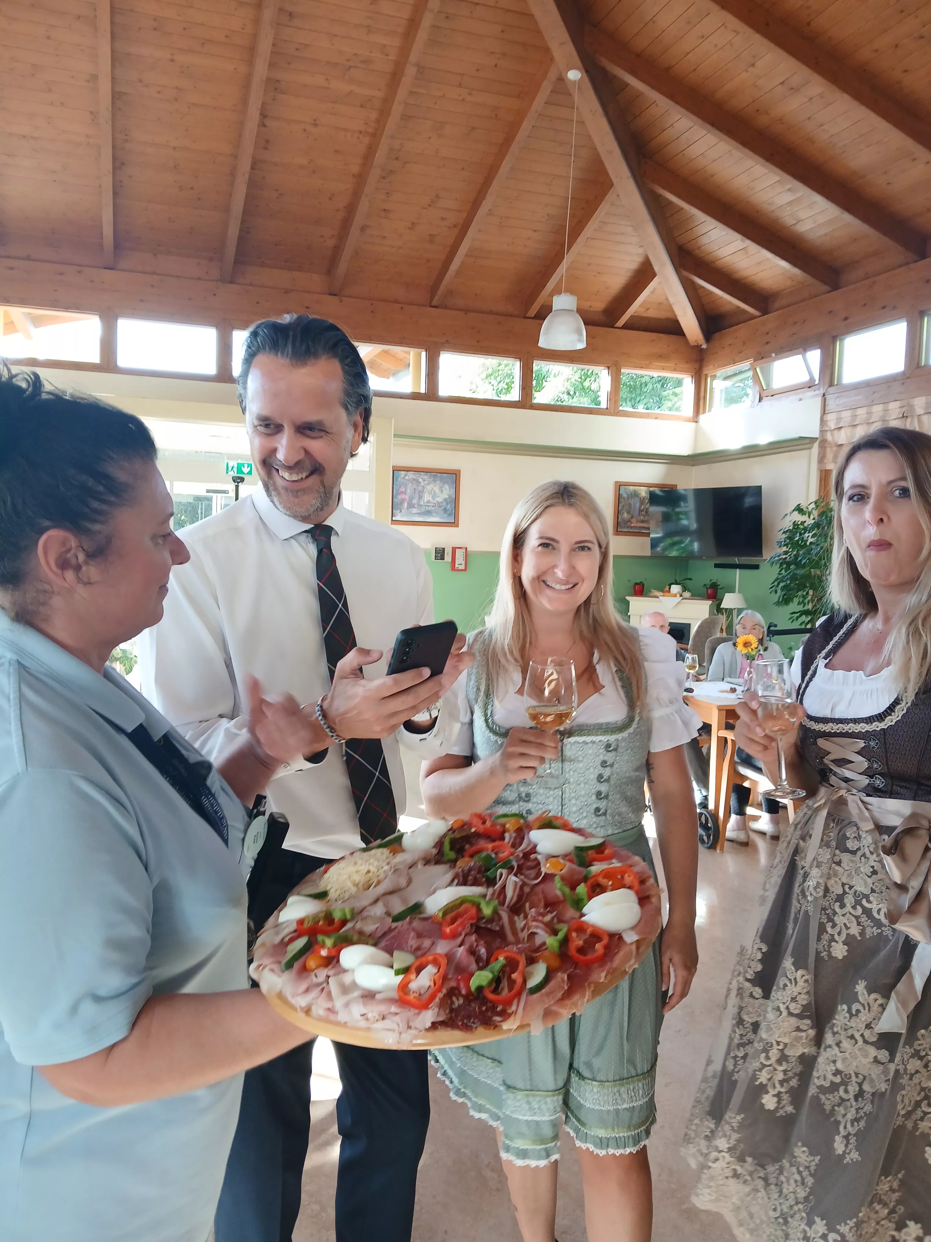 Gemeinsam mit unseren Mitarbeiterinnen wurde anschließend zu bekannten Schlagern und Austropop-Hits gesungen und geschunkelt und vor allem viel gelacht– ein heiteres Miteinander, das allen ein Lächeln ins Gesicht gezaubert hat.