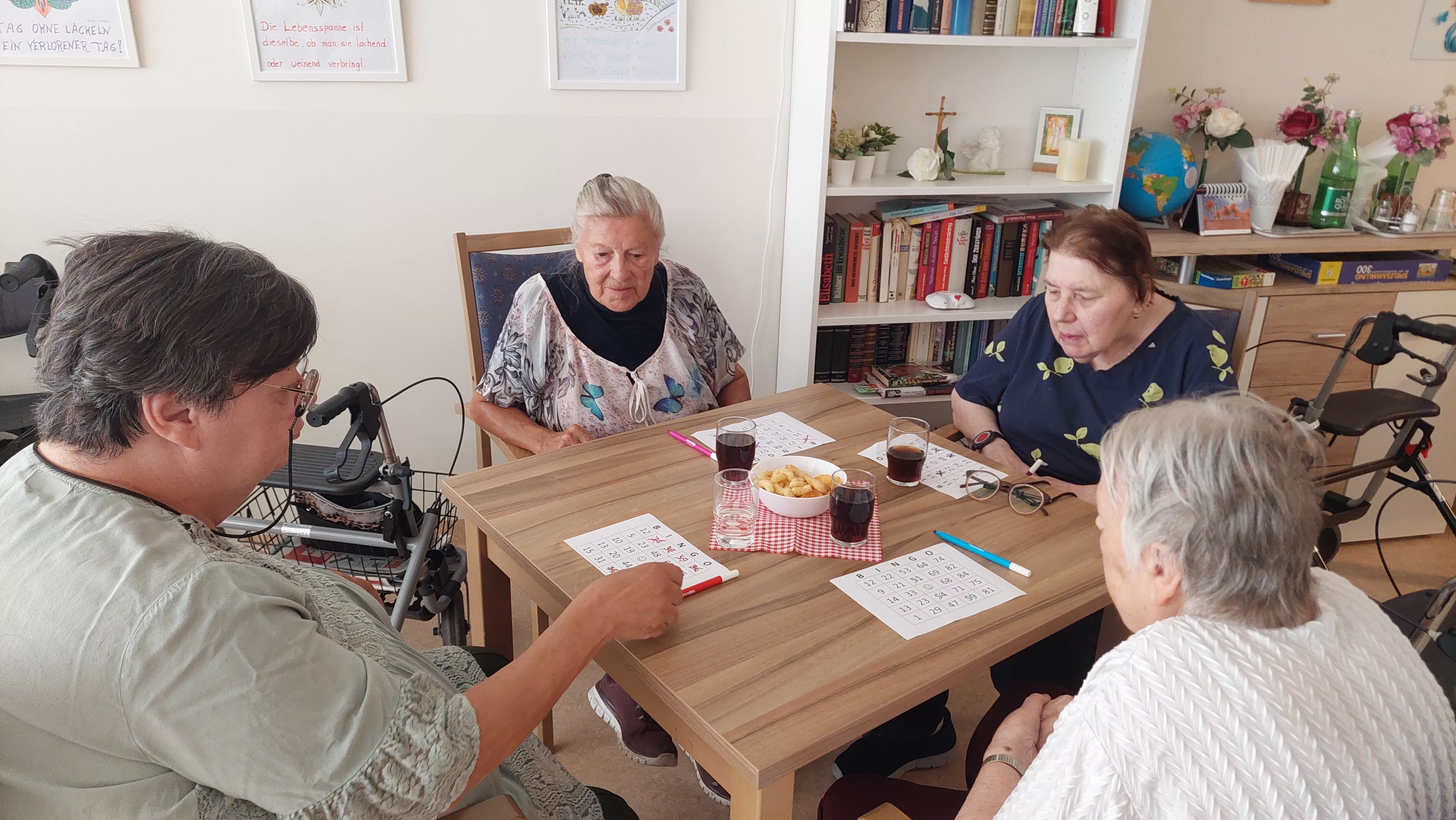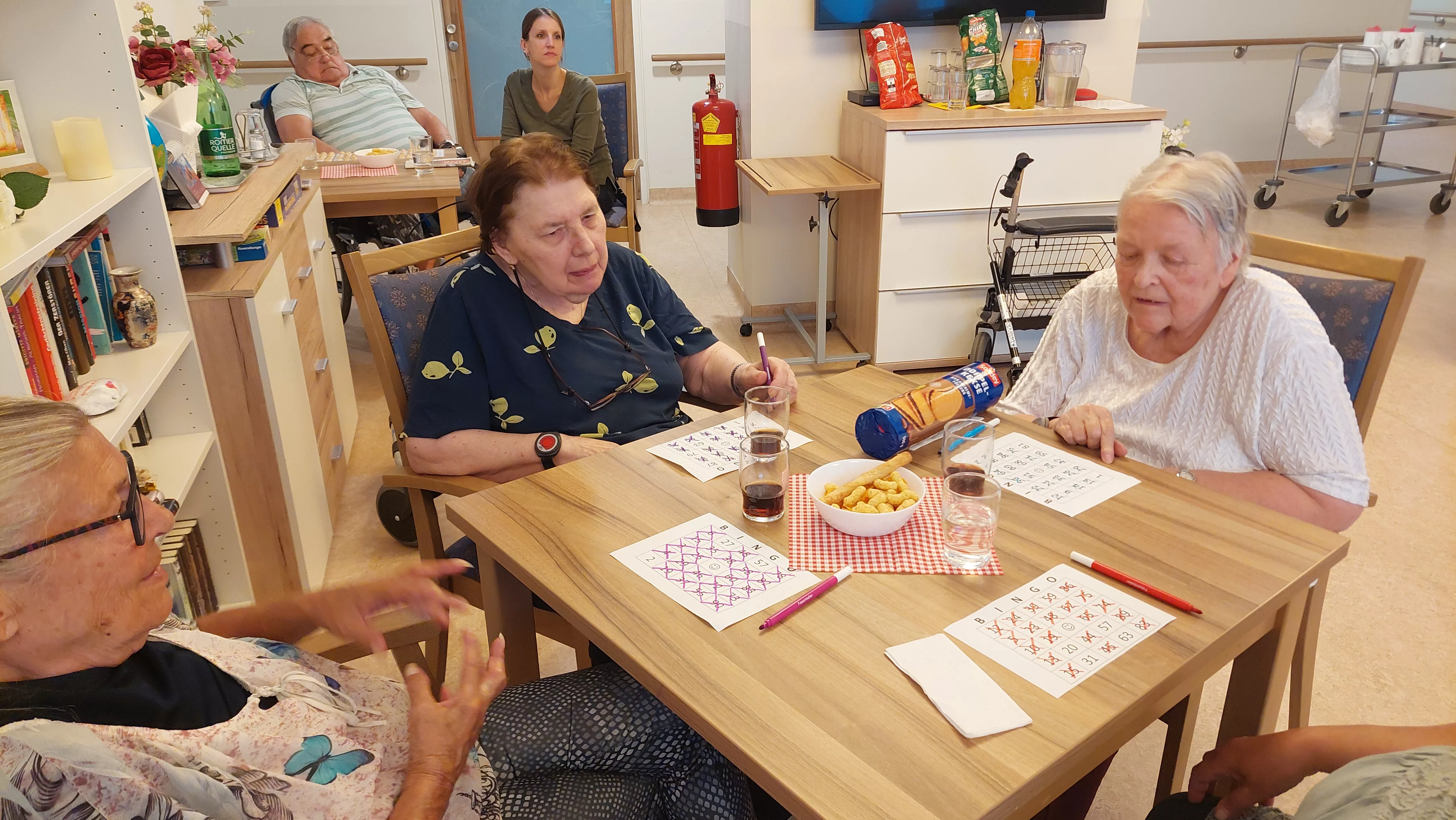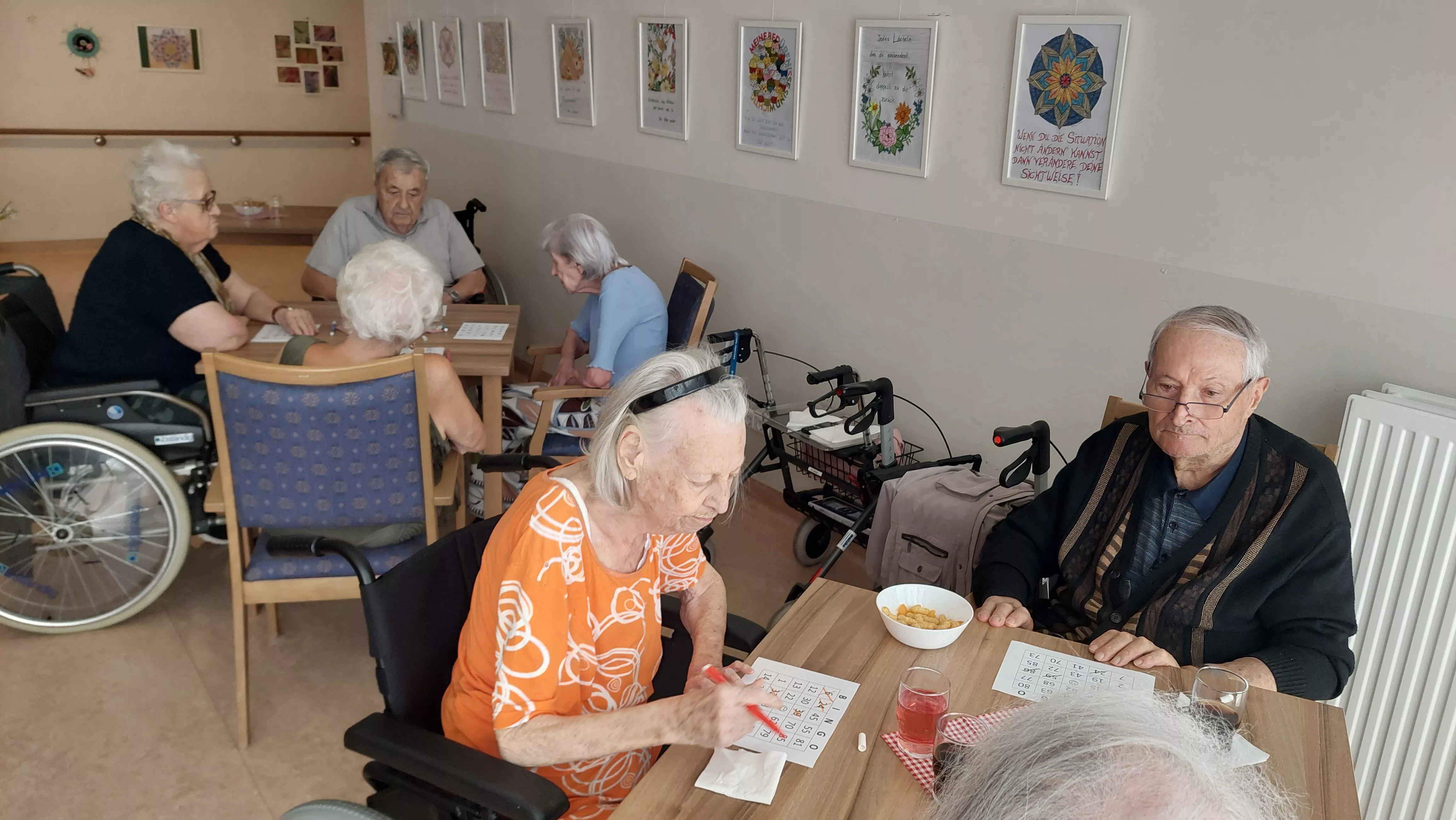 Bingo wird im Generationendorf Töllergarten gespielt. Wir haben viel Spaß. Ein vorbereiter Stift und ein Bingo-Spielblatt genügen. Zahlen werden im Sack geschüttelt, eine gezogen und auf der Karte markiert. Wer eine Reihe hat, ruft „Bingo“ und gewinnt. Am Ende gibt es für die Gewinner einen Preis.