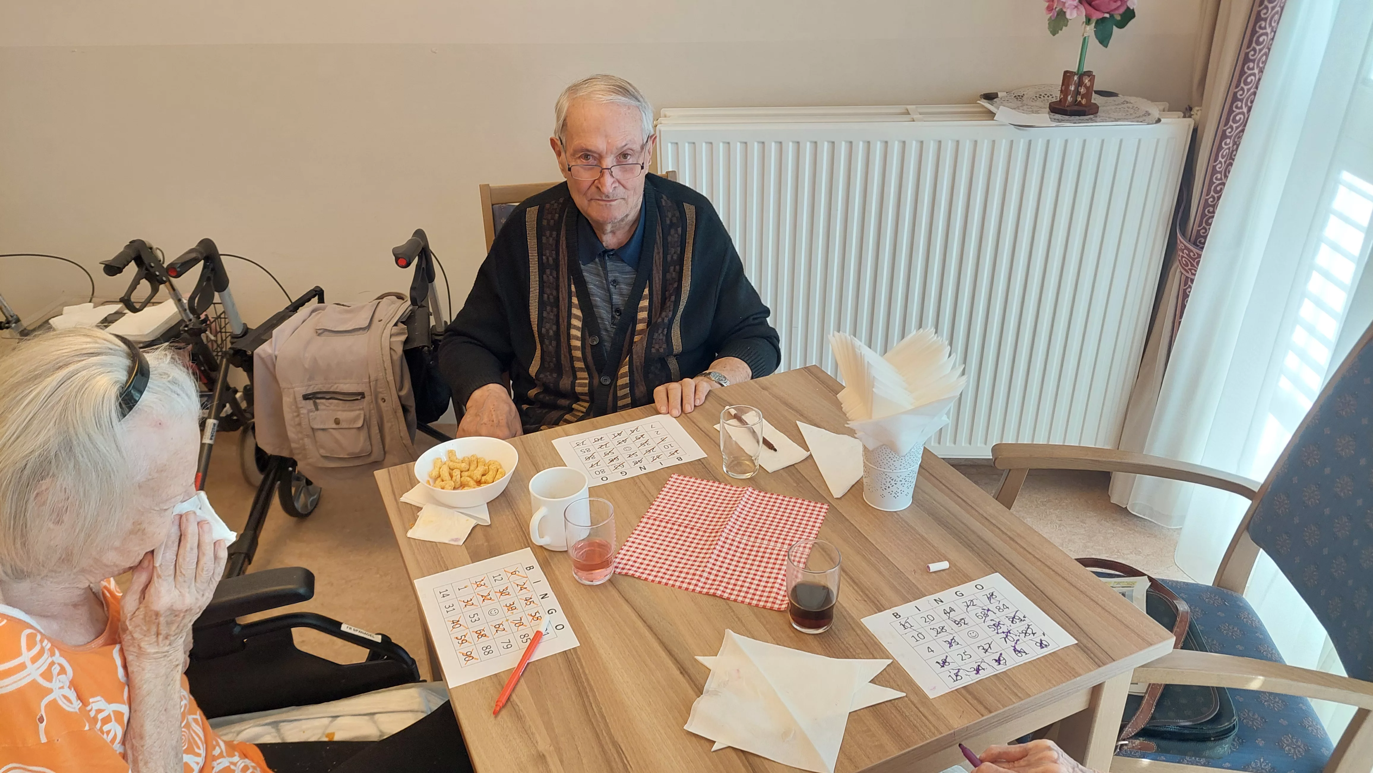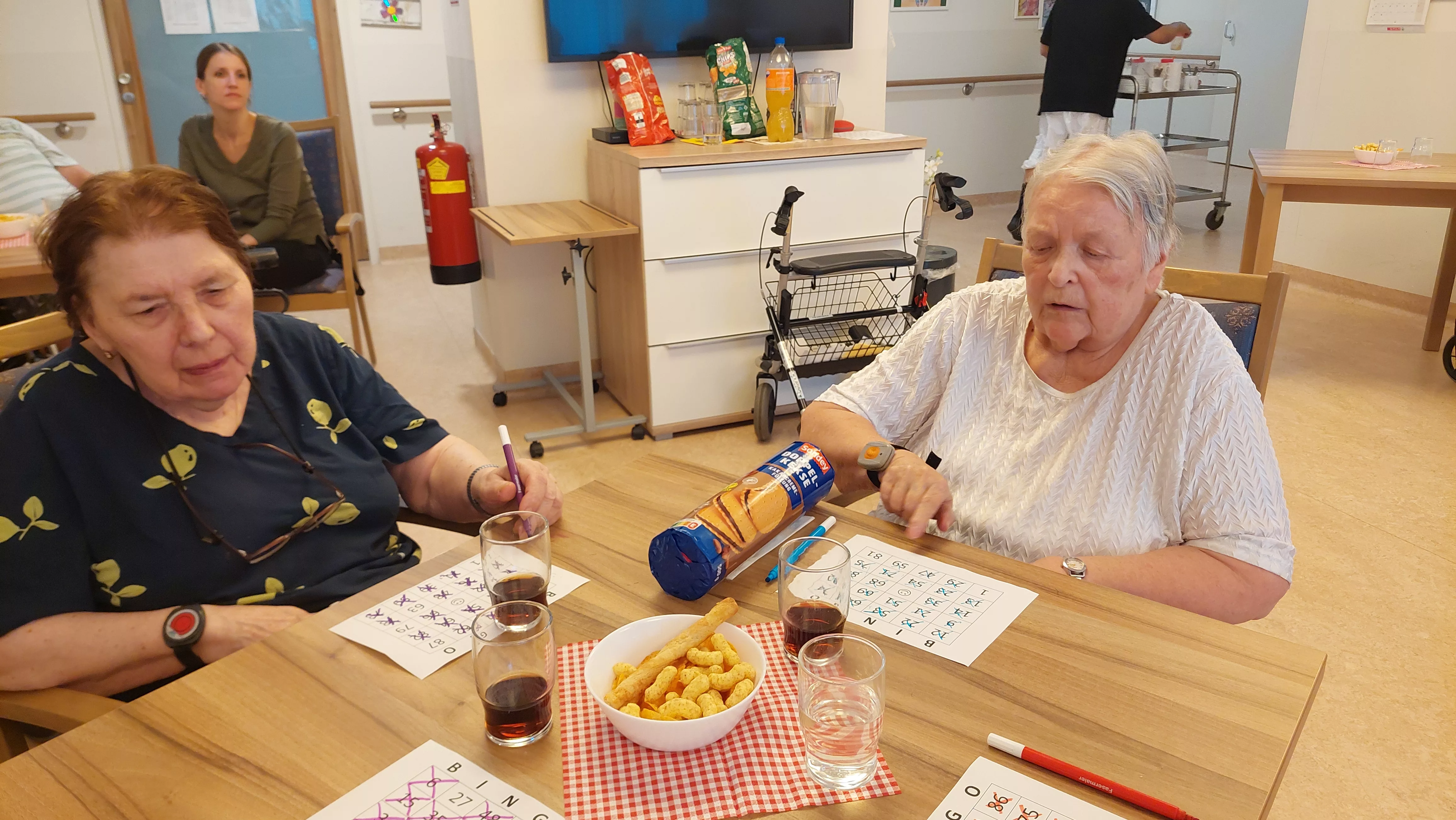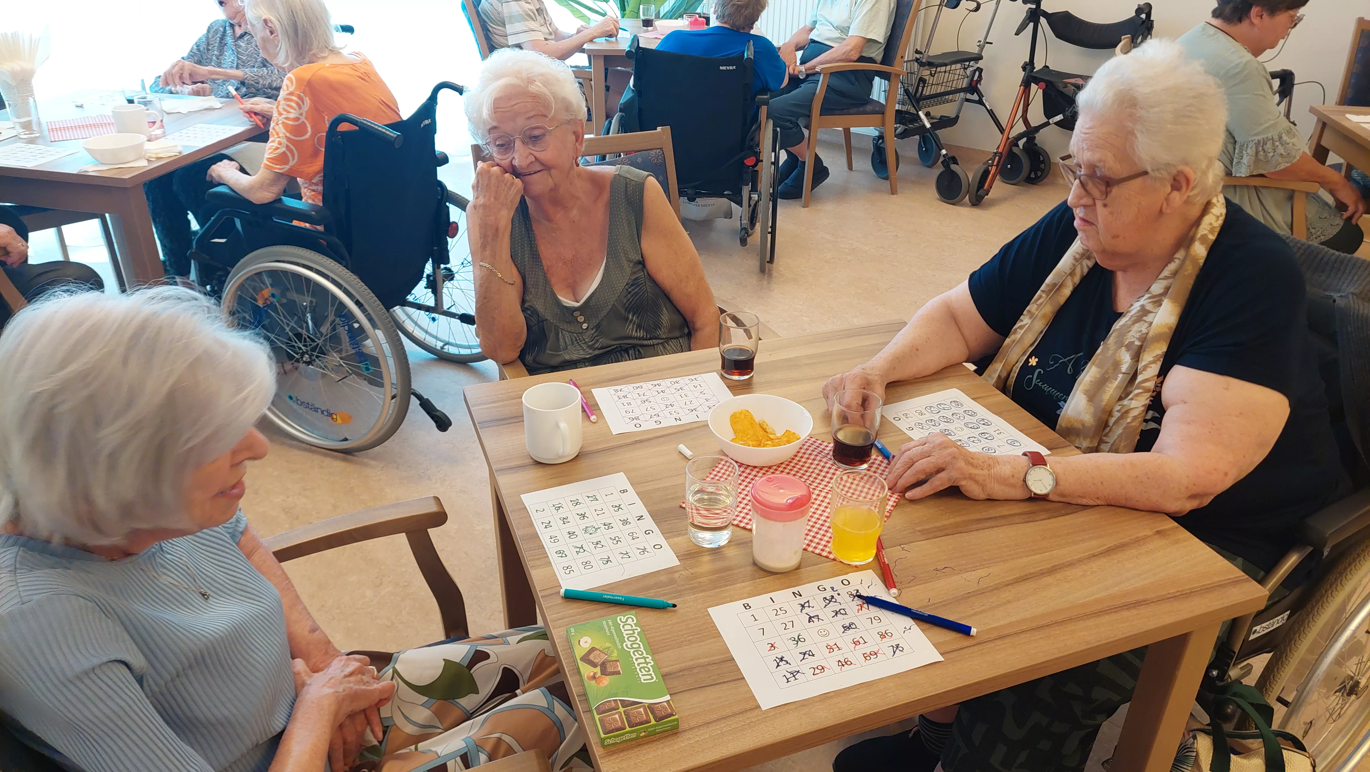 Bingo wird im Generationendorf Töllergarten gespielt. Wir haben viel Spaß. Ein vorbereiter Stift und ein Bingo-Spielblatt genügen. Zahlen werden im Sack geschüttelt, eine gezogen und auf der Karte markiert. Wer eine Reihe hat, ruft „Bingo“ und gewinnt. Am Ende gibt es für die Gewinner einen Preis.