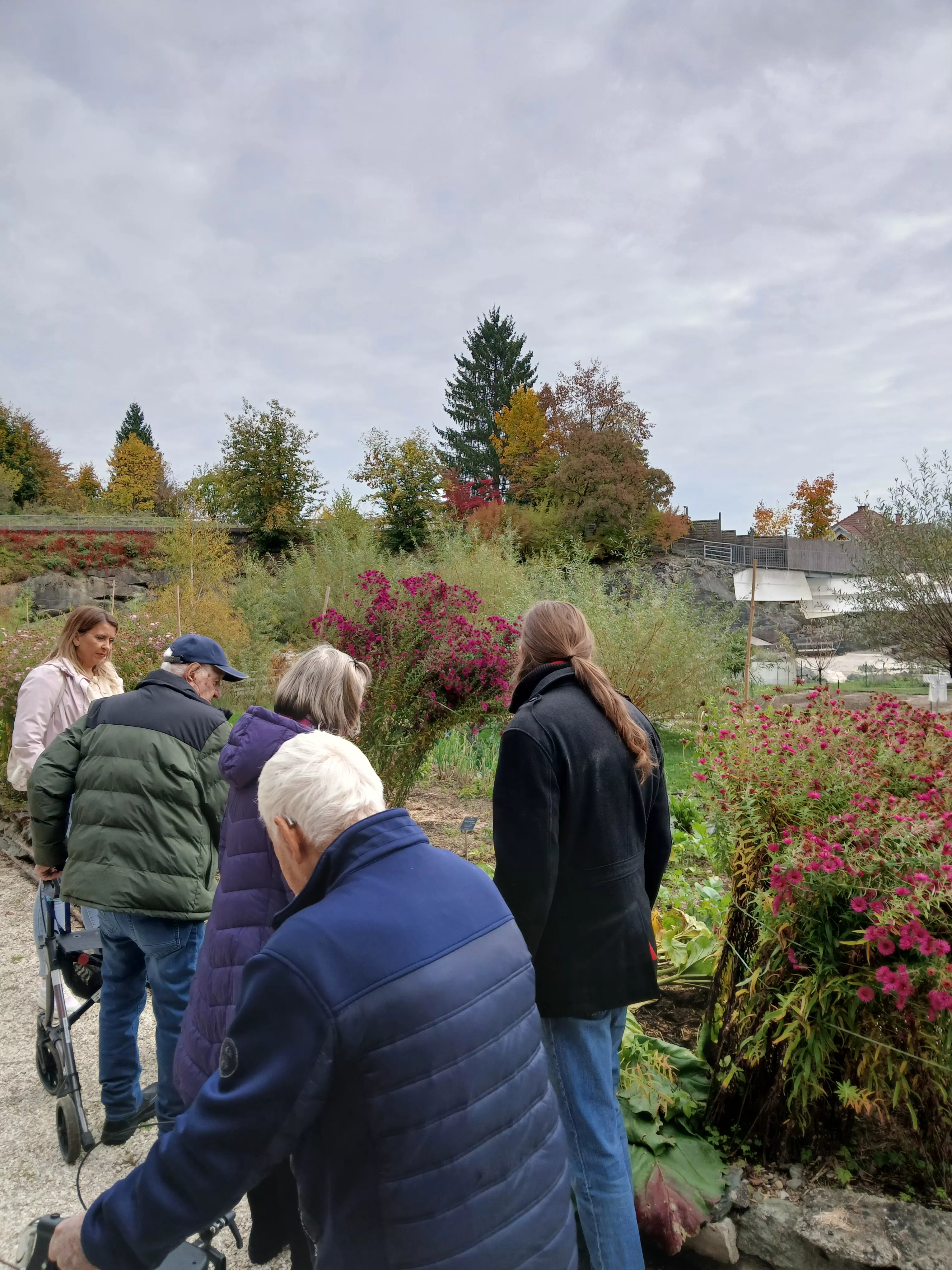 Zwischendurch blieb natürlich Zeit zum Verweilen, Staunen und Plaudern. Viele erinnerten sich an frühere Gartenarbeiten oder erzählten Geschichten über Blumen aus ihrem eigenen Garten. Die frische Luft, die Farbenvielfalt und das gemeinsame Erleben sorgten für gute Stimmung und viele lächelnde Gesichter. Es war ein Vormittag voller Natur, Freude und Gemeinschaft – ein Ausflug, der uns allen noch lange in Erinnerung bleiben wird.
