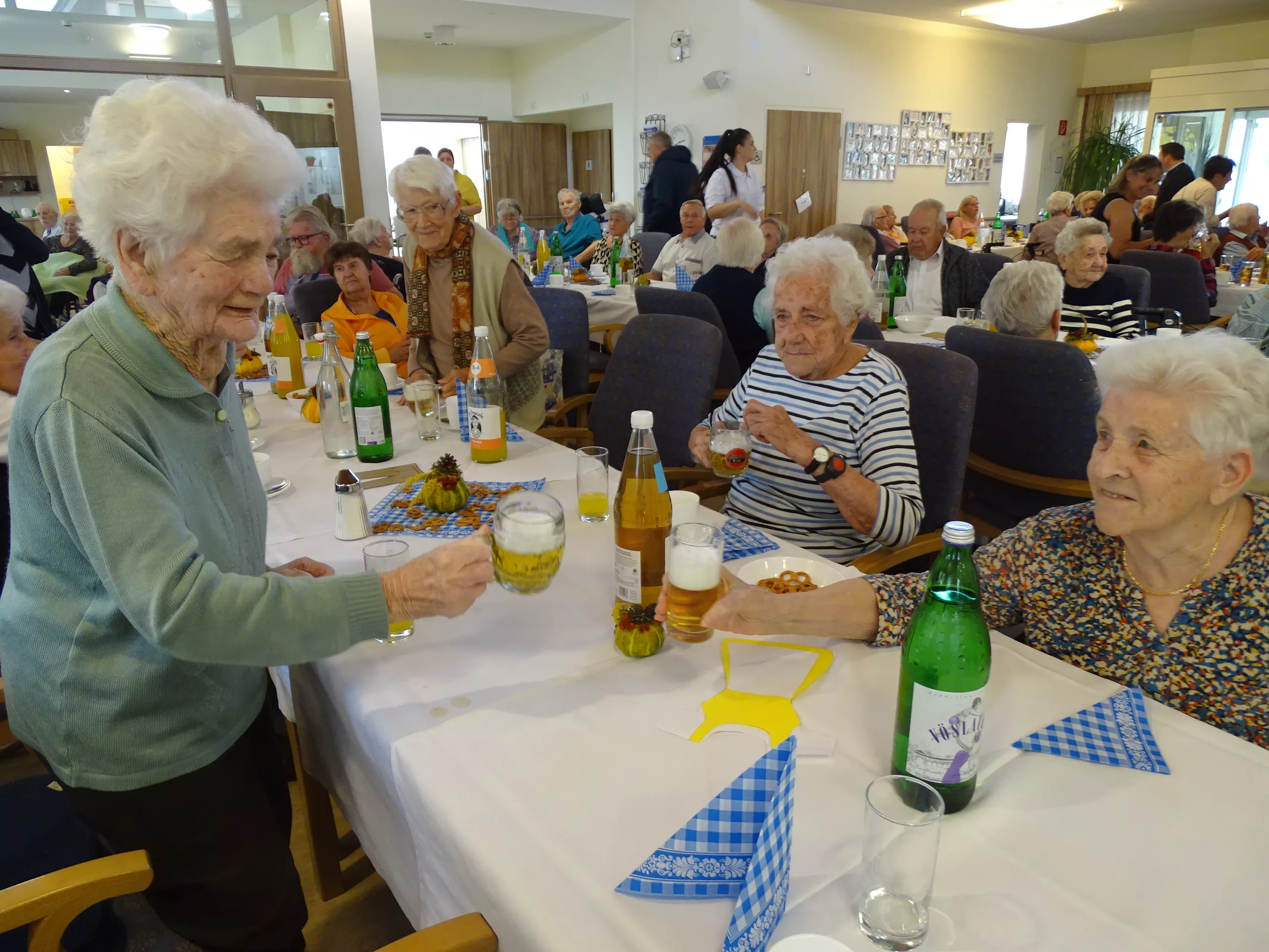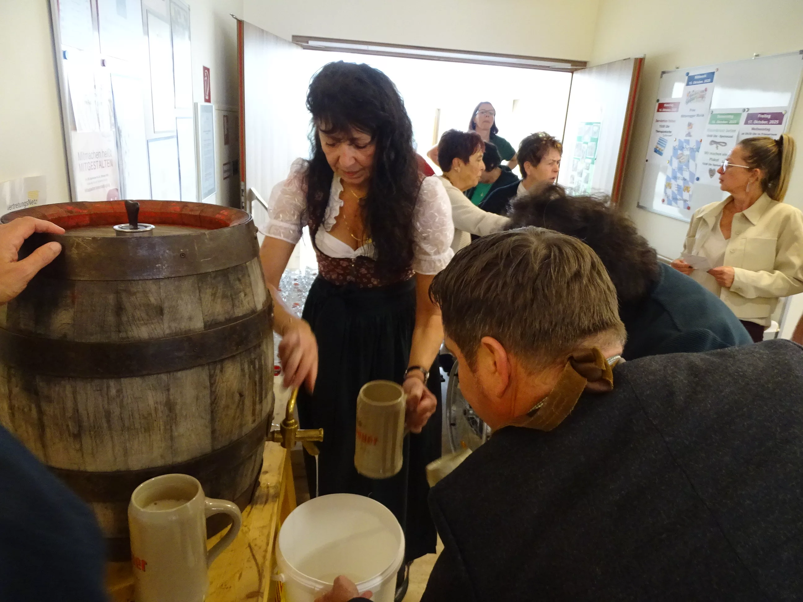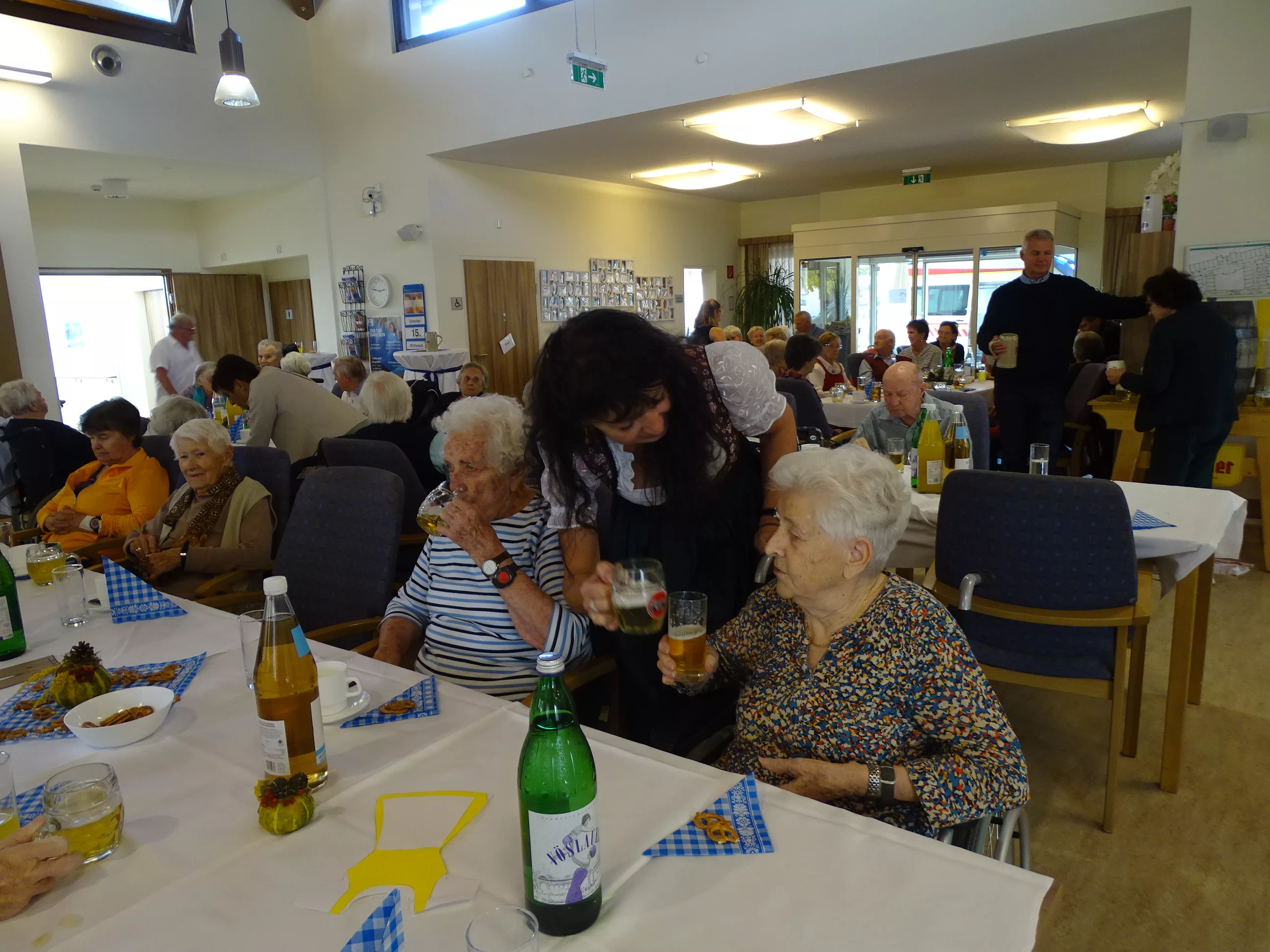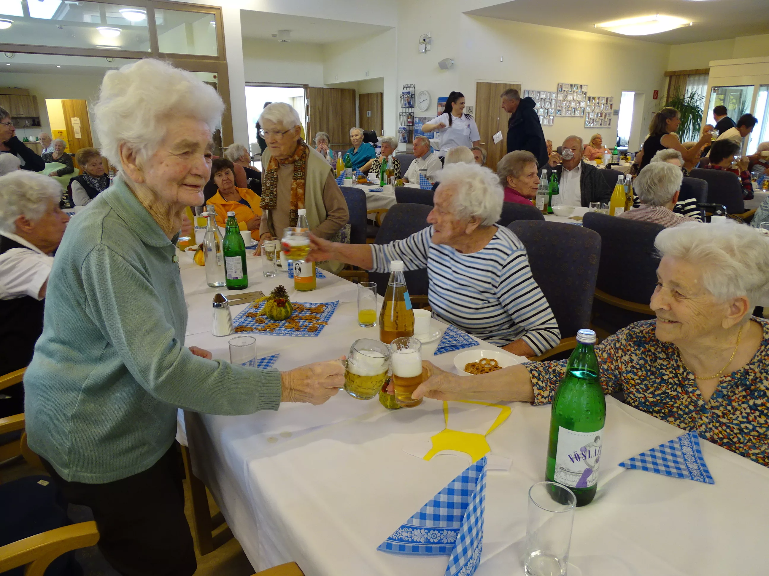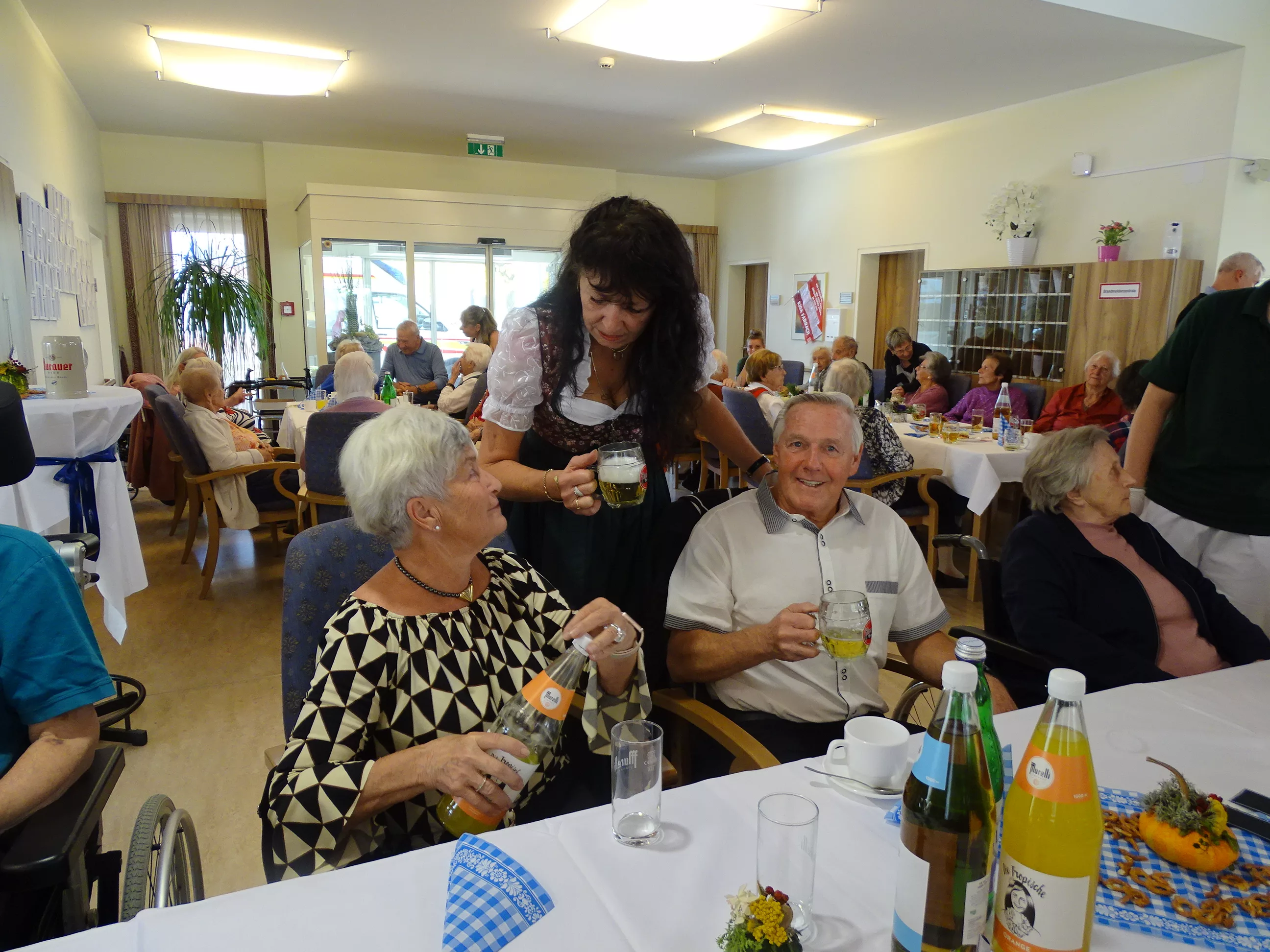 „Aonzapft is“ im Generationenpark Zeltweg! Der Bieranstich am 15. Oktober 2025 war wieder ein großes Ereignis in unserem Haus! Unsere BewohnerInnen freuten sich schon sehr auf unser diesjähriges Oktoberfest. Die „Breitenegger“ gaben ihre Musik wieder zum Besten, von Oldies bis Schlager war alles dabei. Unsere BewohnerInnen und MitarbeiterInnen konnten die Füße kaum still halten, es wurde getanzt, gesungen und gelacht! Der absolulte Höhepunkt war an diesem Tag der Besuch des Bürgermeisters Herrn Ing. Günter Reichhold und die Gemeinderätinnen Frau Rita Hartner und Frau Anneliese Steinkellner, sowie die Stadträtin Frau Brigitte Konrad. Absolut souverän wurde der Bieranstich von unserem Herrn Bürgermeister Reichhold, unter der Aufsicht des „Murauer Bier“ Dipl. Biersommelier Herrn Robert Jäger durchgeführt. Die Gemeinde- und Stadträtinnen servierten die Biere unseren BewohnerInnen und es wurde mit Lachen angestossen und das köstliche Murauer Bier genossen! Nach dem Genuß des Murauer Biers wurden unsere BewohnerInnen mit einer deftigen Weißwurst überrascht!