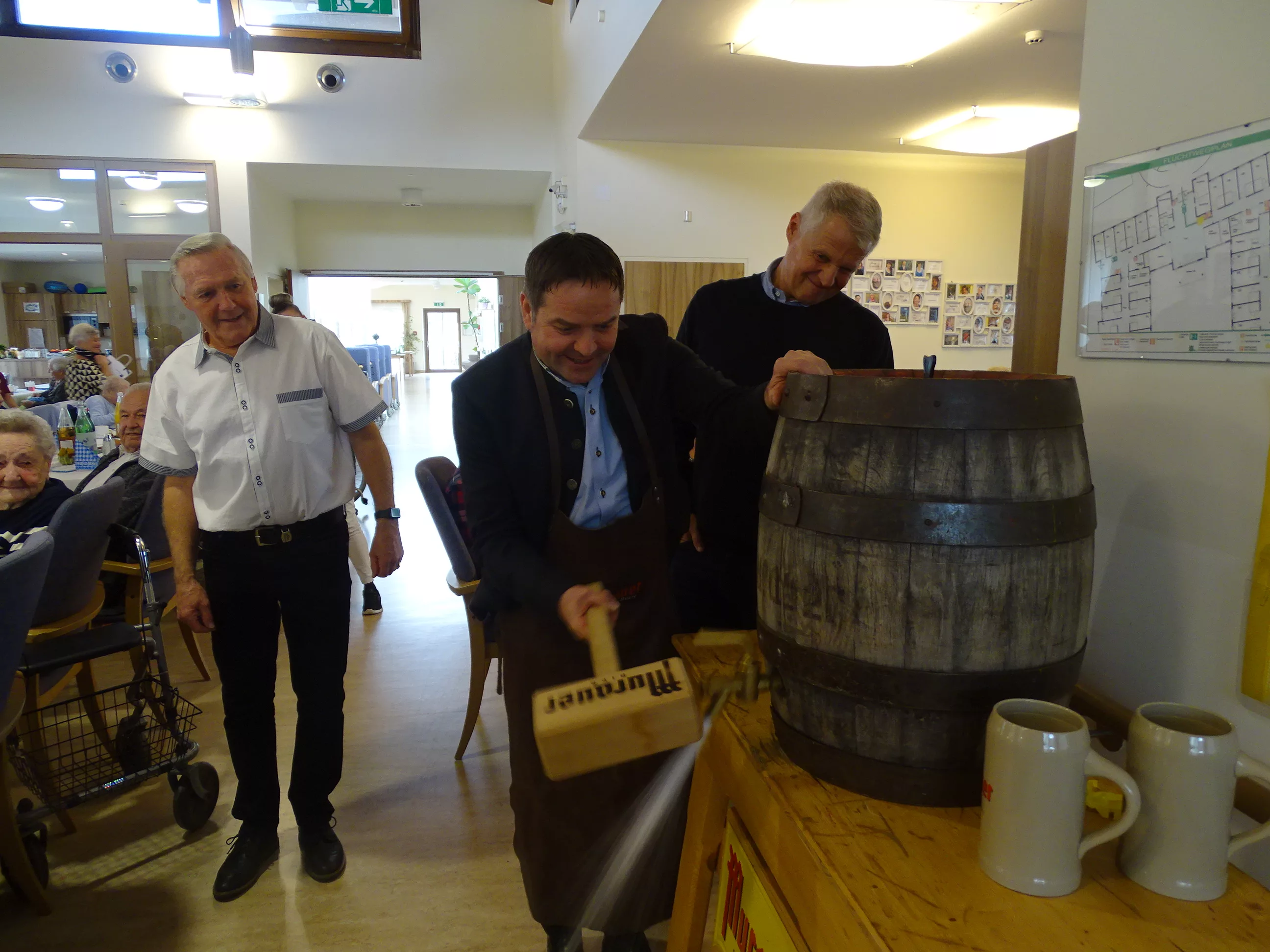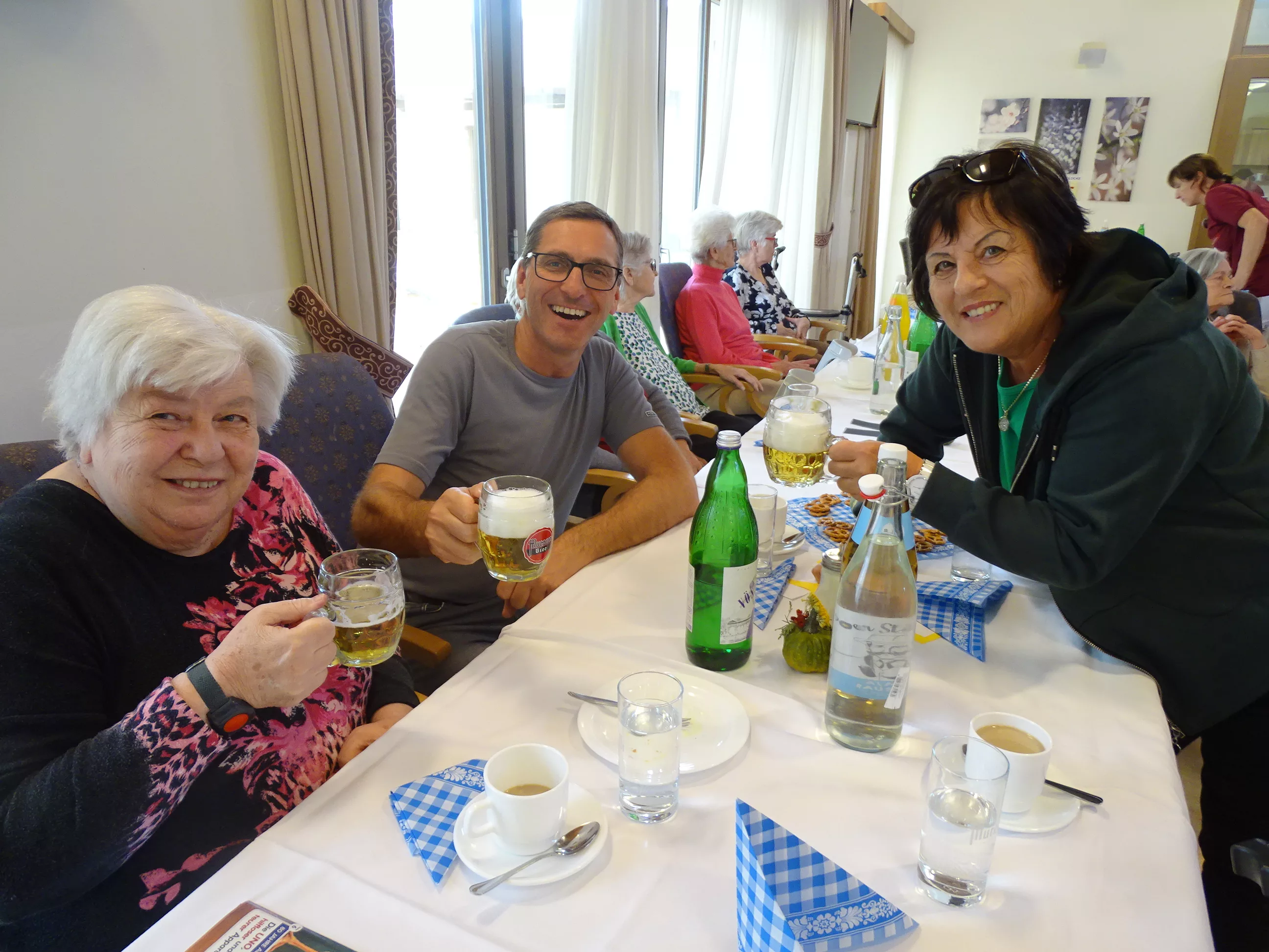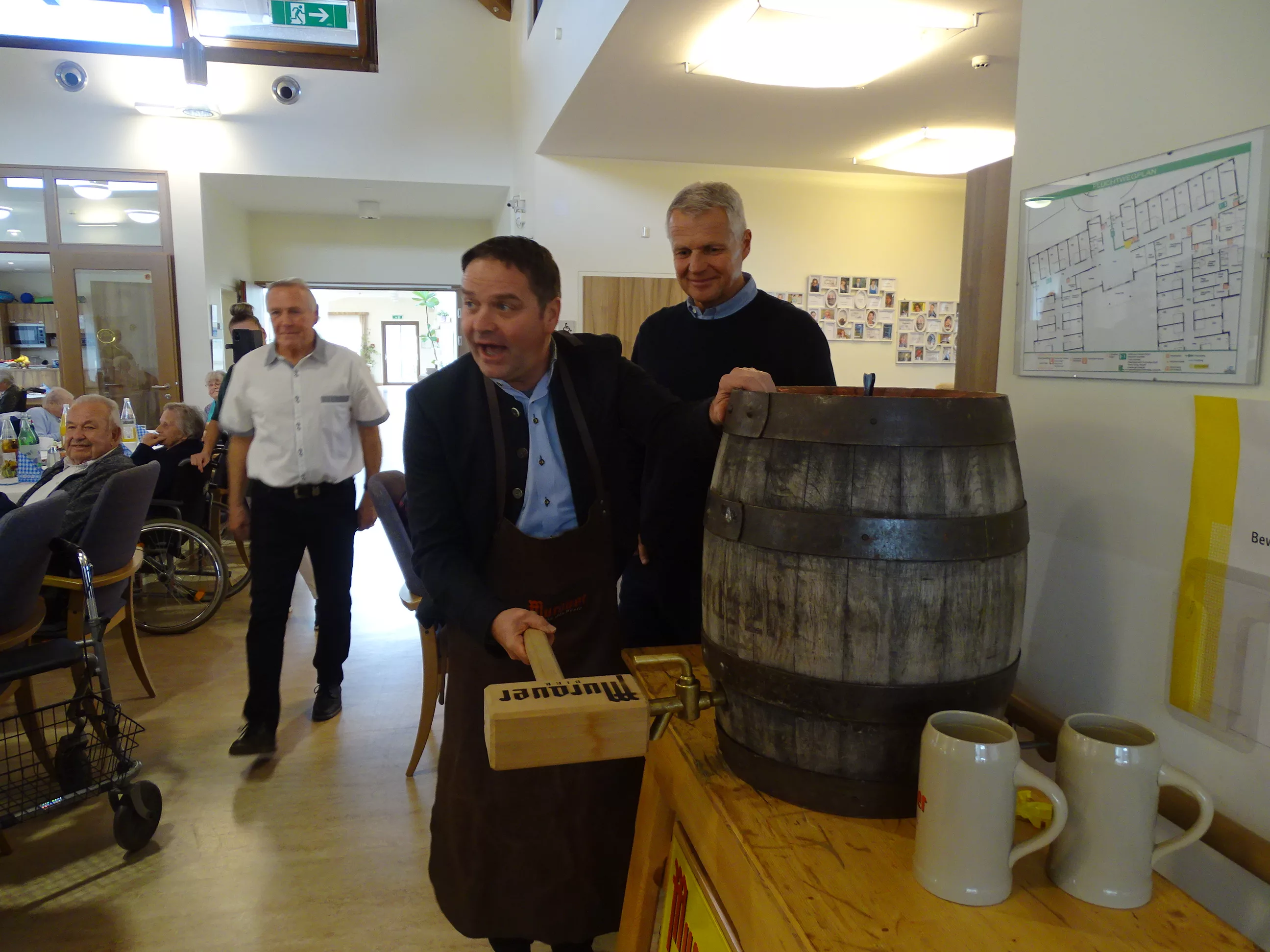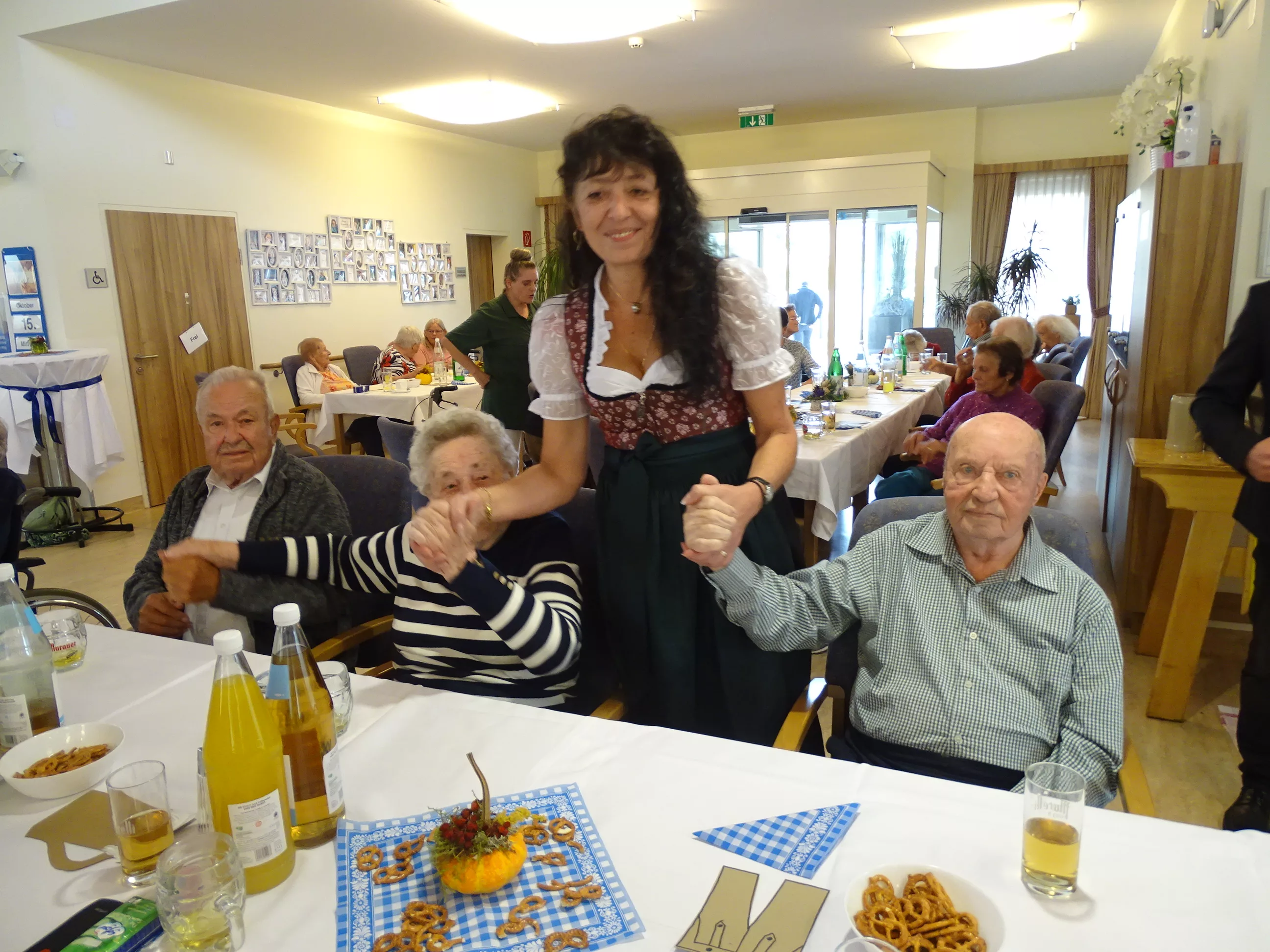 „Aonzapft is“ im Generationenpark Zeltweg! Der Bieranstich am 15. Oktober 2025 war wieder ein großes Ereignis in unserem Haus! Unsere BewohnerInnen freuten sich schon sehr auf unser diesjähriges Oktoberfest. Die „Breitenegger“ gaben ihre Musik wieder zum Besten, von Oldies bis Schlager war alles dabei. Unsere BewohnerInnen und MitarbeiterInnen konnten die Füße kaum still halten, es wurde getanzt, gesungen und gelacht! Der absolulte Höhepunkt war an diesem Tag der Besuch des Bürgermeisters Herrn Ing. Günter Reichhold und die Gemeinderätinnen Frau Rita Hartner und Frau Anneliese Steinkellner, sowie die Stadträtin Frau Brigitte Konrad. Absolut souverän wurde der Bieranstich von unserem Herrn Bürgermeister Reichhold, unter der Aufsicht des „Murauer Bier“ Dipl. Biersommelier Herrn Robert Jäger durchgeführt. Die Gemeinde- und Stadträtinnen servierten die Biere unseren BewohnerInnen und es wurde mit Lachen angestossen und das köstliche Murauer Bier genossen! Nach dem Genuß des Murauer Biers wurden unsere BewohnerInnen mit einer deftigen Weißwurst überrascht!