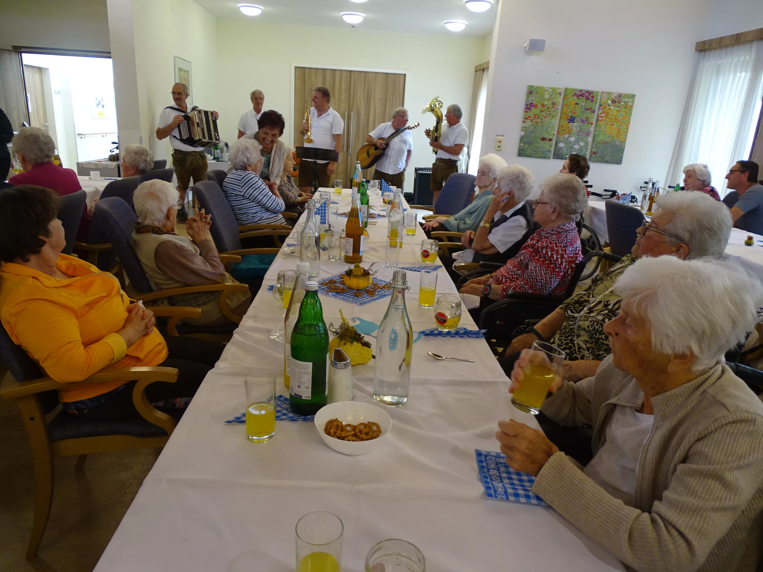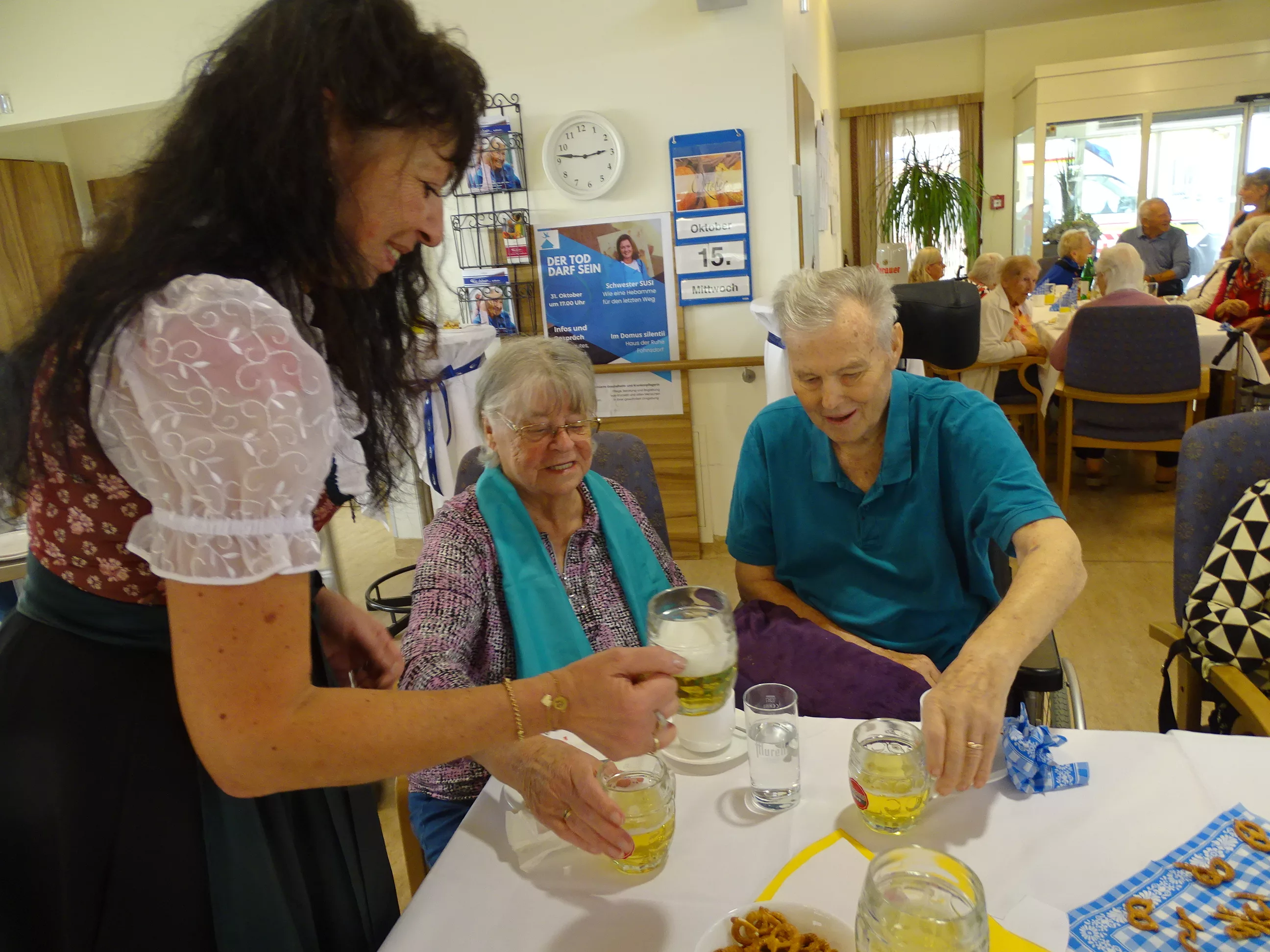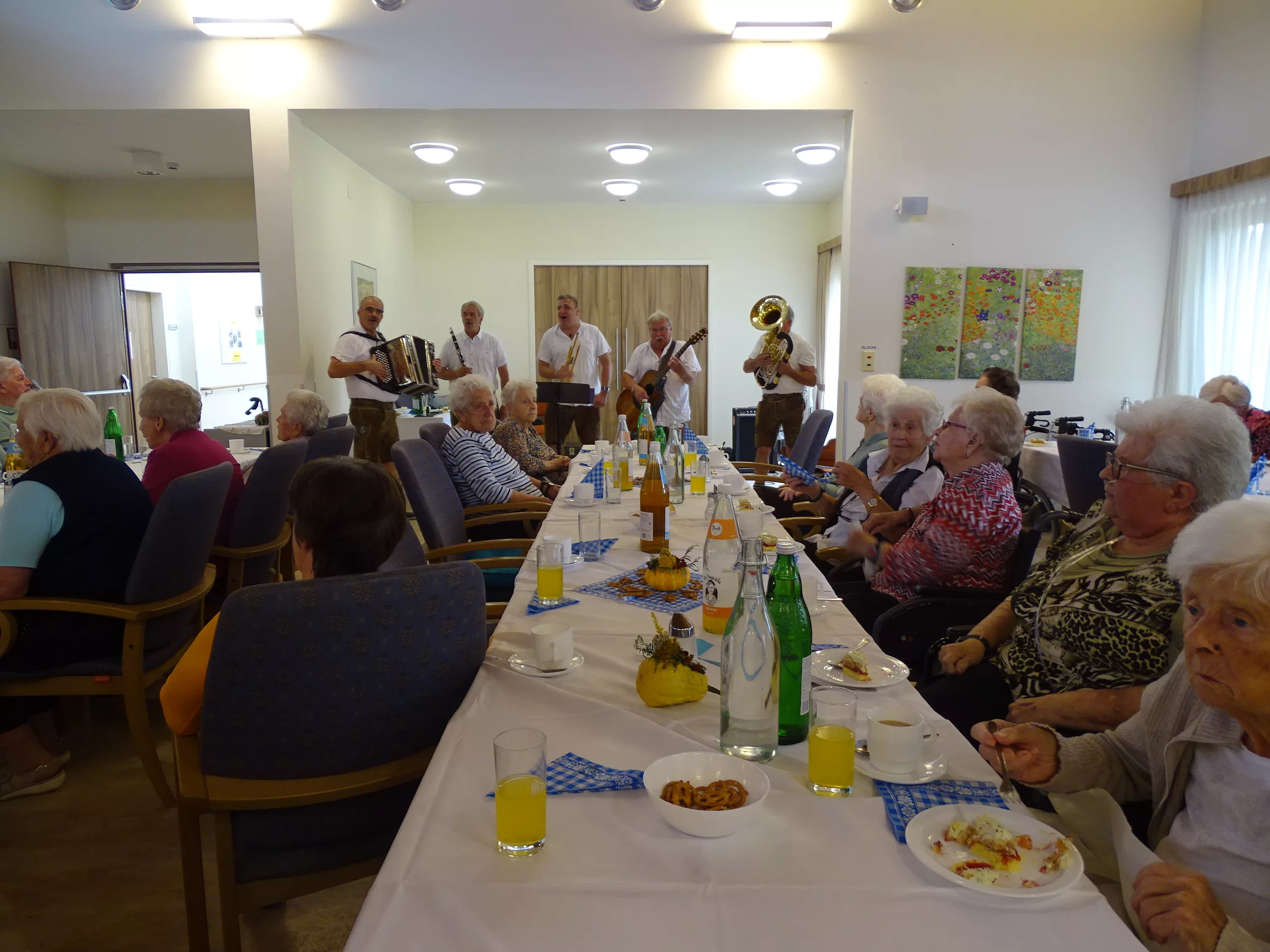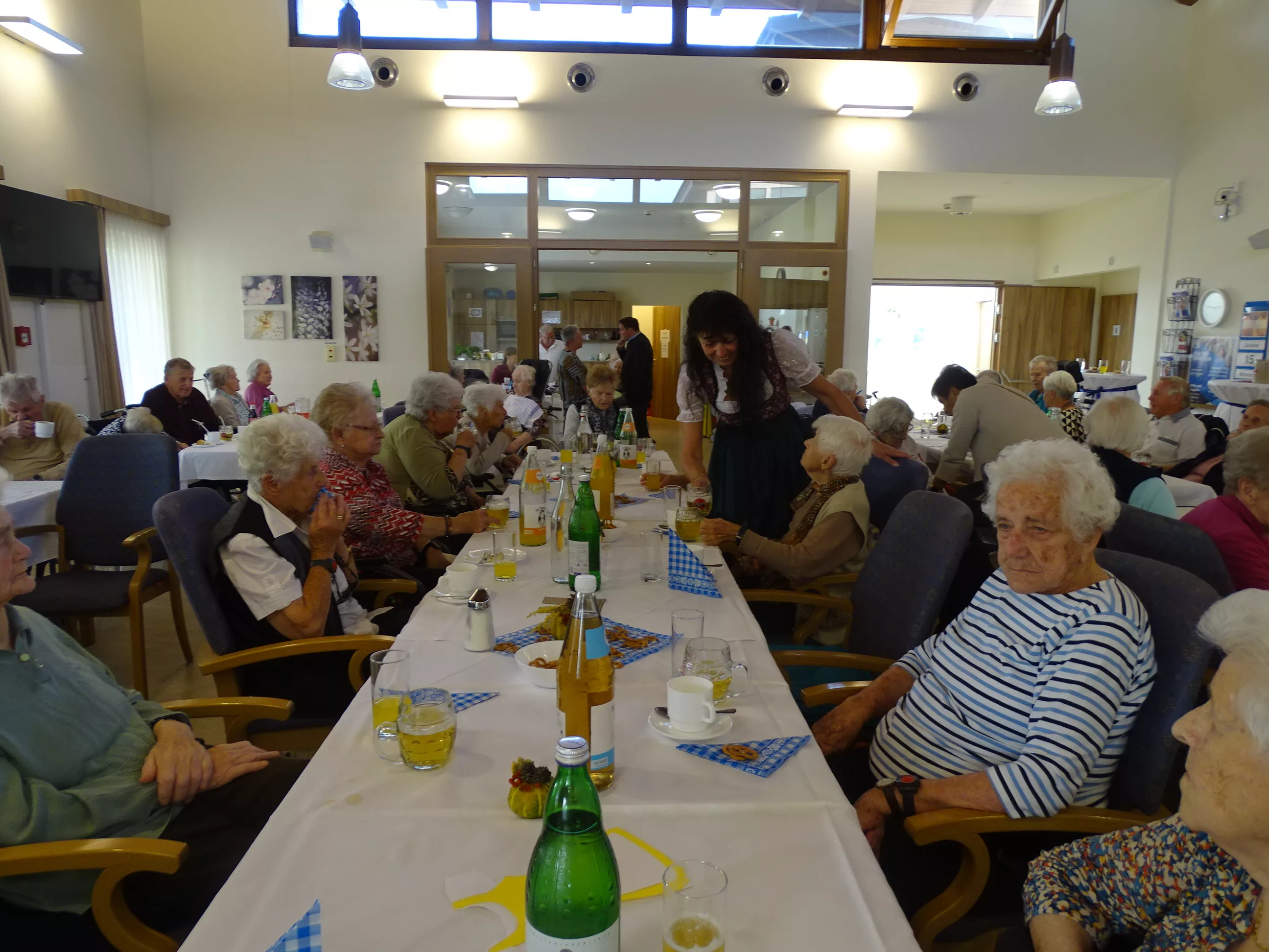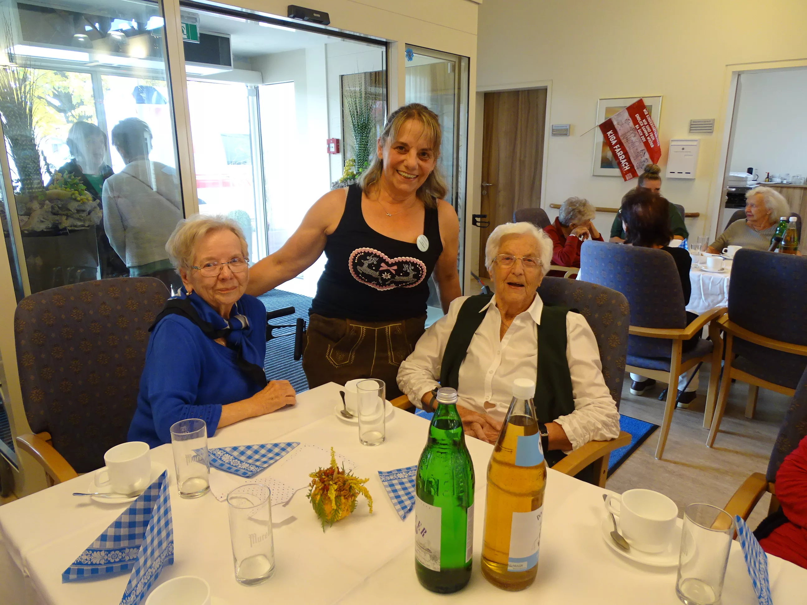 „Aonzapft is“ im Generationenpark Zeltweg! Der Bieranstich am 15. Oktober 2025 war wieder ein großes Ereignis in unserem Haus! Unsere BewohnerInnen freuten sich schon sehr auf unser diesjähriges Oktoberfest. Die „Breitenegger“ gaben ihre Musik wieder zum Besten, von Oldies bis Schlager war alles dabei. Unsere BewohnerInnen und MitarbeiterInnen konnten die Füße kaum still halten, es wurde getanzt, gesungen und gelacht! Der absolulte Höhepunkt war an diesem Tag der Besuch des Bürgermeisters Herrn Ing. Günter Reichhold und die Gemeinderätinnen Frau Rita Hartner und Frau Anneliese Steinkellner, sowie die Stadträtin Frau Brigitte Konrad. Absolut souverän wurde der Bieranstich von unserem Herrn Bürgermeister Reichhold, unter der Aufsicht des „Murauer Bier“ Dipl. Biersommelier Herrn Robert Jäger durchgeführt. Die Gemeinde- und Stadträtinnen servierten die Biere unseren BewohnerInnen und es wurde mit Lachen angestossen und das köstliche Murauer Bier genossen! Nach dem Genuß des Murauer Biers wurden unsere BewohnerInnen mit einer deftigen Weißwurst überrascht!