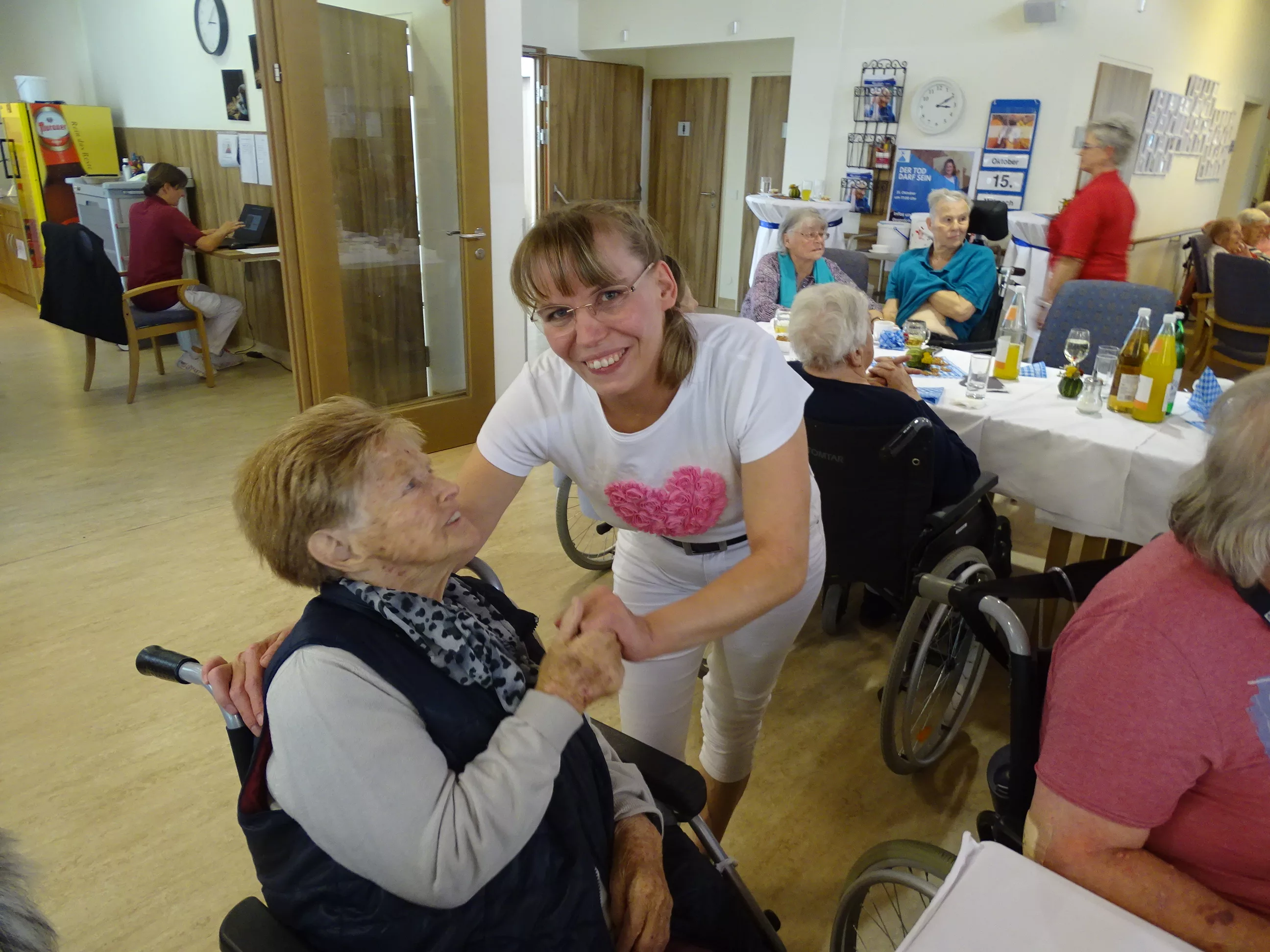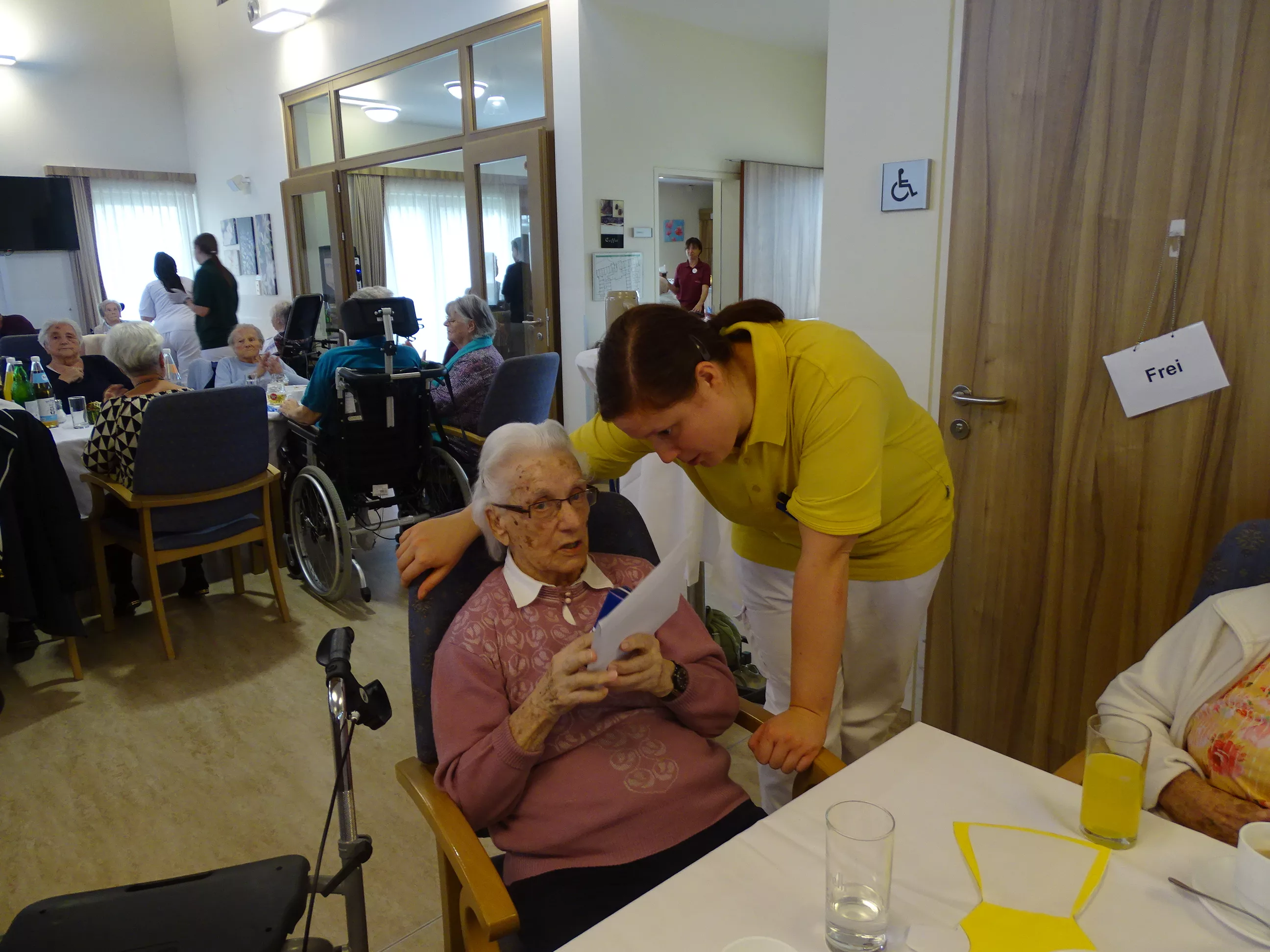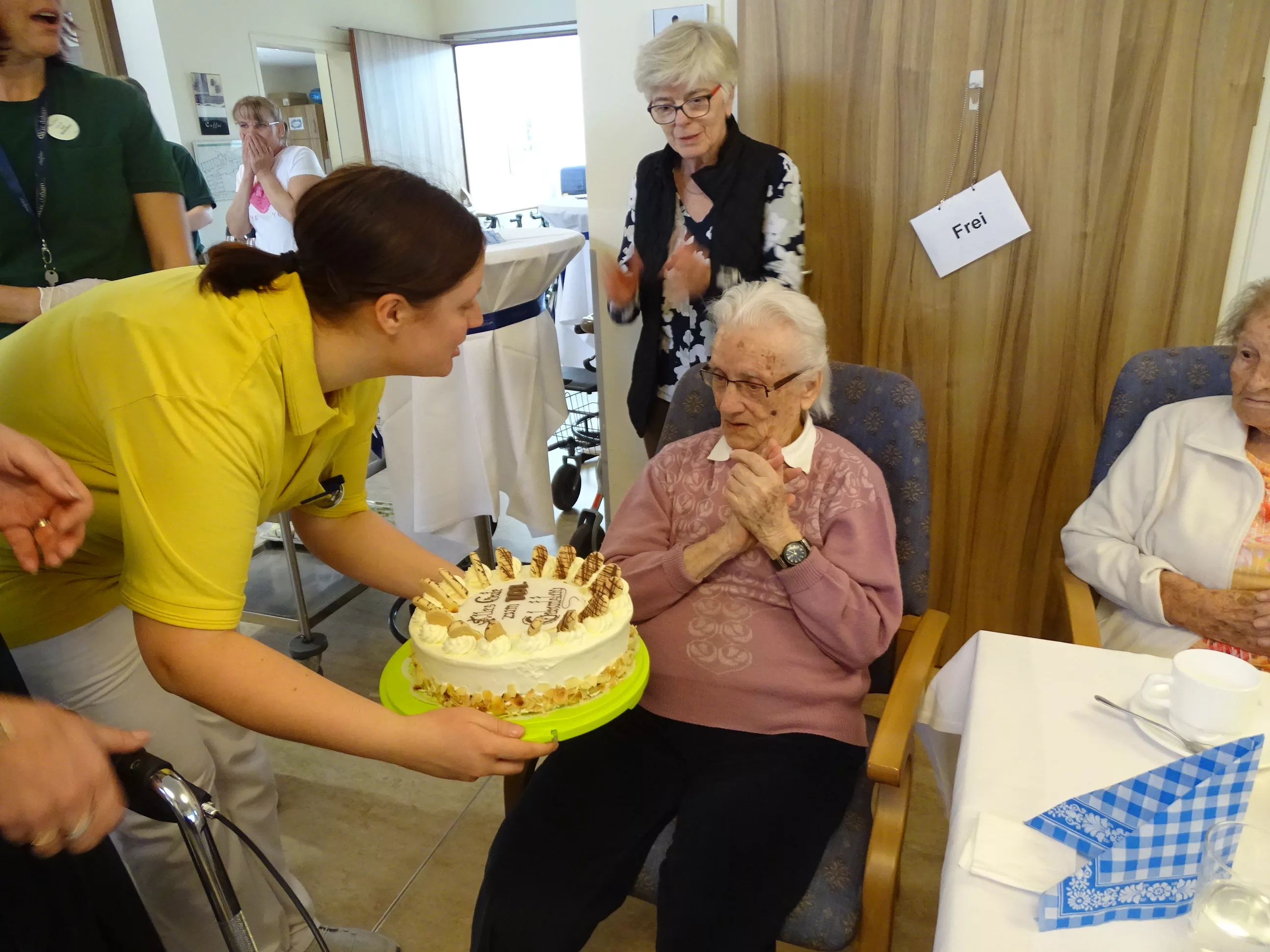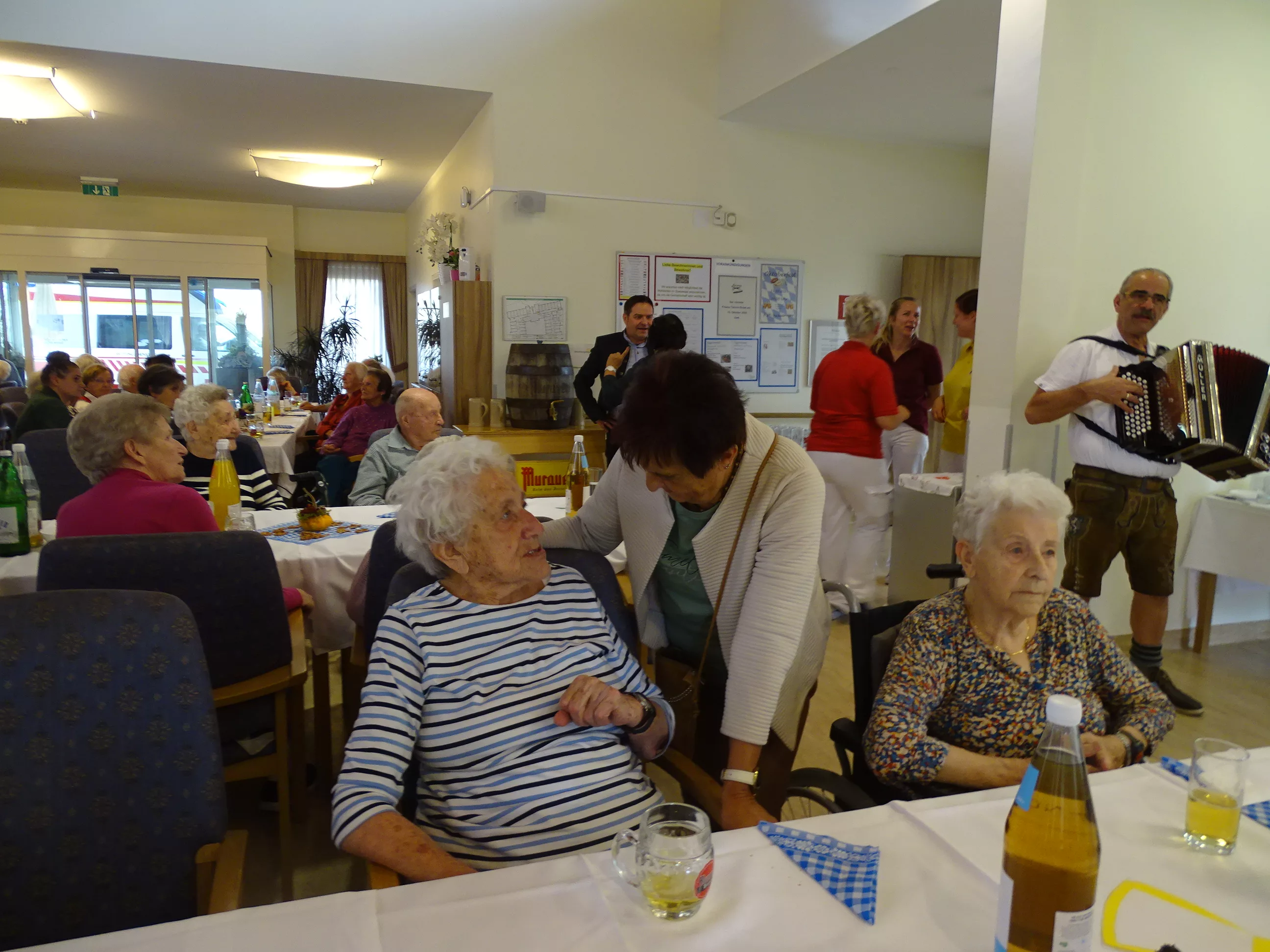 Ein weiterer Höhepunkt dieses Tages war der 101. Geburtstag von unserer Bewohnerin Frau Maria Mitteregger, Unsere Heimleiterin Frau Maria Heibili und unsere Pflegedienstleitung Frau Christine Klingsbigl-Reif überraschten sie mit einer Malakofftorte, welche sie sofort mit ihren Tischnachbarn verspeiste.