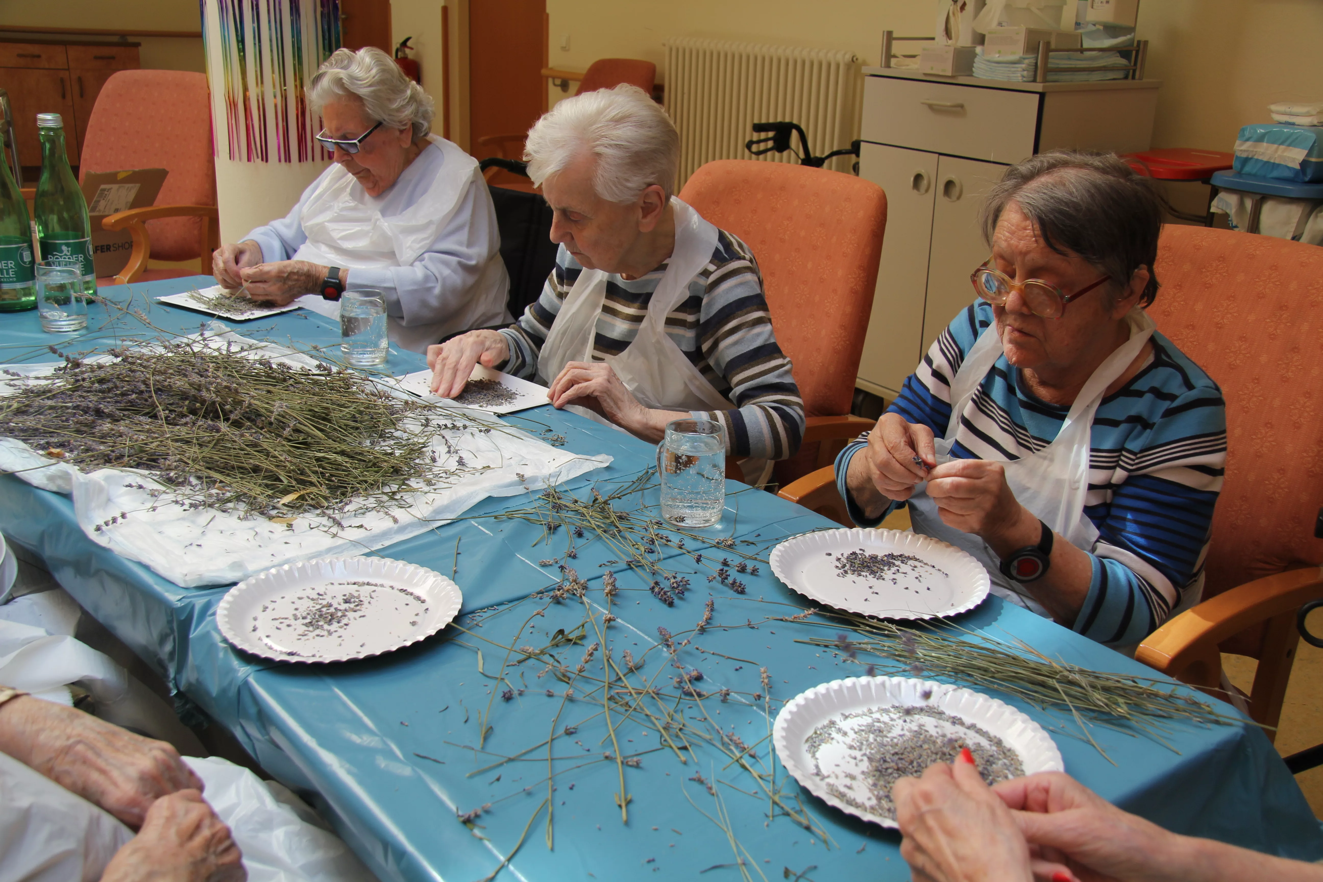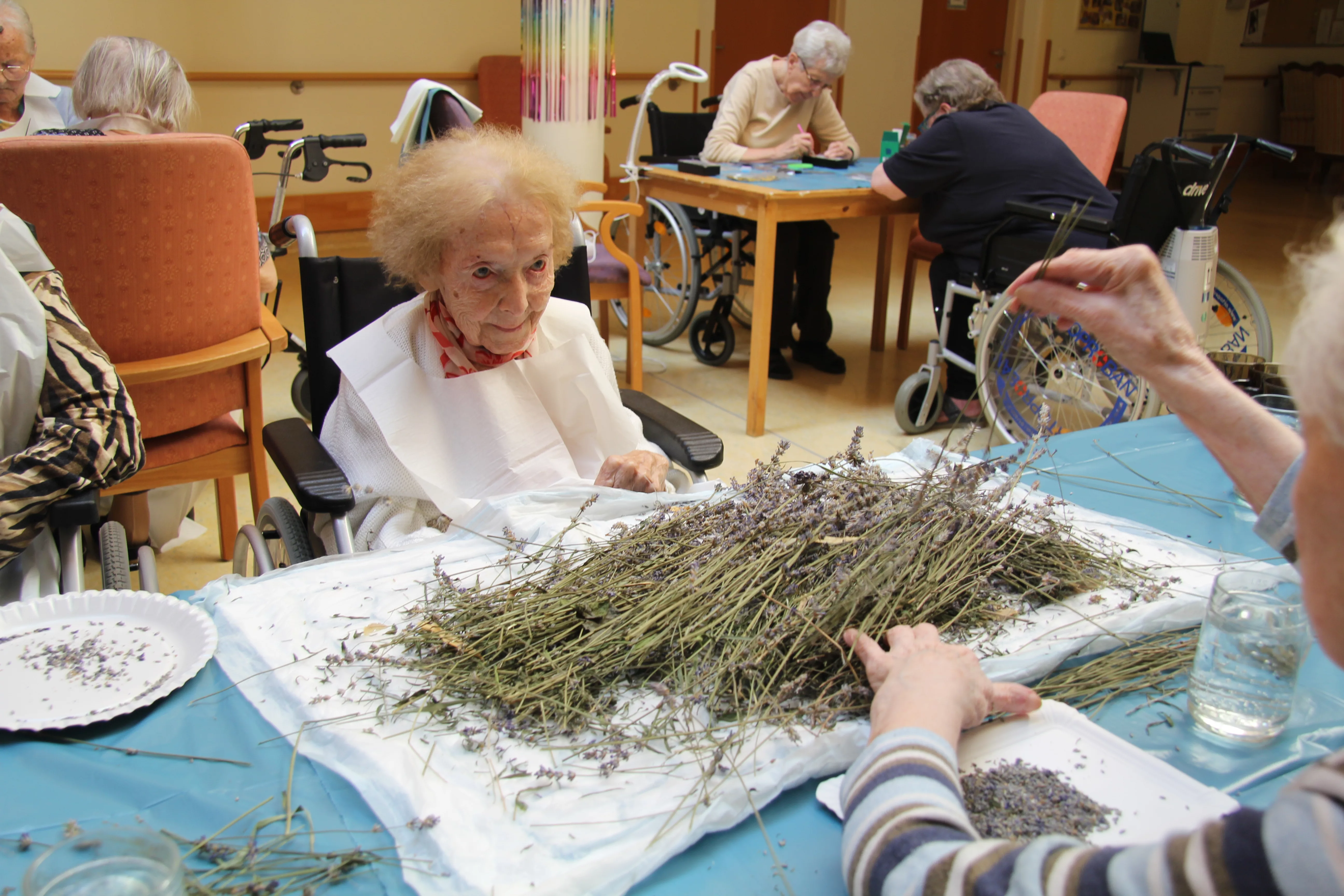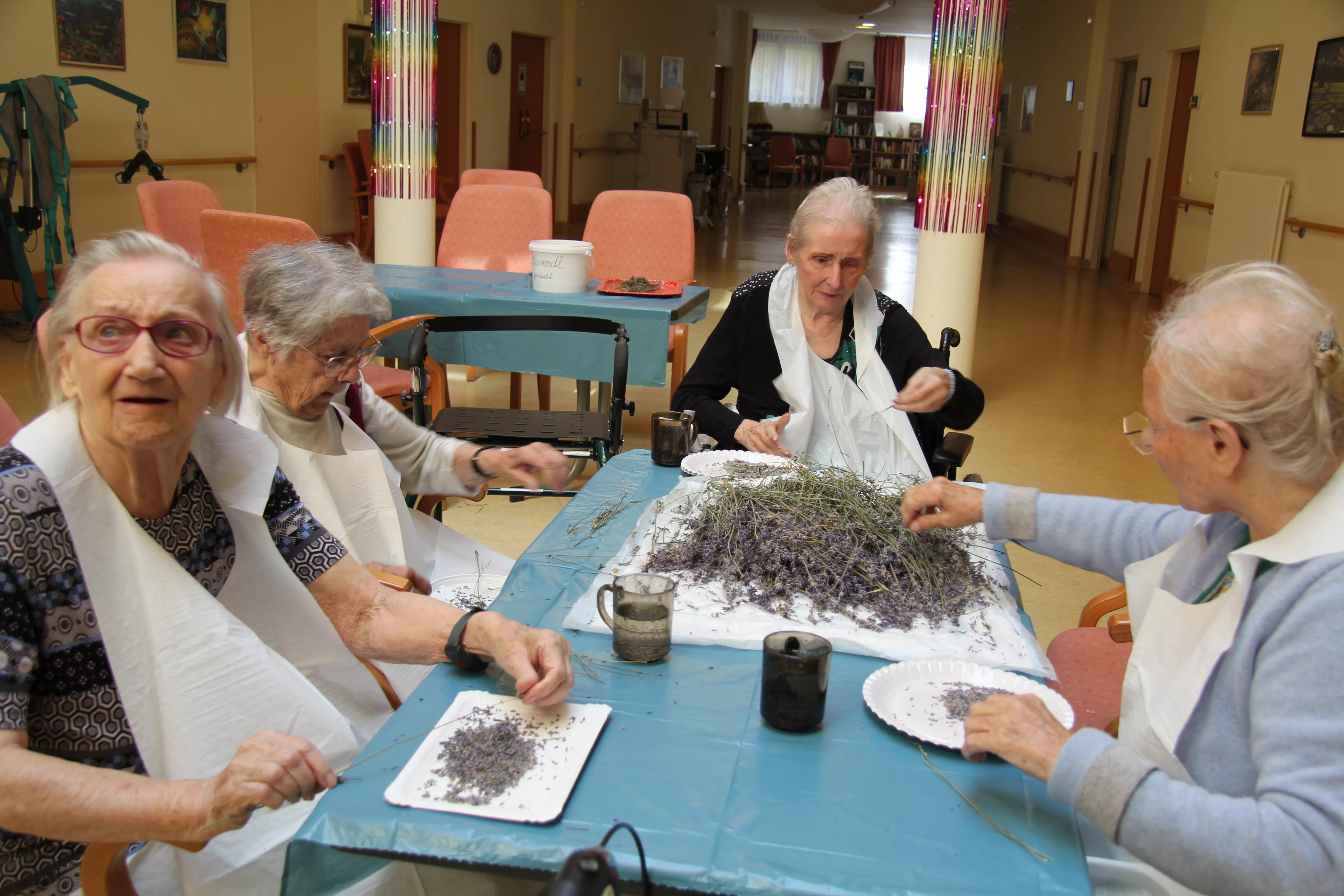 Lavendelernte Mit jeder Menge guten Laune binden wir auch heuer wieder unsere Lavendelsträußchen mit dem geernteten Lavendel aus dem hauseigenen Garten.