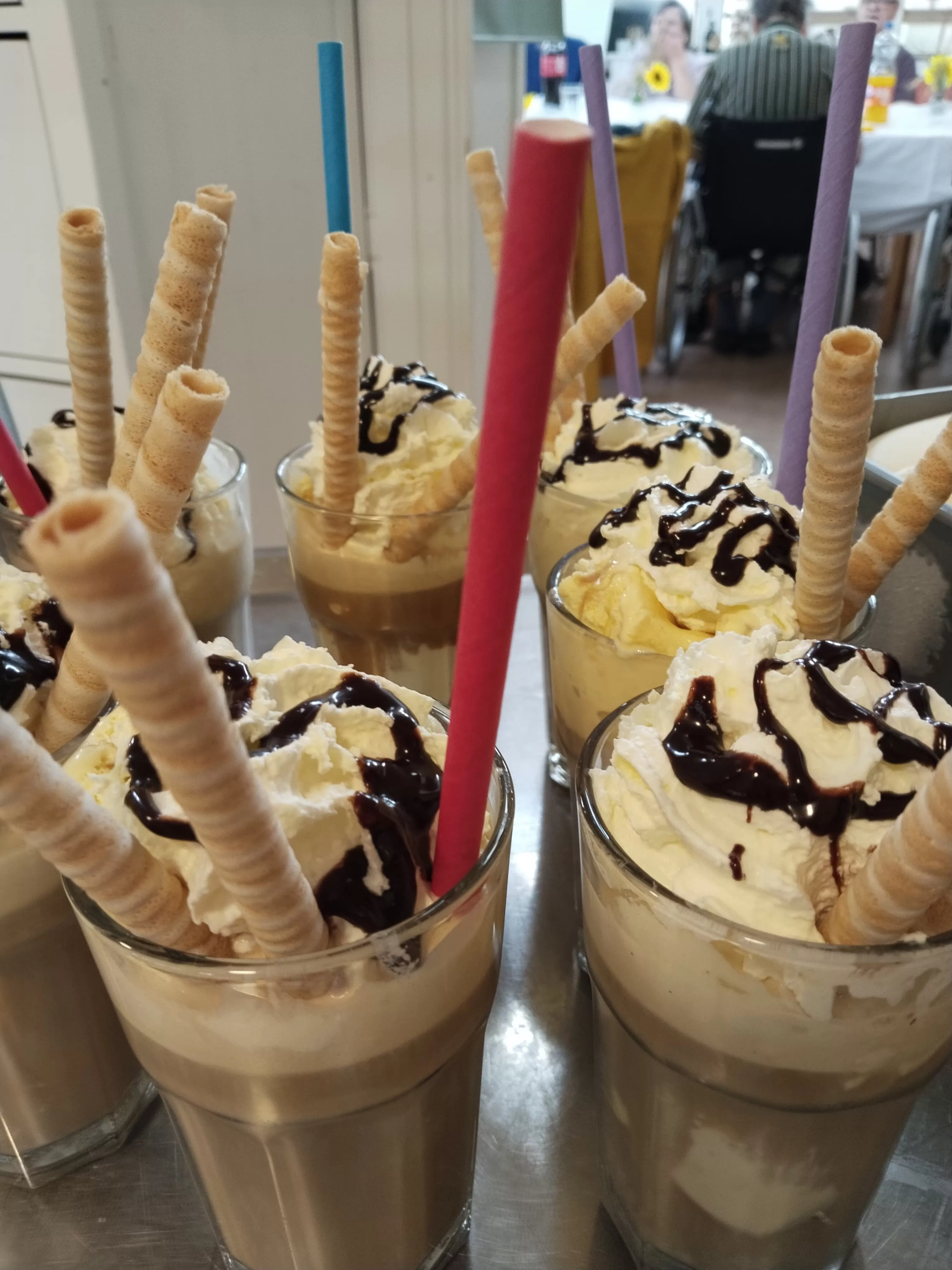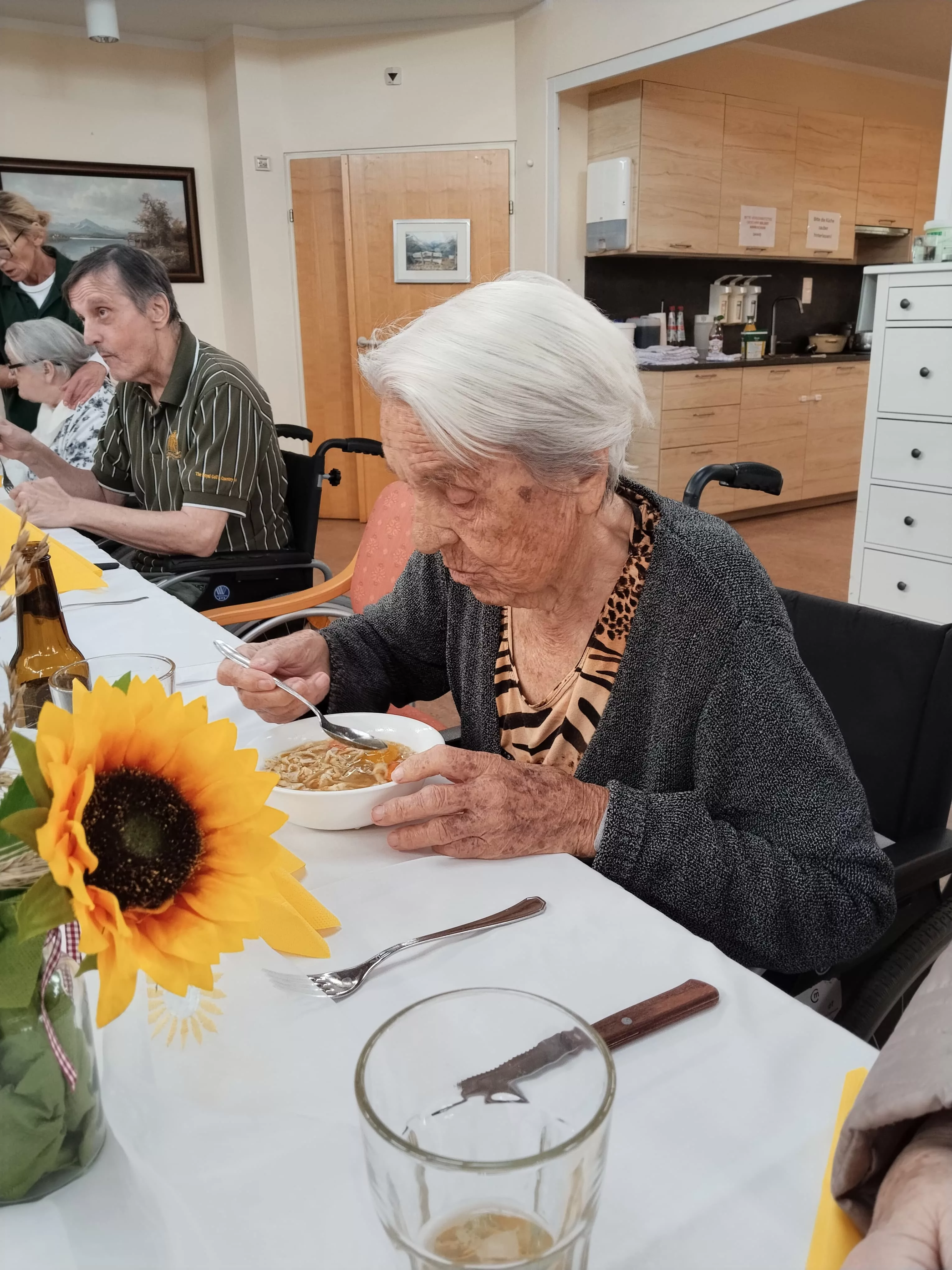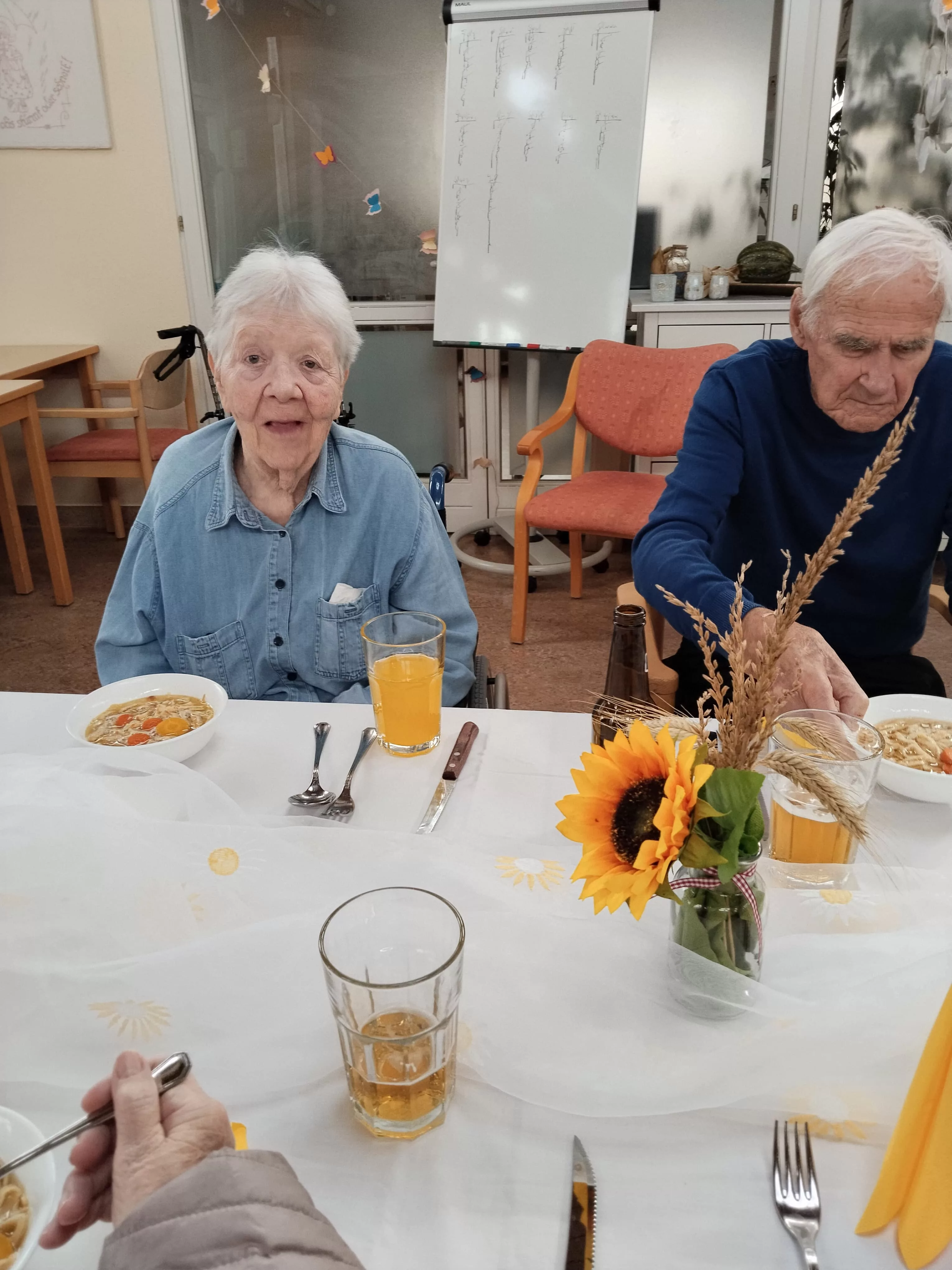 Ein besonderes Highlight war, dass unsere Bewohnerinnen und Bewohner gemeinsam mit Tamara das köstliche Menü selbst zubereiteten. Mit viel Freude, Teamgeist und Liebe zum Detail entstand ein wunderbares Festessen: zur Vorspeise eine wärmende Frittatensuppe, danach Schweinsbraten mit Kraut und Knödel, und als süßer Abschluss ein leckeren Eiskaffee.