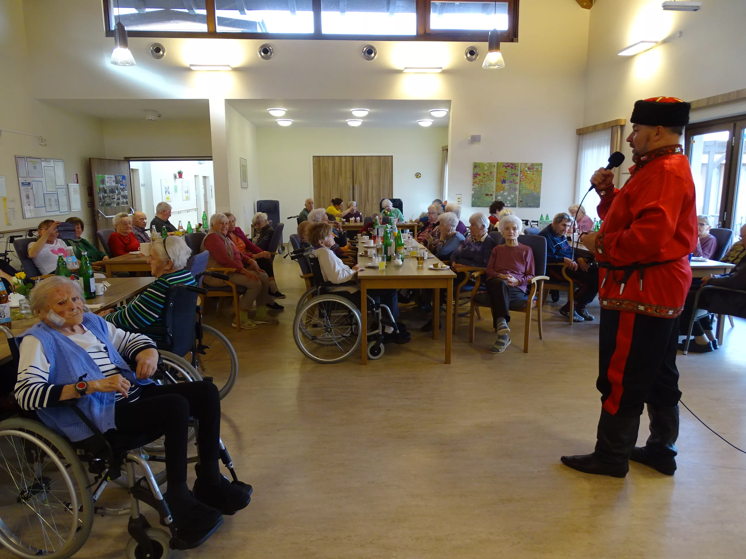 Am 18.11.2025 wurden wir von den russischen Künstlern den „Don Kosaken“ besucht. Es war unsere BewohnerInnen und MitarbeiterInnen eine wunderschöne Abwechslung in die traditionelle Welt der „Don Kosaken“ einzutauchen. Mit wunderschöner Adventmusik begann der wunderbare Nachmittag, danach wurden wir mit traditionellen russischen Kostümen, Tanz und Gesang verwöhnt!