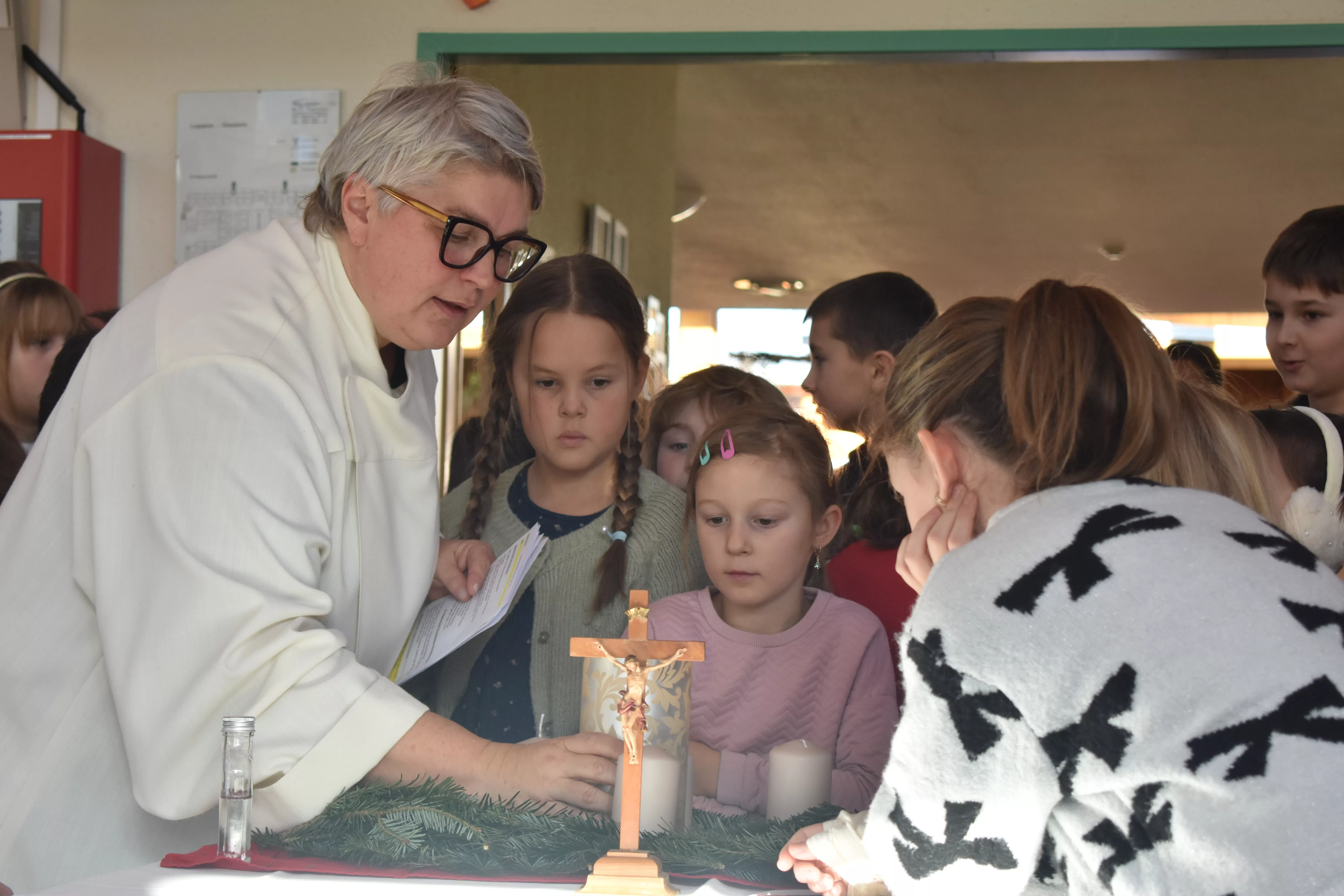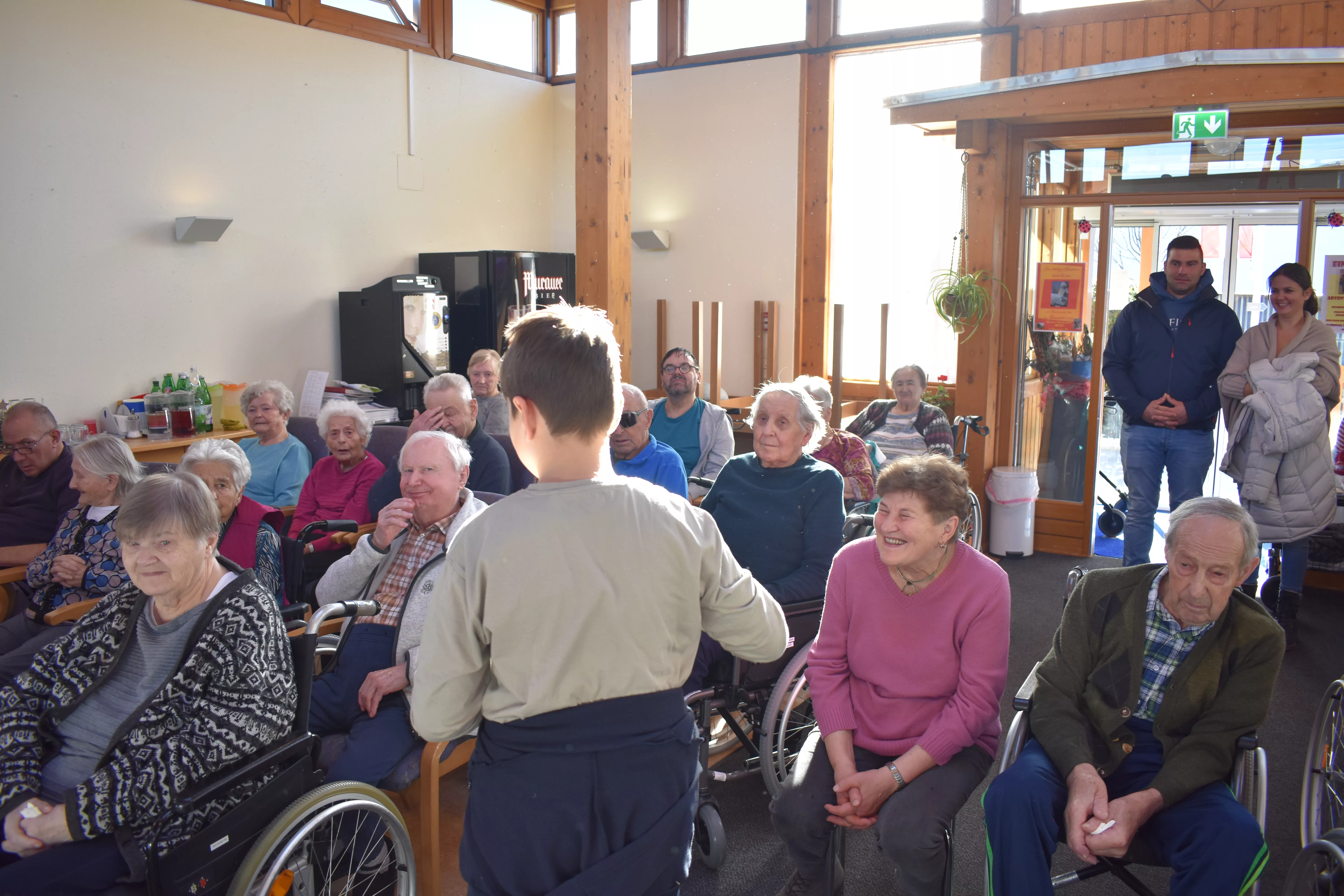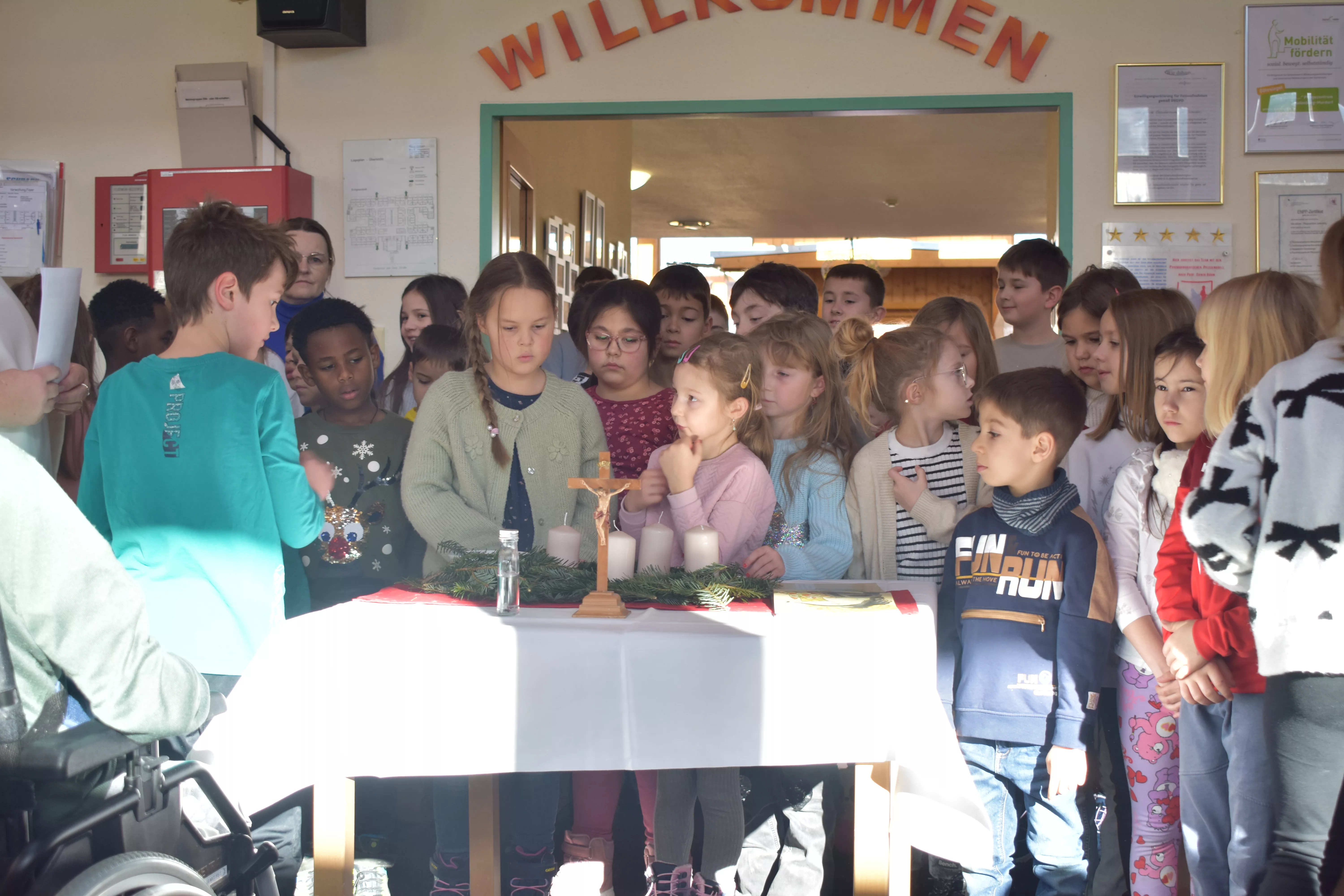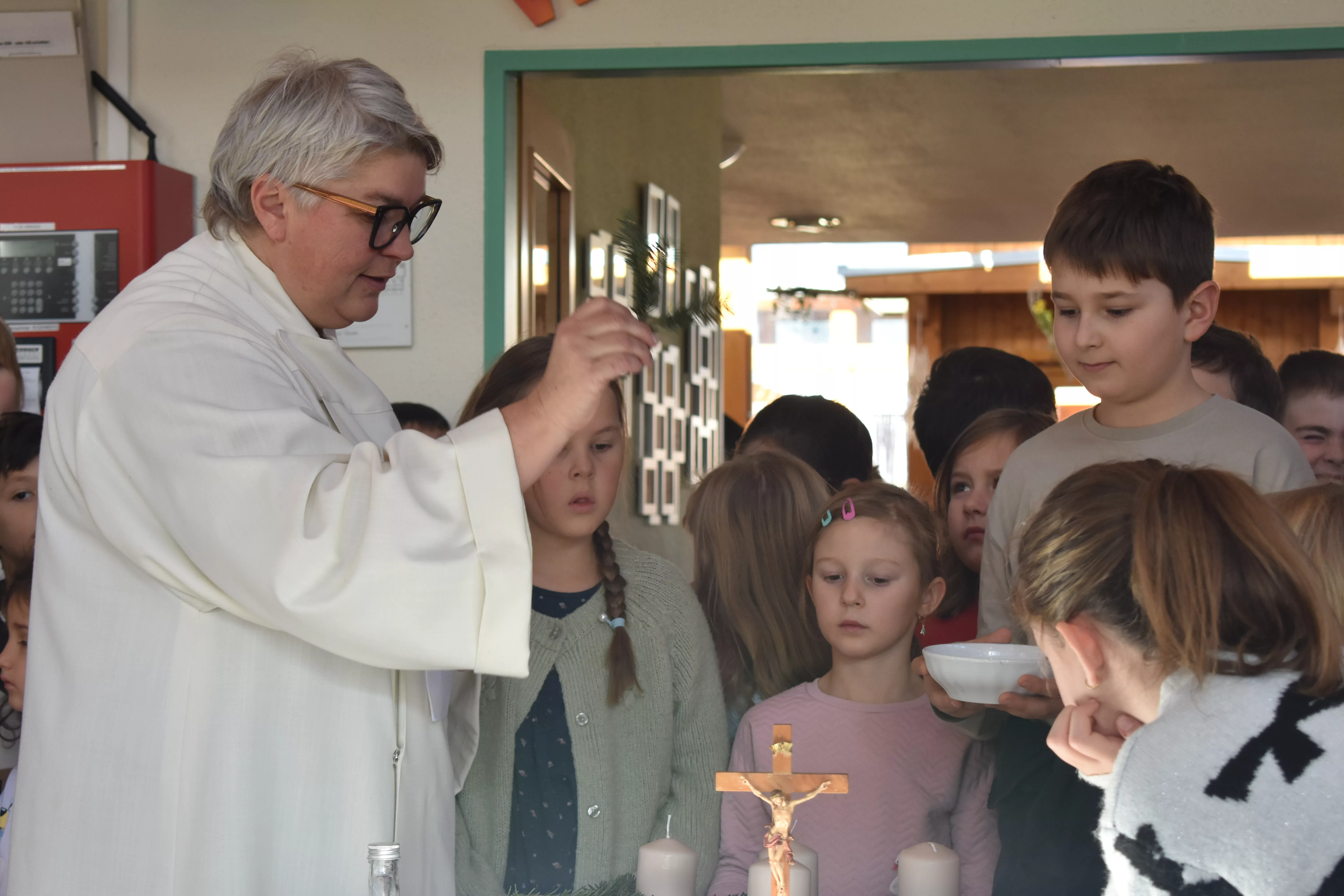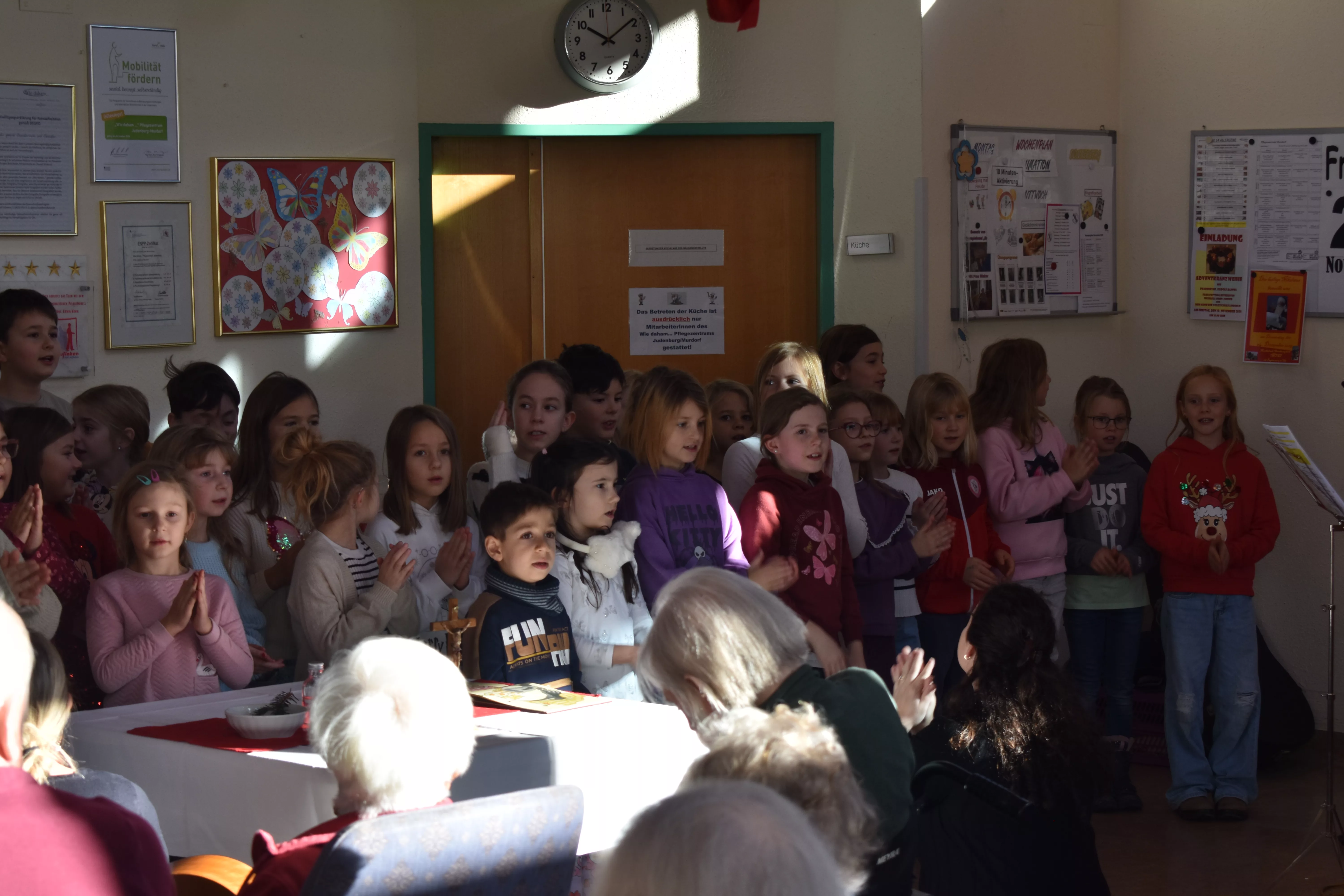 Unsere Pflegeheimseelsorgerin Frau Michaela Horn-Perner gestaltete mit den SchülerInnen der Voksschule Lindfeld einen eigenen Adventkranz und weihte danach mit Mathias die von unserer Seniorenanimateurin Frau Anita Paratusic und den BewohnerInnen selbst gebundenen und dekorierten Tannenzweige.