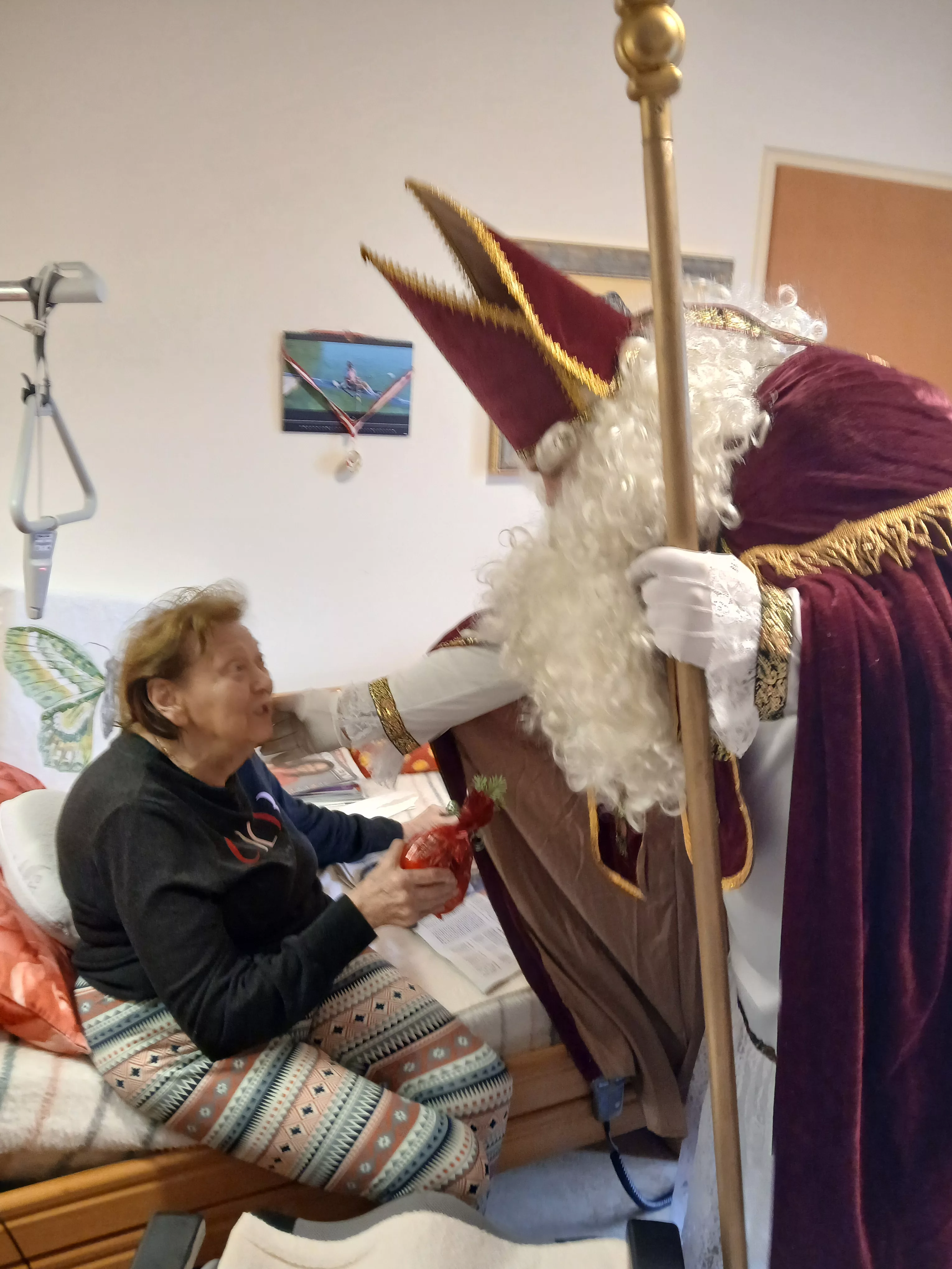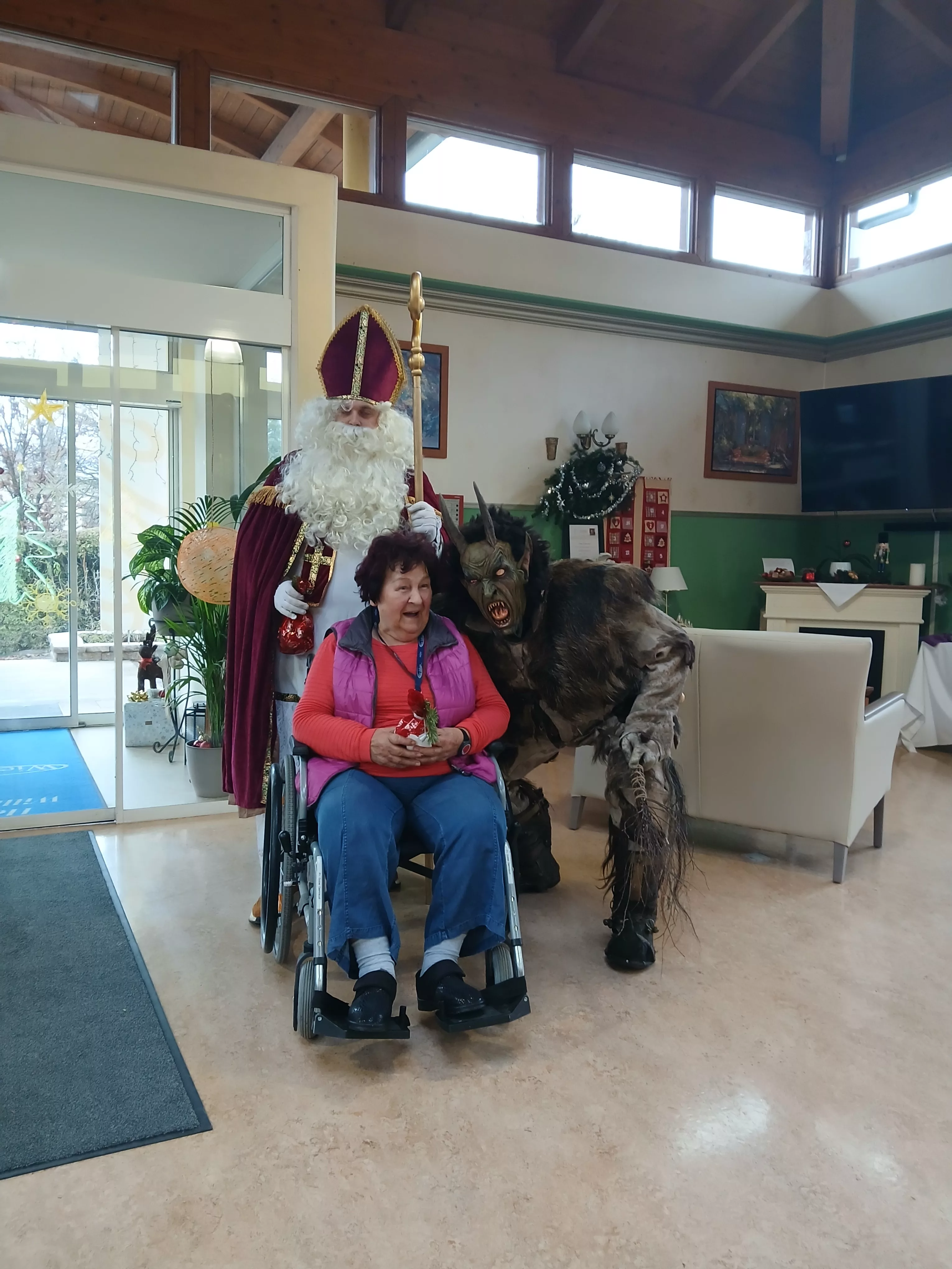 Heute durften wir im Haus ganz besonderen Besuch begrüßen: Nikolaus und Krampus machten sich auf den Weg zu unseren Bewohnerinnen und sorgten für eine festliche, warme Atmosphäre. Mit viel Charme, Humor und einem Sack voller guter Wünsche zauberten sie Lächeln in viele Gesichter.