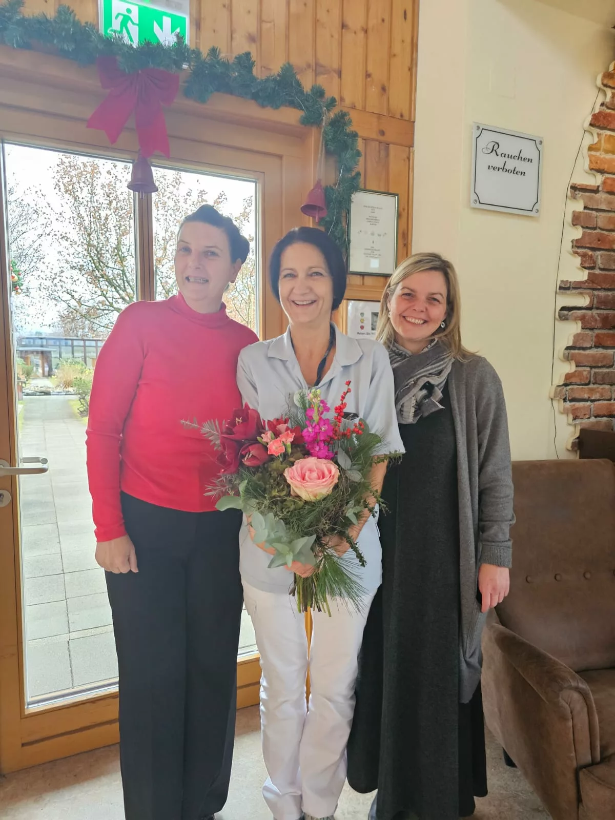 Unsere DGKP Ulrike Tschiggerl und Frau DGKP Anita Niemiez haben die Ausbildung zur Praxisanleiterin erfolgreich abgeschlossen! Zu diesem schönen Anlass haben Fr. PDL Eberhard und Fr. Tanzer ihr persönlich einen Blumenstrauß überreicht 🌸 – als Dankeschön und Anerkennung für ihre großartige Leistung. Frau Niemiez befindet sich derzeit im Mutterschutz 👶💖 – wir gratulieren ihr herzlich und holen das Gratulationsgeschenk selbstverständlich nach!