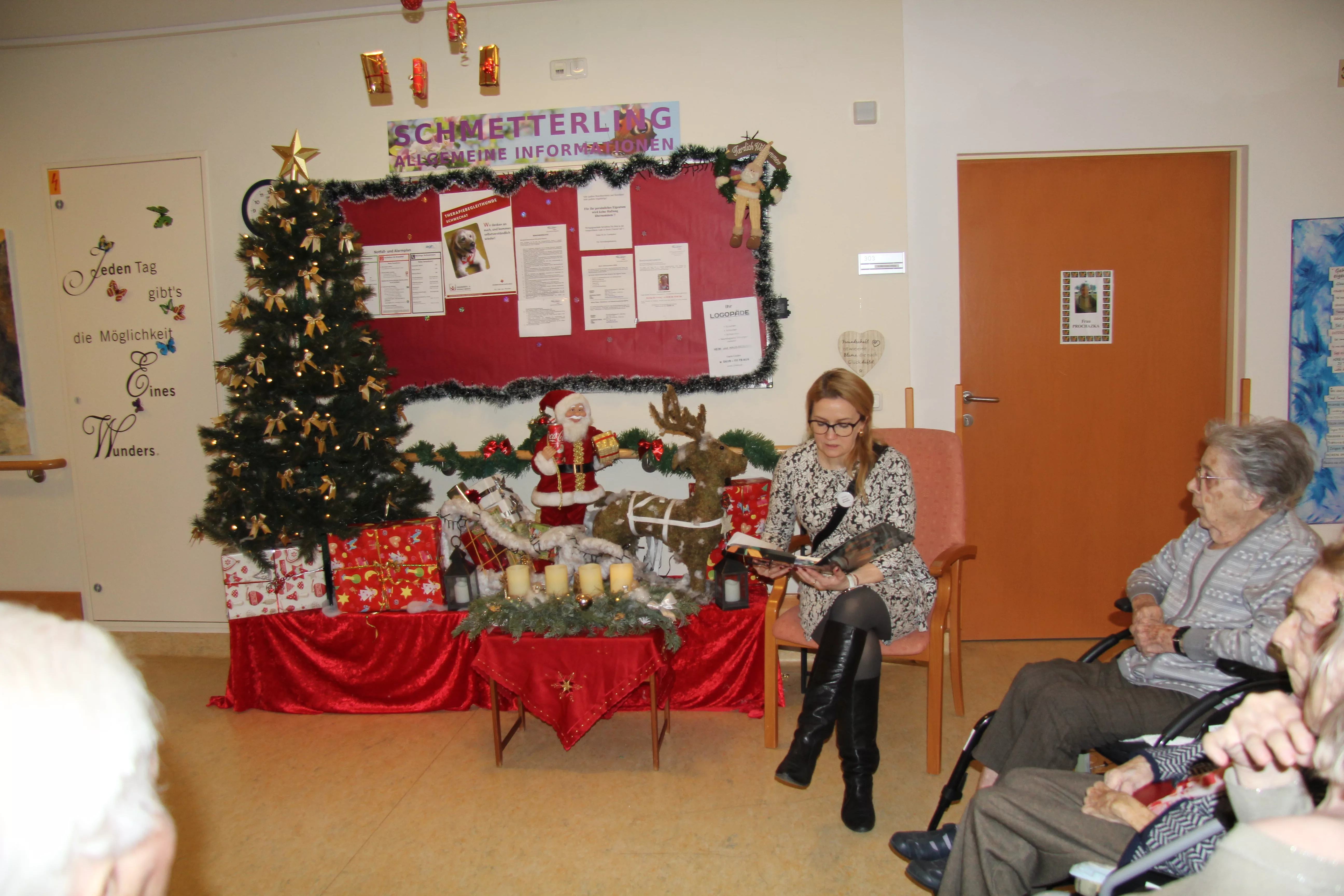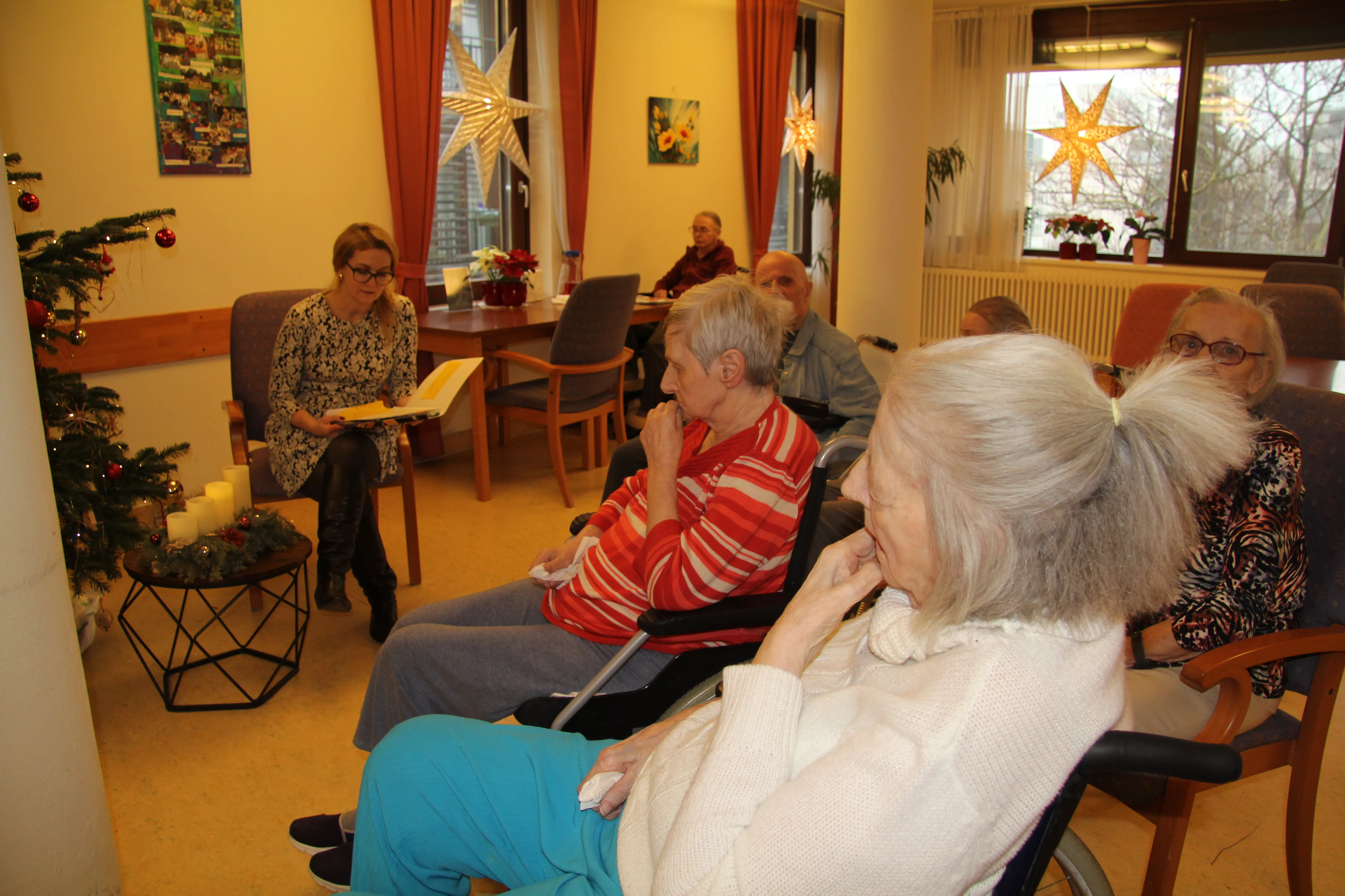 Adventlesung zum 4. Advent Eine wunderschöne Adventlesung wurde von unserer Animation für den vierten Advent aufbereitet. Bei weihnachtlicher Stimmung hörten die BewohnerInnen gespannt den Worten der Lesung.