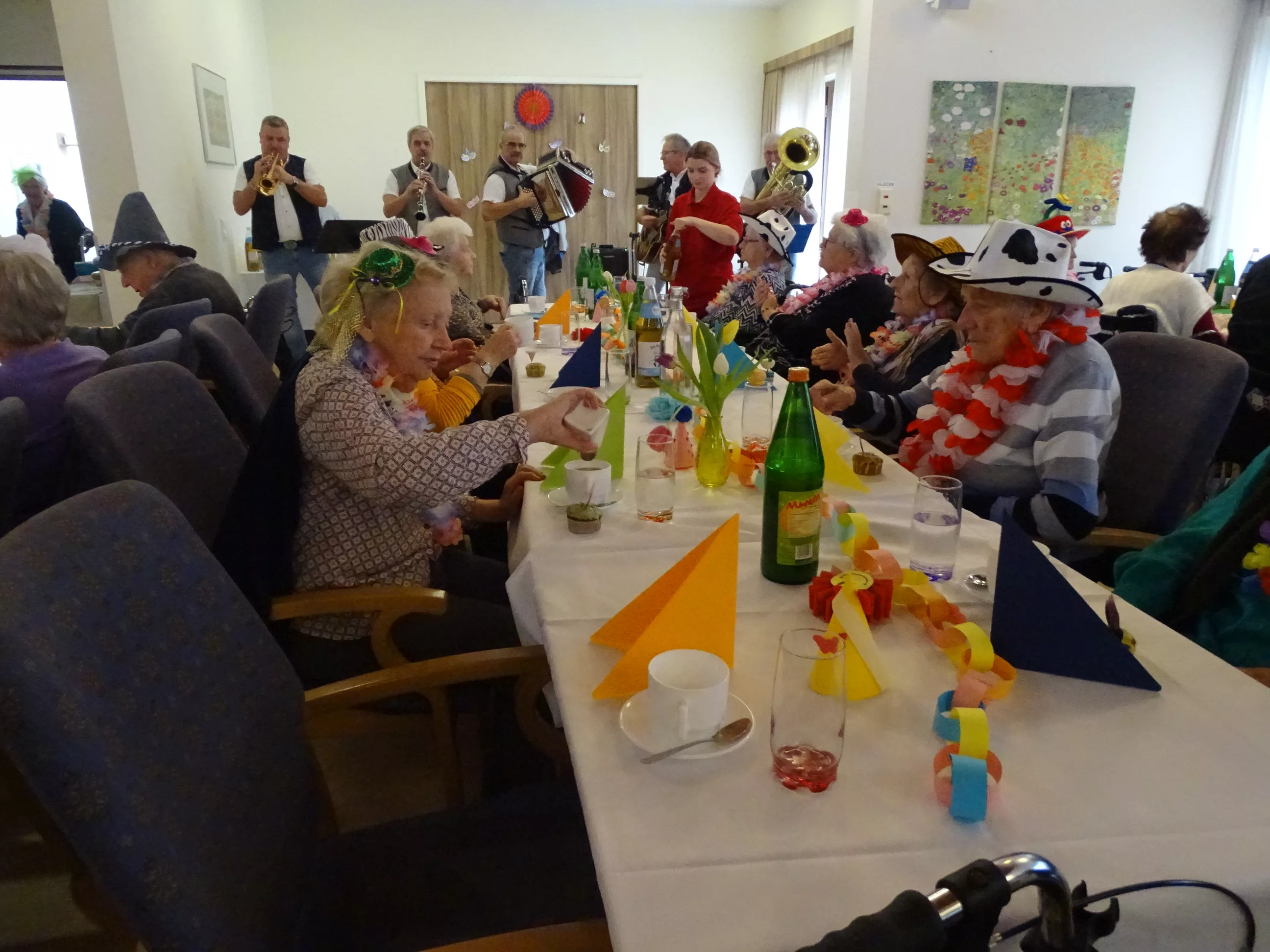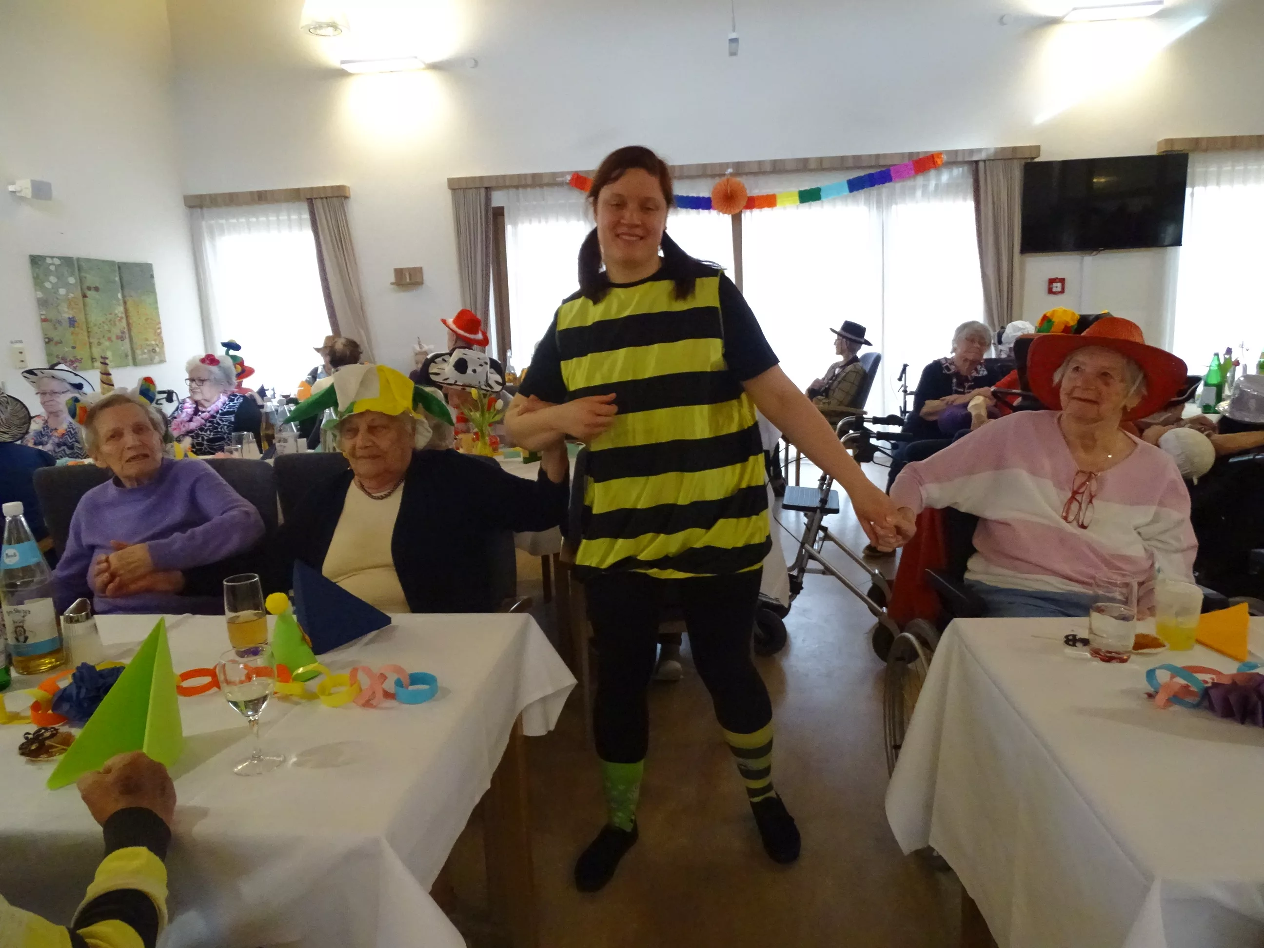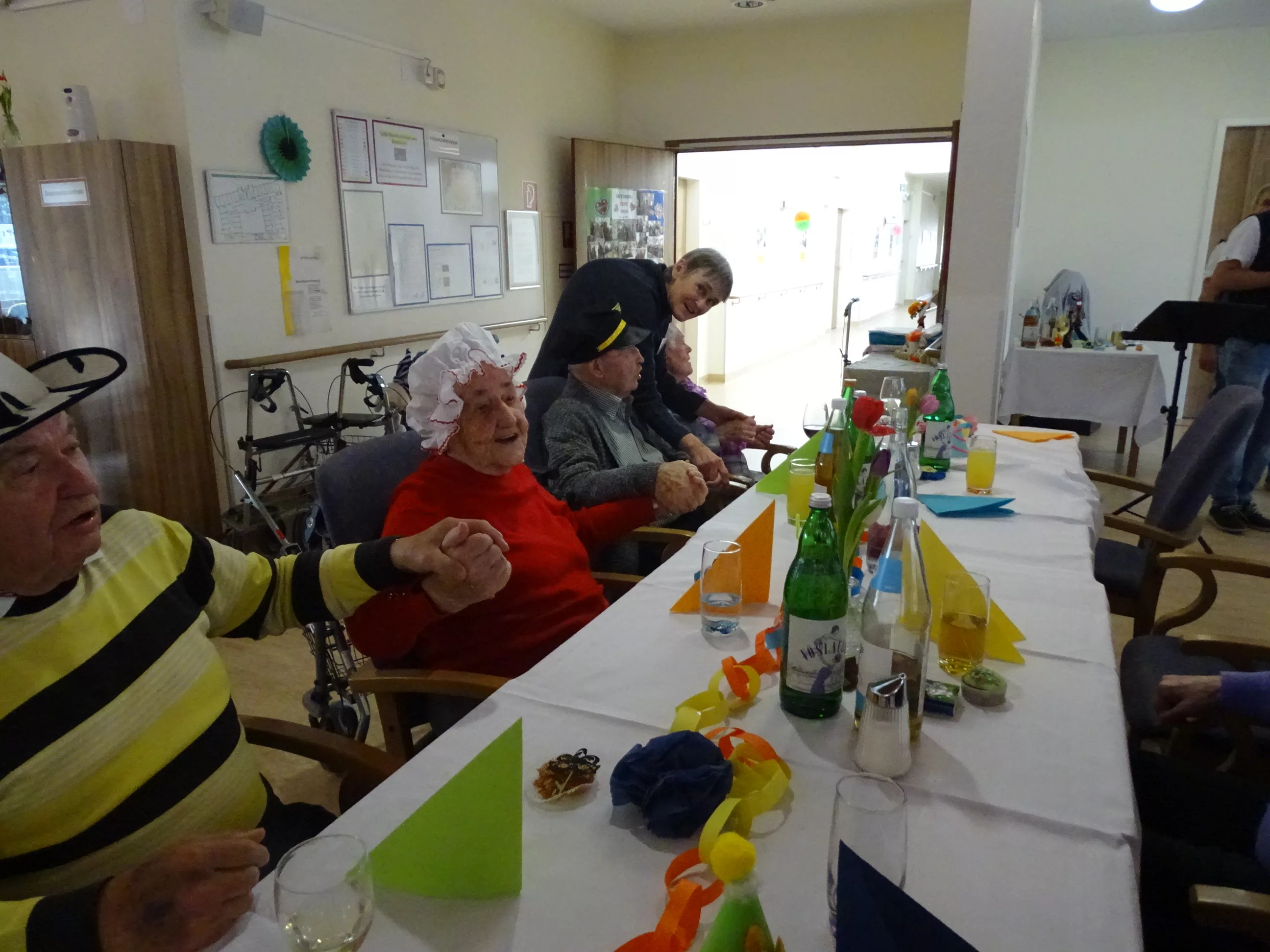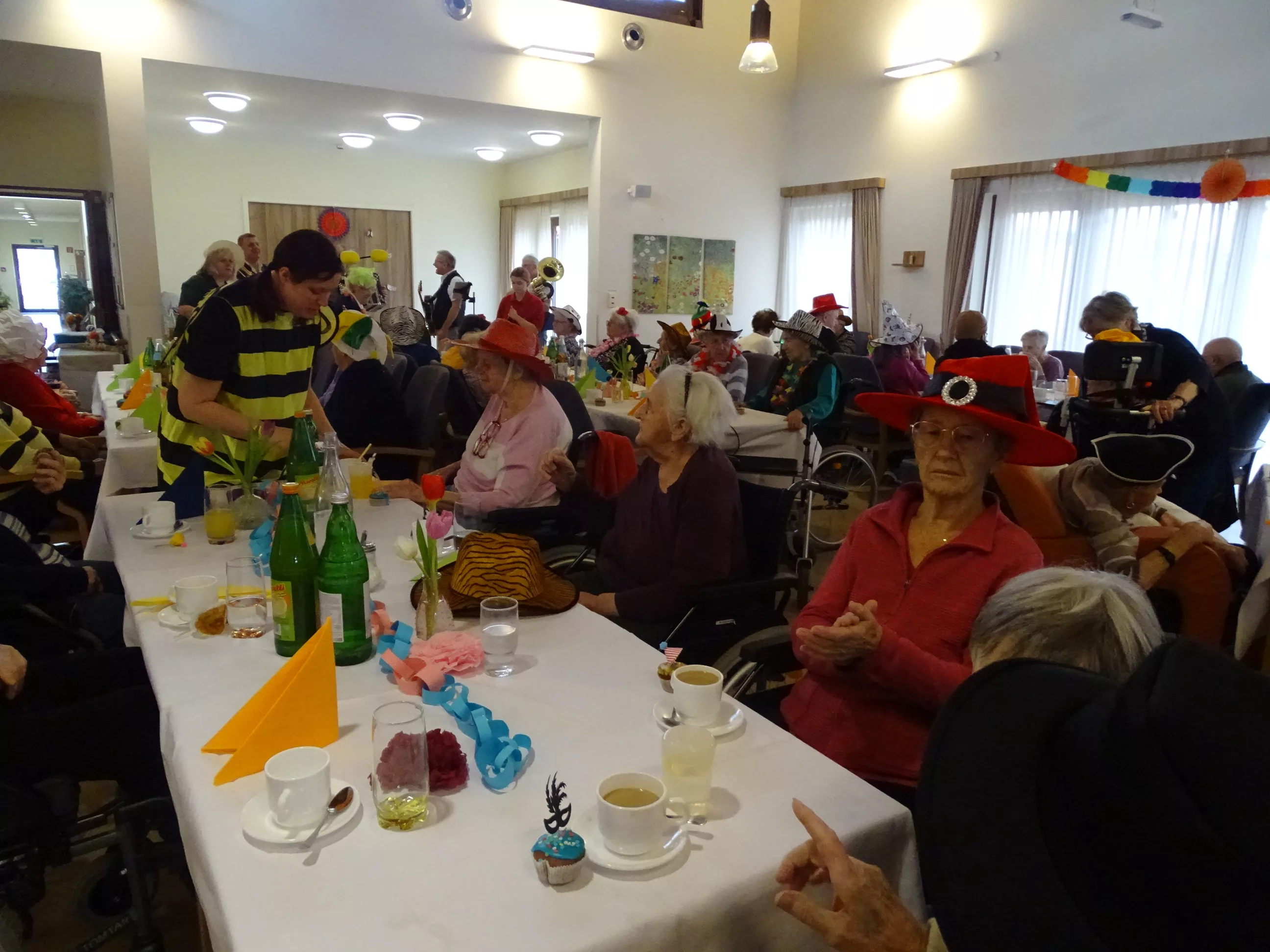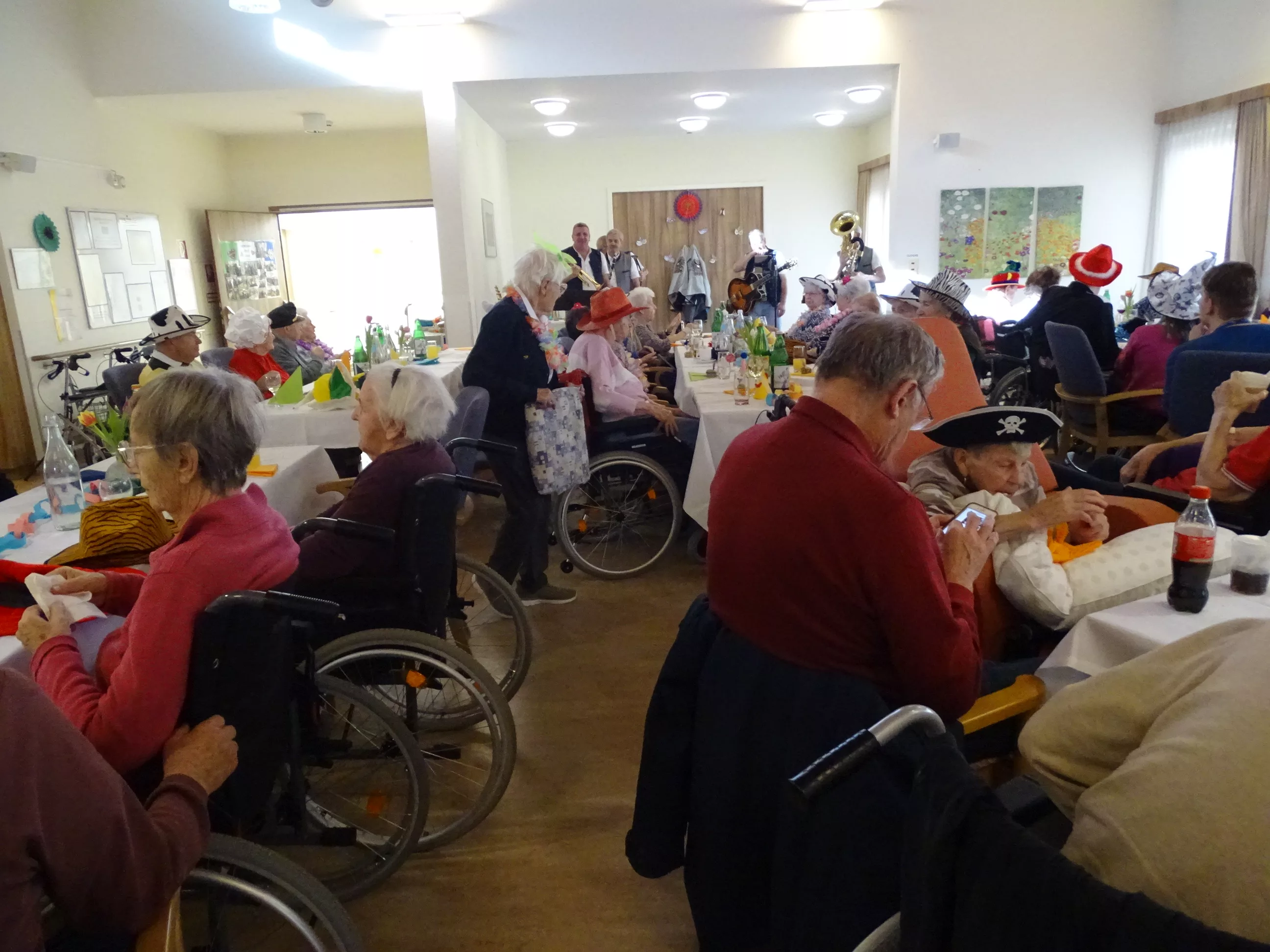 Auch im Generationenpark Zeltweg hat der Fasching Einzug gehalten! Am 11. Feber feierten unsere Bewohner:innen und unsere Mitarbeiter:innen Fasching. Wir wurden besucht von der Biene Maya und von Obelix! Unsere BewohnerInnen haben sich mit tollen Hütten geschmückt! Die musikalische Umrahmung gestalteten die Breitenegger, sie brachten viel Schwung in unser Haus! Bei Musik, Gesang und Wein feierten wir den ganzen Nachmittag, es wurde getanzt, geschunkelt und viel gelacht! Es war wieder ein tolles und lustiges Fest im Generationenpark Zeltweg!