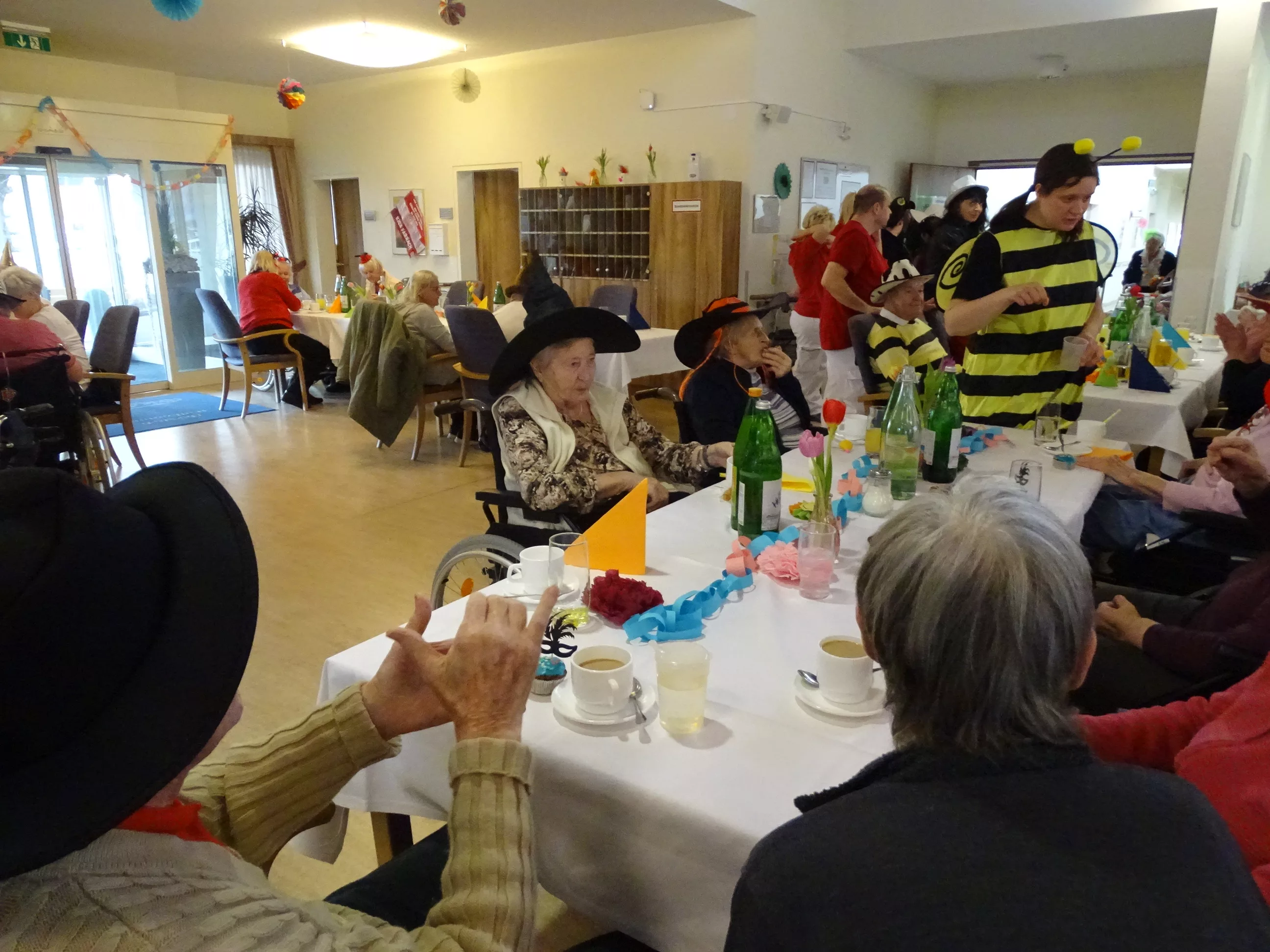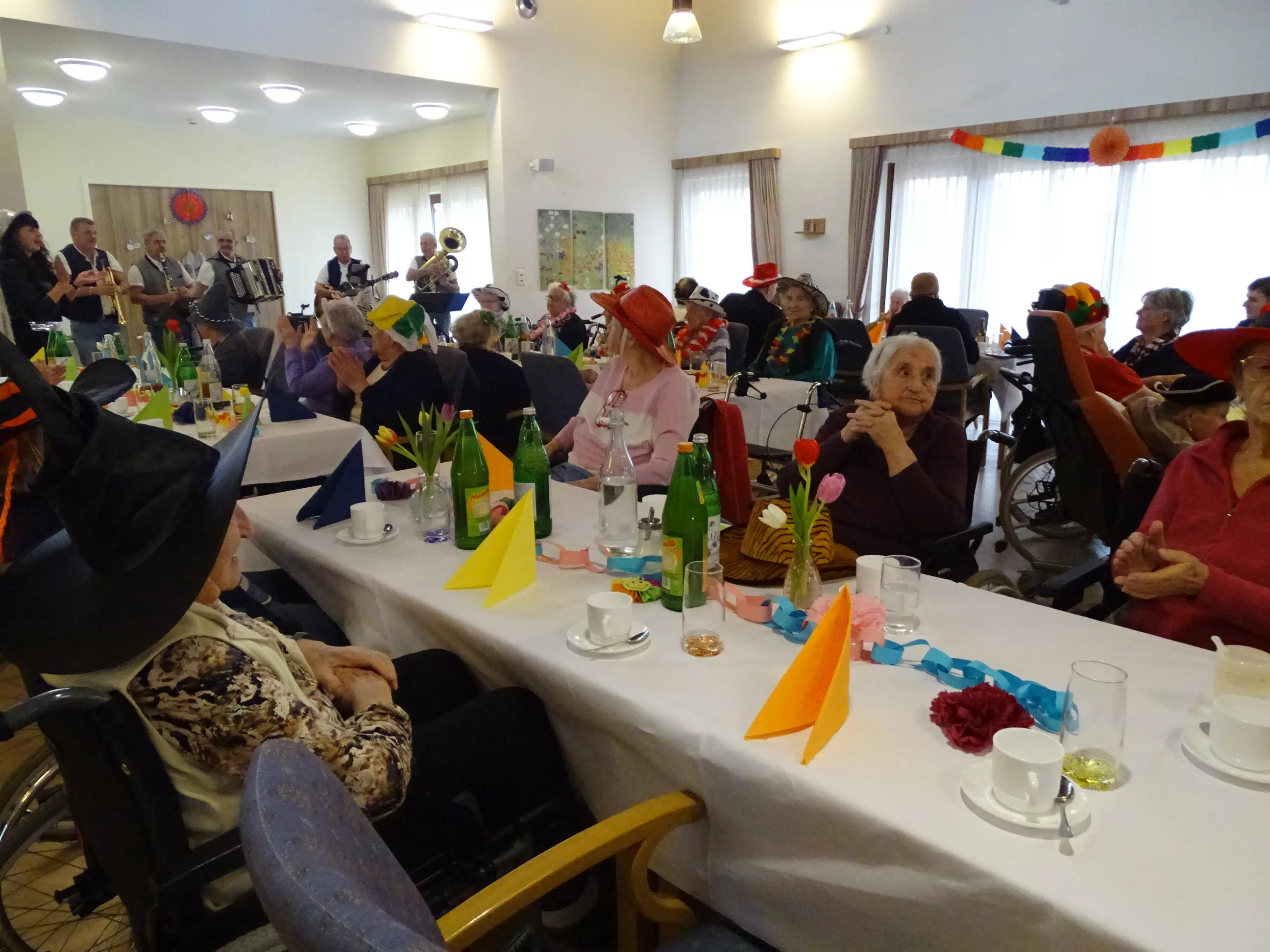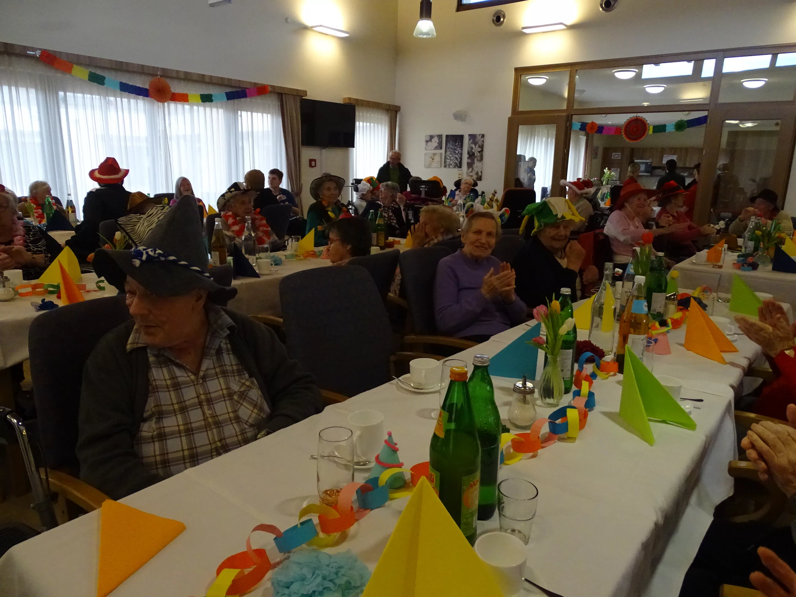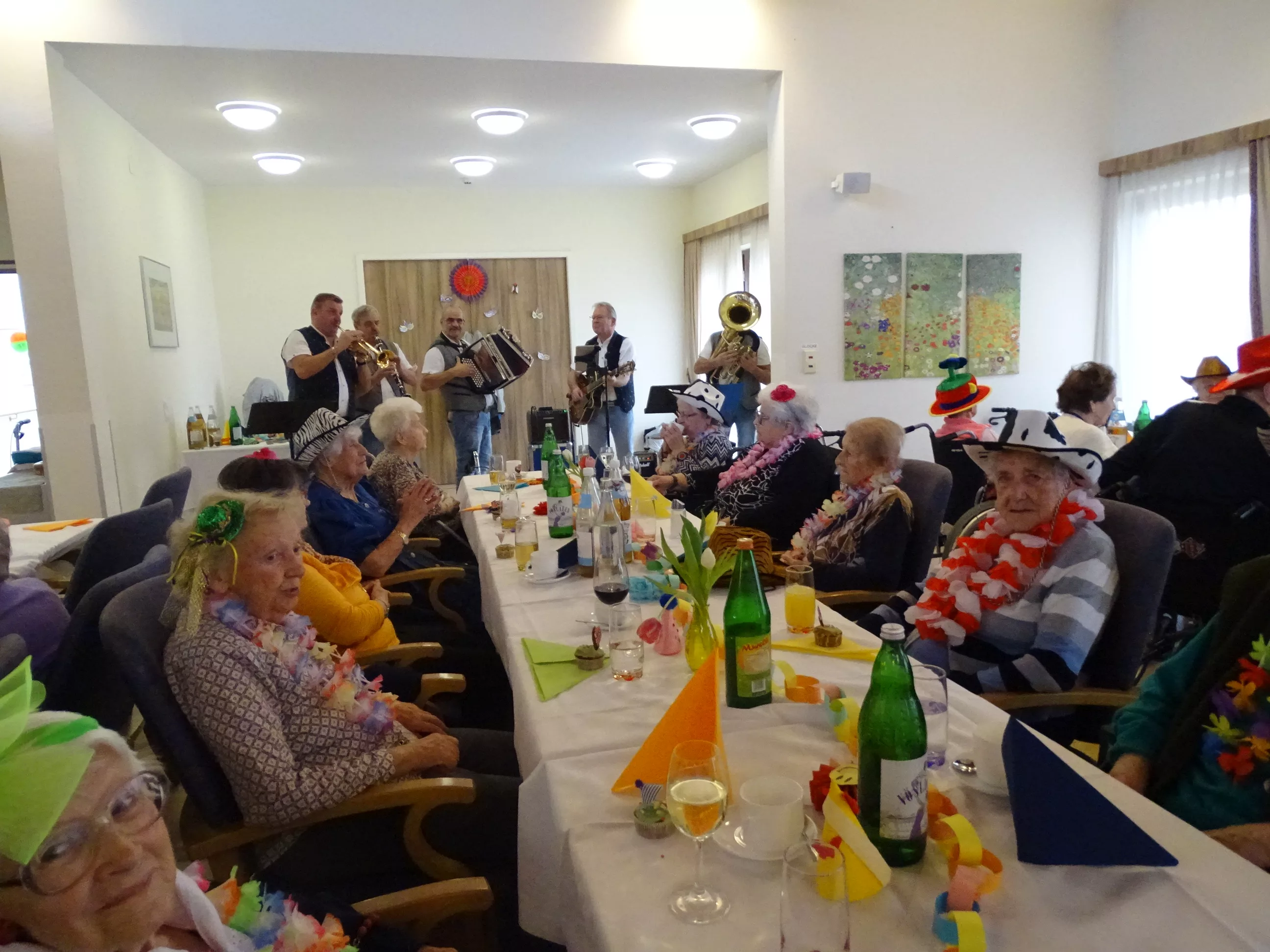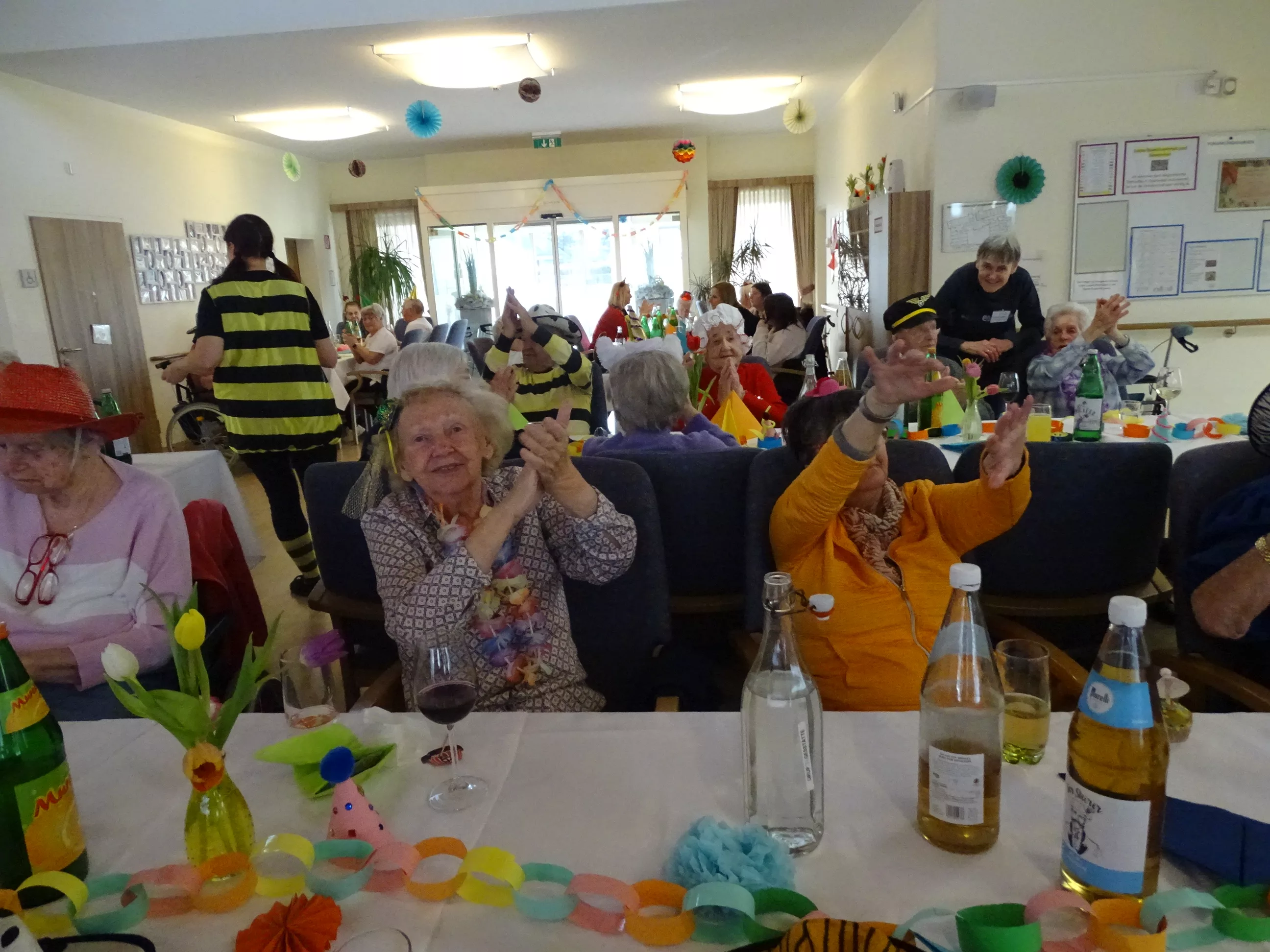 Auch im Generationenpark Zeltweg hat der Fasching Einzug gehalten! Am 11. Feber feierten unsere Bewohner:innen und unsere Mitarbeiter:innen Fasching. Wir wurden besucht von der Biene Maya und von Obelix! Unsere BewohnerInnen haben sich mit tollen Hütten geschmückt! Die musikalische Umrahmung gestalteten die Breitenegger, sie brachten viel Schwung in unser Haus! Bei Musik, Gesang und Wein feierten wir den ganzen Nachmittag, es wurde getanzt, geschunkelt und viel gelacht! Es war wieder ein tolles und lustiges Fest im Generationenpark Zeltweg!