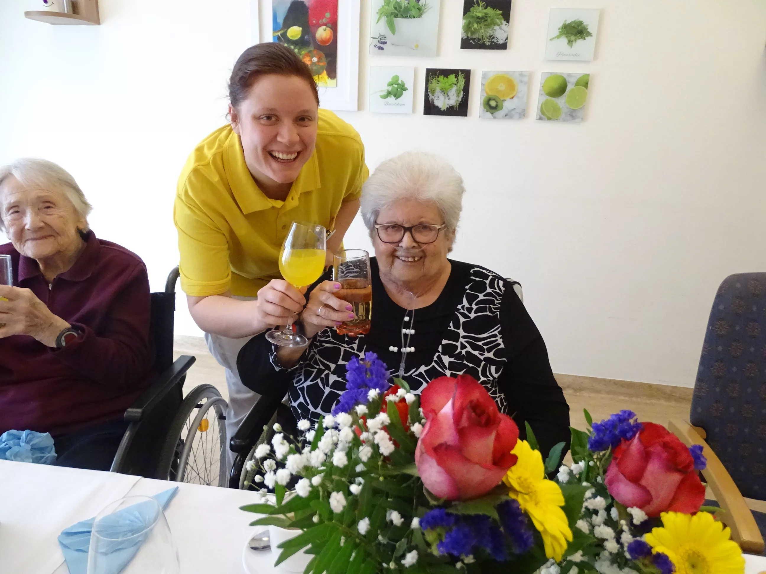 Besonders gratulieren möchten wir unserer Frau Pressnig, die ihren 103. Geburtstag feierte und unserer Heimleitung Frau Heibili sagte „Ich fühle mich richtig zu Hause bei Euch!“