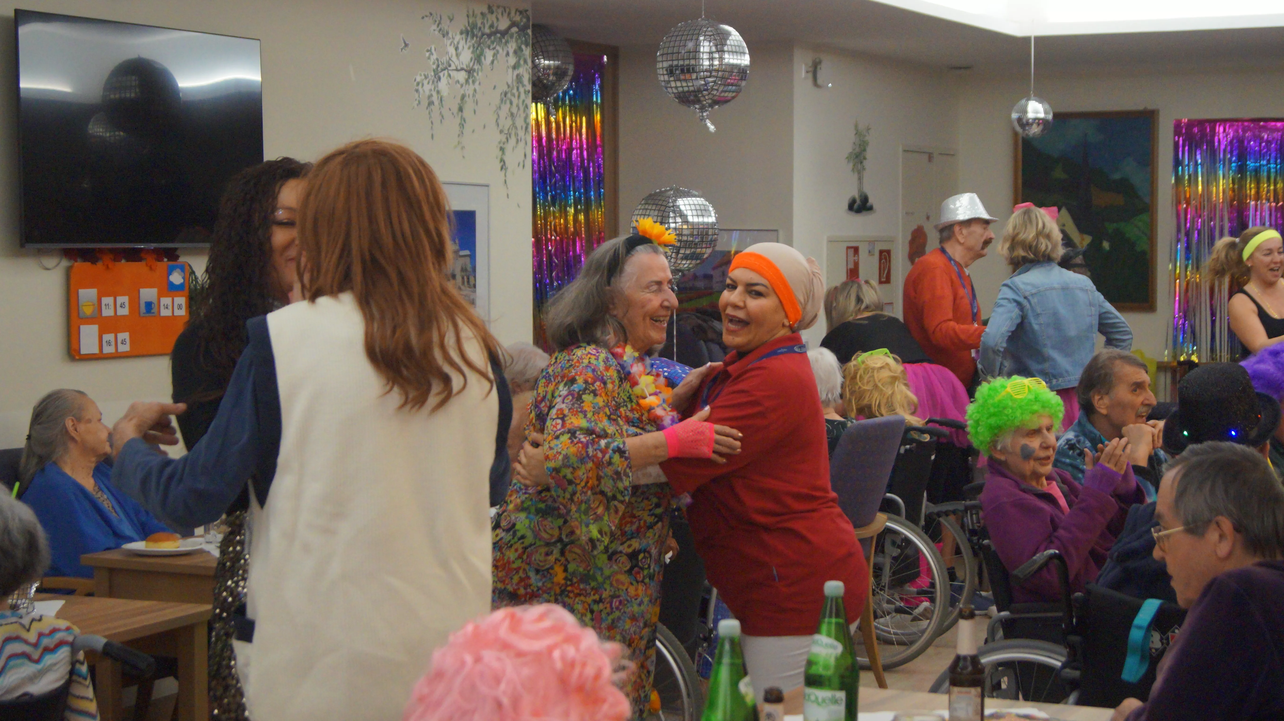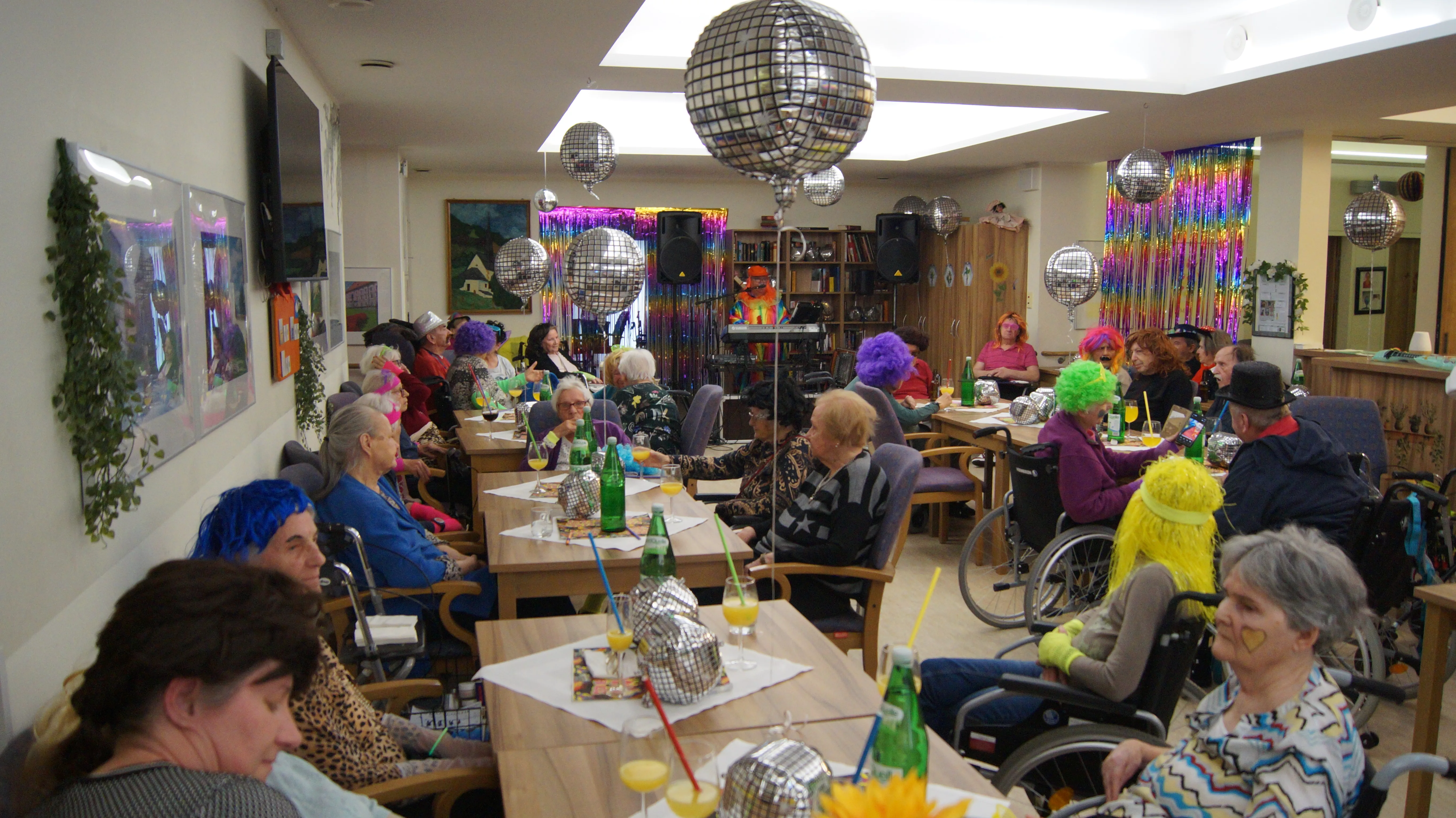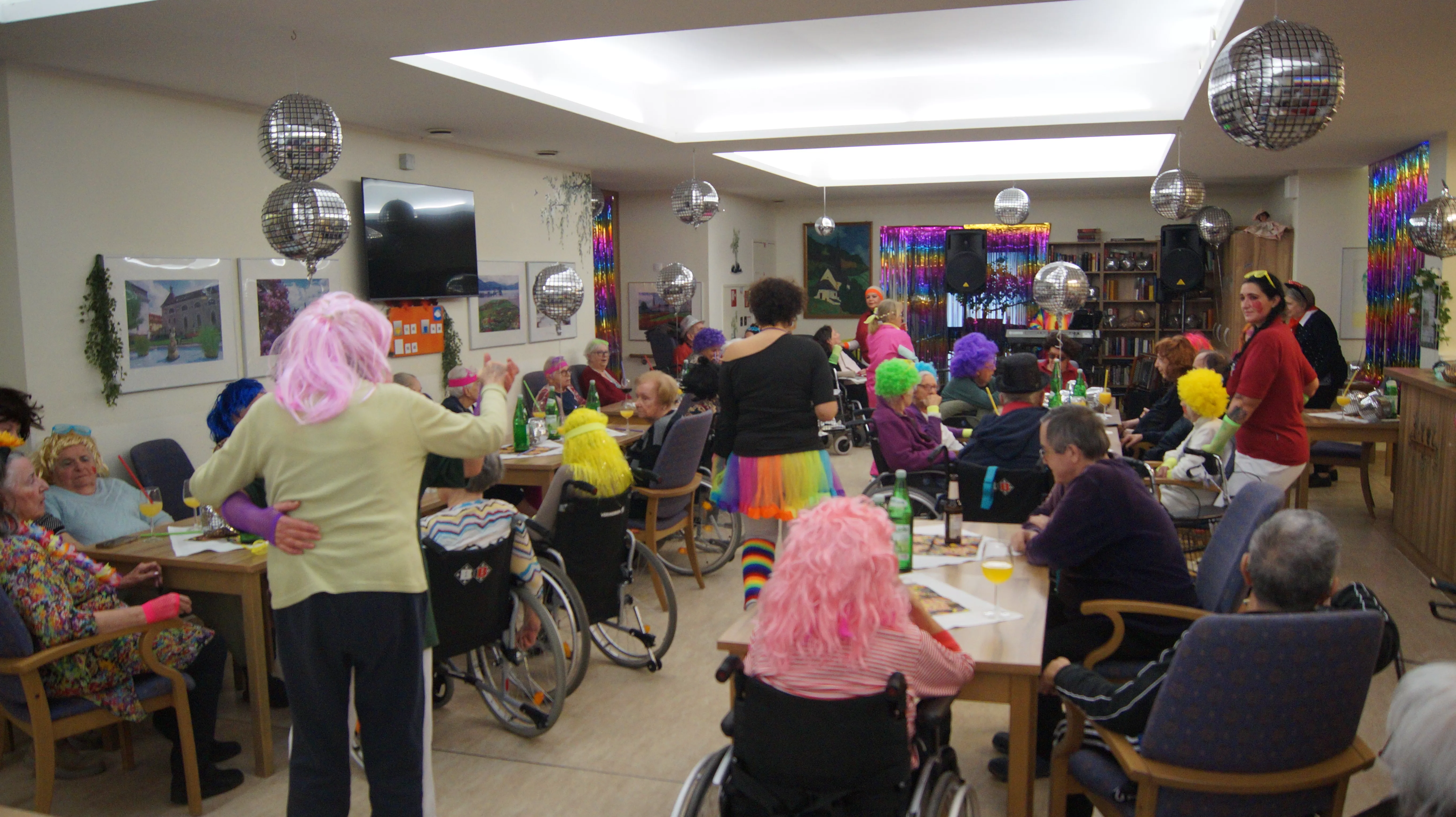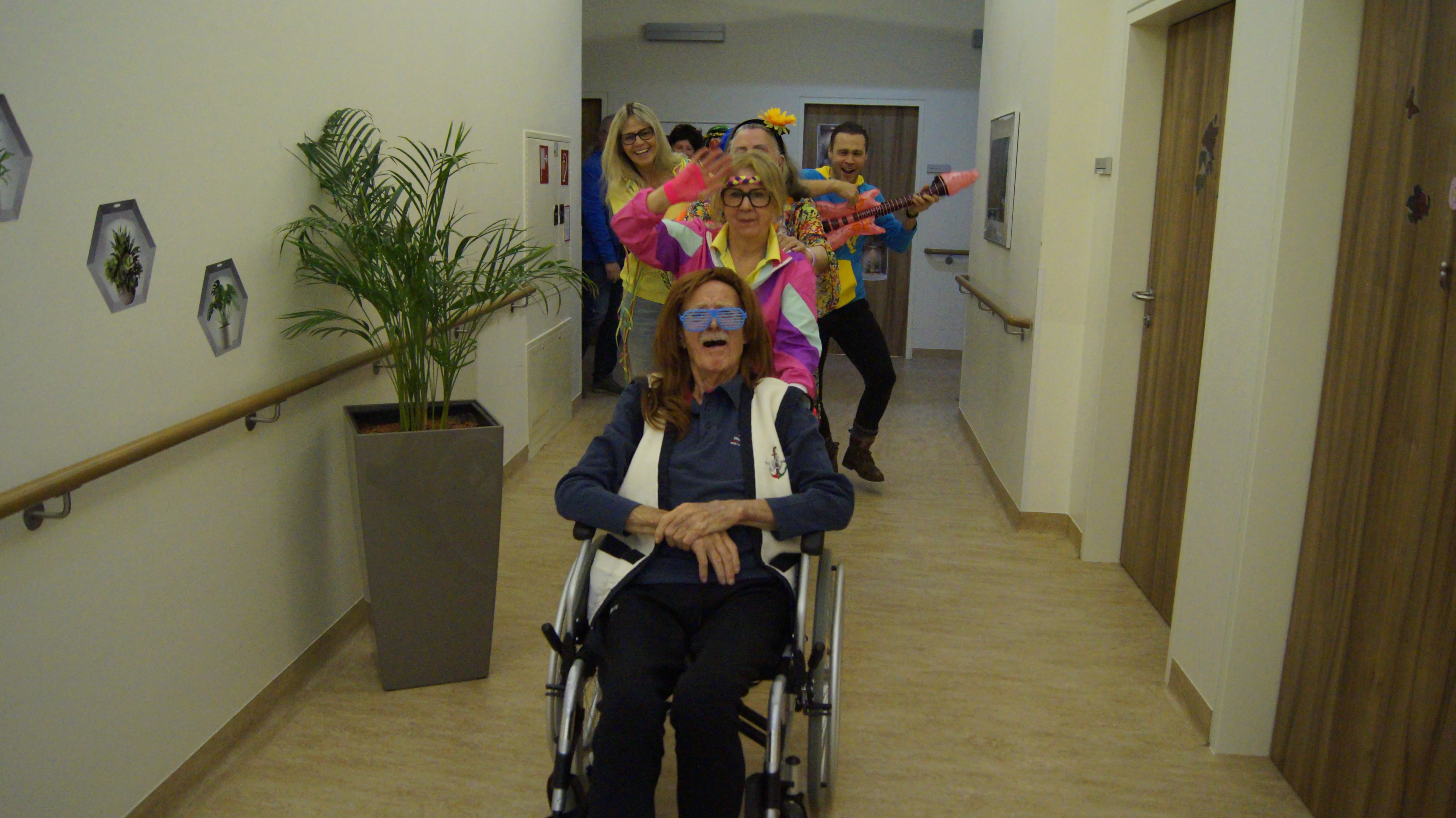 Nach Lust und Laune, verkleidet oder nicht, kamen zahlreiche Bewohner:innen aller Wohnbereiche wie auch Mieter:innen unserer Pflegewohnungen zum gemeinsamen, lustigen Feiern, Plaudern und Tanzen zusammen. Für beste und stimmungsvolle Partylaune sorgte mit vollem Einsatz und Engagement unser allseits bekannter Unterhalter „Krawallhansl“. Ebenso gab es eine Gesangdarbietung im Duett mit „Krawallhansl“ und unserer Wohnbereichsleitung DGKP – zu einem „Gassenhauer“ der legendären Tina Turner – „Rolling on the River“