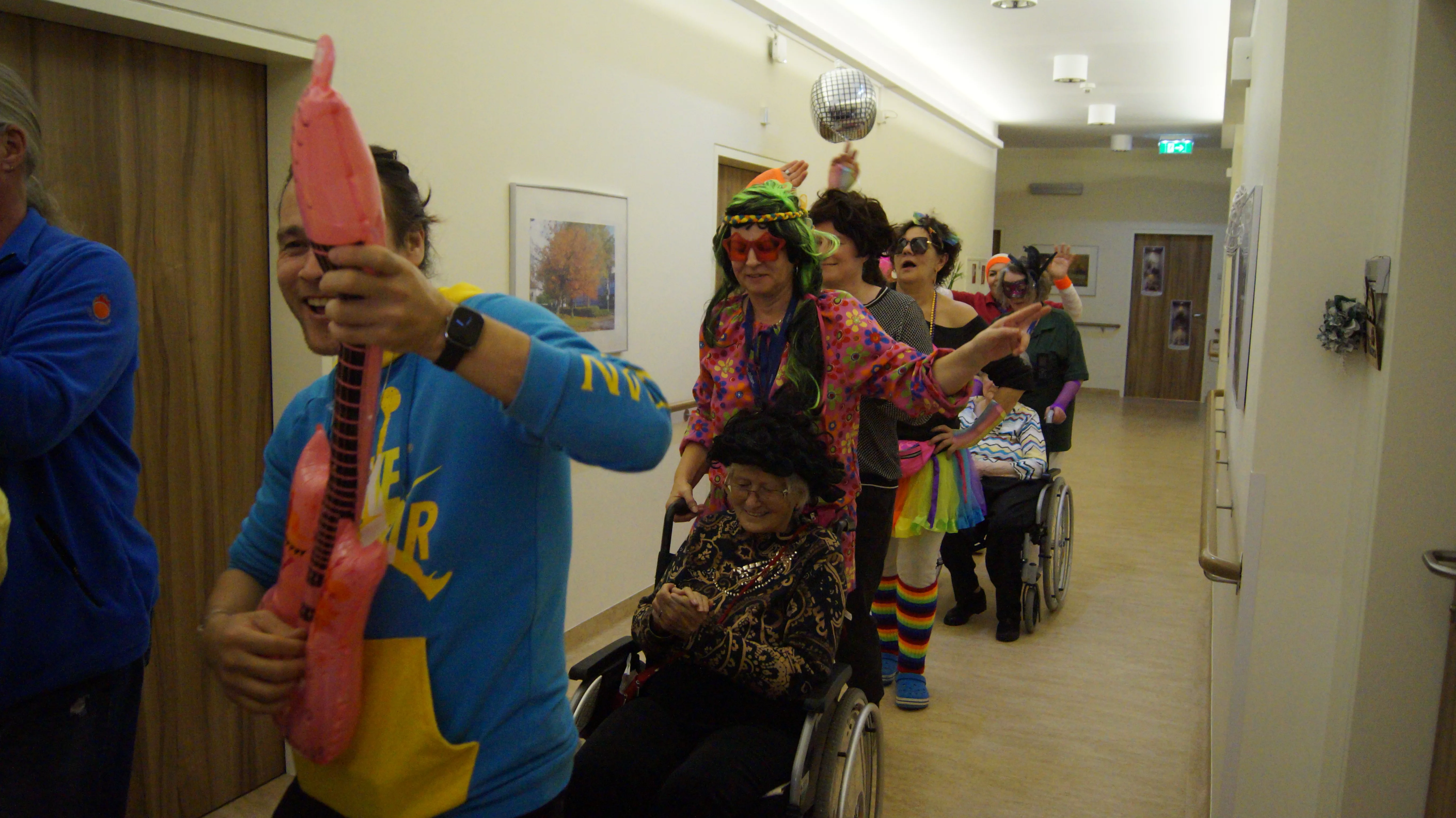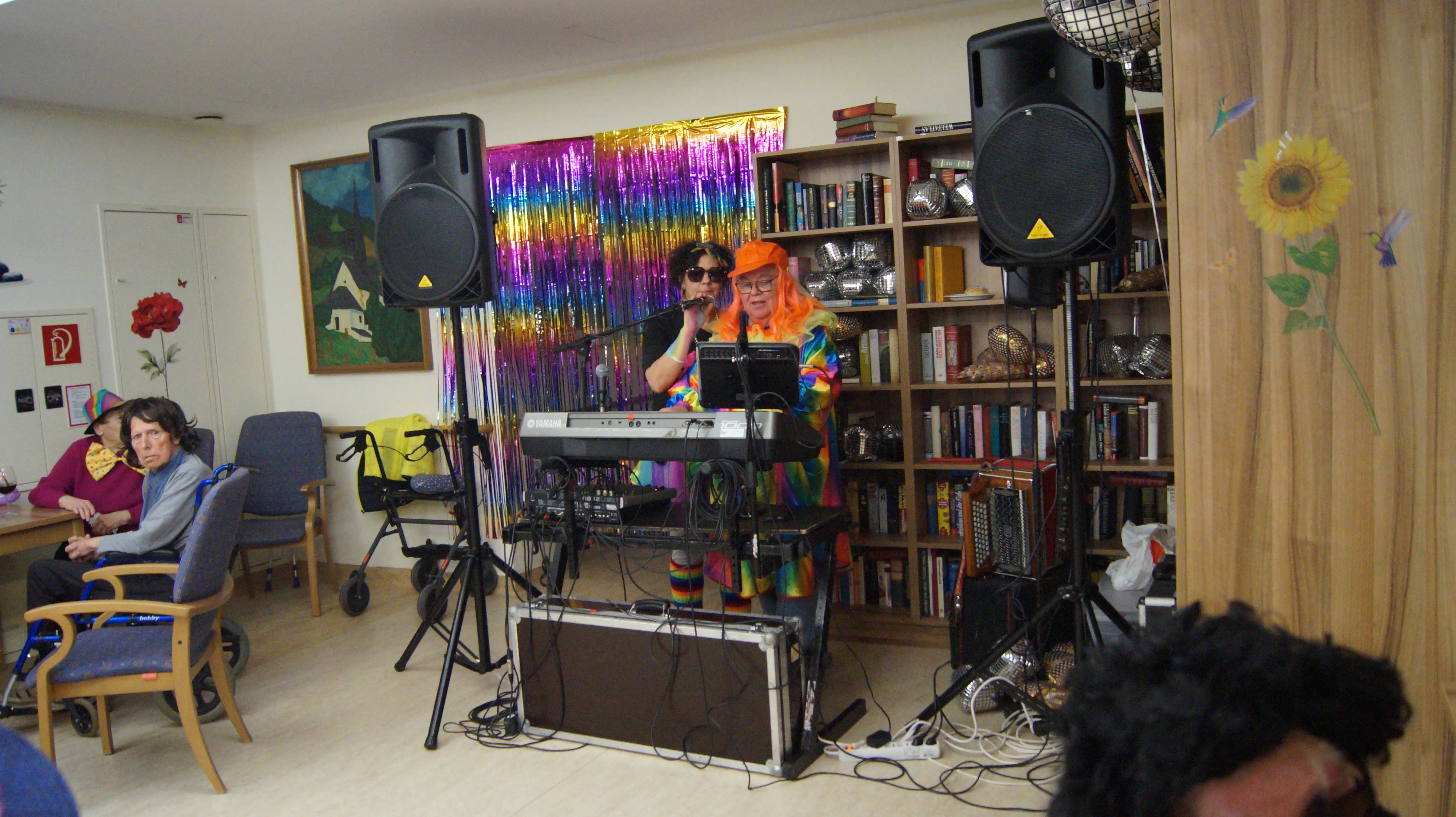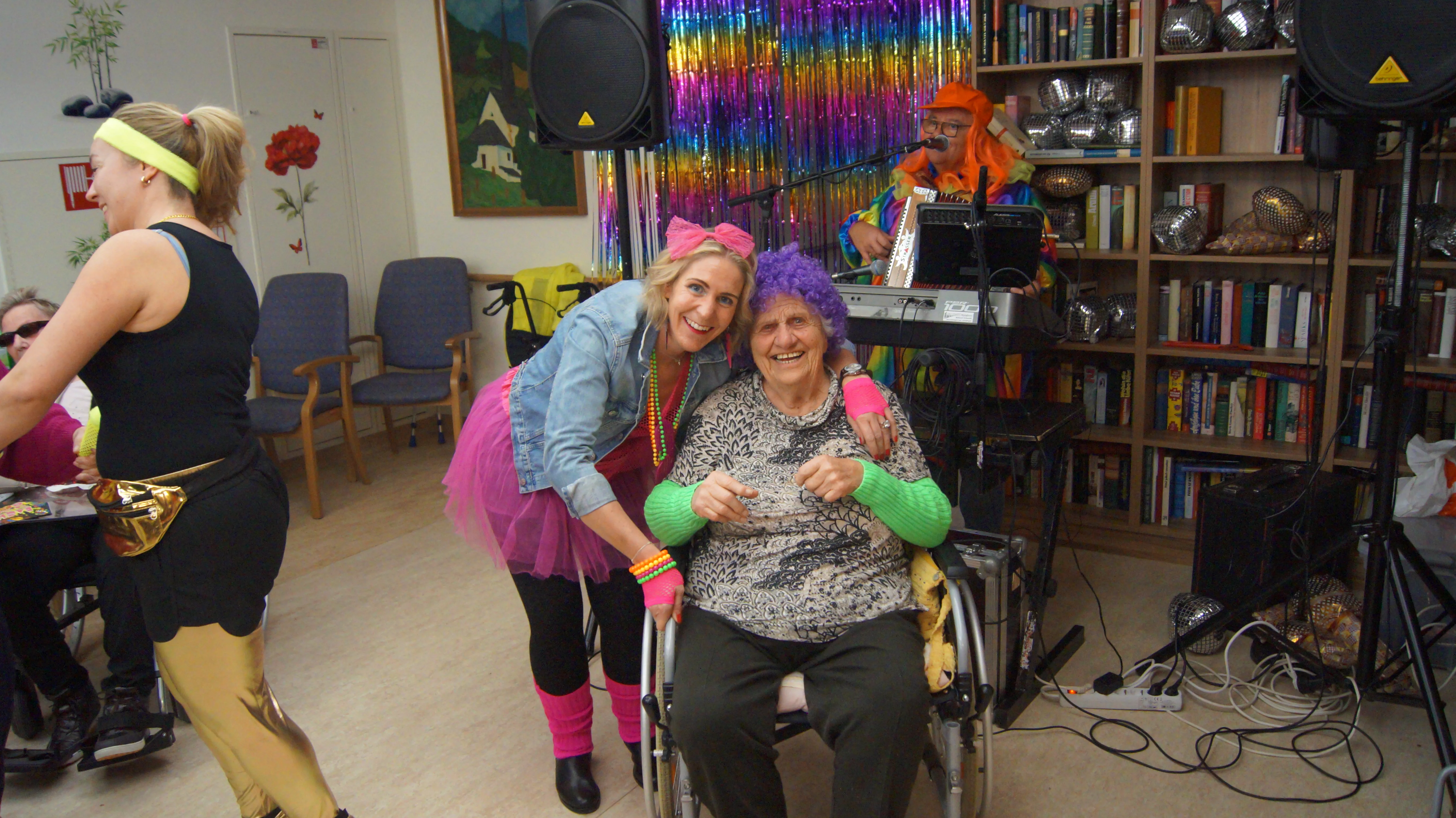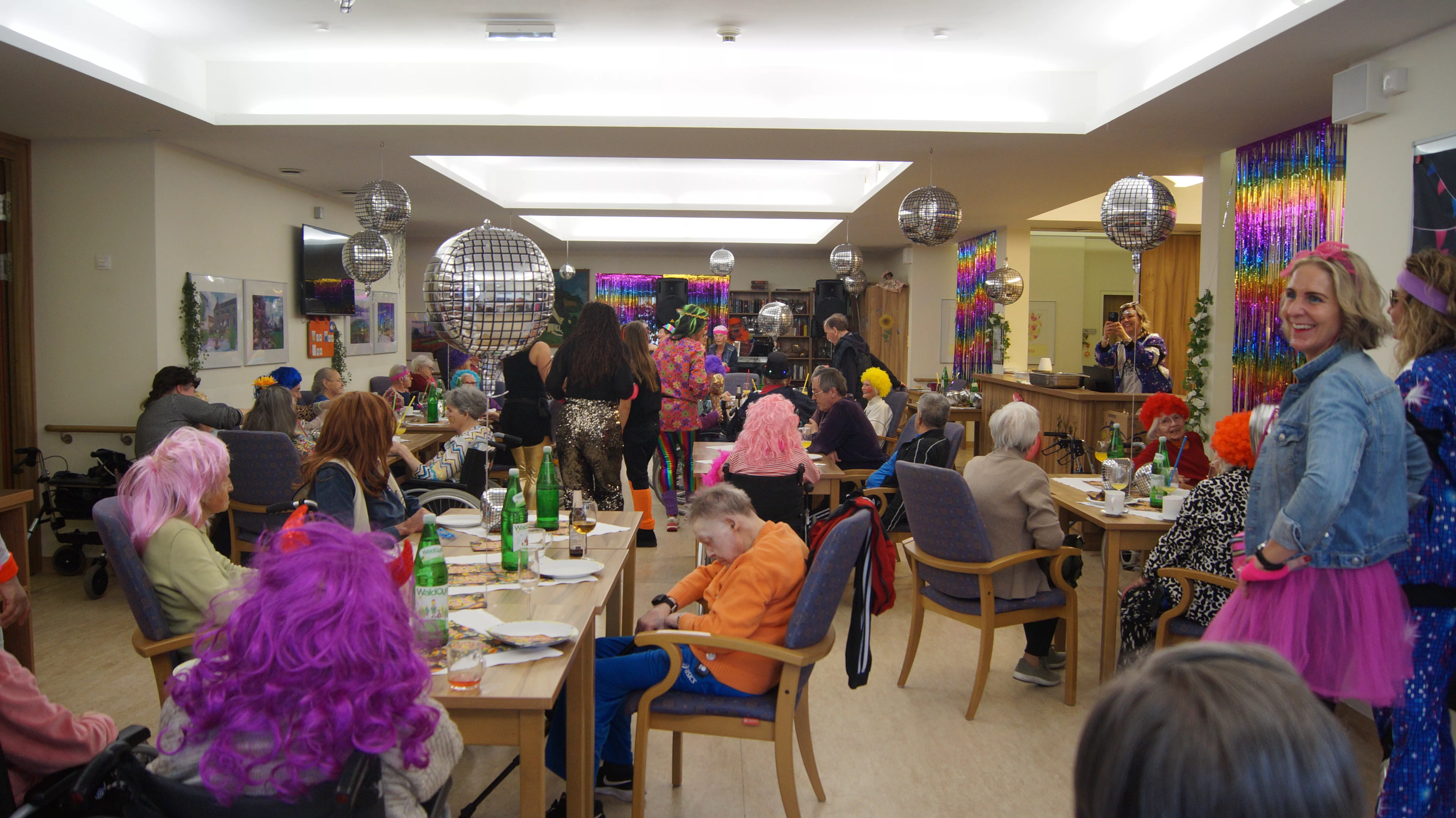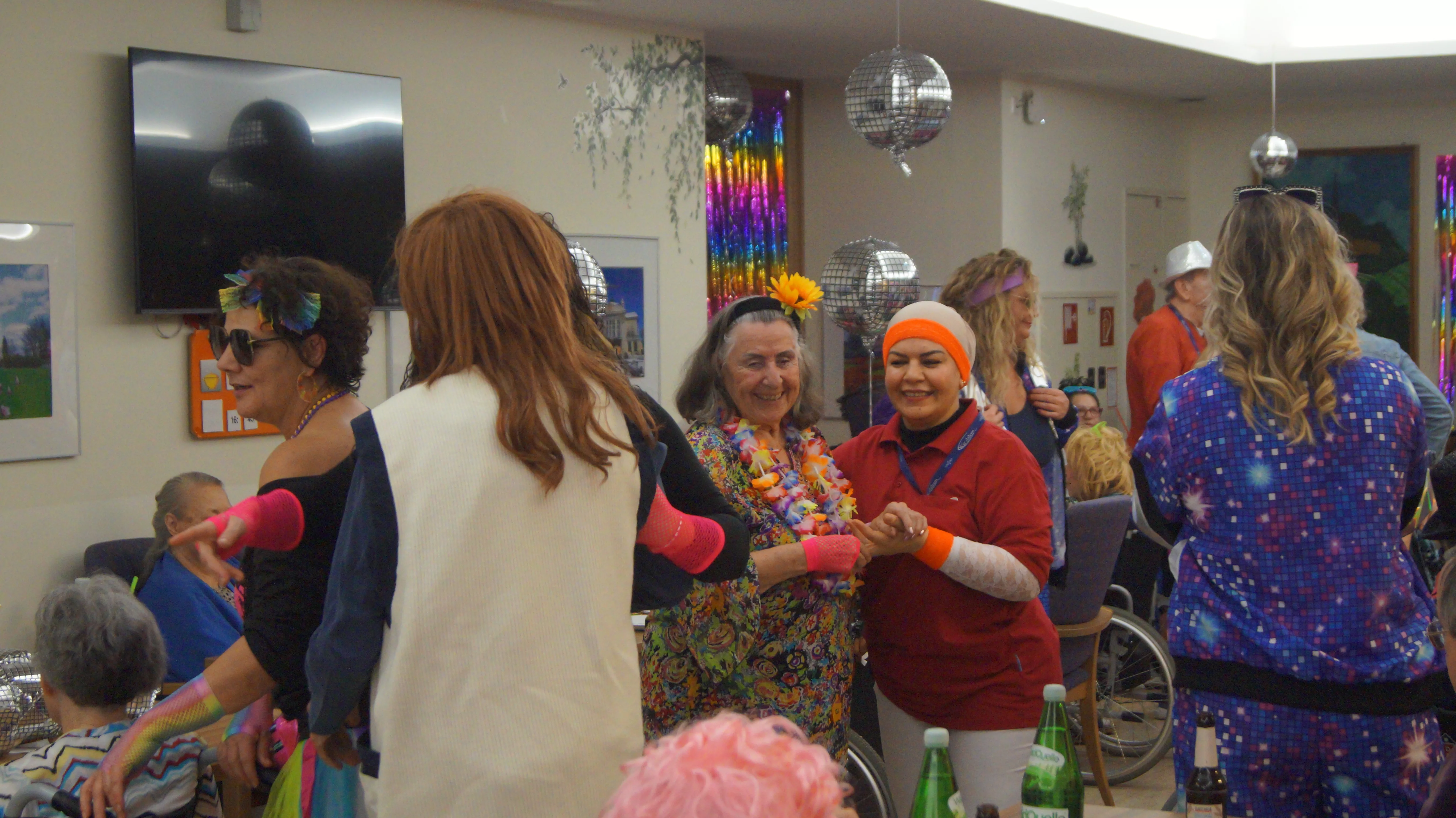 Nach Lust und Laune, verkleidet oder nicht, kamen zahlreiche Bewohner:innen aller Wohnbereiche wie auch Mieter:innen unserer Pflegewohnungen zum gemeinsamen, lustigen Feiern, Plaudern und Tanzen zusammen. Für beste und stimmungsvolle Partylaune sorgte mit vollem Einsatz und Engagement unser allseits bekannter Unterhalter „Krawallhansl“. Ebenso gab es eine Gesangdarbietung im Duett mit „Krawallhansl“ und unserer Wohnbereichsleitung DGKP – zu einem „Gassenhauer“ der legendären Tina Turner – „Rolling on the River“