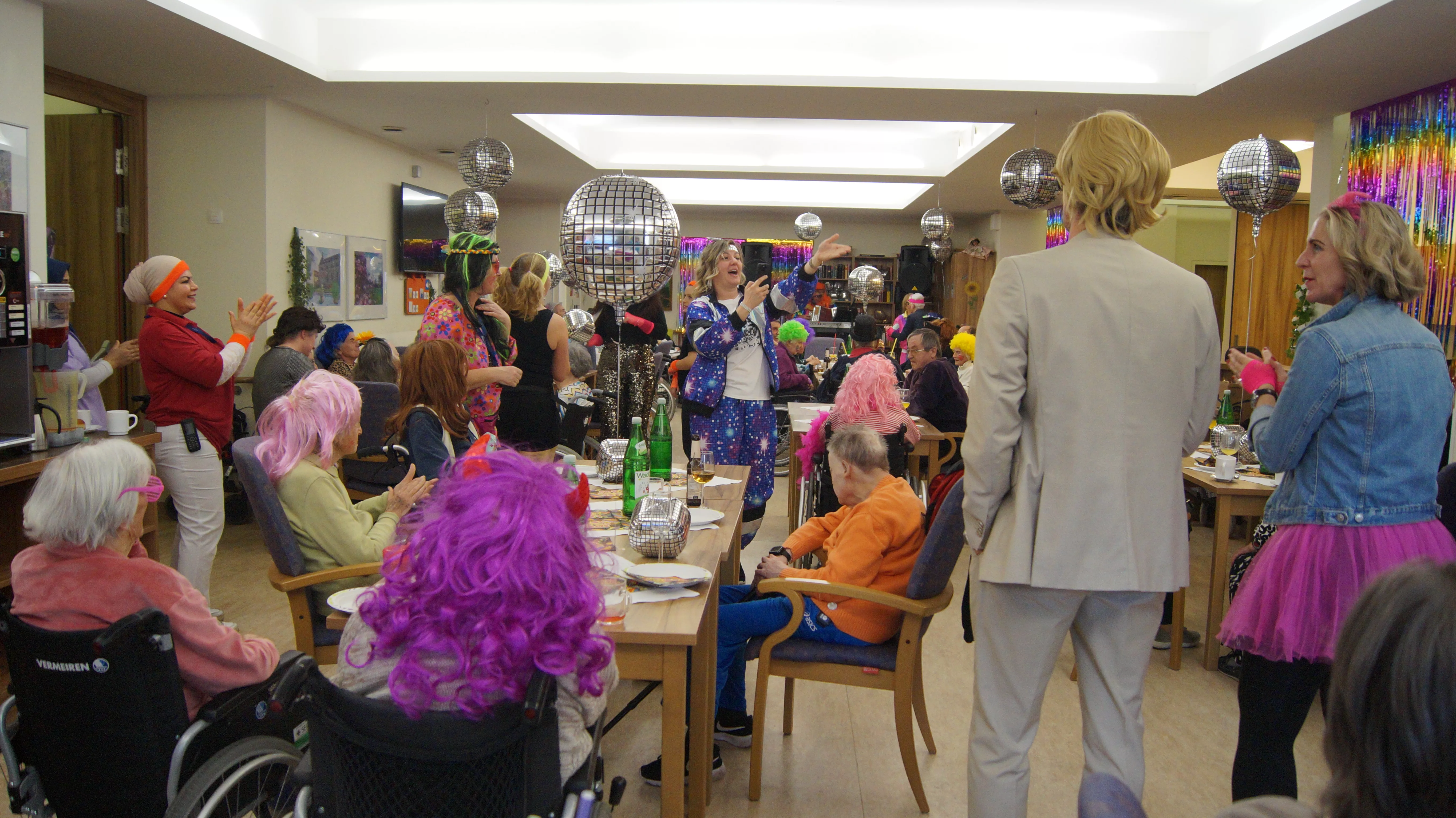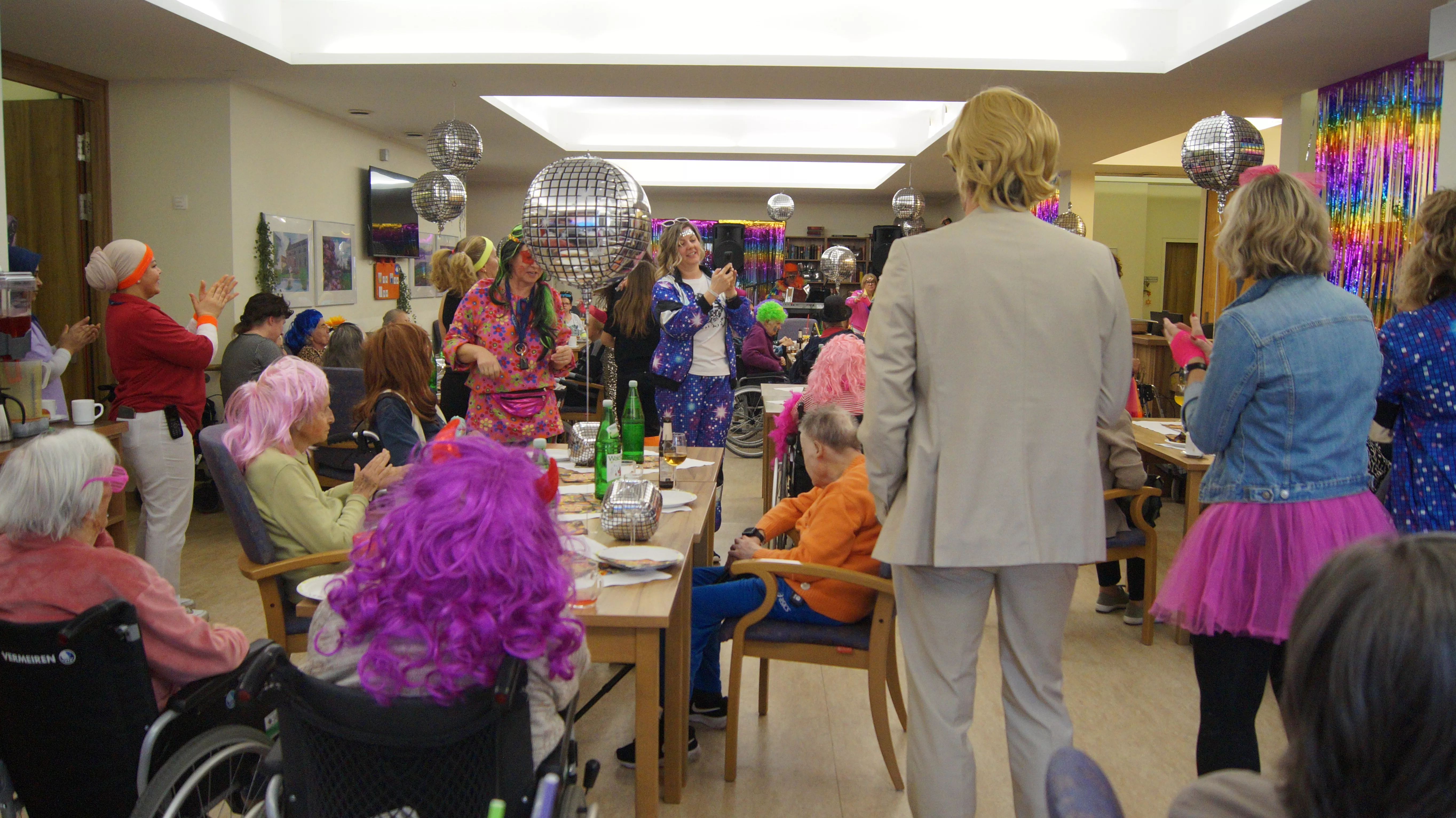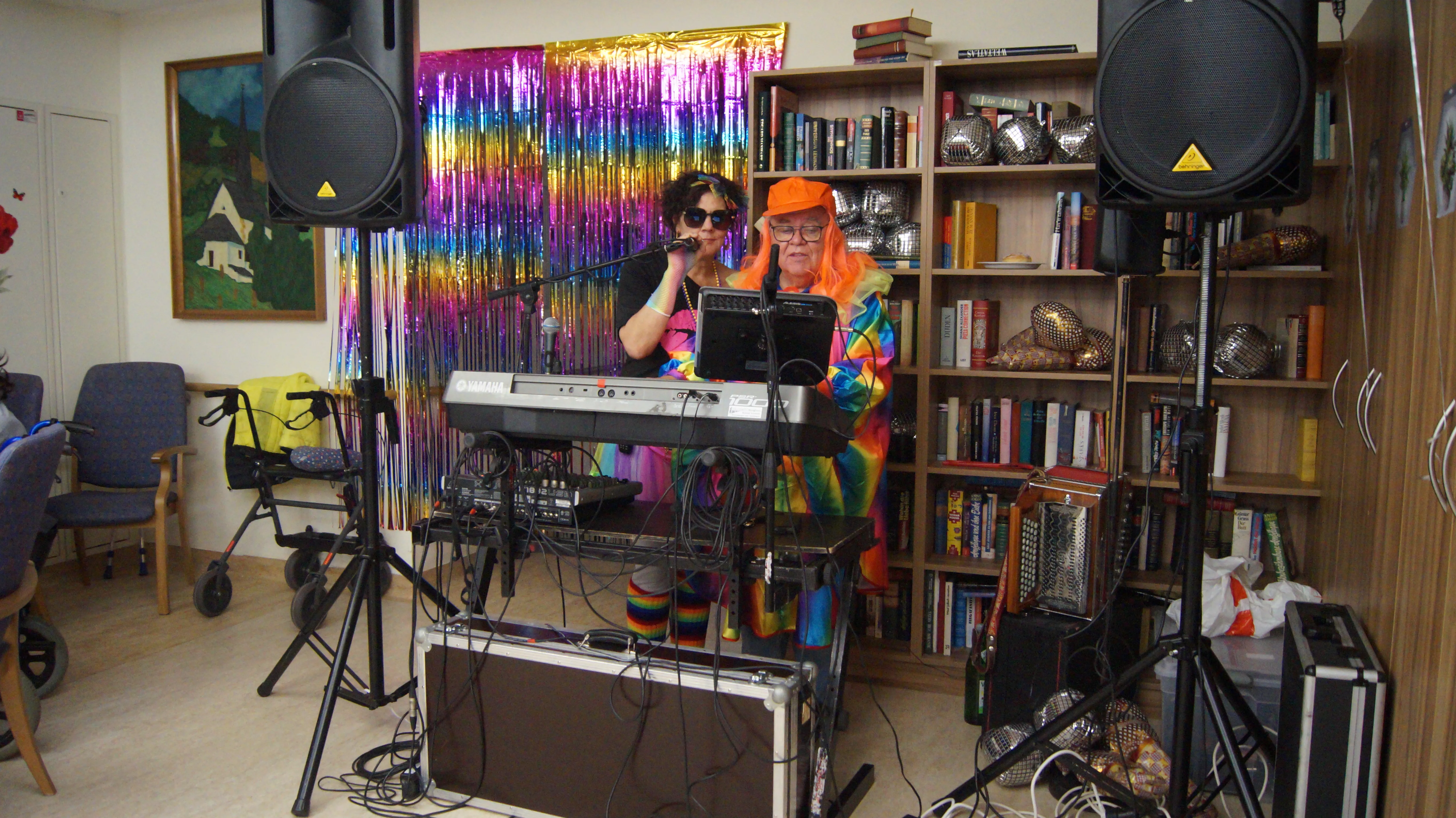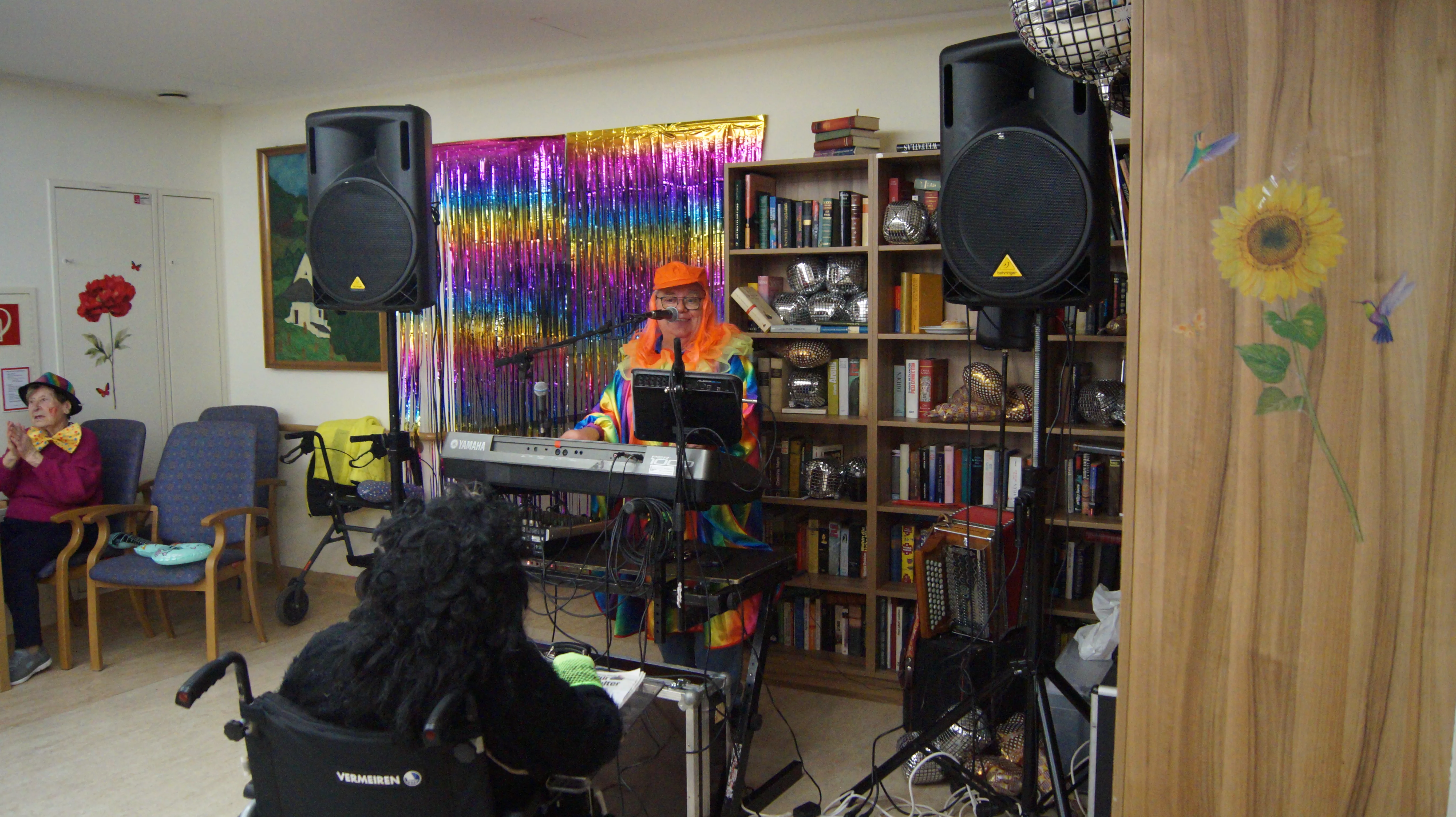 Nach Lust und Laune, verkleidet oder nicht, kamen zahlreiche Bewohner:innen aller Wohnbereiche wie auch Mieter:innen unserer Pflegewohnungen zum gemeinsamen, lustigen Feiern, Plaudern und Tanzen zusammen. Für beste und stimmungsvolle Partylaune sorgte mit vollem Einsatz und Engagement unser allseits bekannter Unterhalter „Krawallhansl“. Ebenso gab es eine Gesangdarbietung im Duett mit „Krawallhansl“ und unserer Wohnbereichsleitung DGKP – zu einem „Gassenhauer“ der legendären Tina Turner – „Rolling on the River“