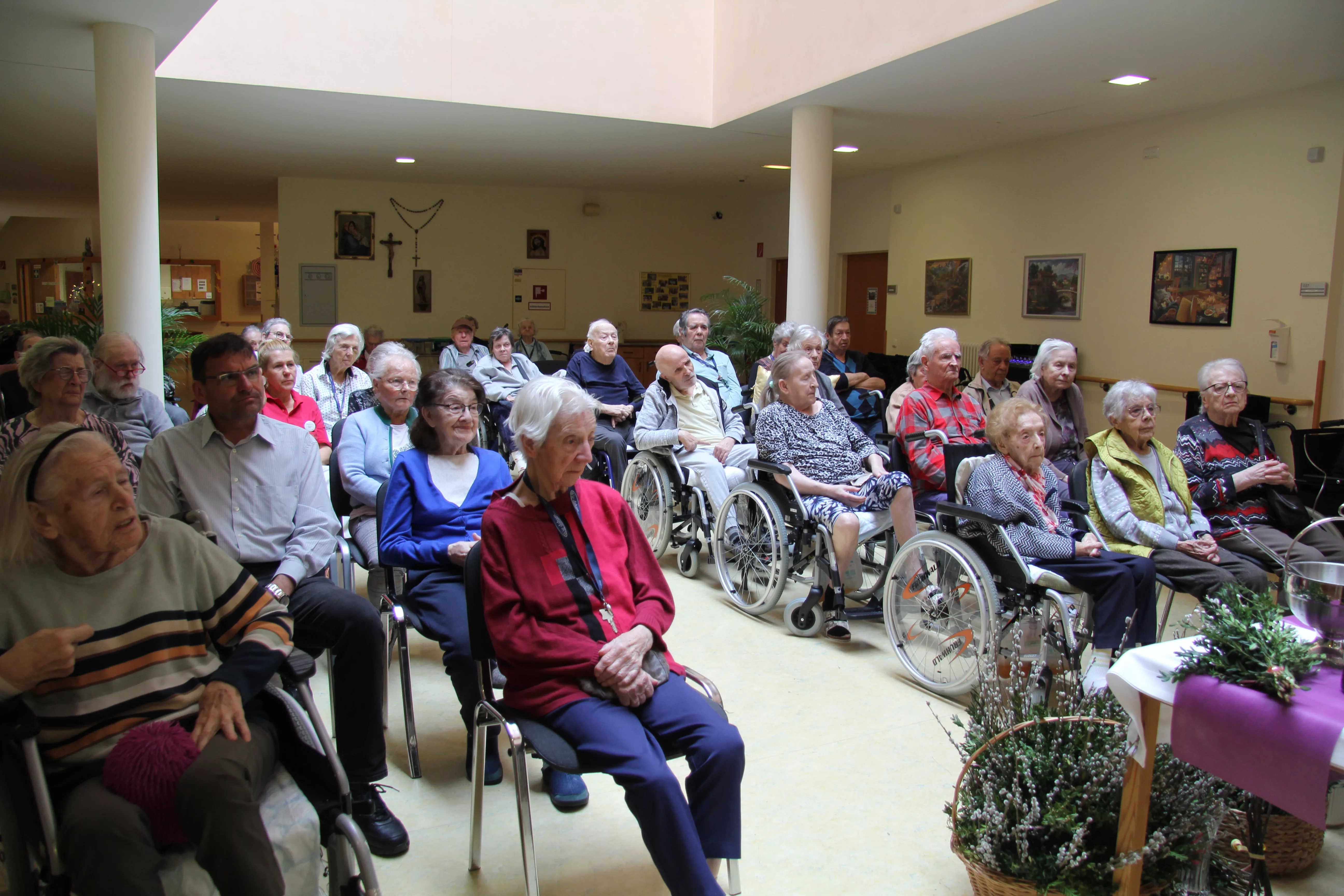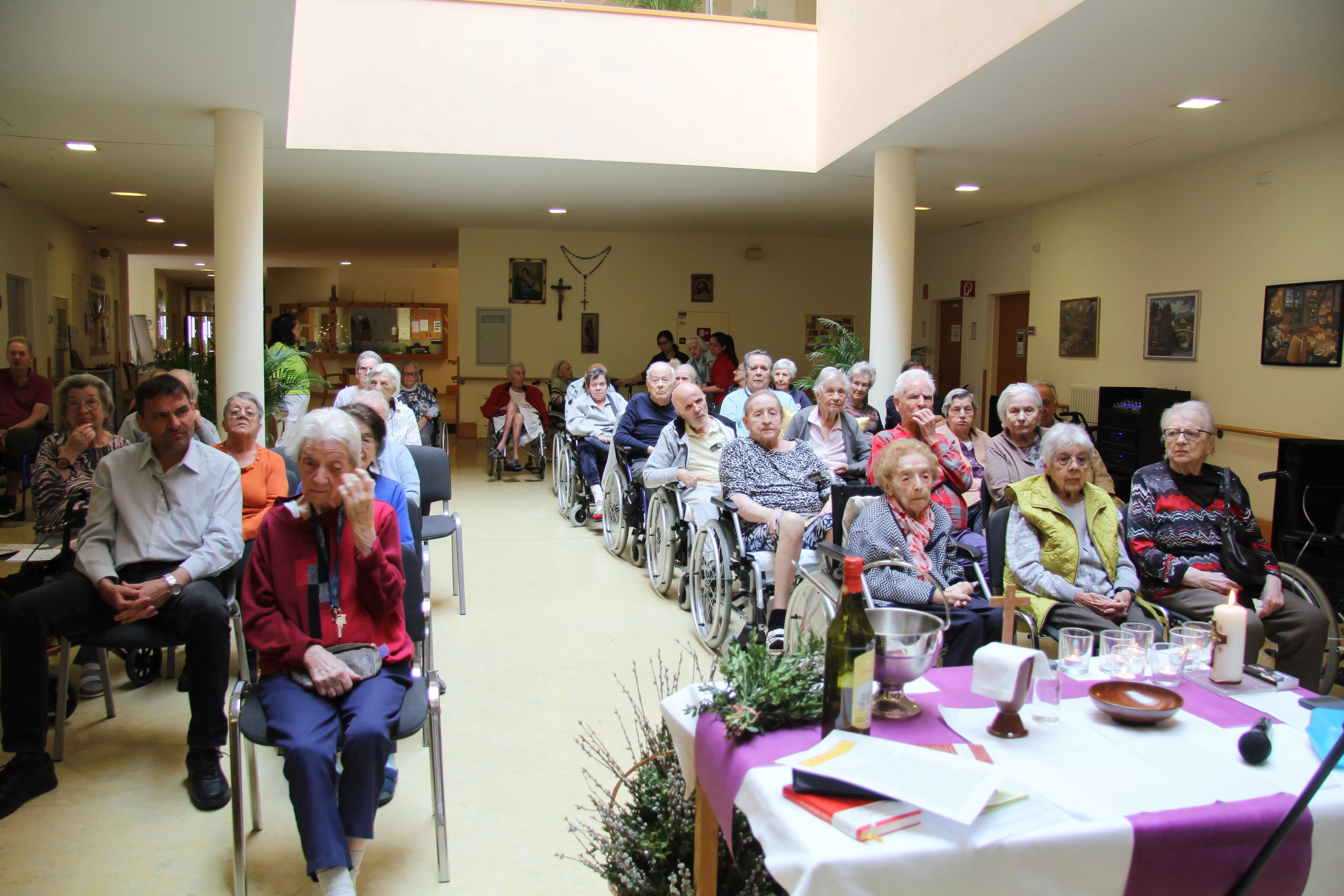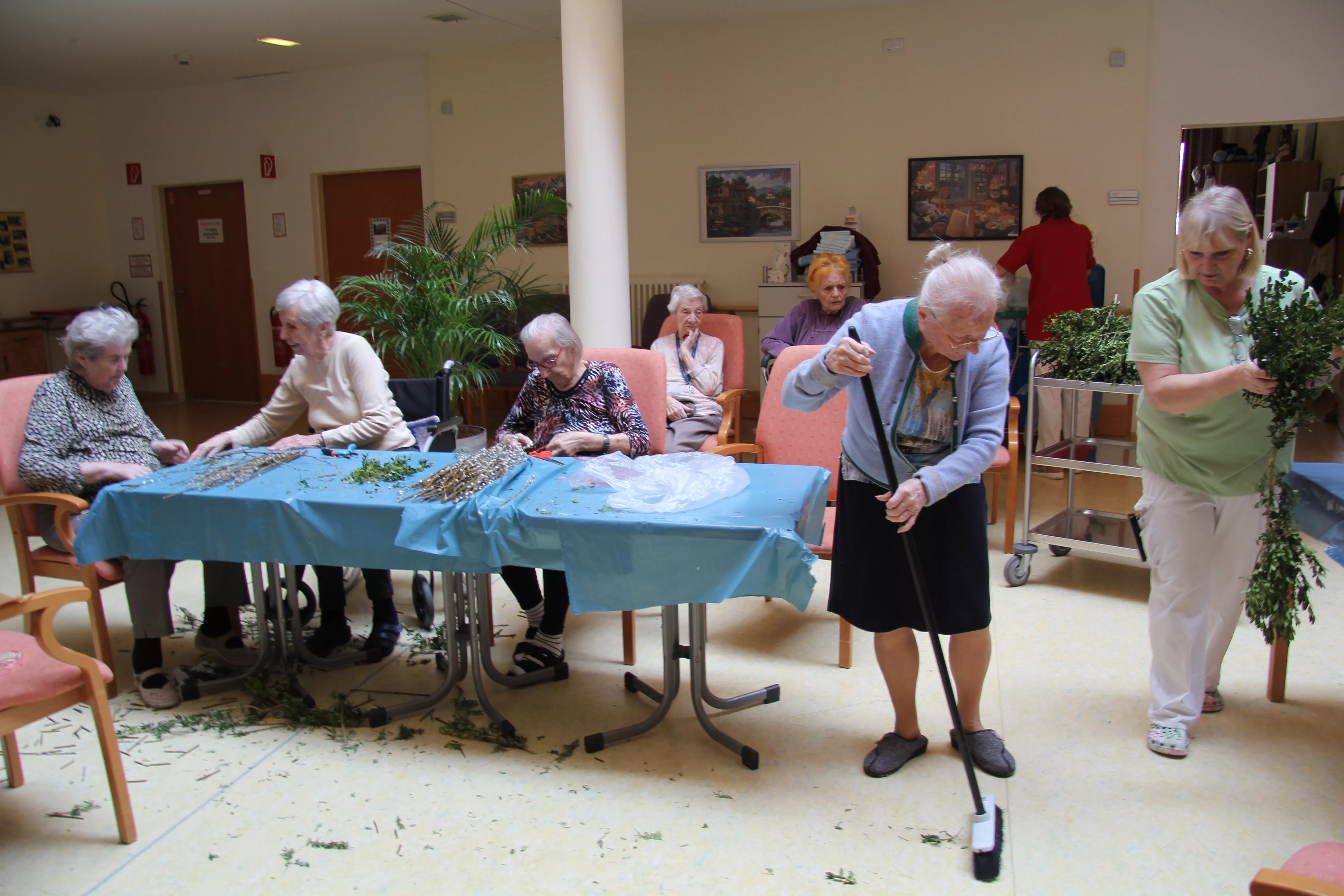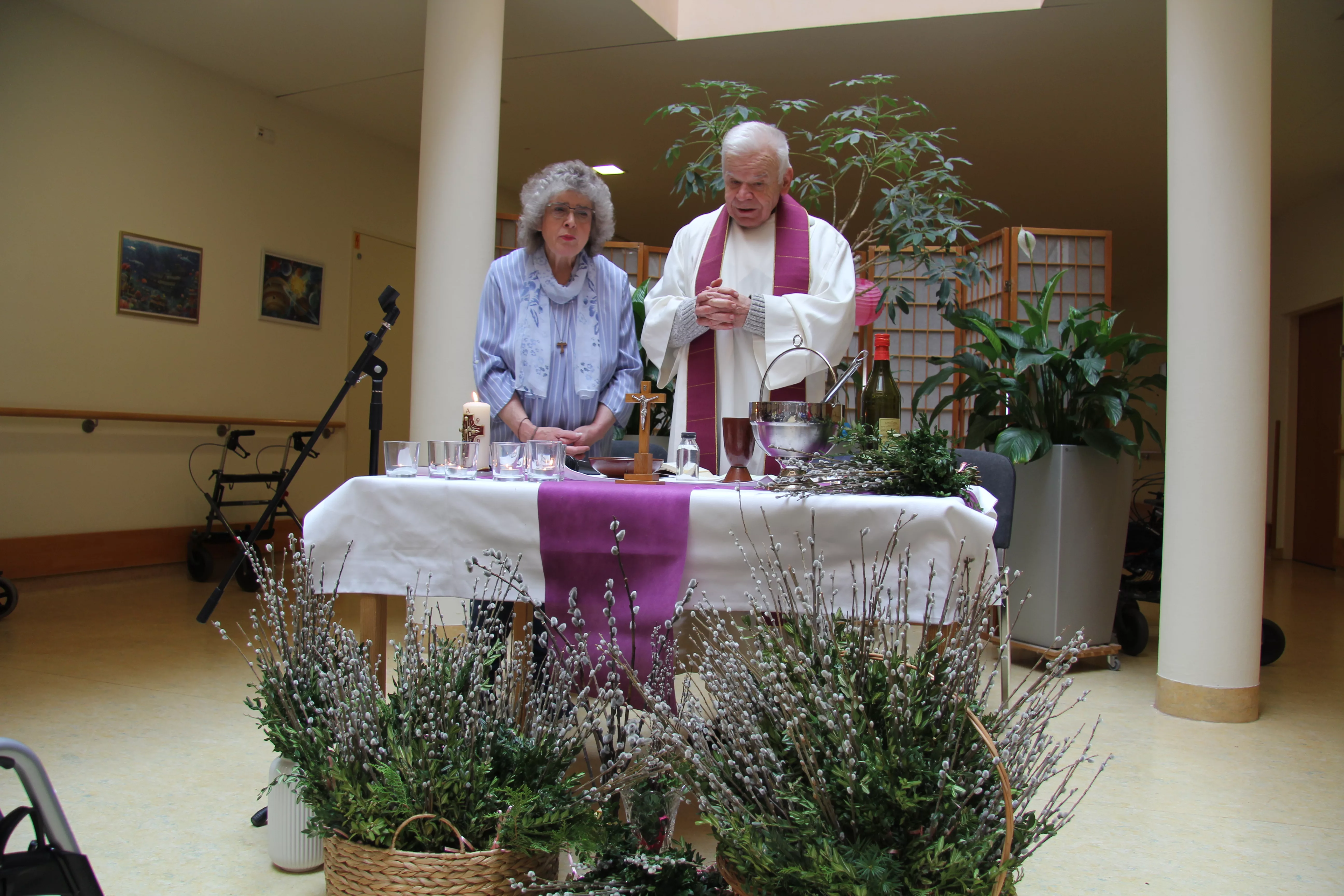 Palmkatzerl binden - Ostermesse Traditionell werden die Palmbuschen von unseren BewohnerInnen selbst gebunden – dann geht es zur Palm-Weihe.