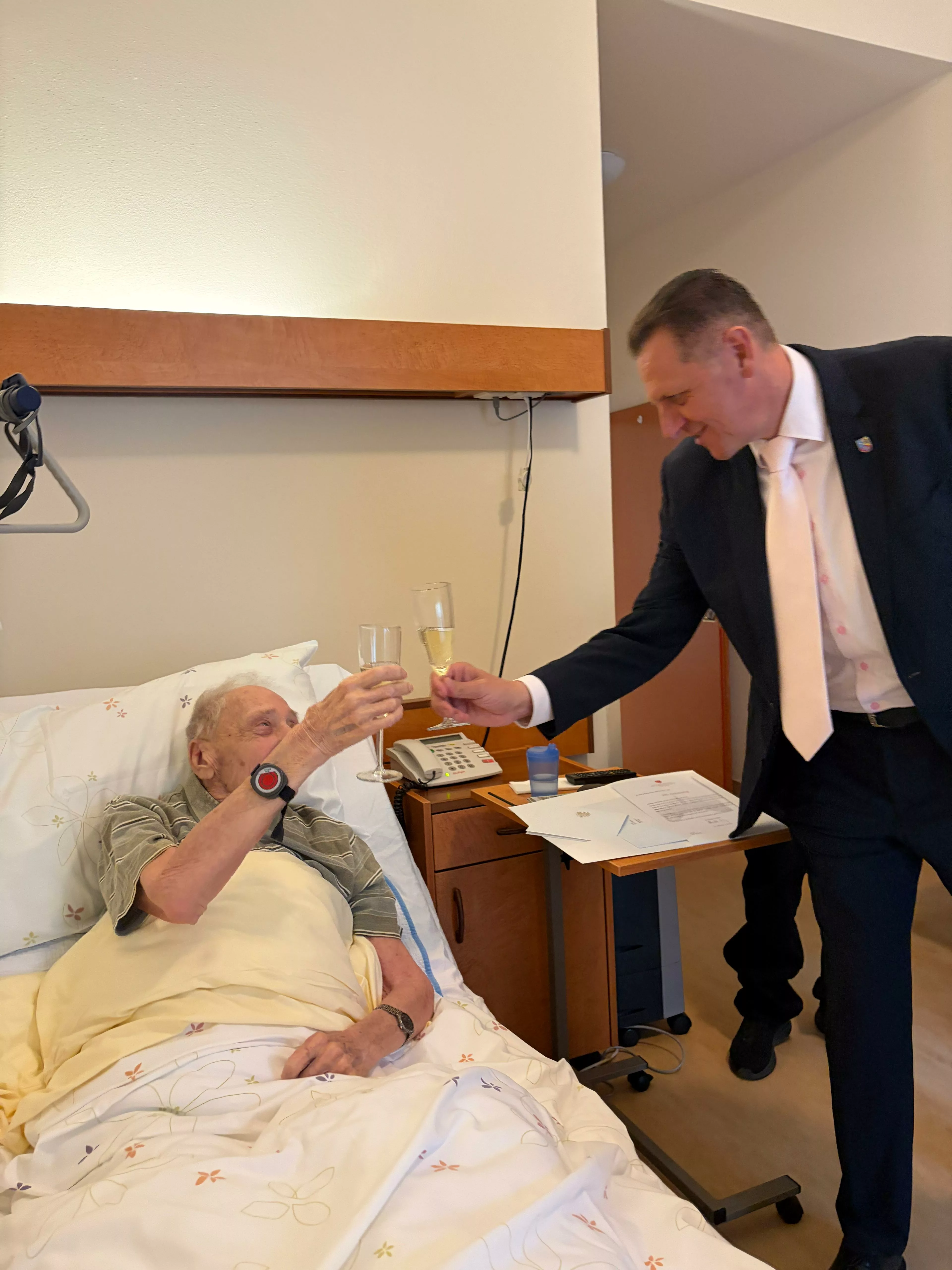 100. Geburtstag Herr Pendl Wir dürfen Herrn Pendl zusammen mit Bezirksvorsteher Thomas Steinhart zu seinem 100. Geburtstag gratulieren.