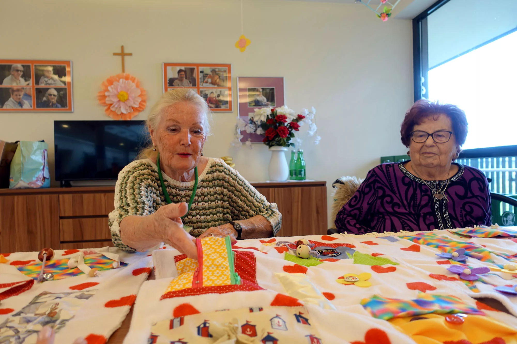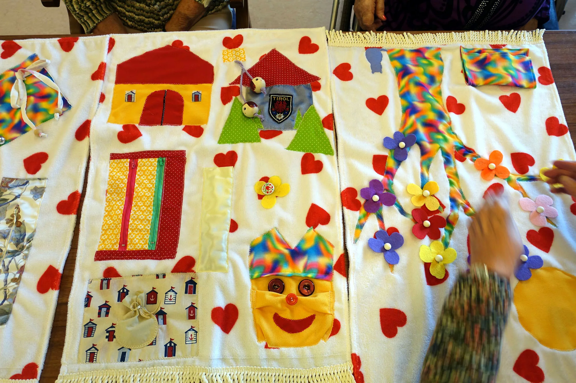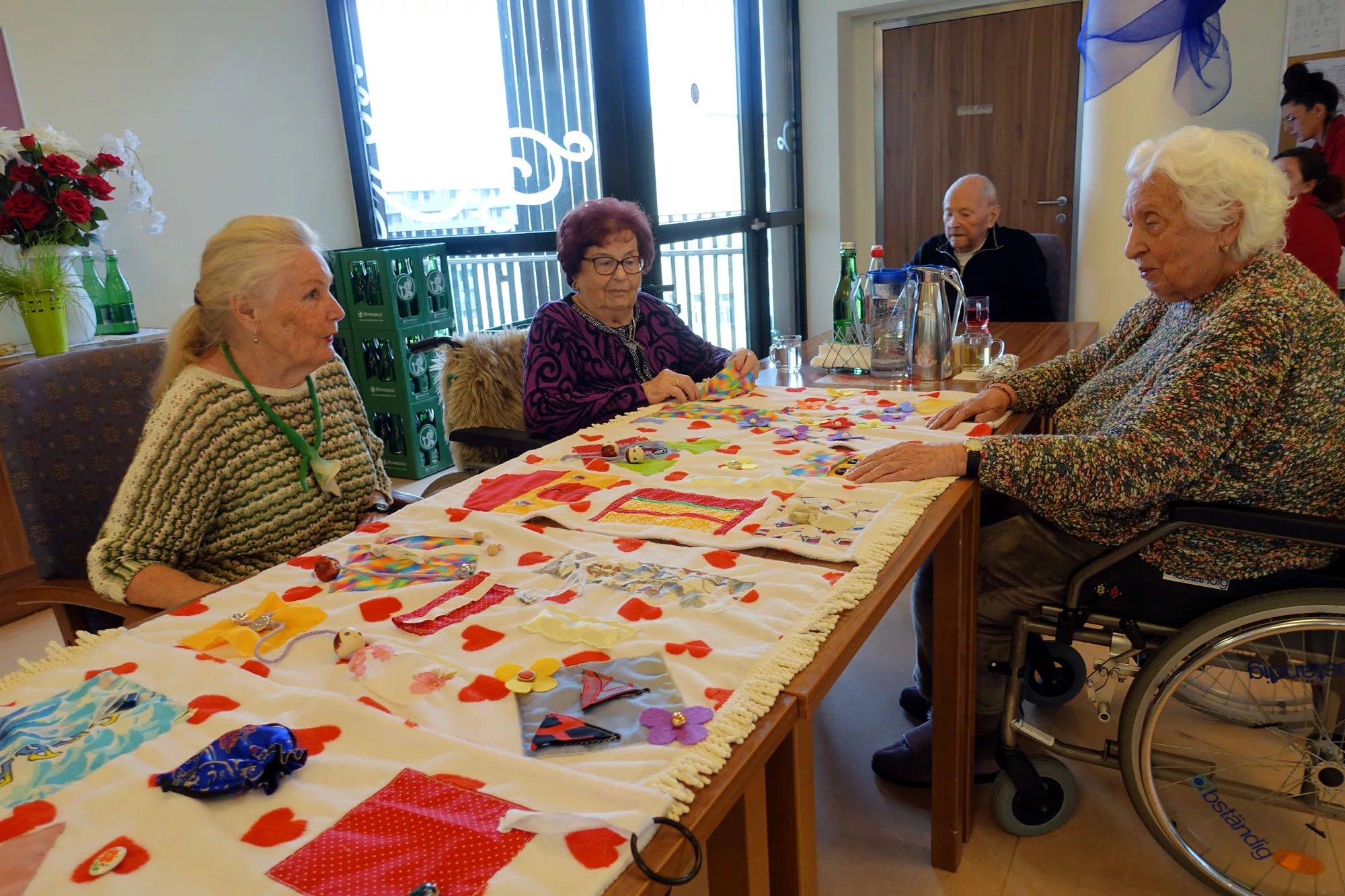 Unsere mittlerweile mehr als nur liebgewonnene ehrenamtliche Mitarbeiterin, Frau Friederike Schweiger, fertigte für demenzerkrankte Bewohner wunderschöne Nesteldecken an.