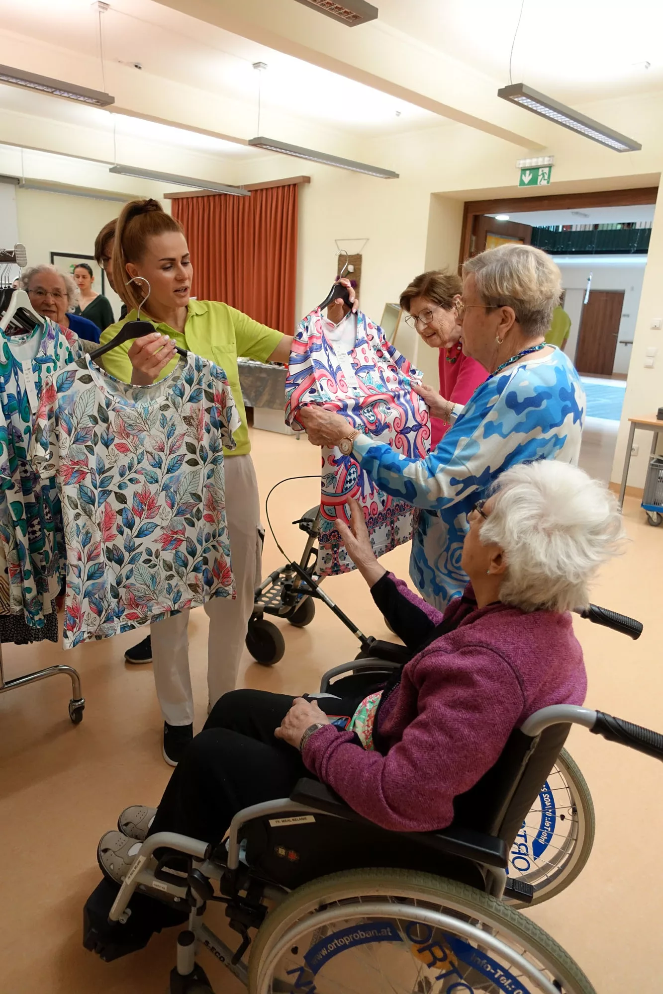 la moda italiana Unsere Bewohnerinnen durften heute wieder im Angebot einer fahrenden Händlerin gustieren und das eine oder andere für sie passende Kleidungsstück erwerben.