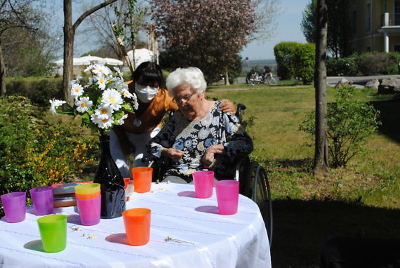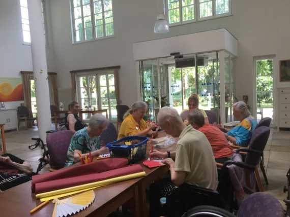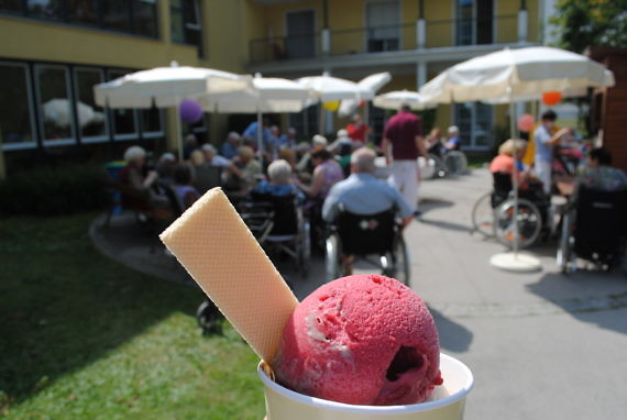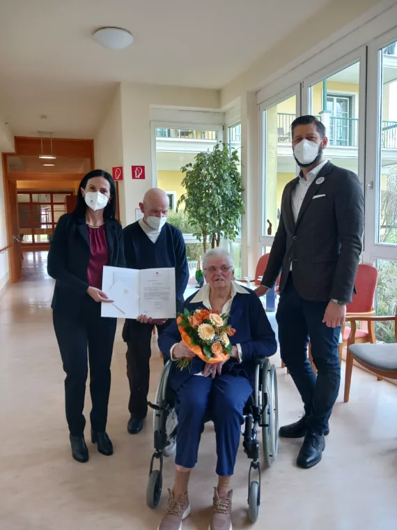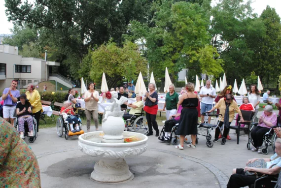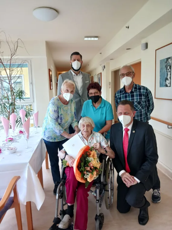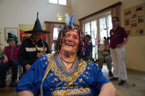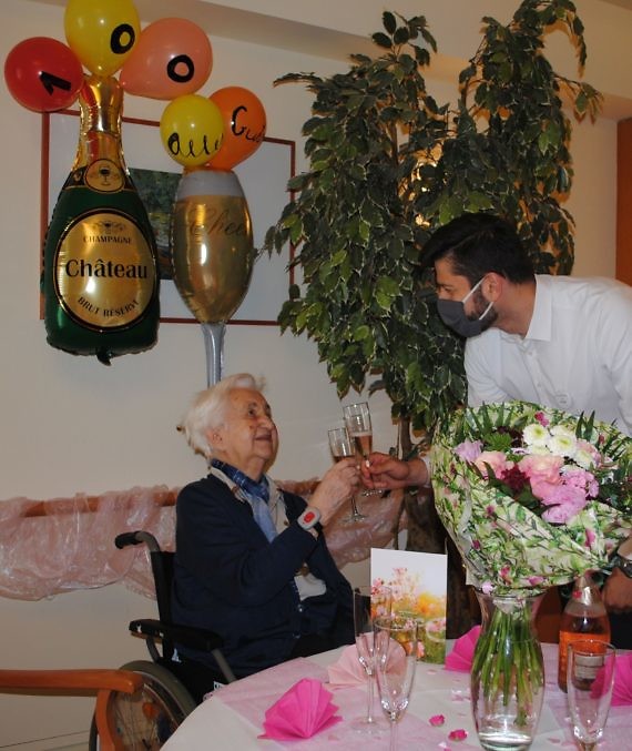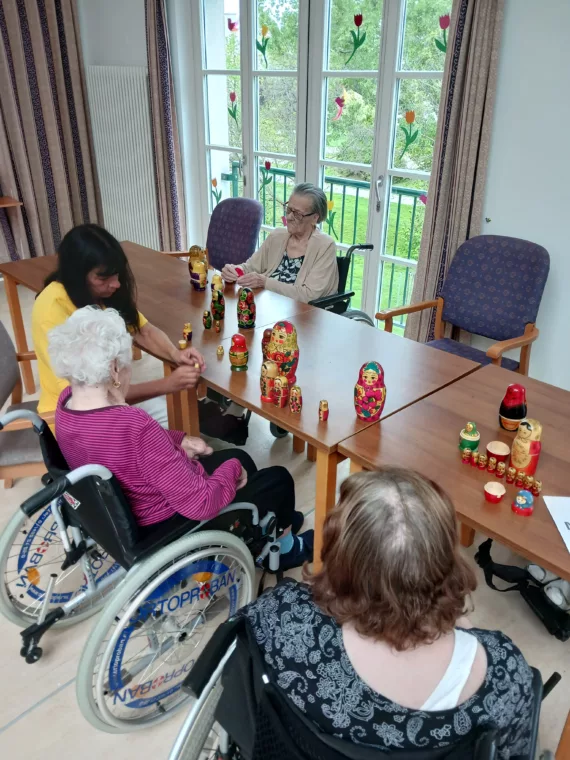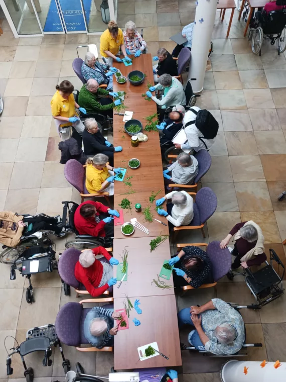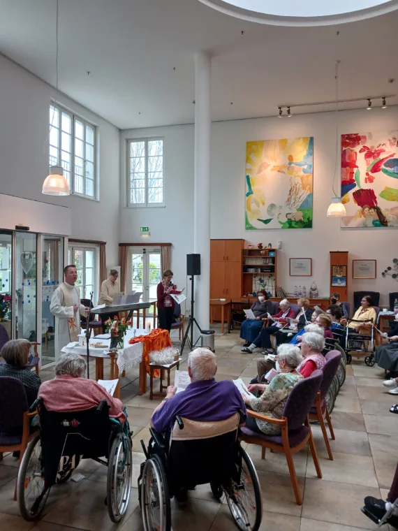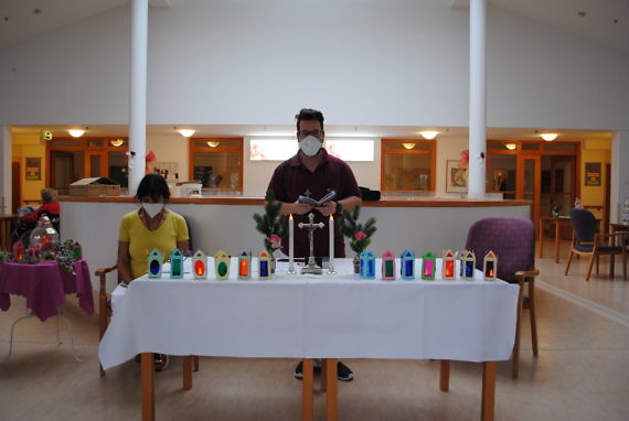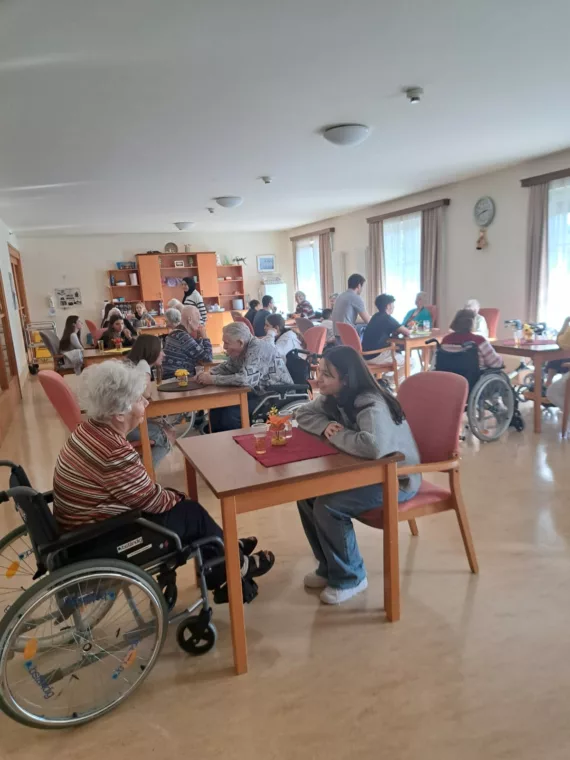 Wir starten wieder gemeinsam im Wohnbereich Sonnenblume, bevor die Bewohnerinnen und Bewohner dann in den Wohnbereichen gemeinsam feiern.